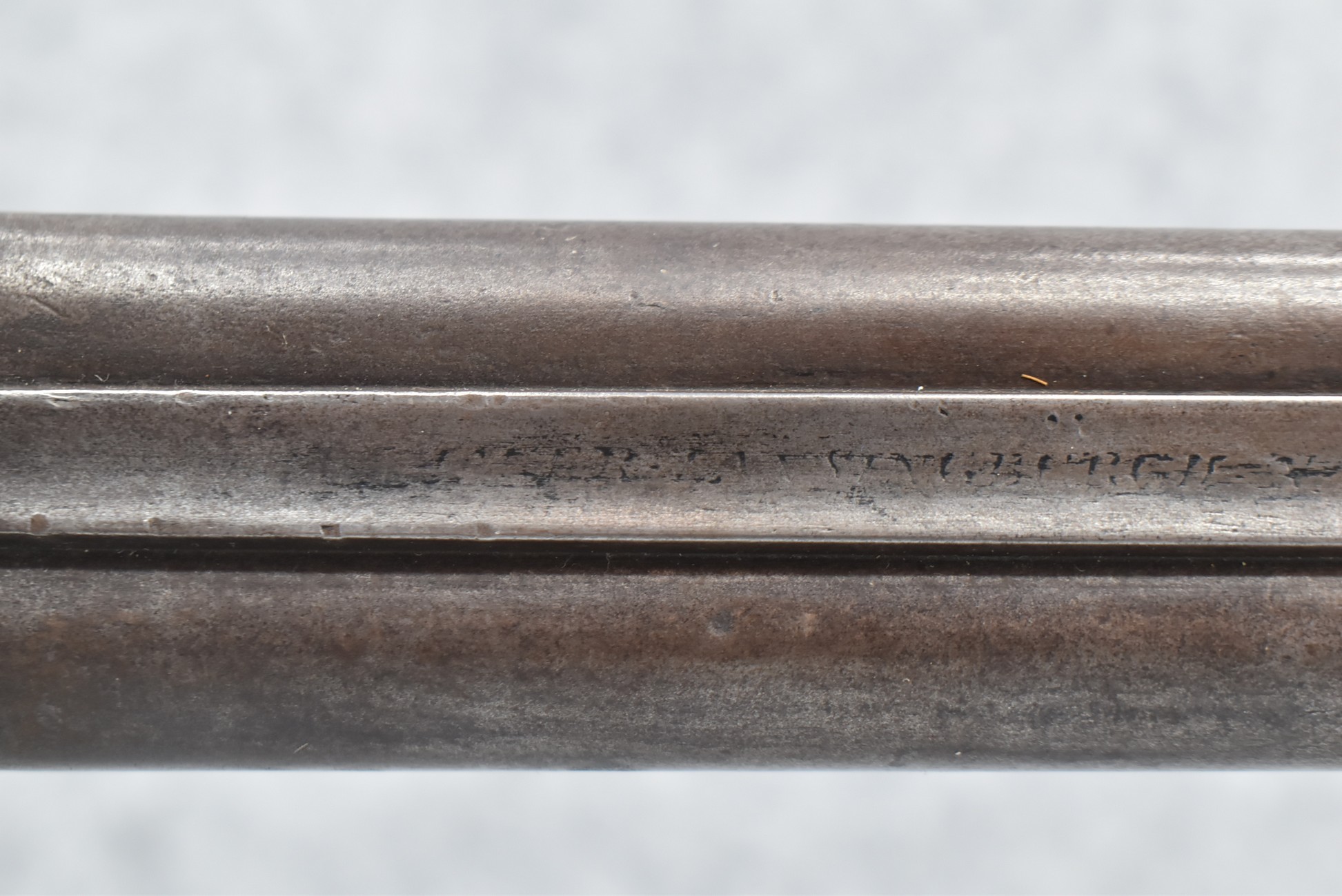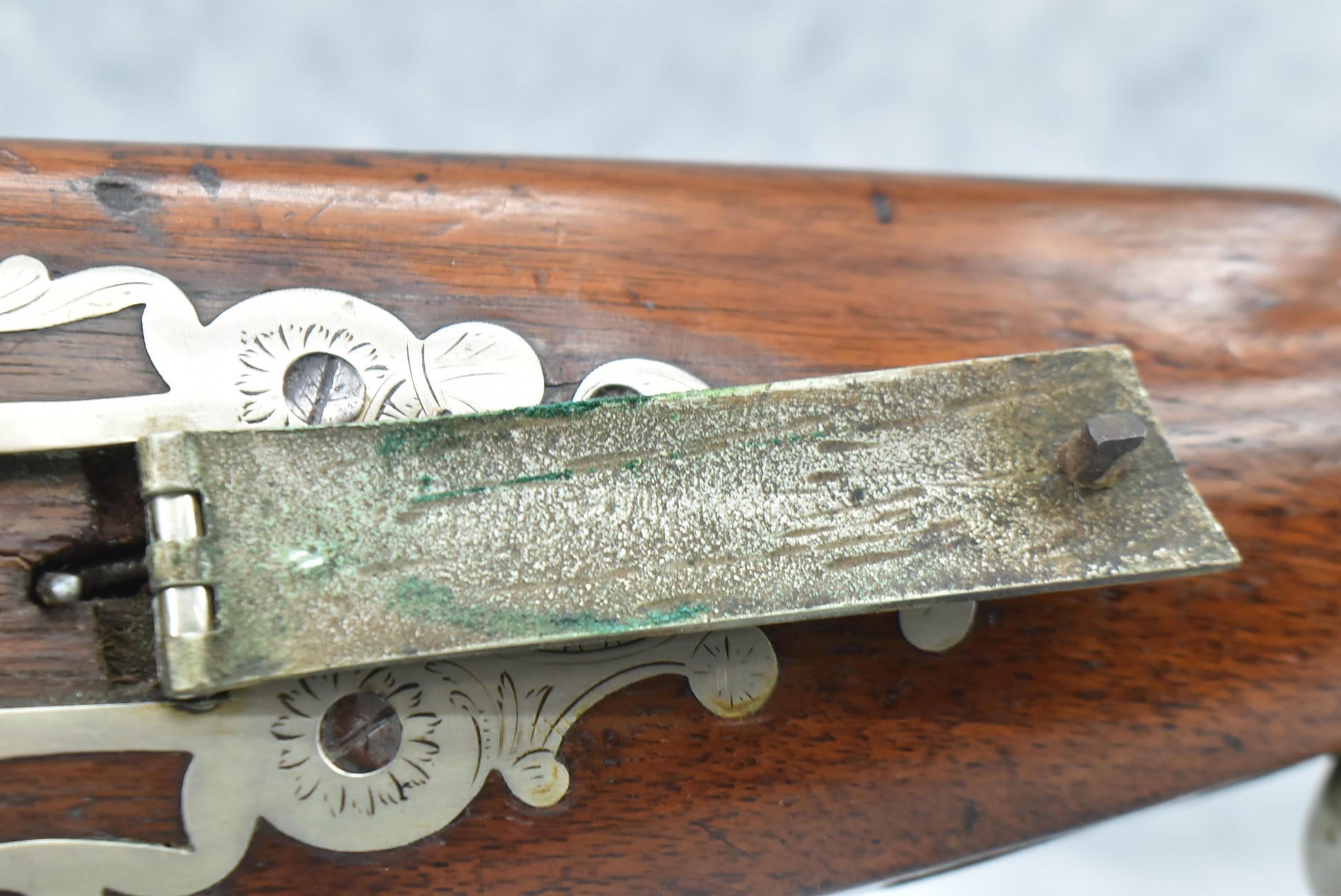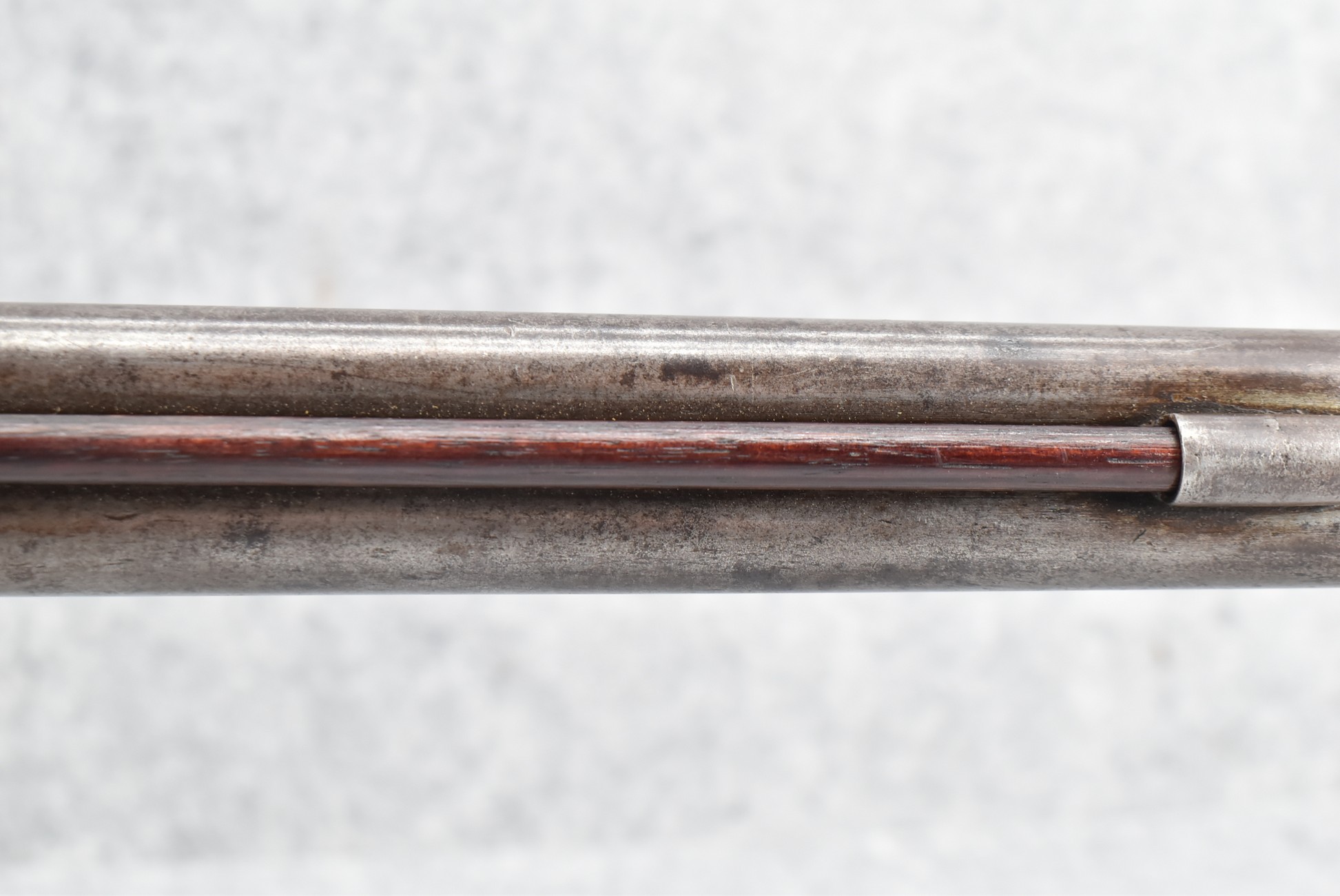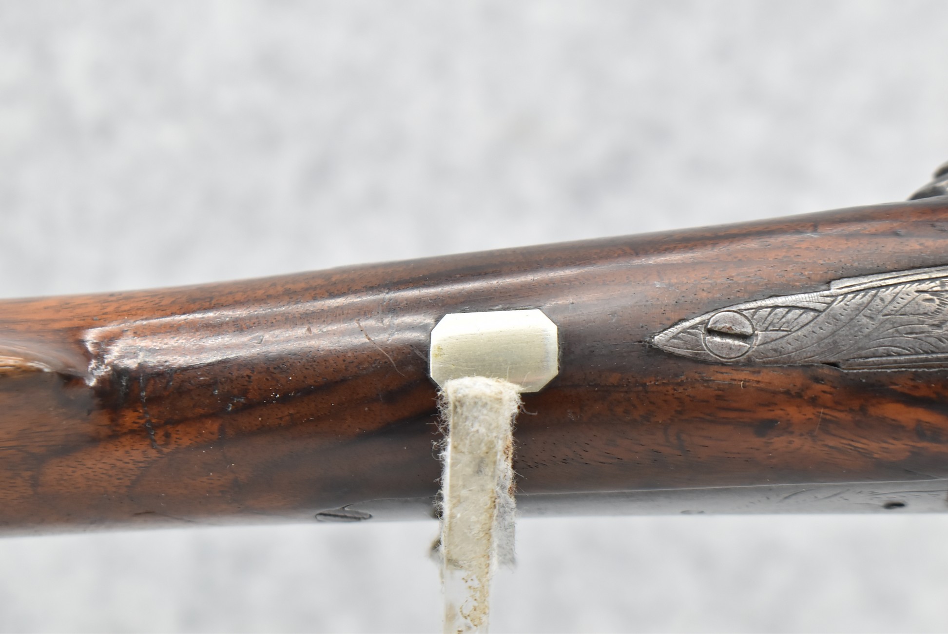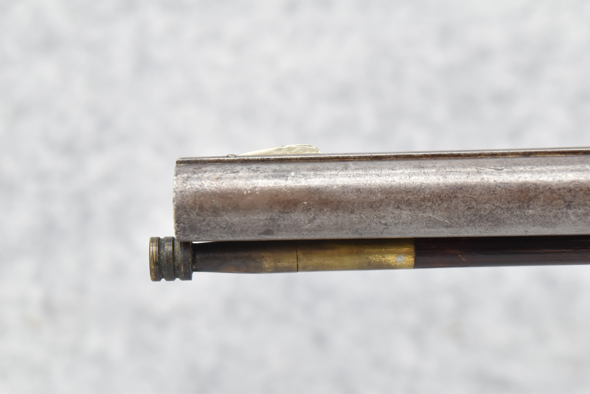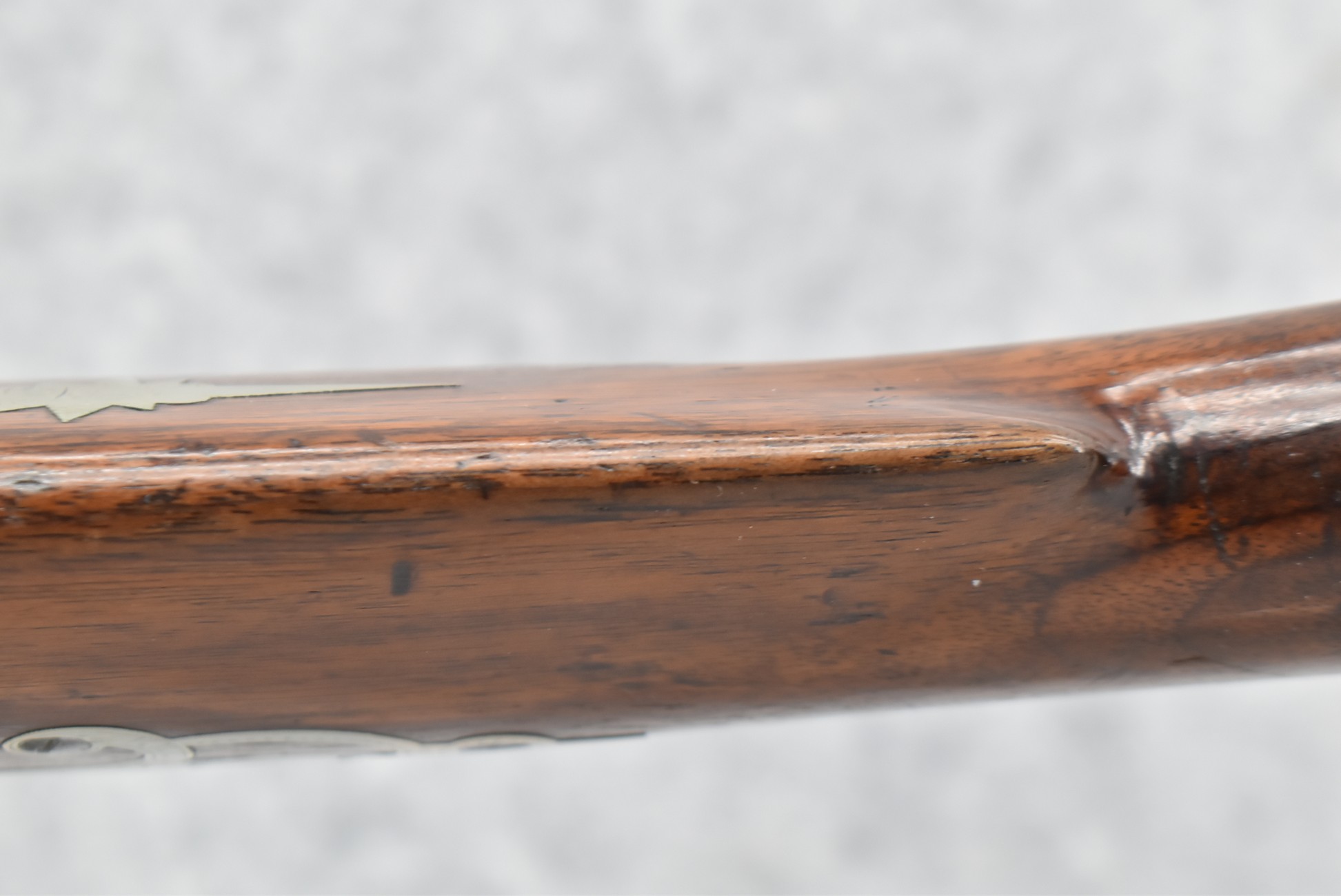 140. Signed E. Hutching’s & Co. Agent’s Baltimore – Black Powder Double Barrel Rifle – Left Barrel is 52 Cal. Smoothbore & Right Barrel is 44 Cal. Rifled – 32 ½” Barrels w/German Silver Front Sights & Rear Barrel Sight – w/Straight Grip Half Stock w/Engraved Ornate Silver 4pc. Patch Box & Silver Engraved Trigger Guard – w/Double Dolphin Head Hammers & Double Triggers – w/Ram Rod – Overall a Very High Quality Unique Gun!