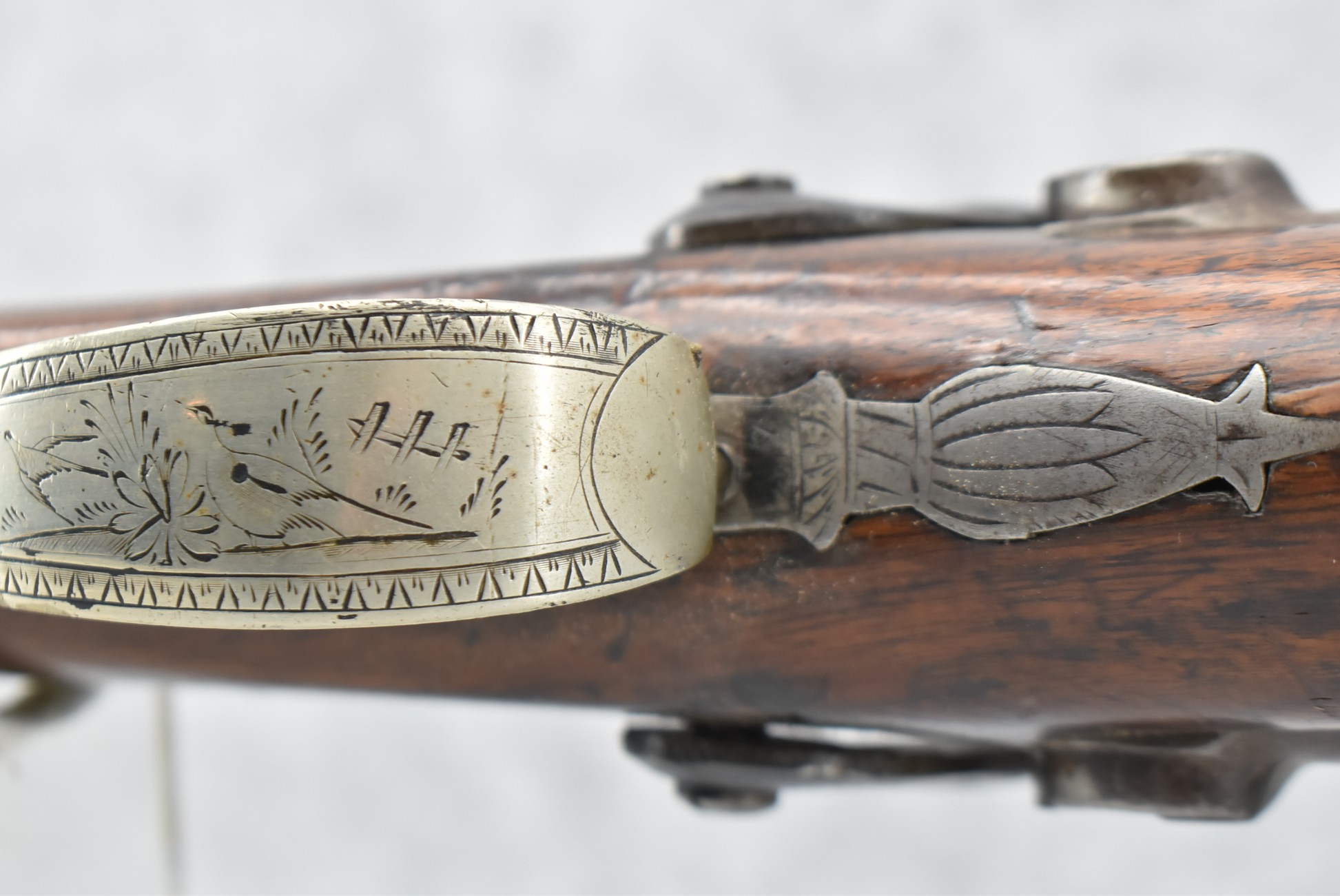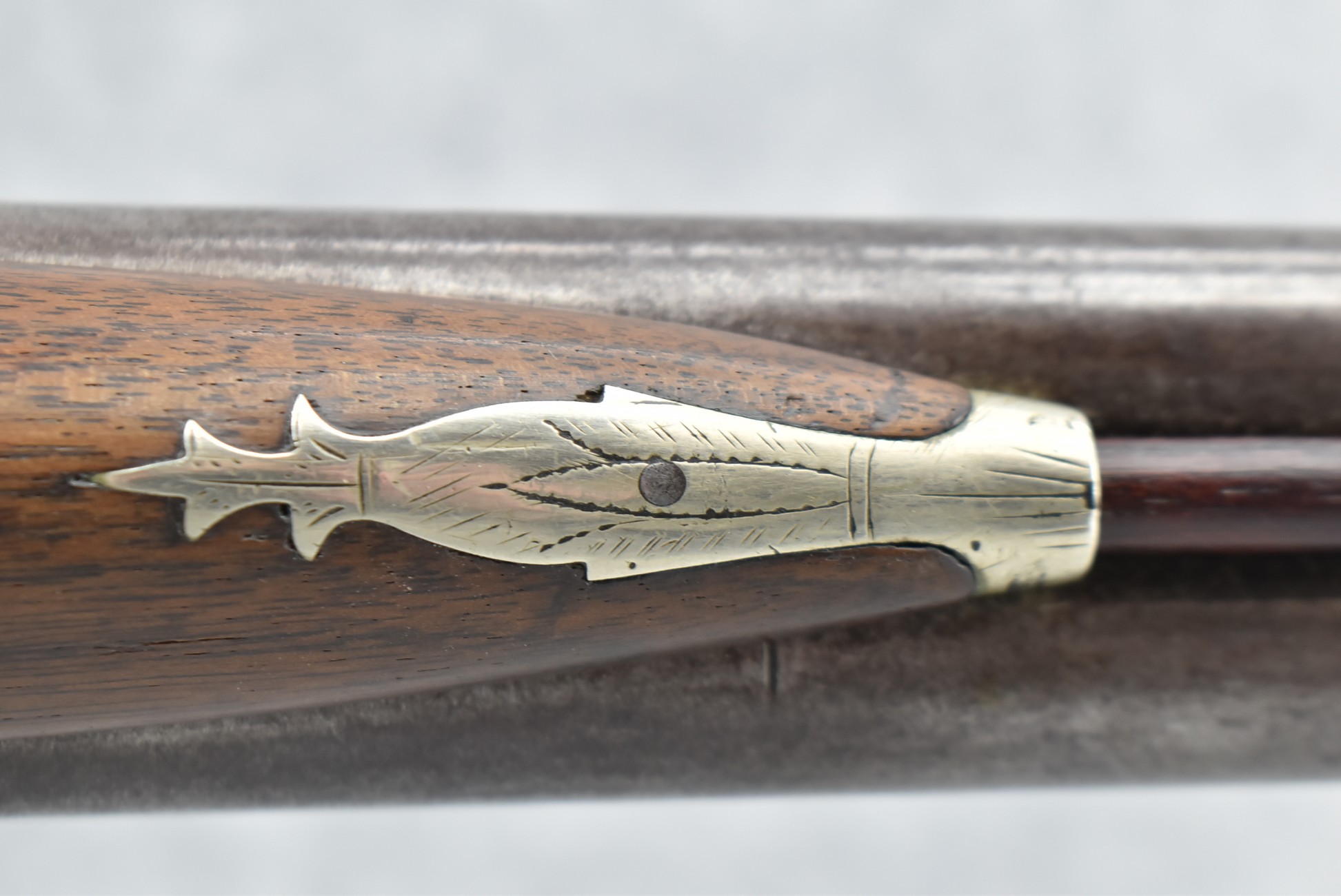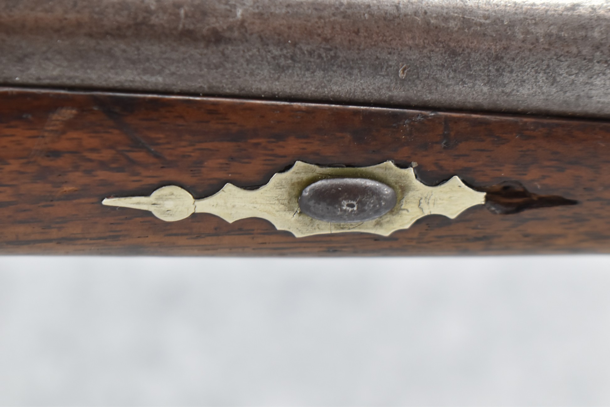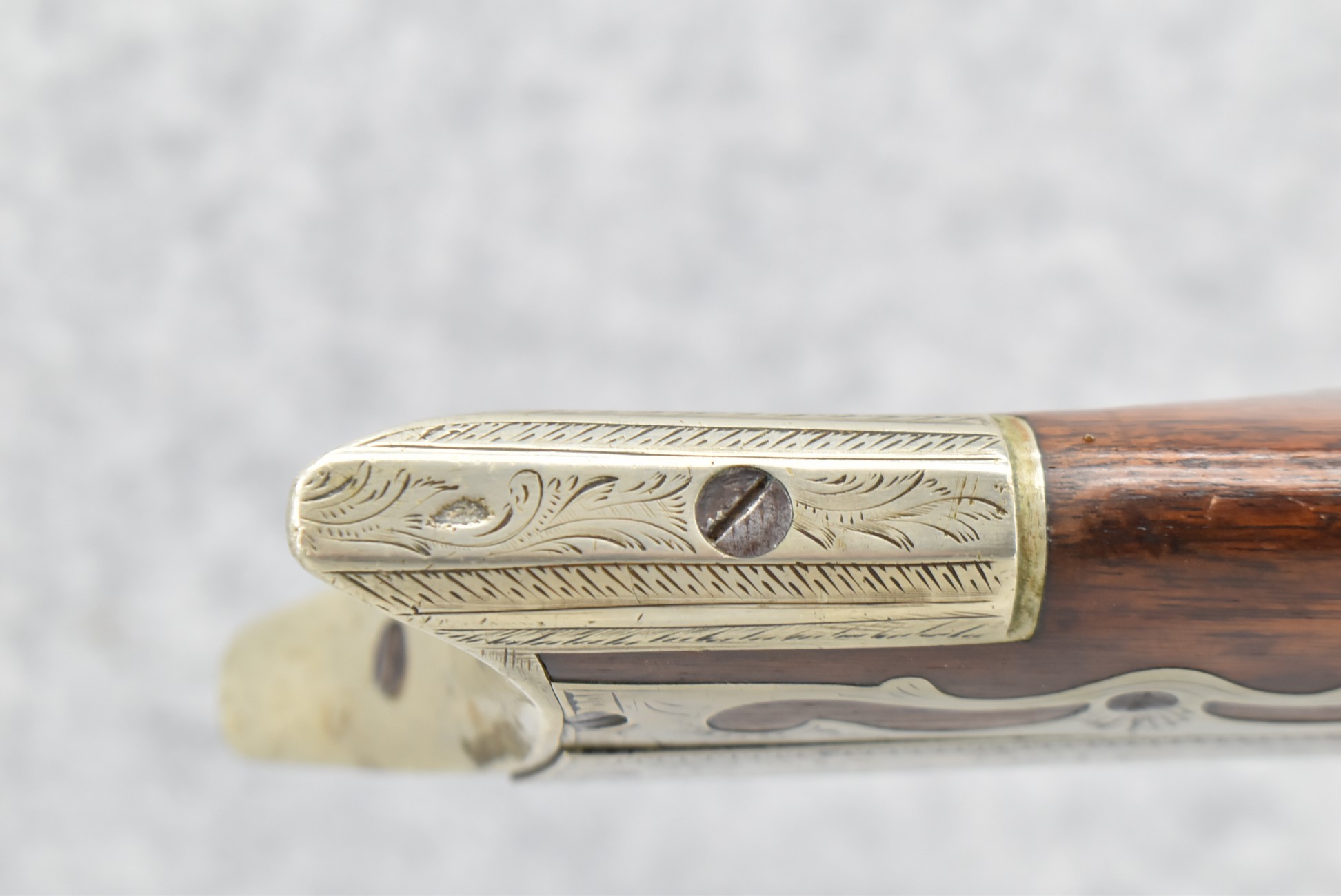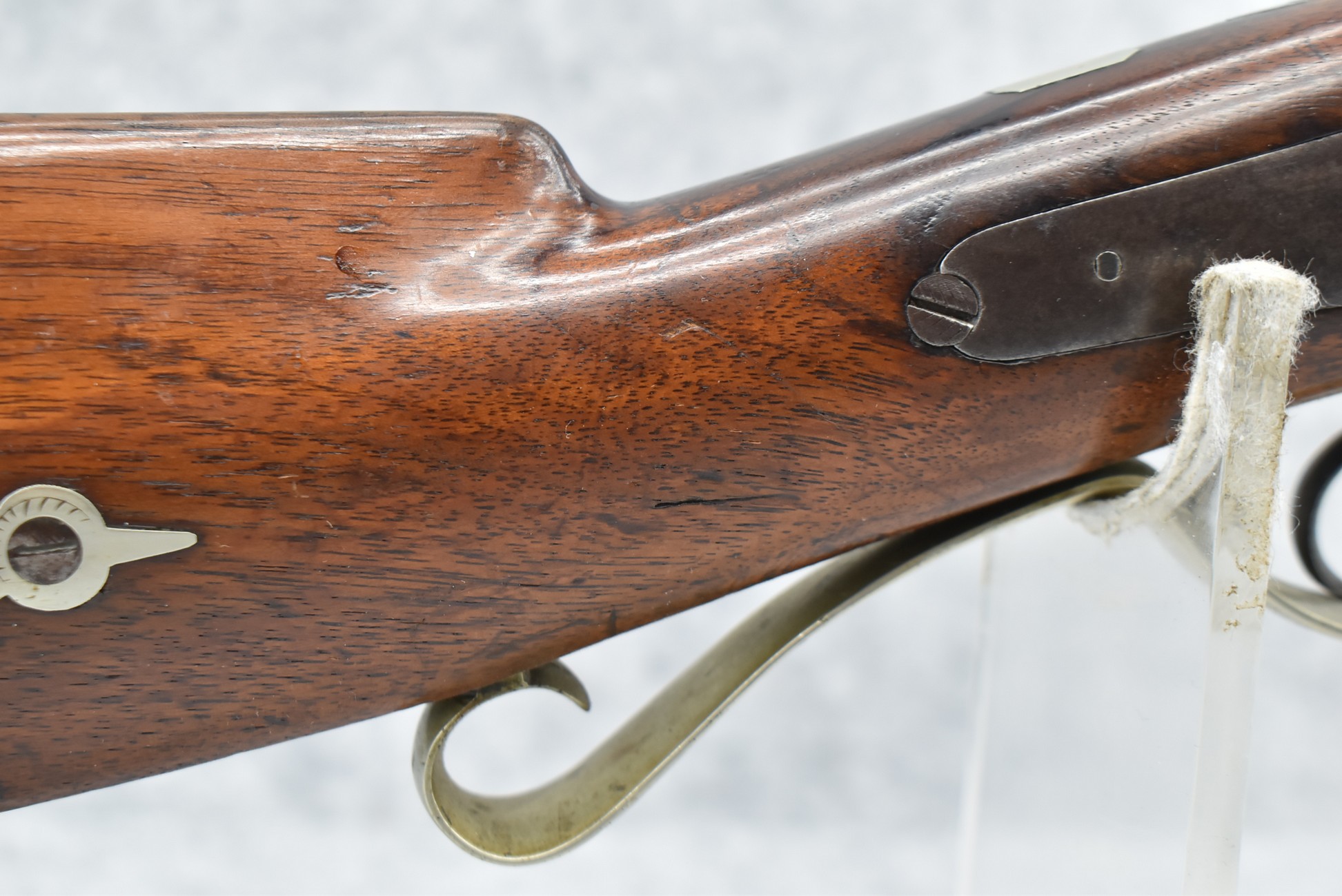 140. Signed E. Hutching’s & Co. Agent’s Baltimore – Black Powder Double Barrel Rifle – Left Barrel is 52 Cal. Smoothbore & Right Barrel is 44 Cal. Rifled – 32 ½” Barrels w/German Silver Front Sights & Rear Barrel Sight – w/Straight Grip Half Stock w/Engraved Ornate Silver 4pc. Patch Box & Silver Engraved Trigger Guard – w/Double Dolphin Head Hammers & Double Triggers – w/Ram Rod – Overall a Very High Quality Unique Gun!