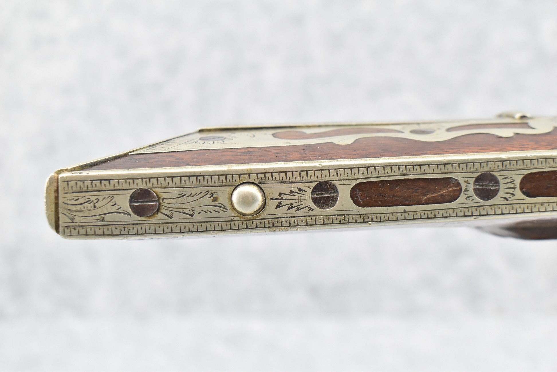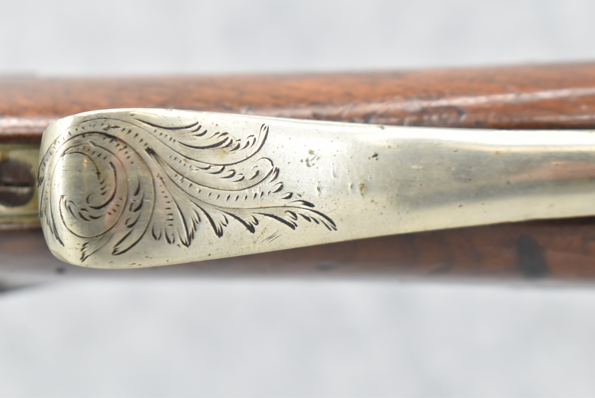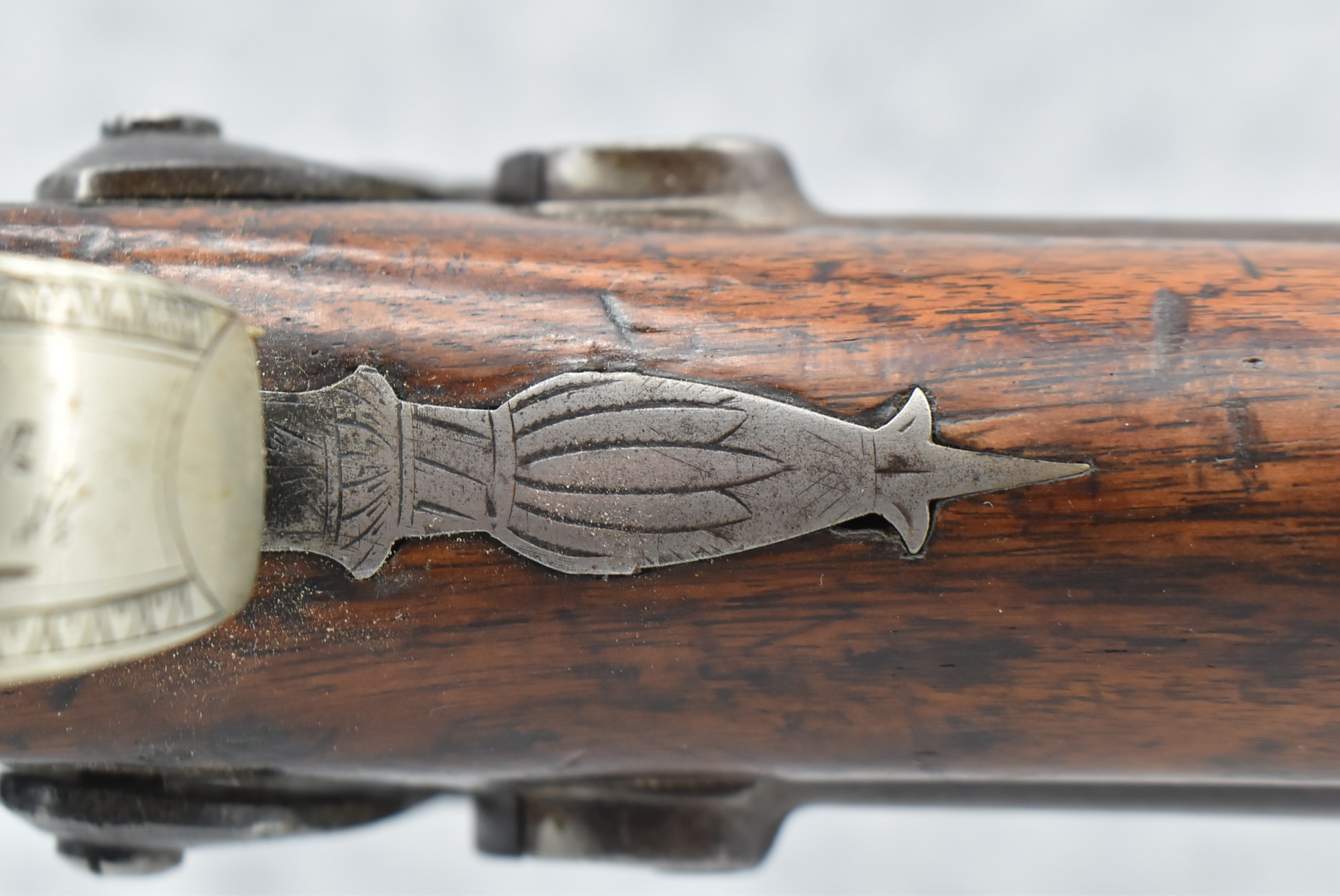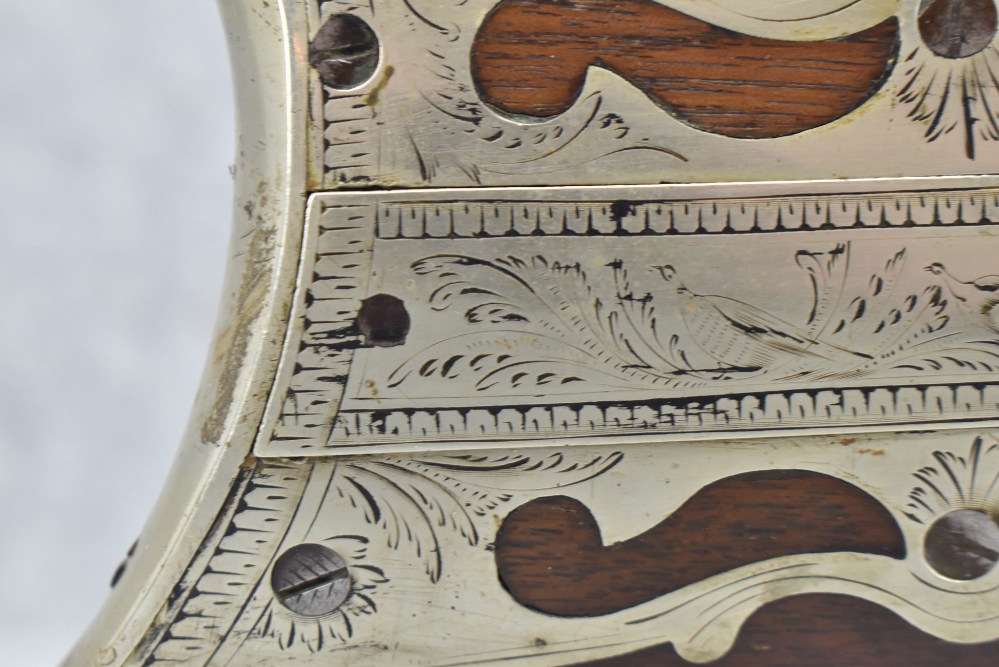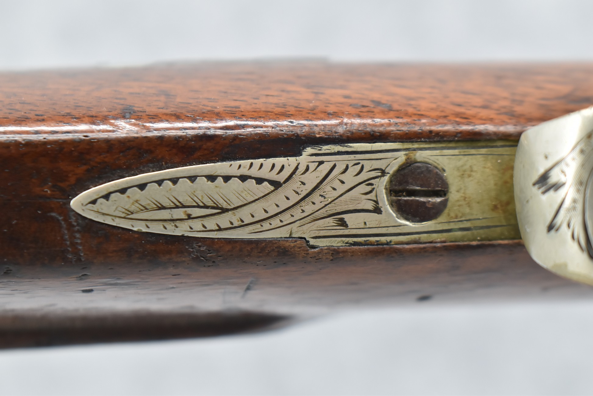 140. Signed E. Hutching’s & Co. Agent’s Baltimore – Black Powder Double Barrel Rifle – Left Barrel is 52 Cal. Smoothbore & Right Barrel is 44 Cal. Rifled – 32 ½” Barrels w/German Silver Front Sights & Rear Barrel Sight – w/Straight Grip Half Stock w/Engraved Ornate Silver 4pc. Patch Box & Silver Engraved Trigger Guard – w/Double Dolphin Head Hammers & Double Triggers – w/Ram Rod – Overall a Very High Quality Unique Gun!