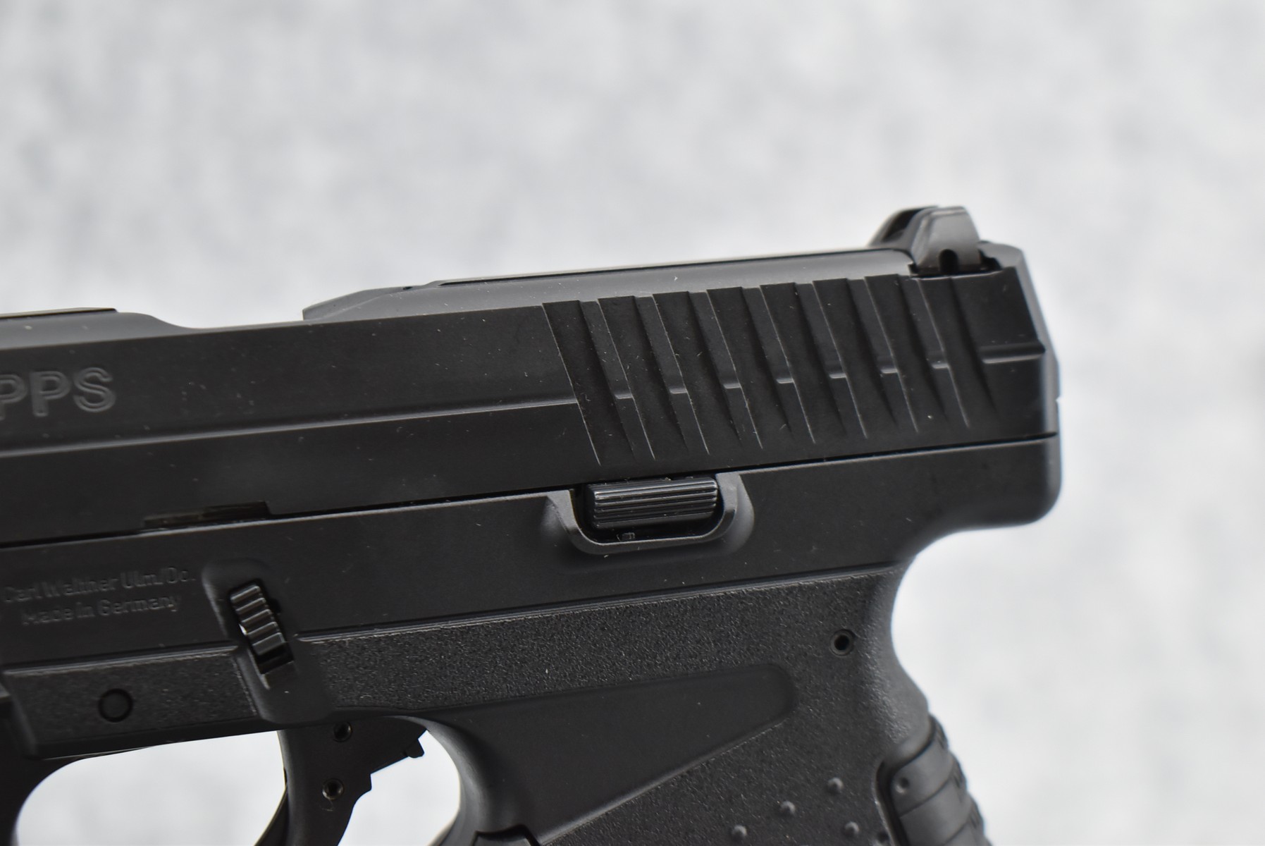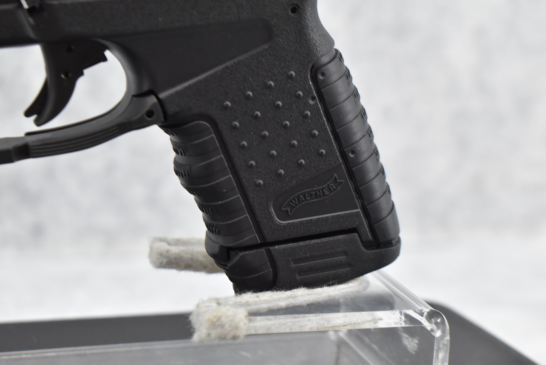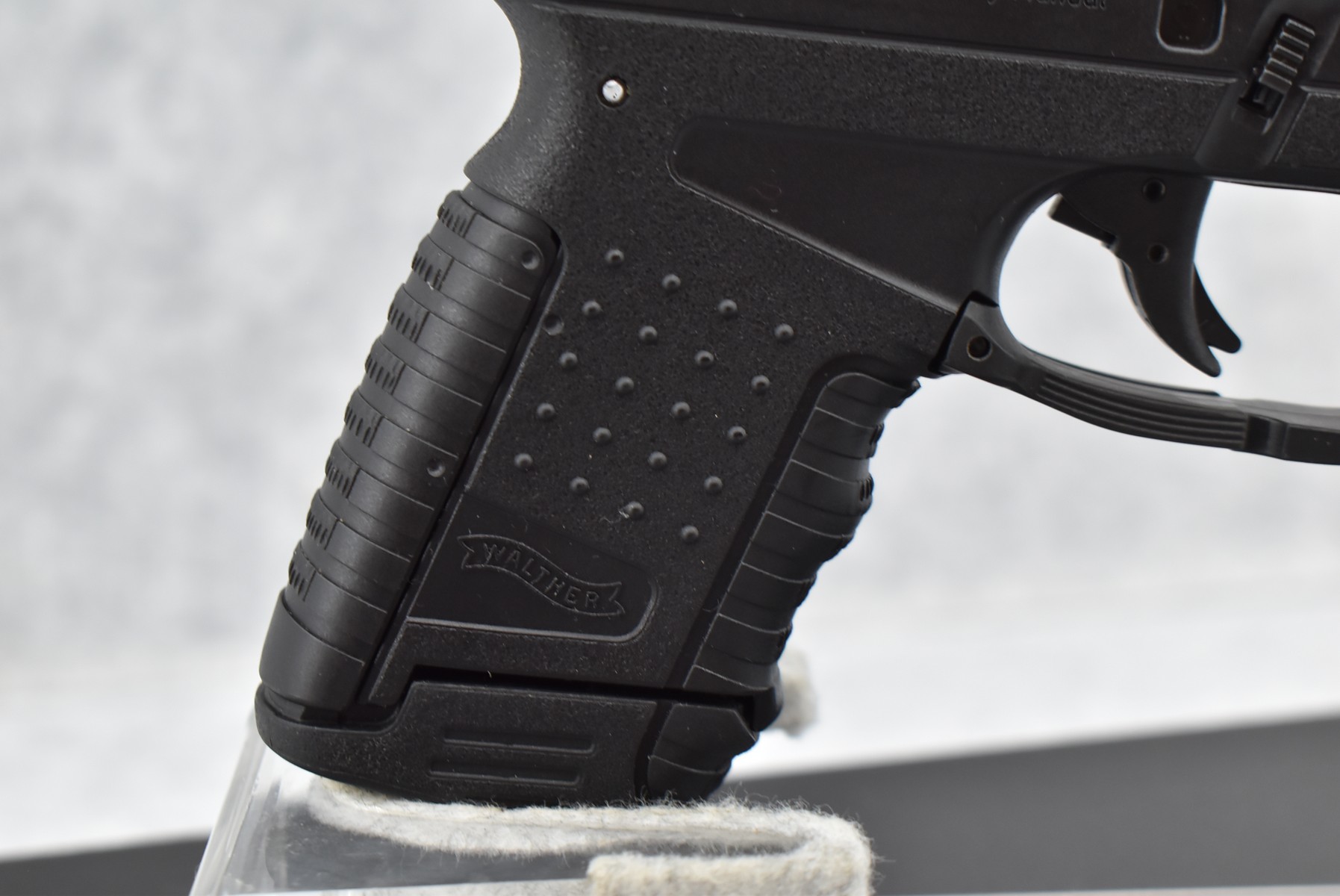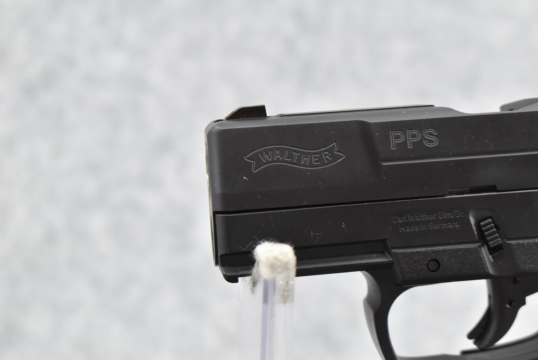 142R. Walther – Mod. PPS (Police Pistol Slim) – 9mm Cal. Semi-Auto Pistol – w/3.2” Barrel w/3-Dot White Sights – Matte Black Finish – w/Polymer Frame – w/Adj. Grip Straps – w/Paddle Mag Release – w/2 Mags – Unfired w/Factory Box, Manual