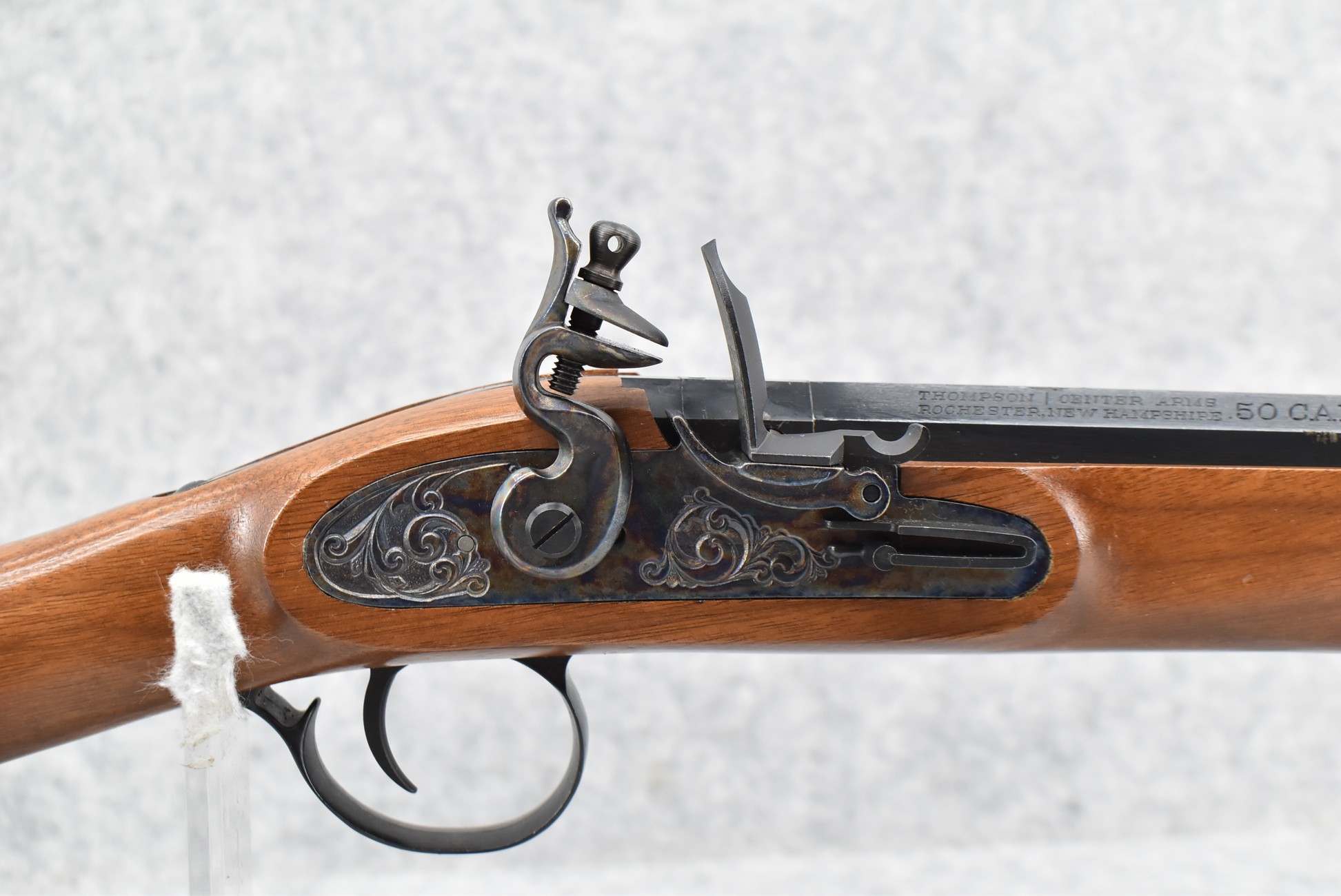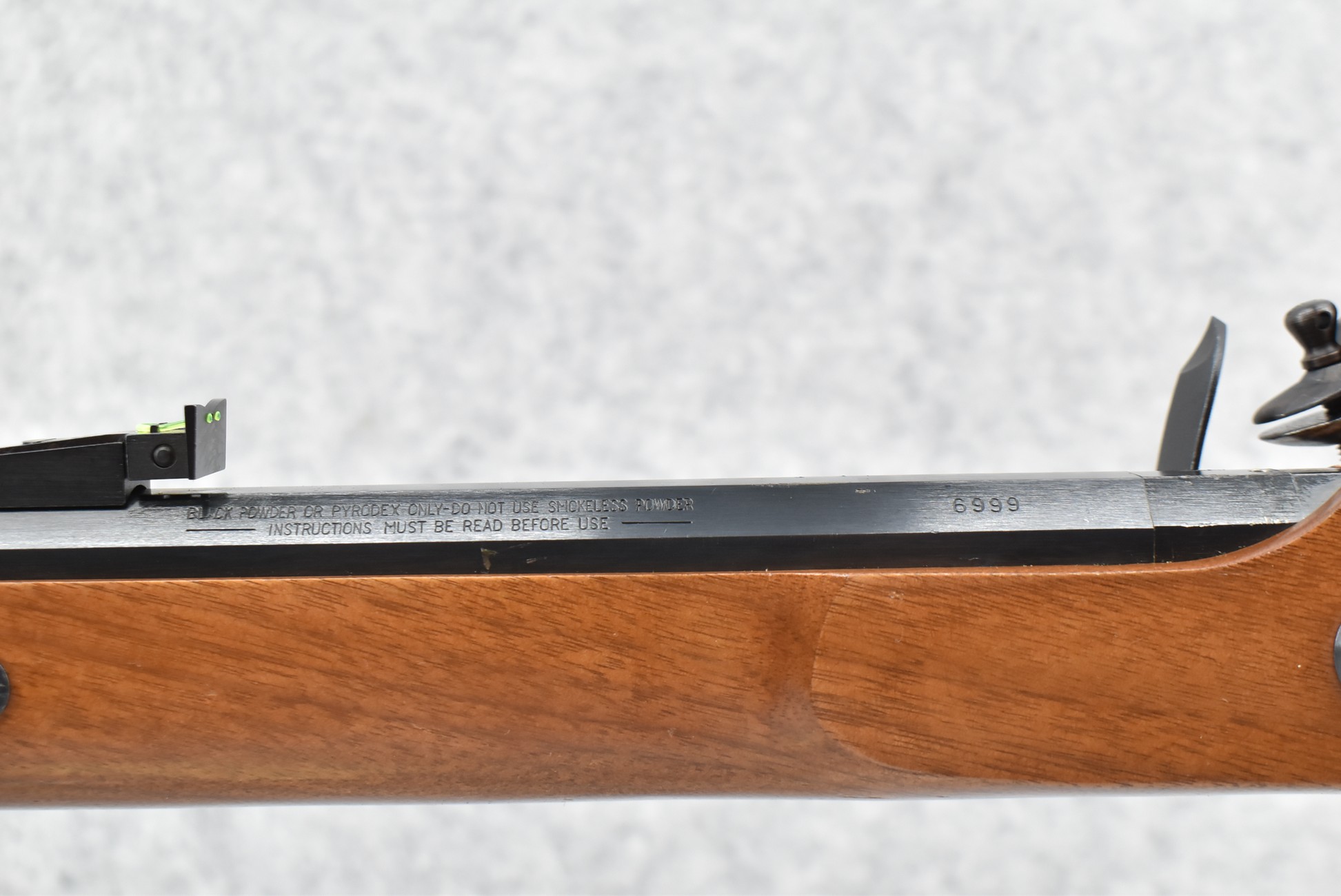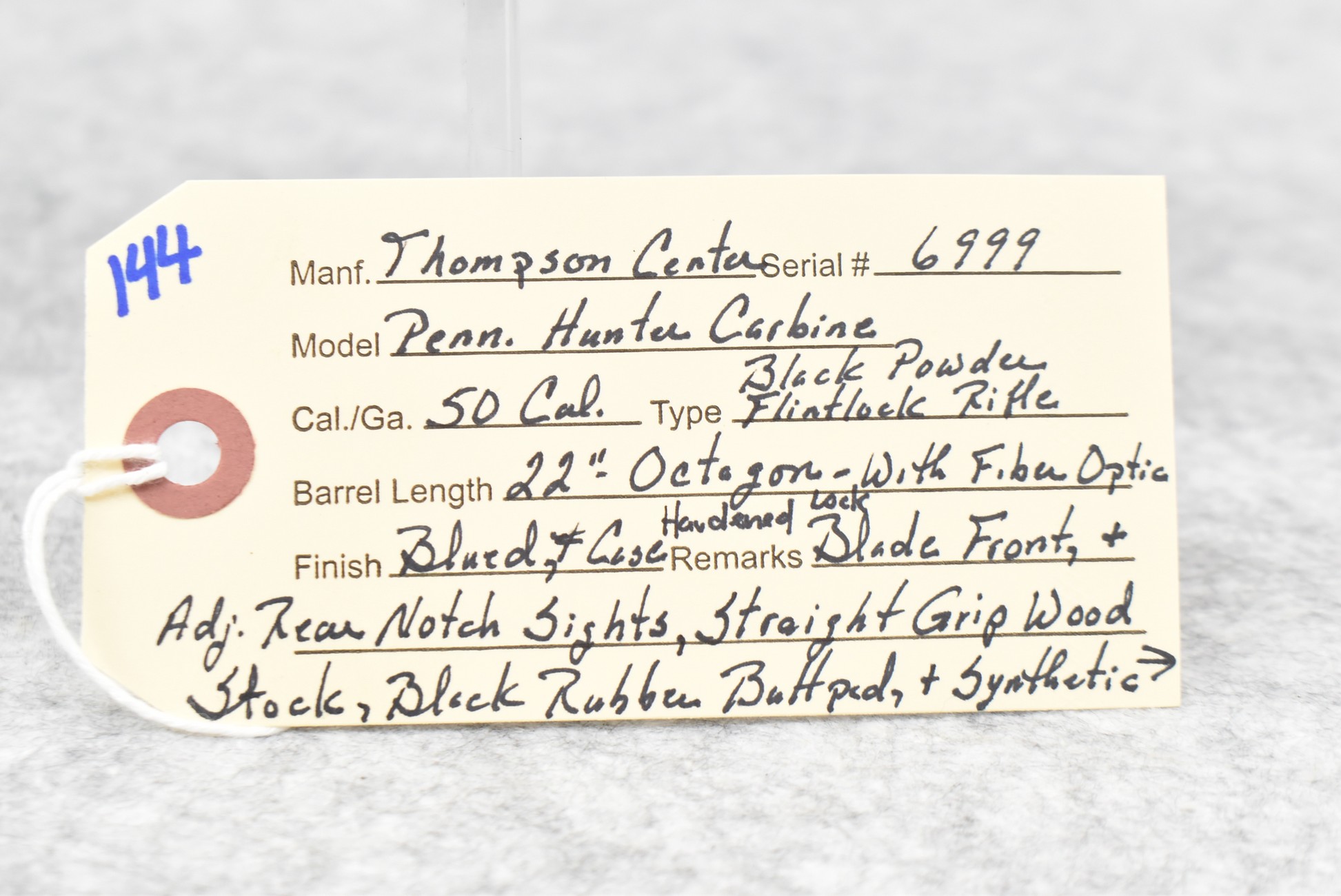 144. Thompson Center – Mod. Penn. Hunter Carbine – 50 Cal. Black Powder Flintlock Rifle – w/22” Octagon Barrel w/Fiber Optic Blade Front & Adj. Rear Notch Sights – Blued Finish w/Case Hardened Lock – w/Straight Grip Wood Stock w/Factory Butt Pad