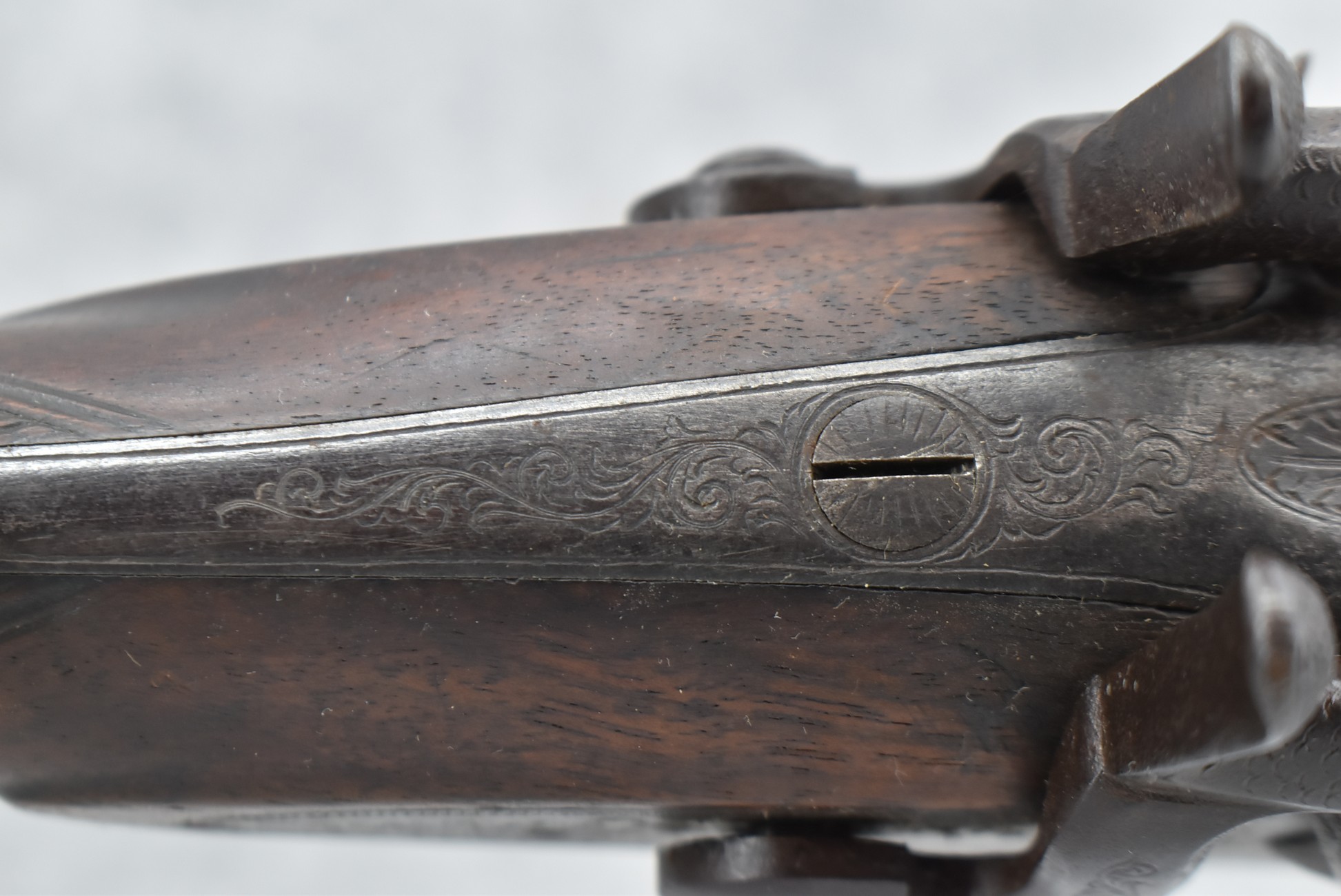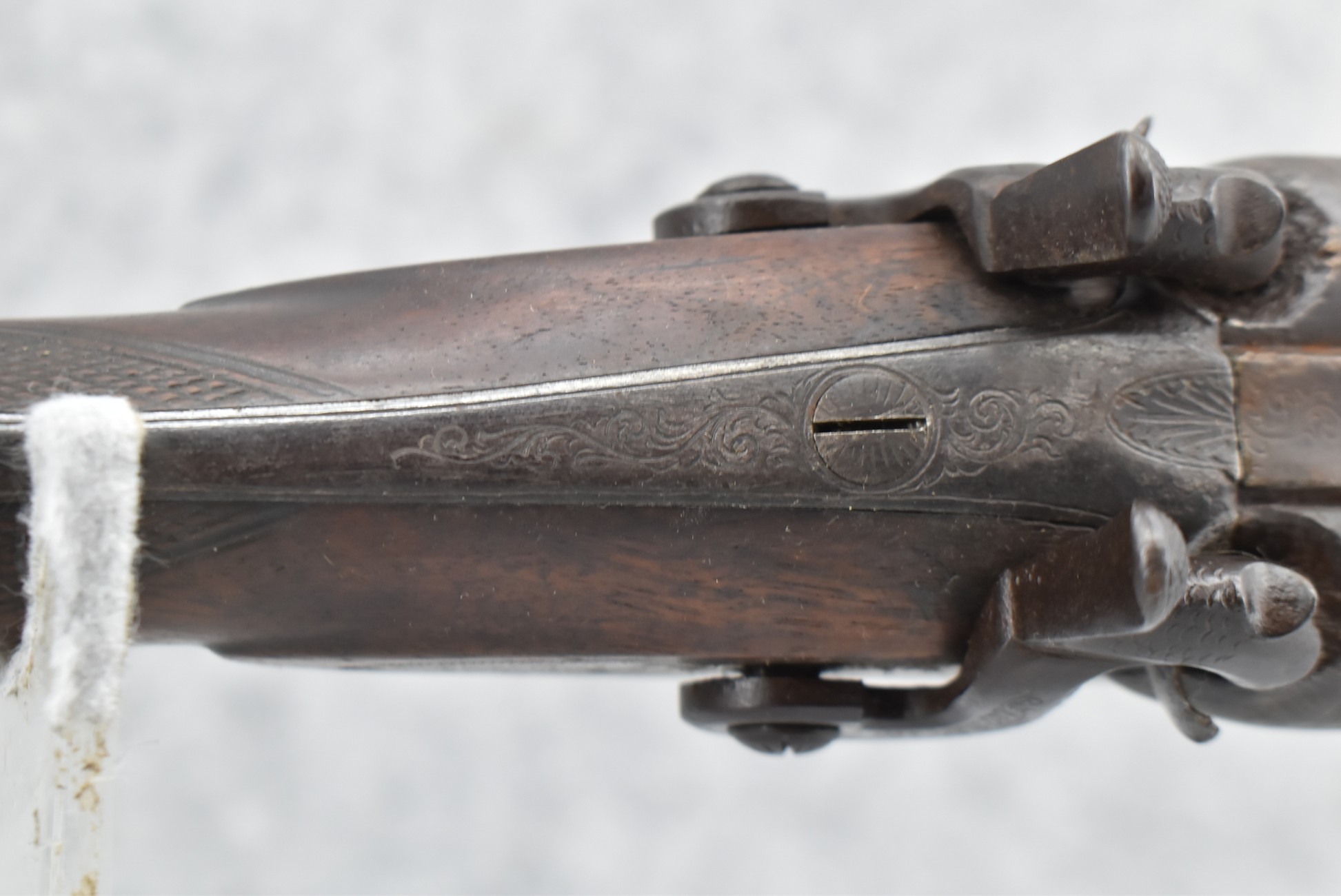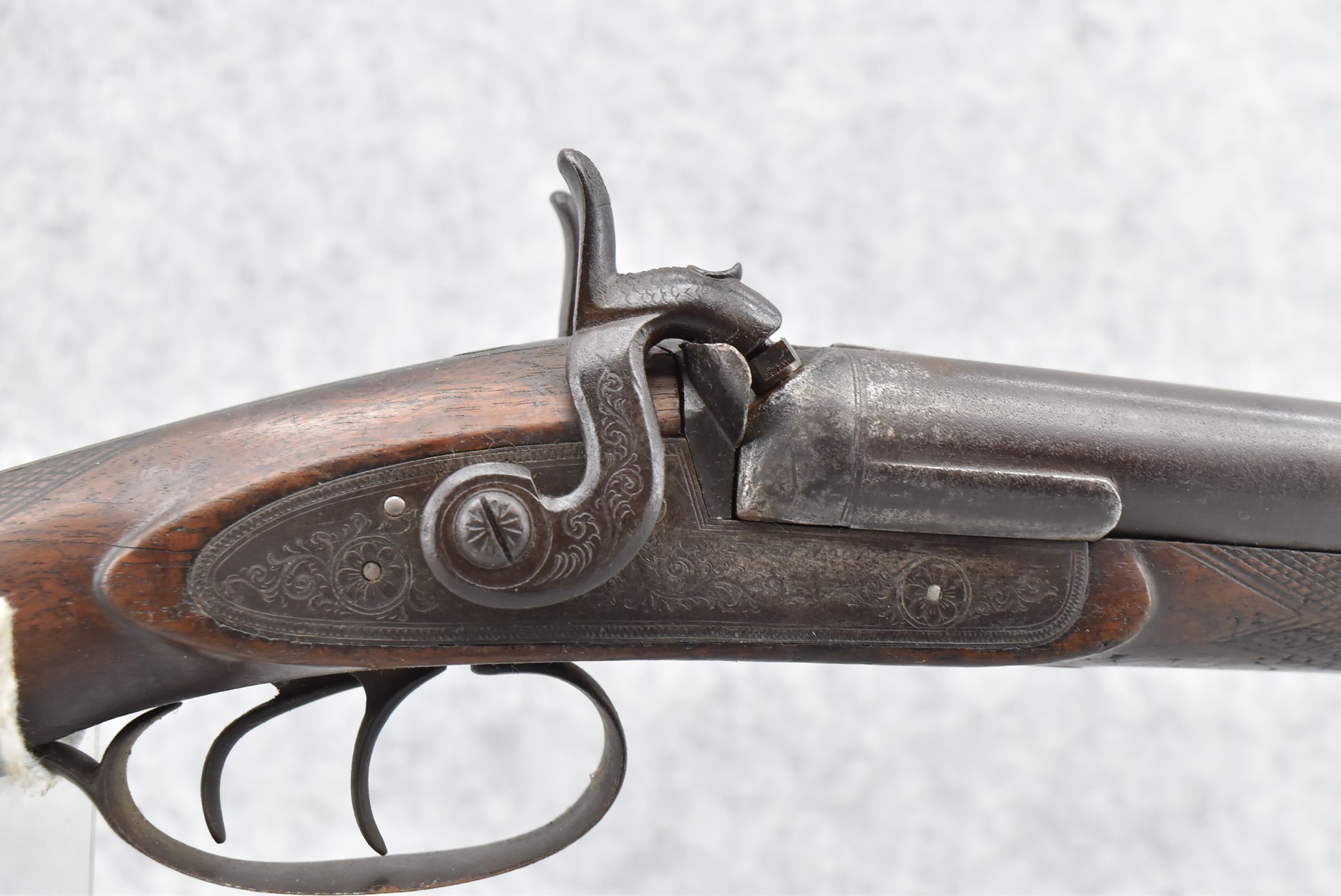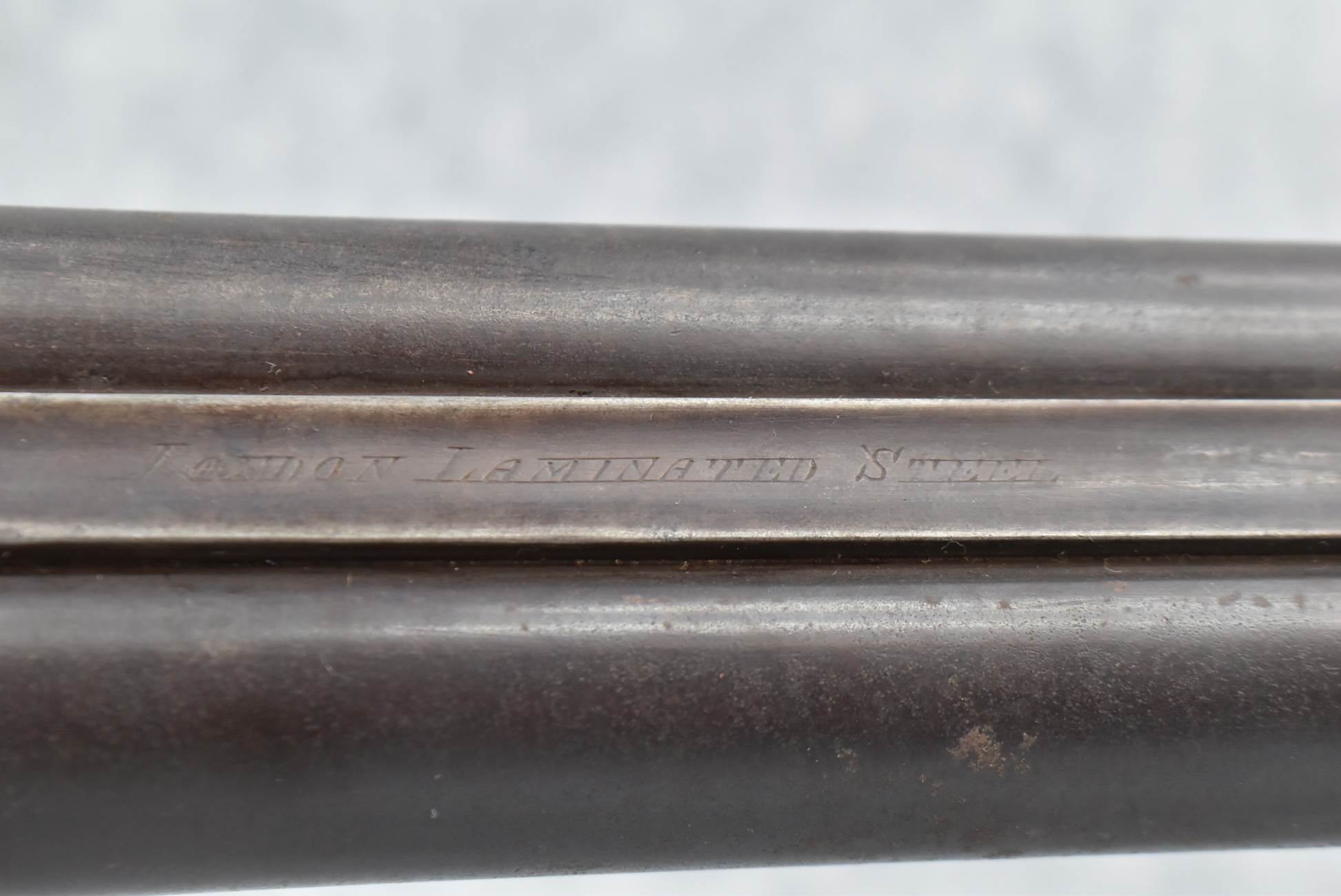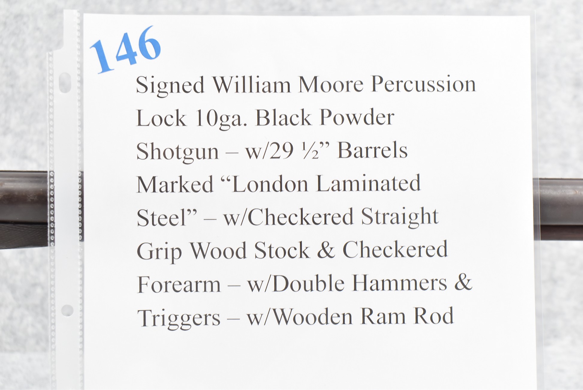 146. Signed William Moore Percussion Lock 10ga. Black Powder Shotgun – w/29 ½” Barrels Marked “London Laminated Steel” – w/Checkered Straight Grip Wood Stock & Checkered Forearm – w/Double Hammers & Triggers – w/Wooden Ram Rod