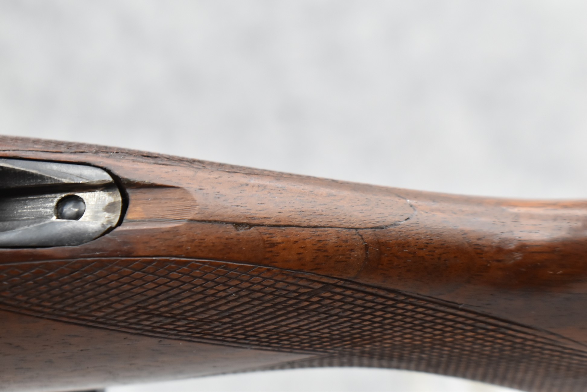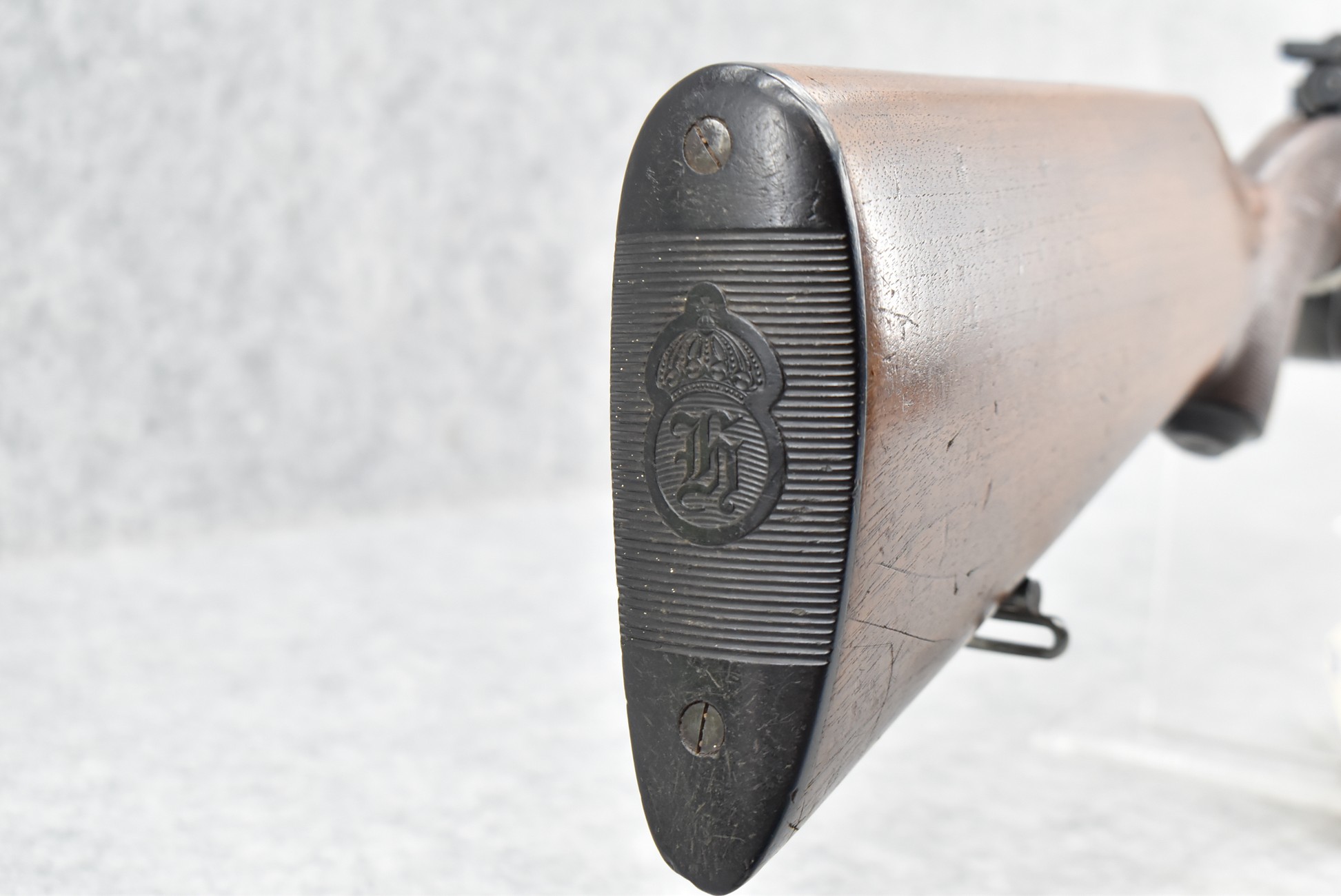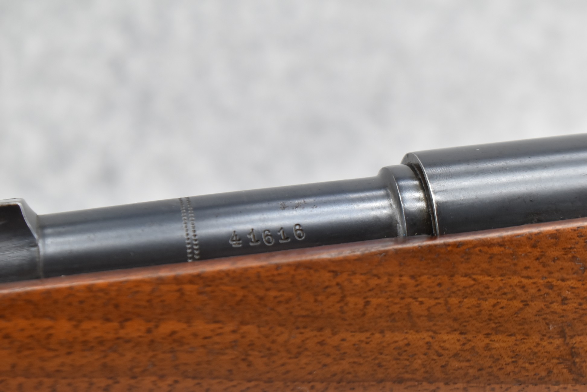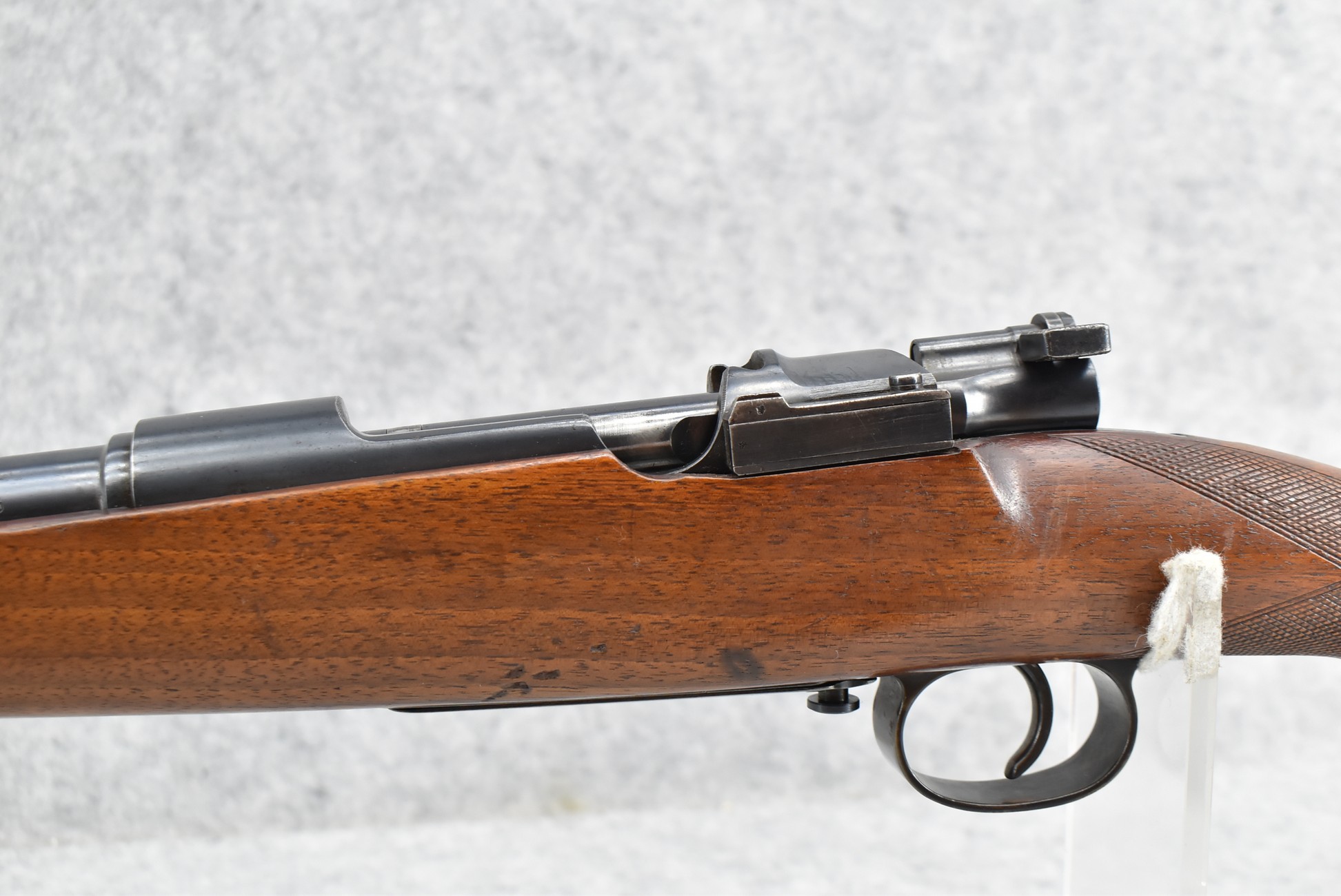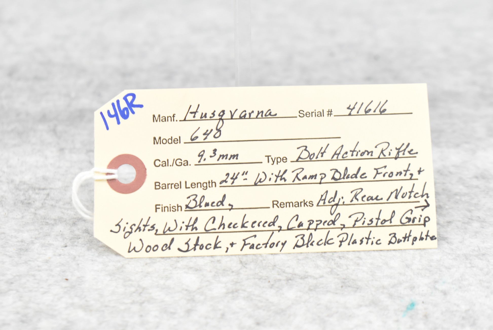 146R. Husqvarna – Mod. 640 – 9.3mm Cal. Bolt Action Rifle – w/24” Barrel w/Ramp Blade Front & Adj. Rear Notch Sights – Blued Finish – w/Checkered Capped Pistol Grip Wood Stock w/Factory Butt Plate – Note: Repair at Pistol Grip