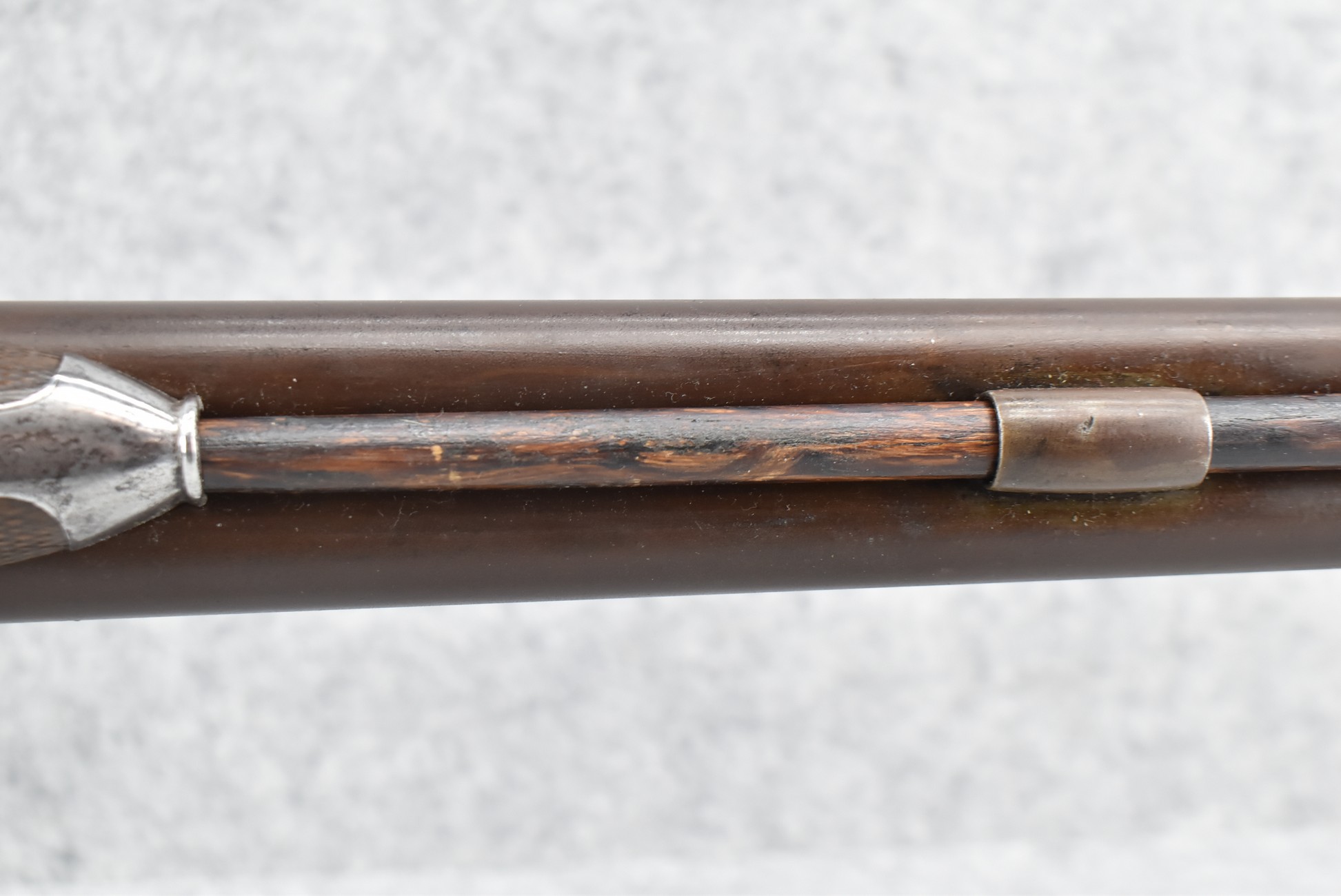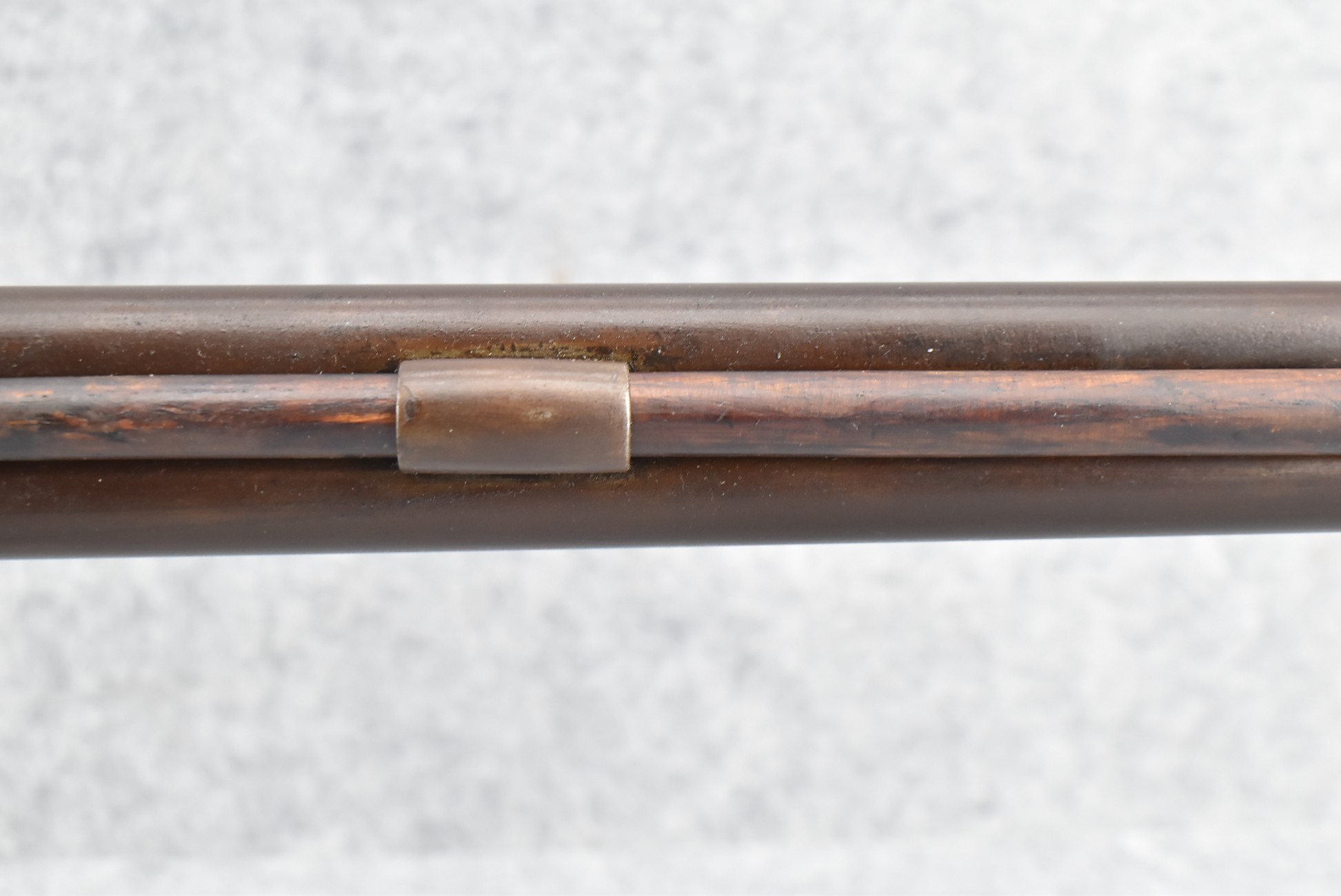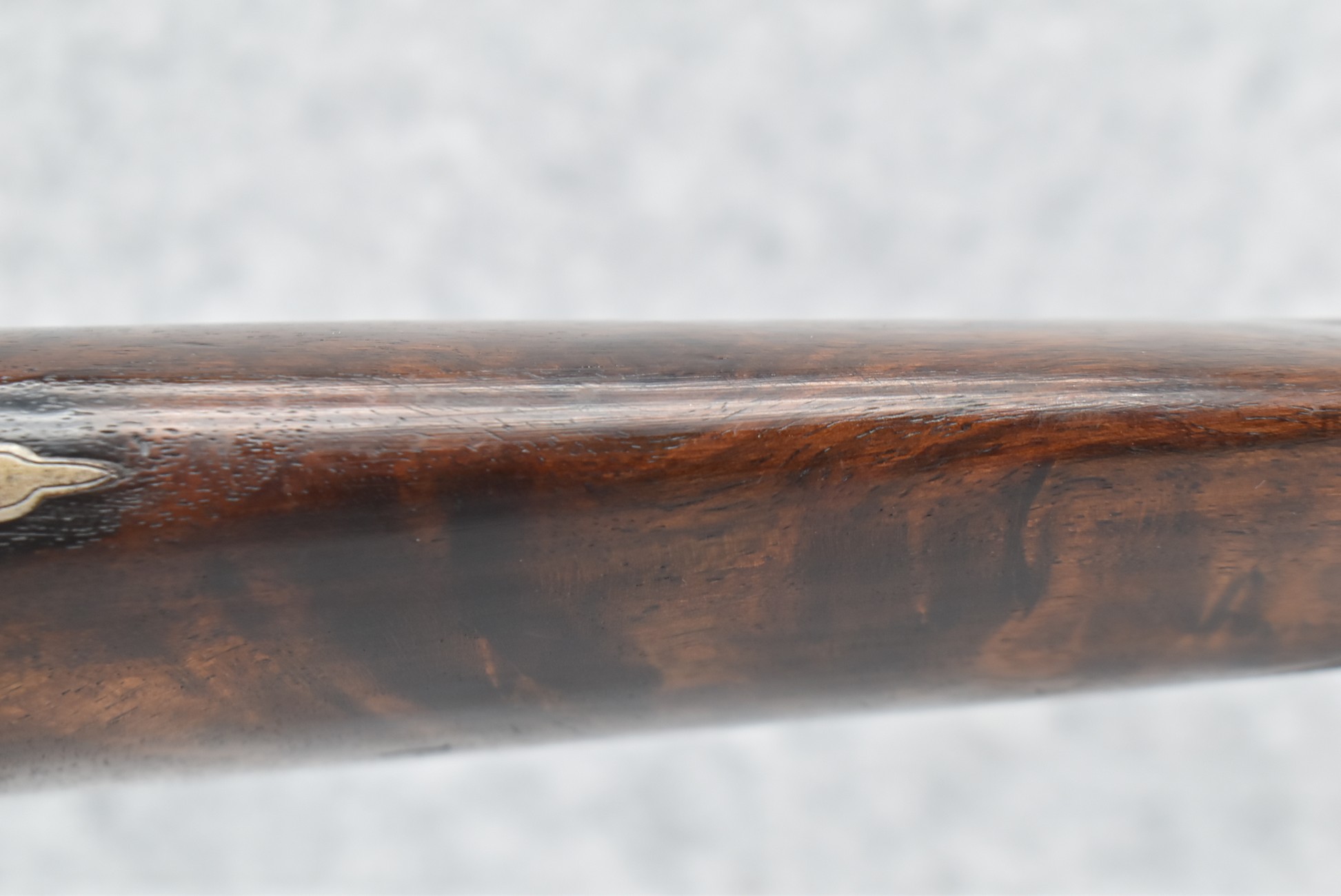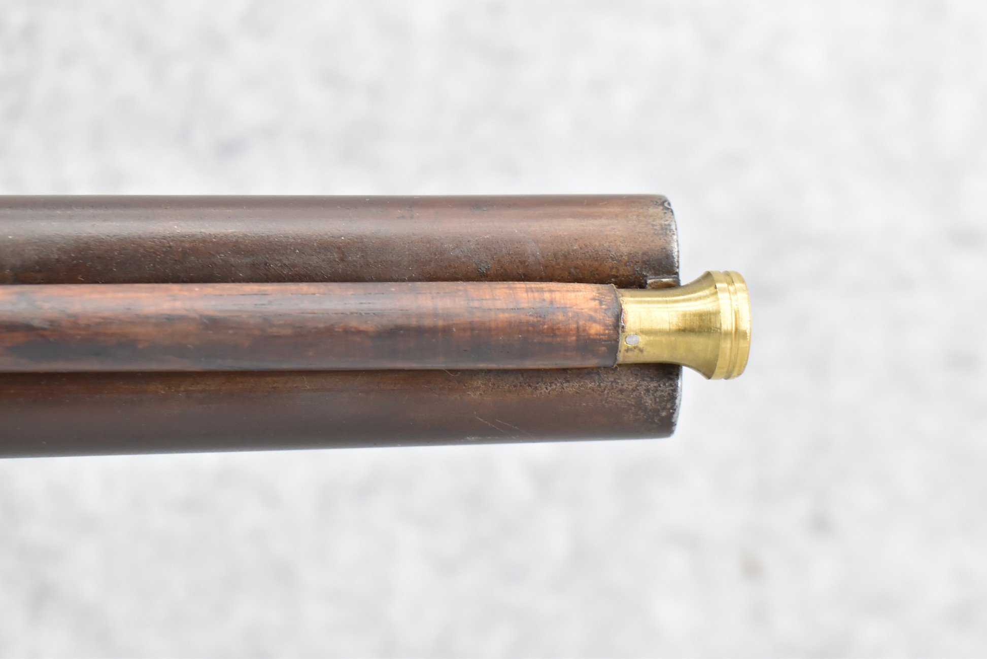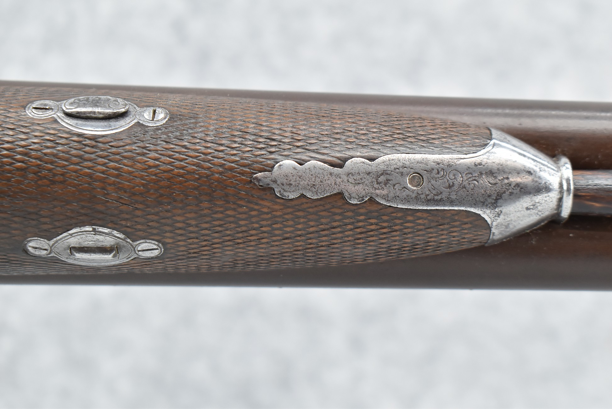 147. 12ga. Black Powder Double Barrel Shotgun – w/30” Laminated Steel Barrels – w/Checkered Straight Grip Wood Stock w/Metal Shotgun Butt Plate – Metal is Lightly Engraved as Well as the Hammers – w/Double Hammers & Triggers