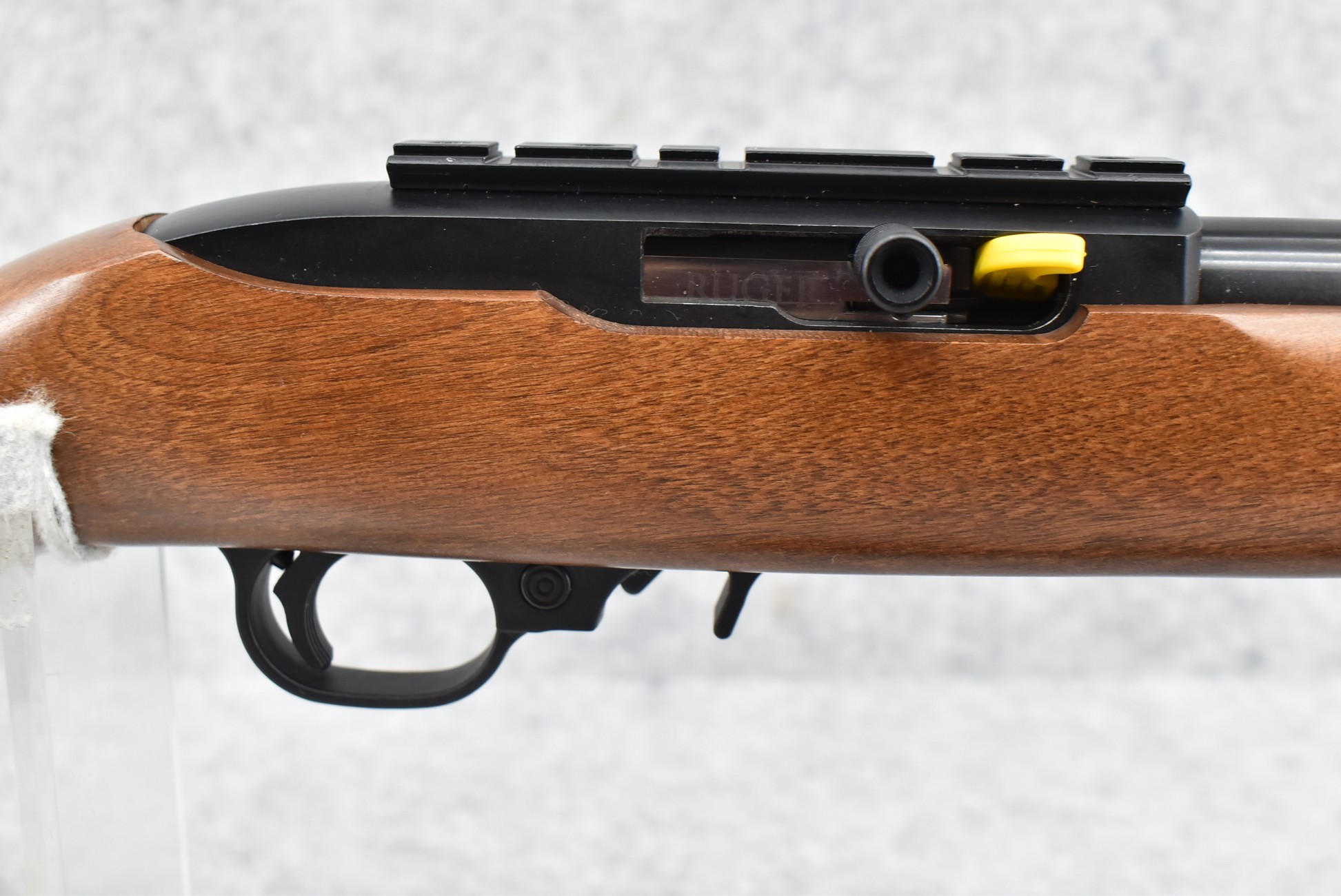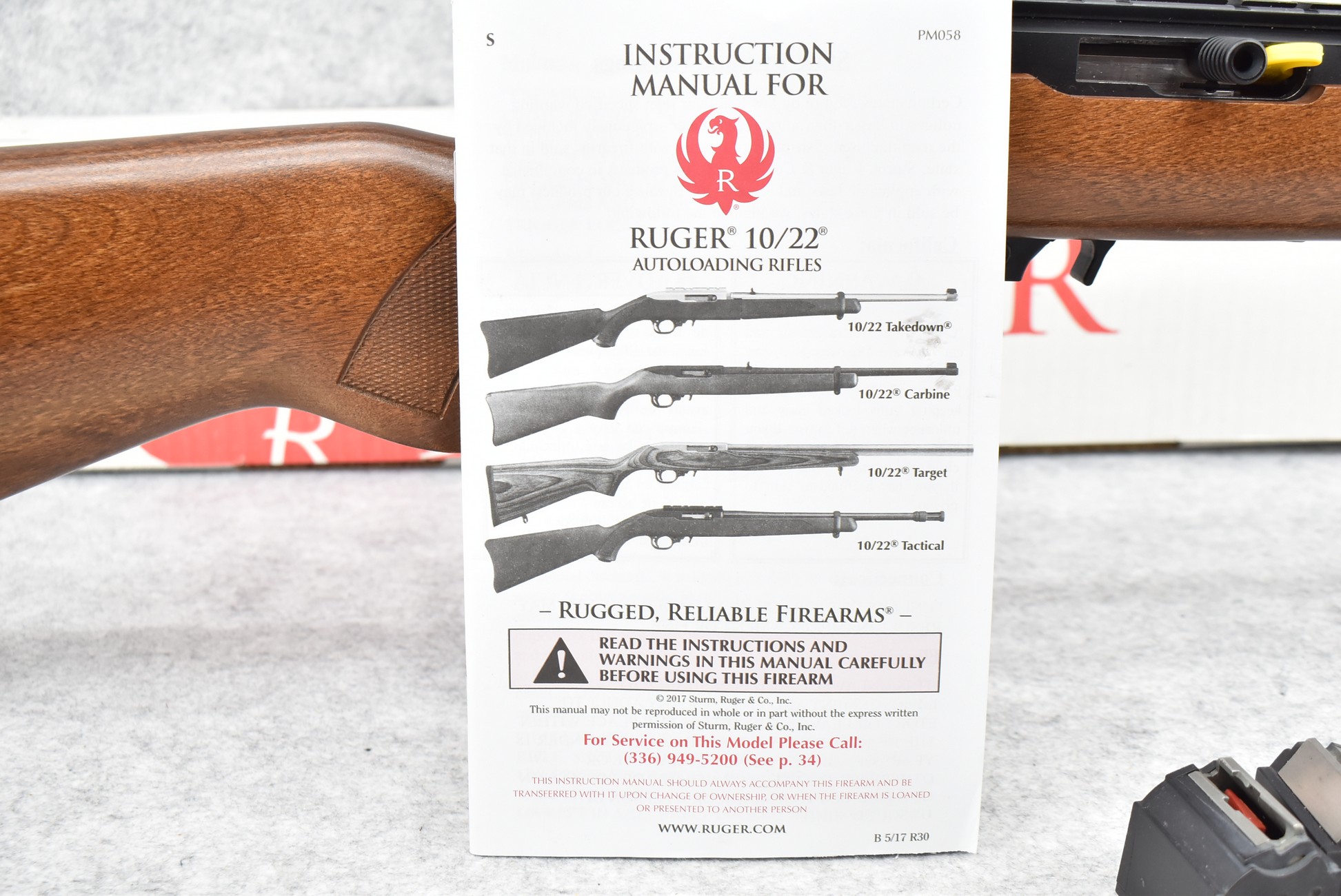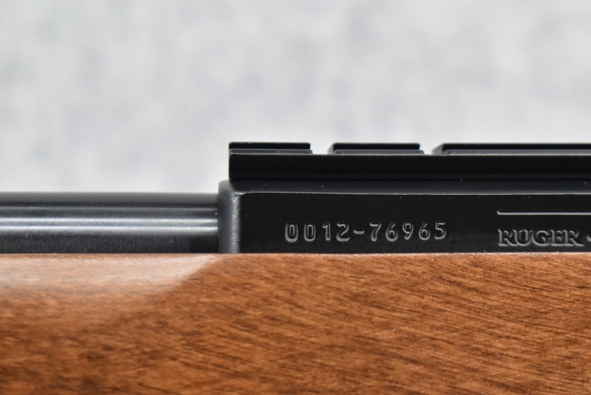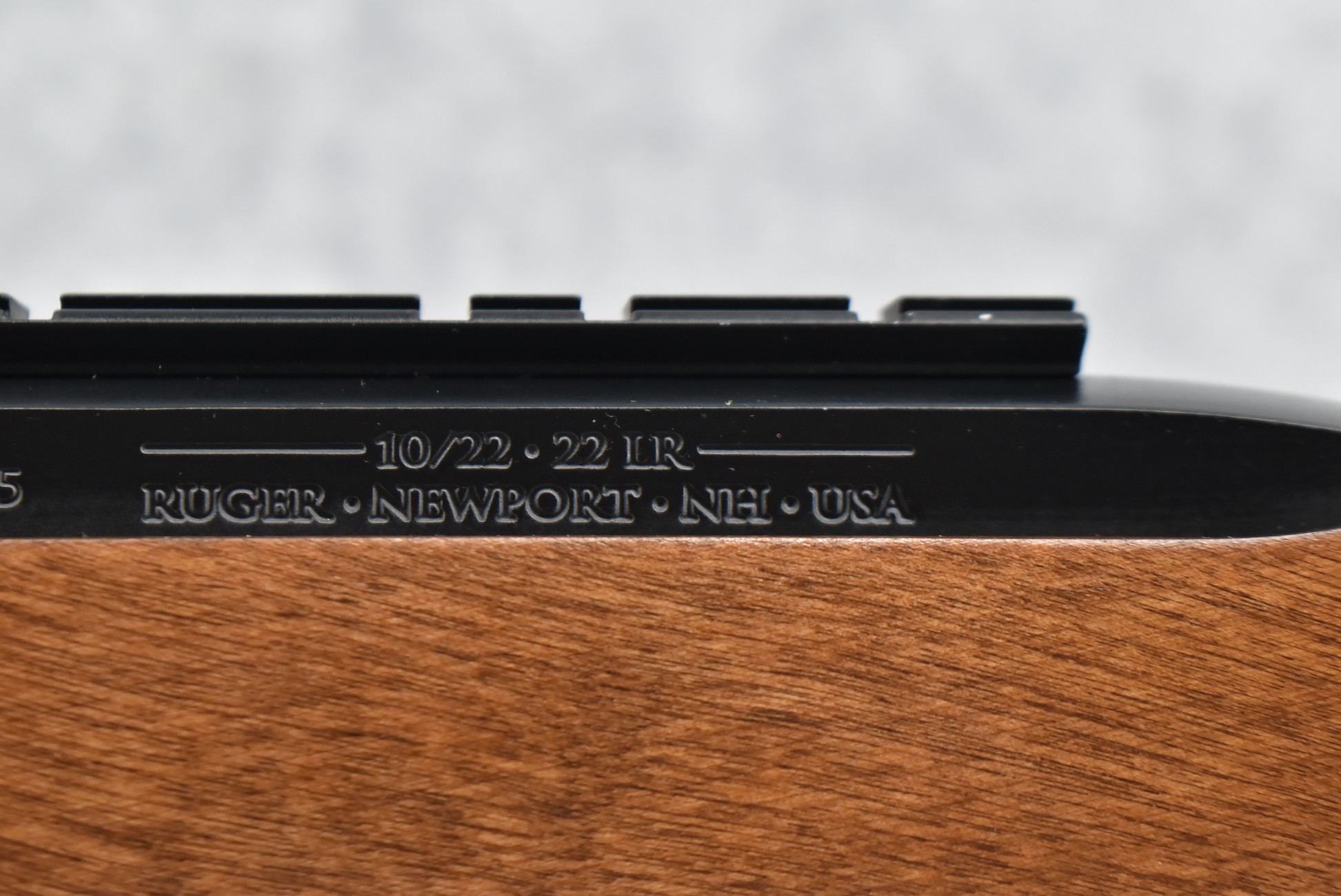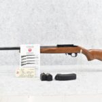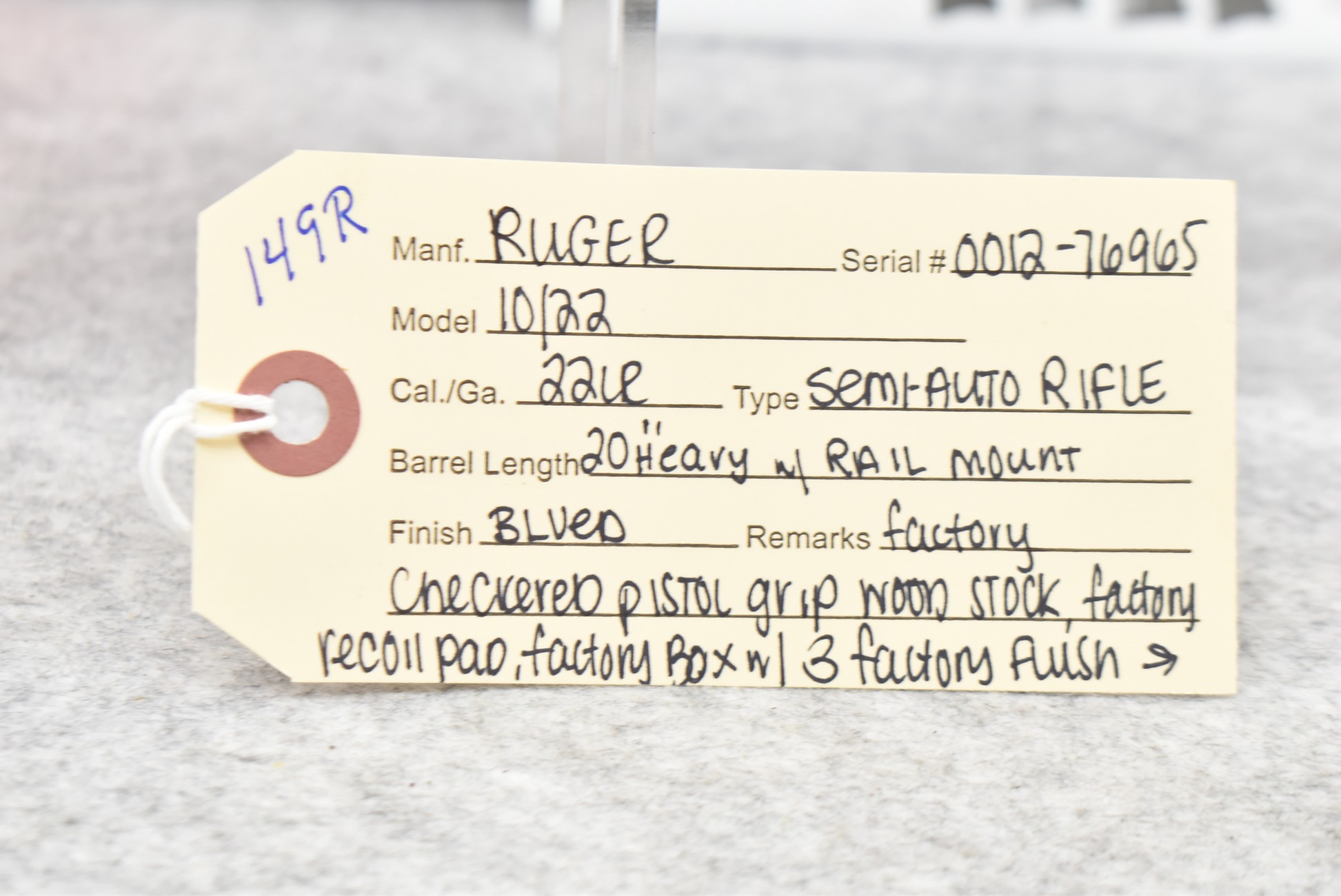 149R. Ruger – Mod. 10/22 – 22LR Cal. Semi-Auto Rifle – w/20” Heavy Barrel w/Rail Mount – Blued Finish – w/Factory Checkered Pistol Grip Wood Stock w/Factory Recoil Pad – w/Factory Box, 3 Factory Flush Mags, 1 Extended Mag