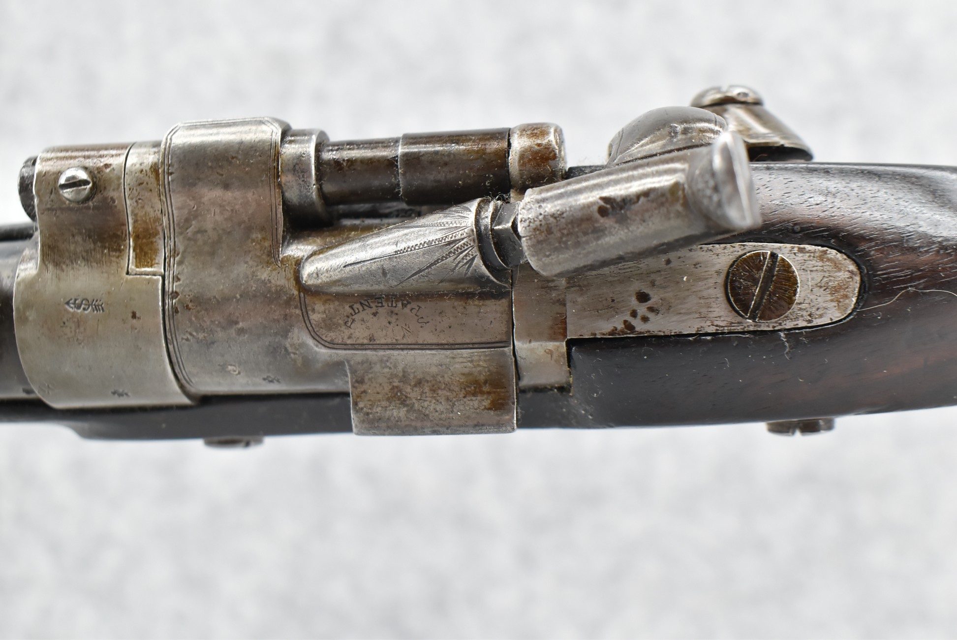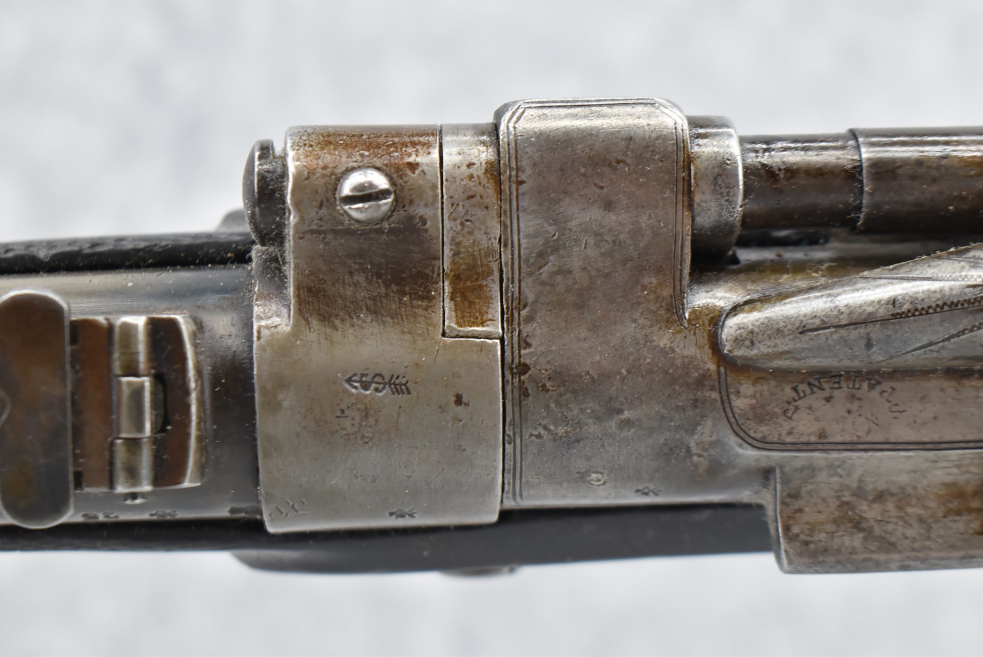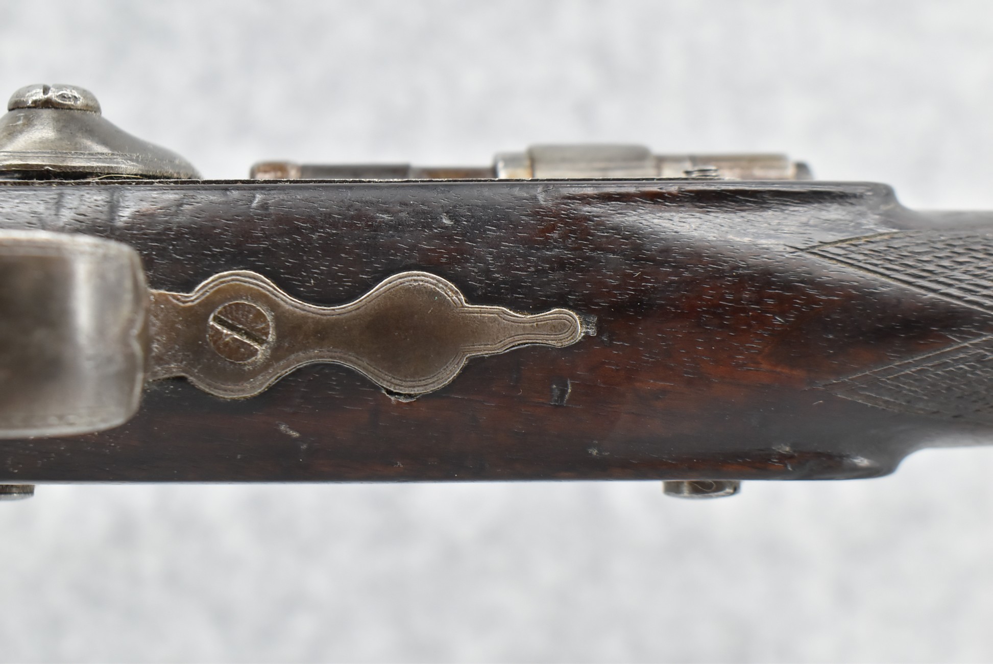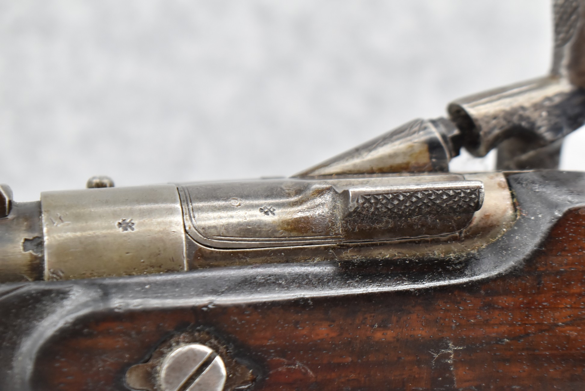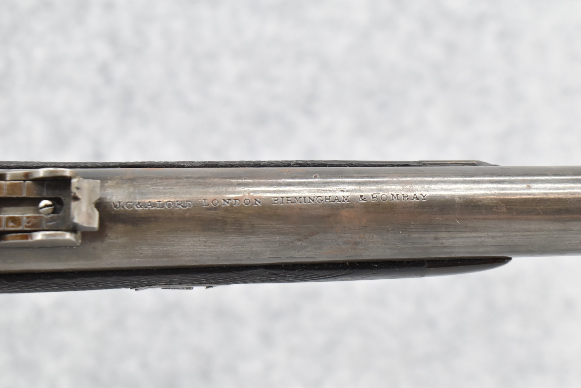 150. British Snider Cavalry Carbine by J.C. & A. Lord – 577 Cal. – w/22” Barrel Marked “J.C. & A. Lord, Birmingham & Bombay” w/Front & Adj. Ladder Rear Barrel Sights – w/Checkered Straight Grip Half Stock w/Checkered Forearm as Well w/Steel Furniture & Sling Swivels – Breech Lock Marked “Snider Patent” – Gun Has a Lot of Proof Marks, Most Likely for the “Royal Body Guard” – w/Ram Rod – Circa 1860s