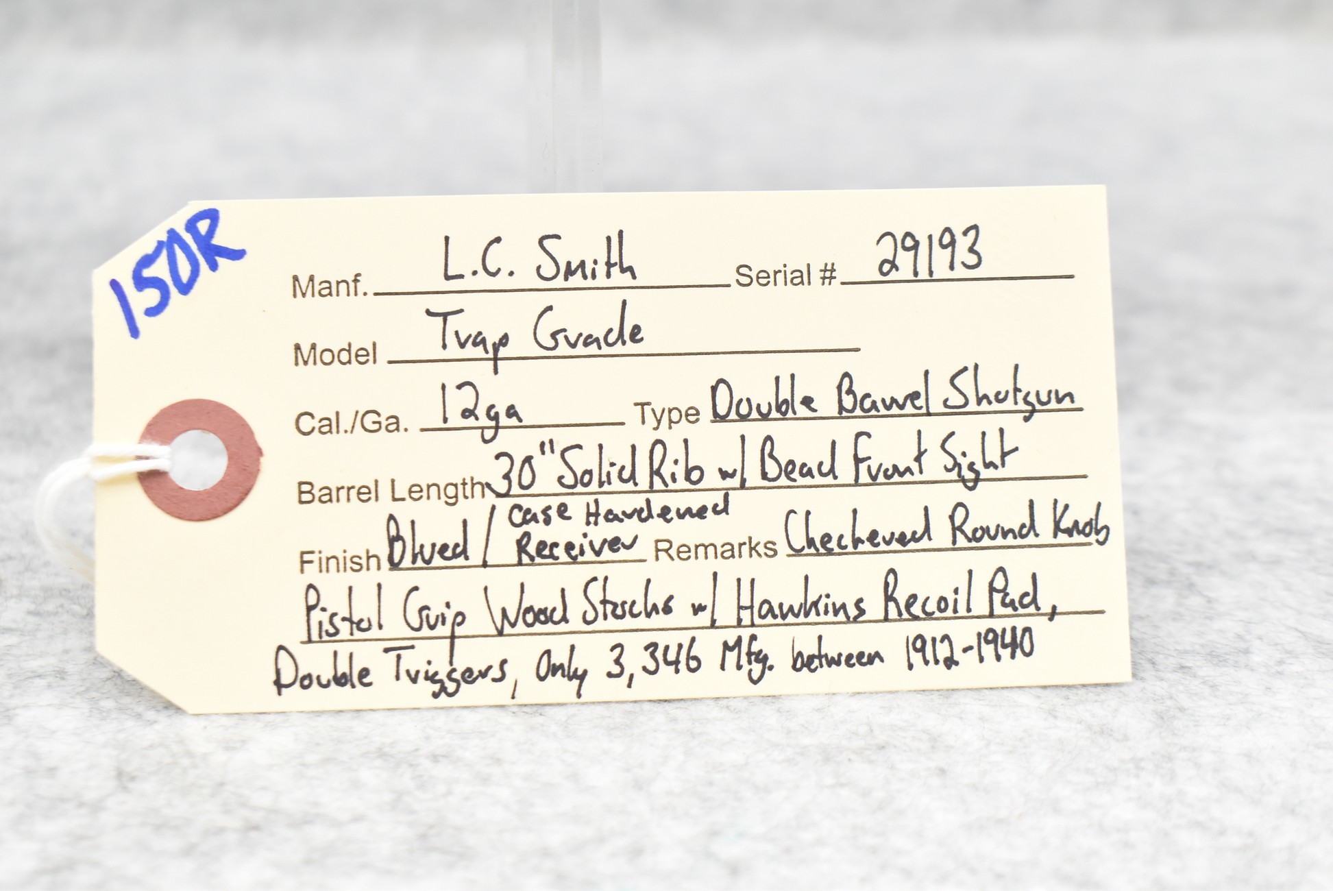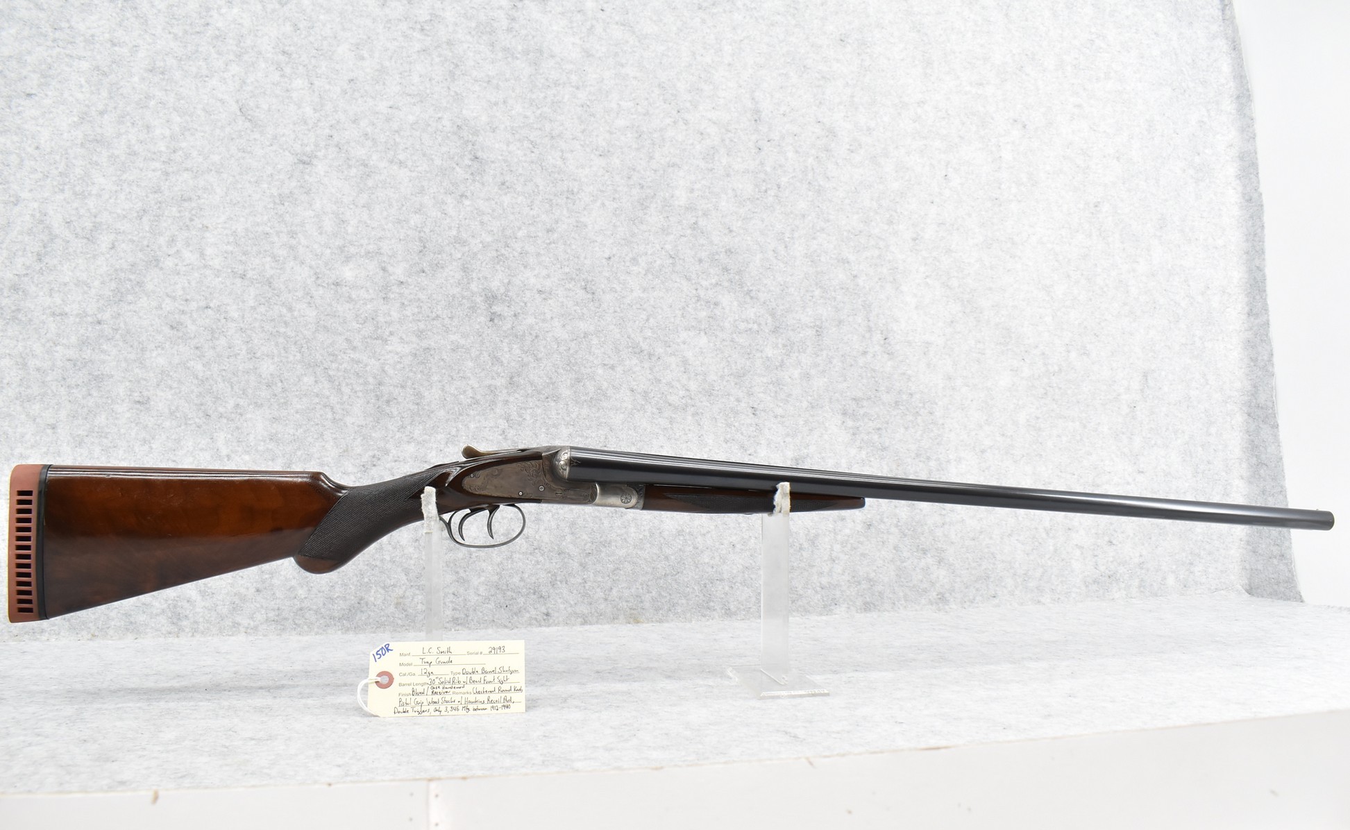 150R. L.C. Smith – Mod. Trap Grade Featherweight – 12ga. Double Barrel Shotgun – w/30” Solid Rib Barrel w/Bead Front Sight – Blued Finish w/Case Hardened Receiver – w/Checkered Round Knob Pistol Grip Wood Stocks w/Hawkens Period Recoil Pad – w/Double Triggers – Only 3,346 Trap Grades Mfg. Between 1912-1940