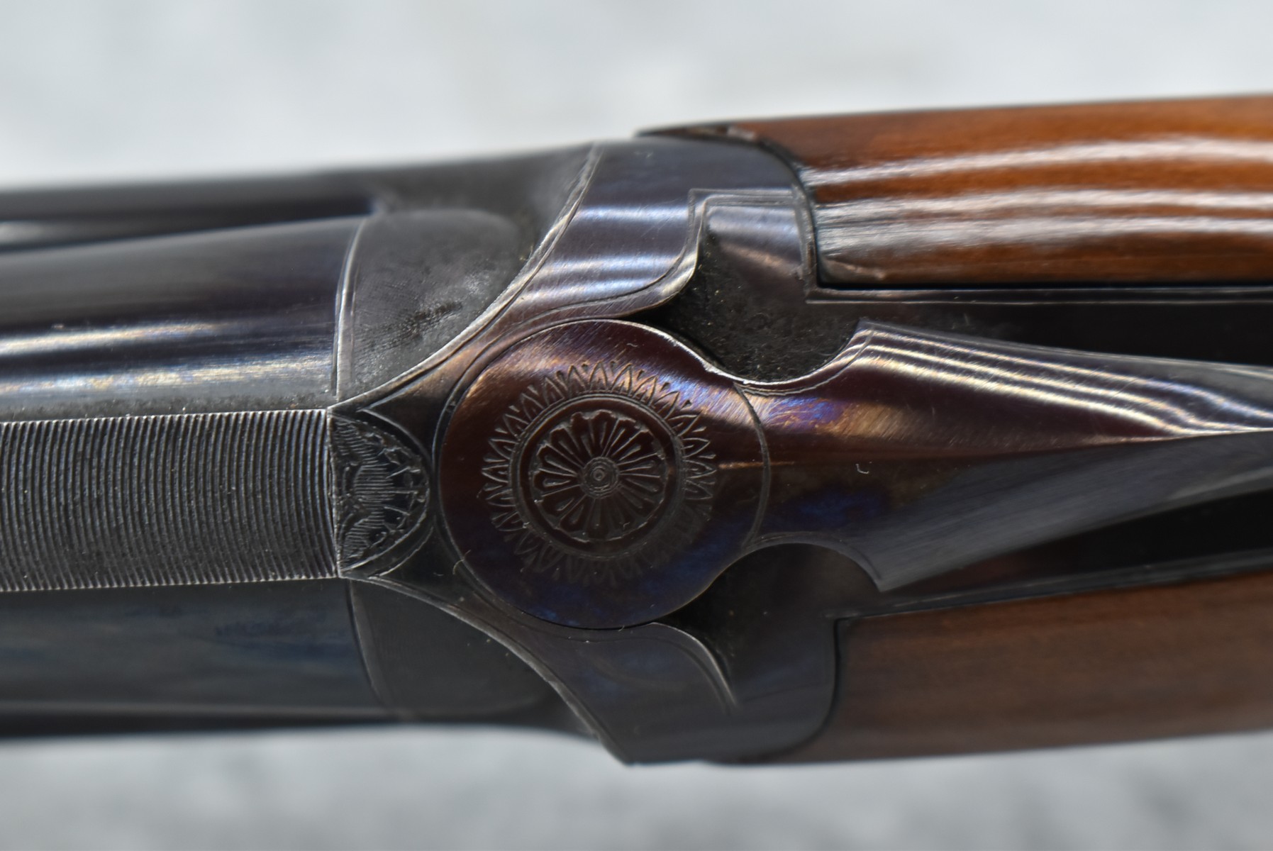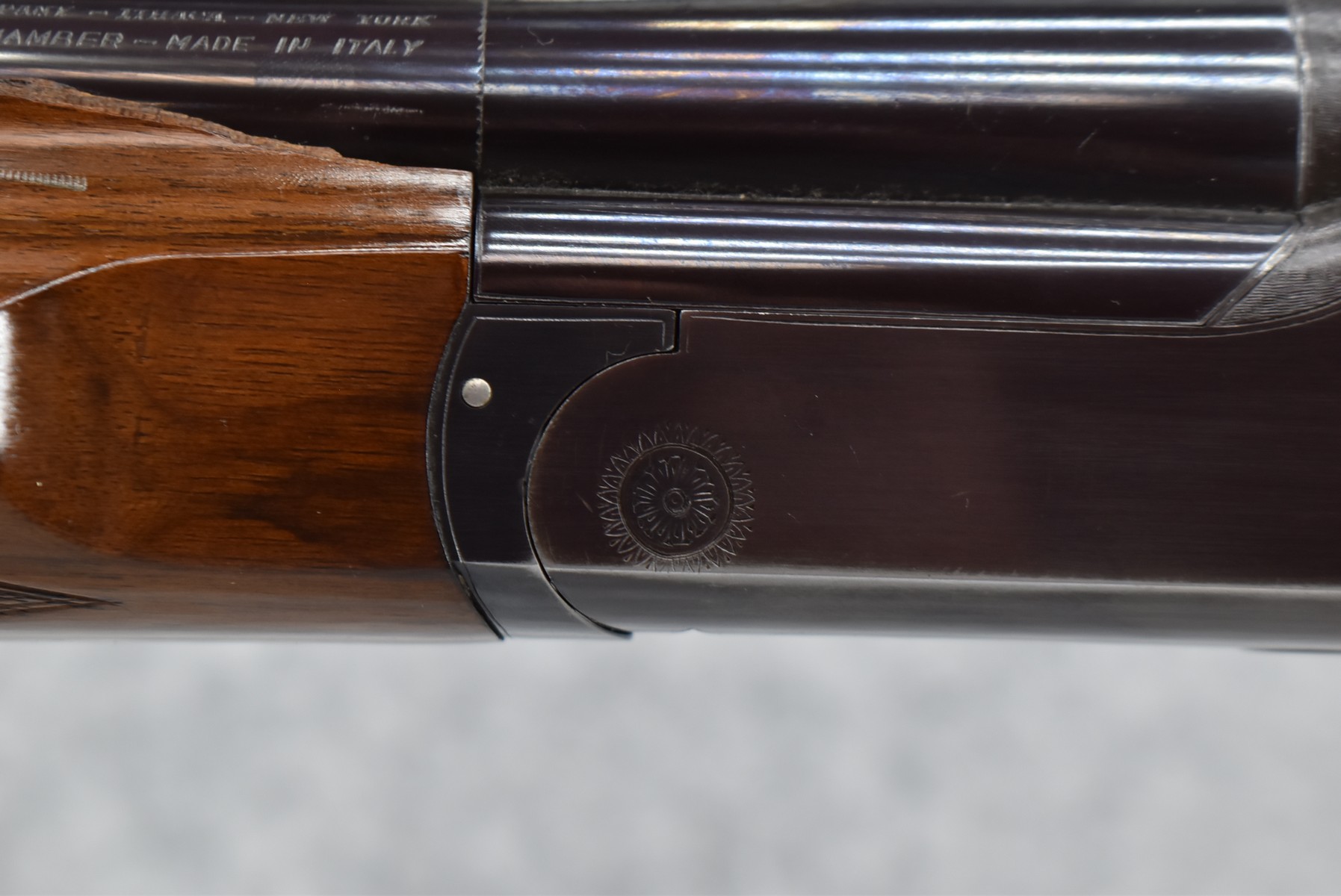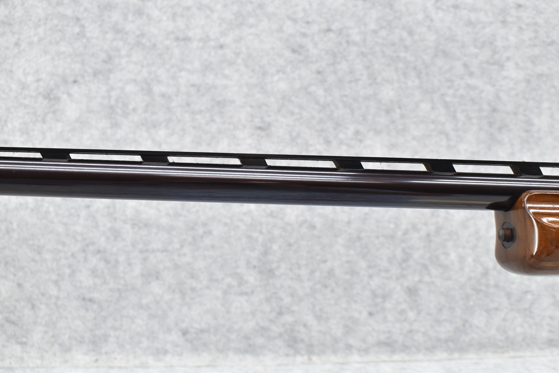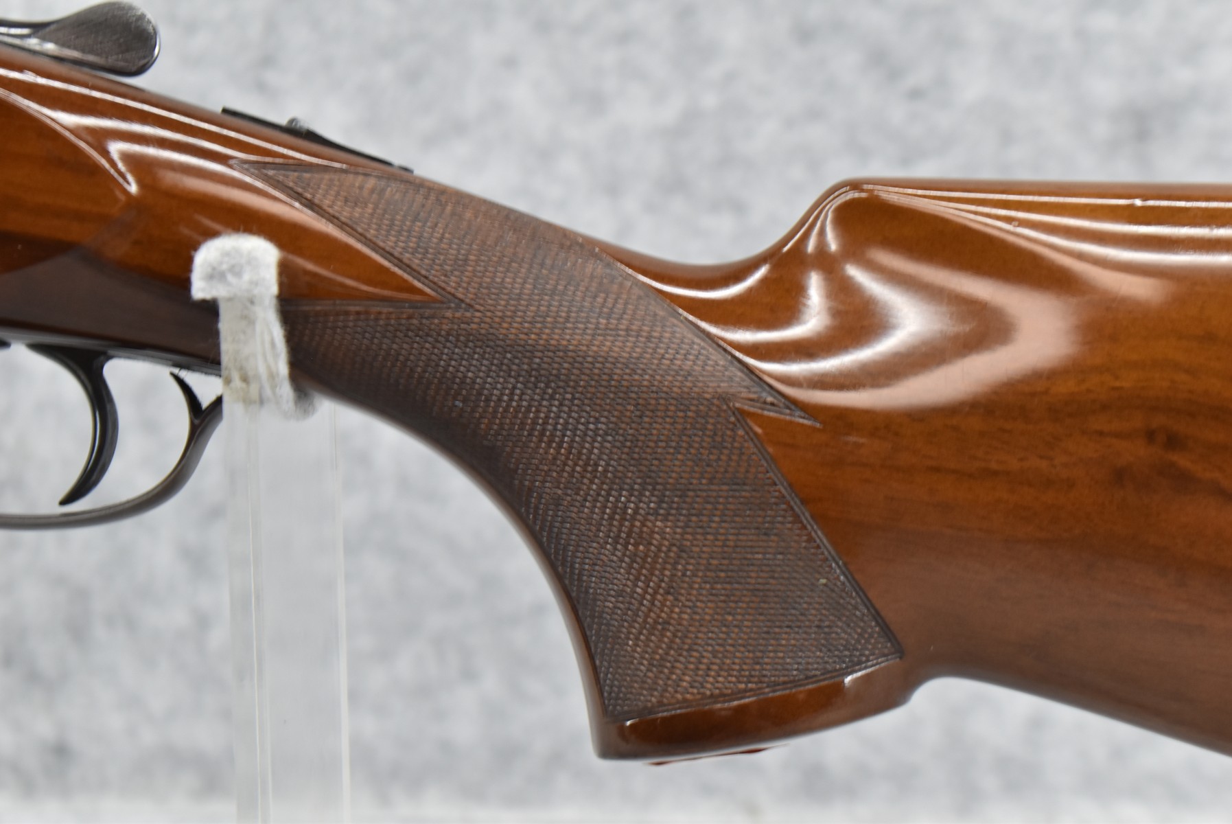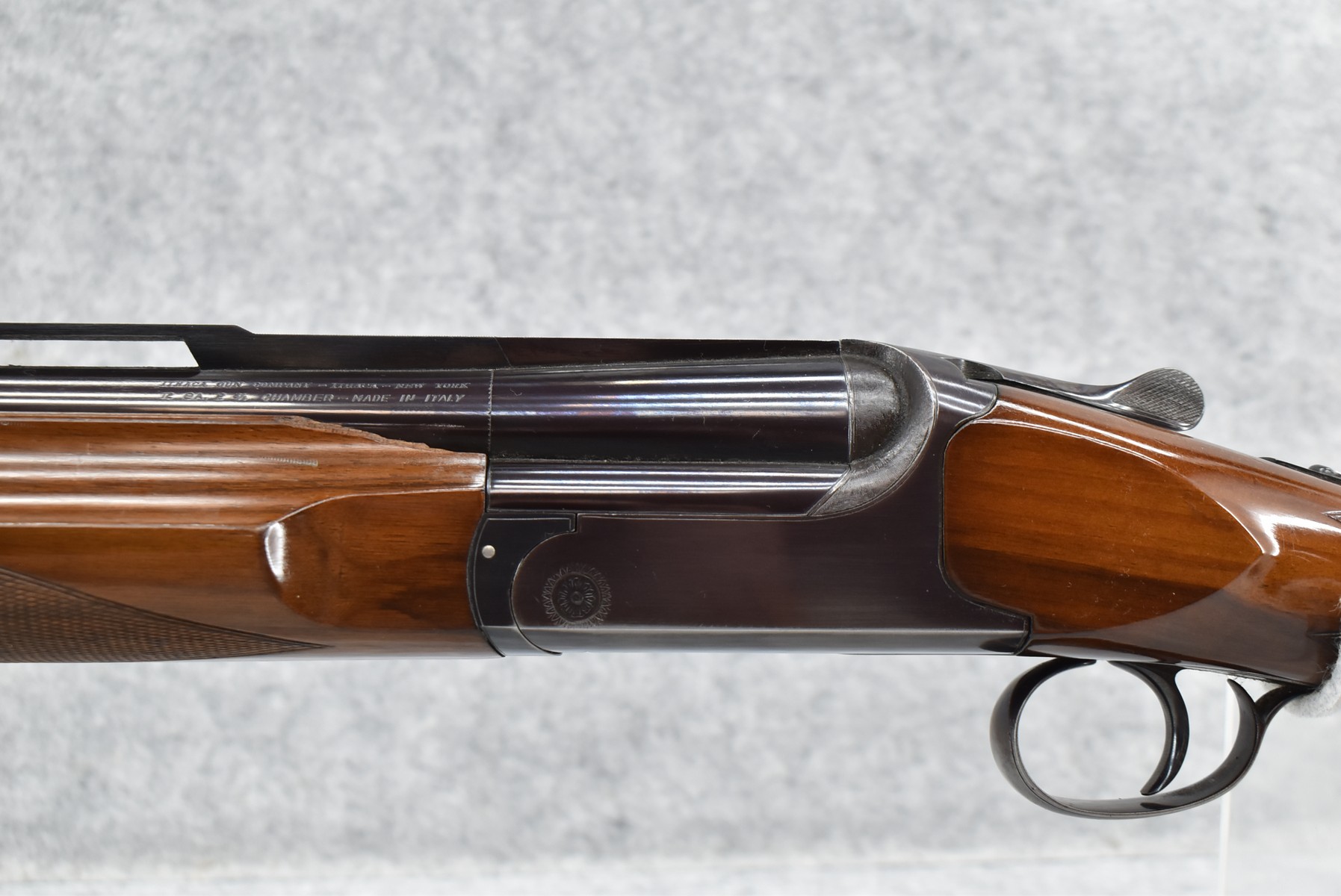 150R.     Perazzi (Import by Ithaca) – Mod. TM1 Single Barrel Trap – 12ga. 2 ¾” Single Shot Shotgun – w/32” Vent-Rib Barrel w/Dual Bead Sights – Blued Finish – w/Checkered Pistol Grip Wood Stocks w/White Line Recoil Pad – w/Release Trigger – w/Takedown Case – Note:  Forearm Chipped on Left Side Below Barrel Address