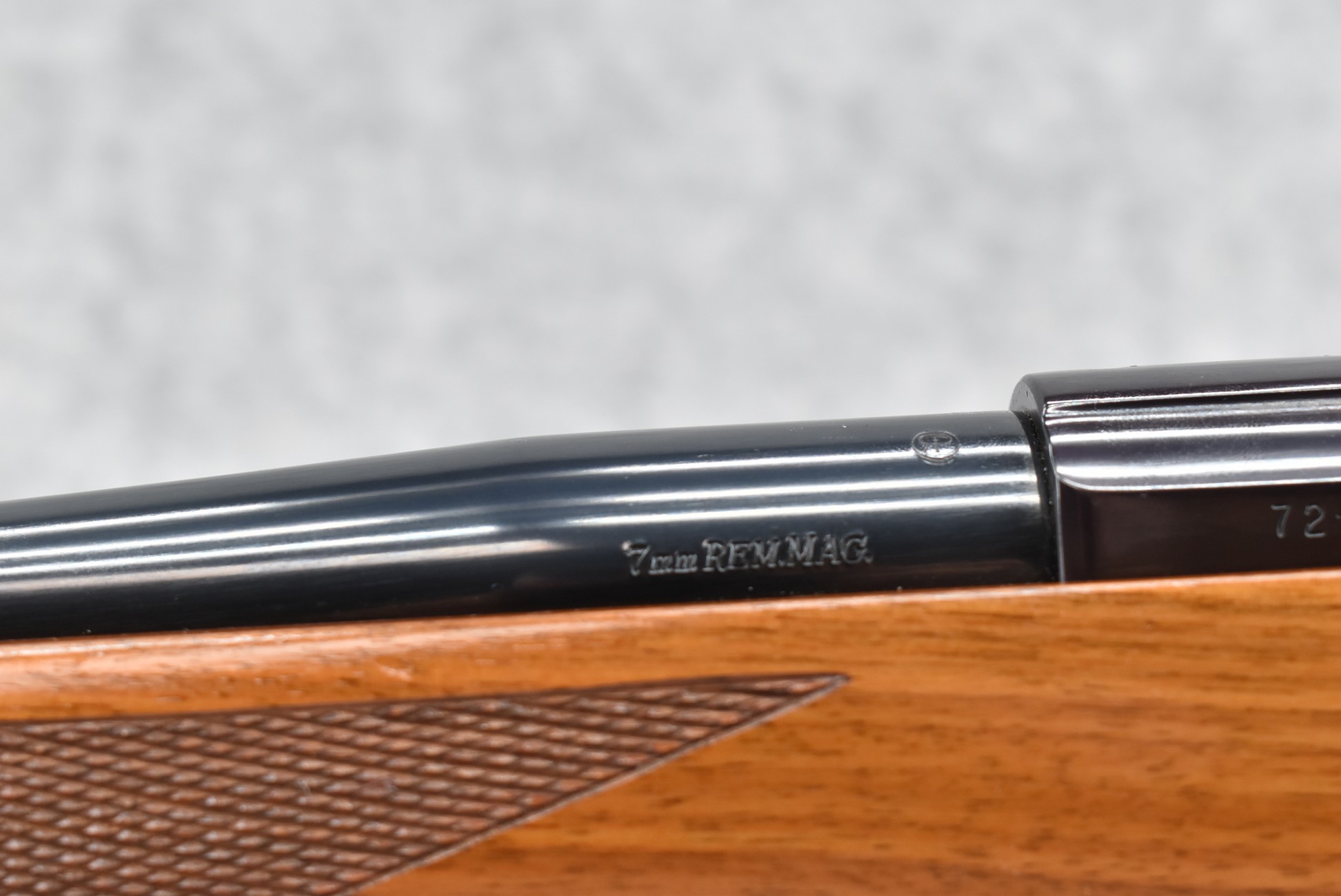 150R. Ruger – Mod. 77R “Round Top Receiver” Tang Safety (Pre-Warning) – 7mm Rem. Mag. Cal. Bolt Action Rifle – w/24” Barrel – Blued Finish – w/Deluxe Checkered Capped Pistol Grip Wood Stock w/Factory Butt Pad