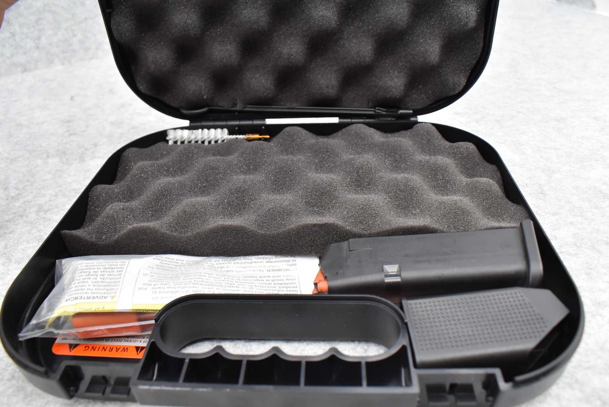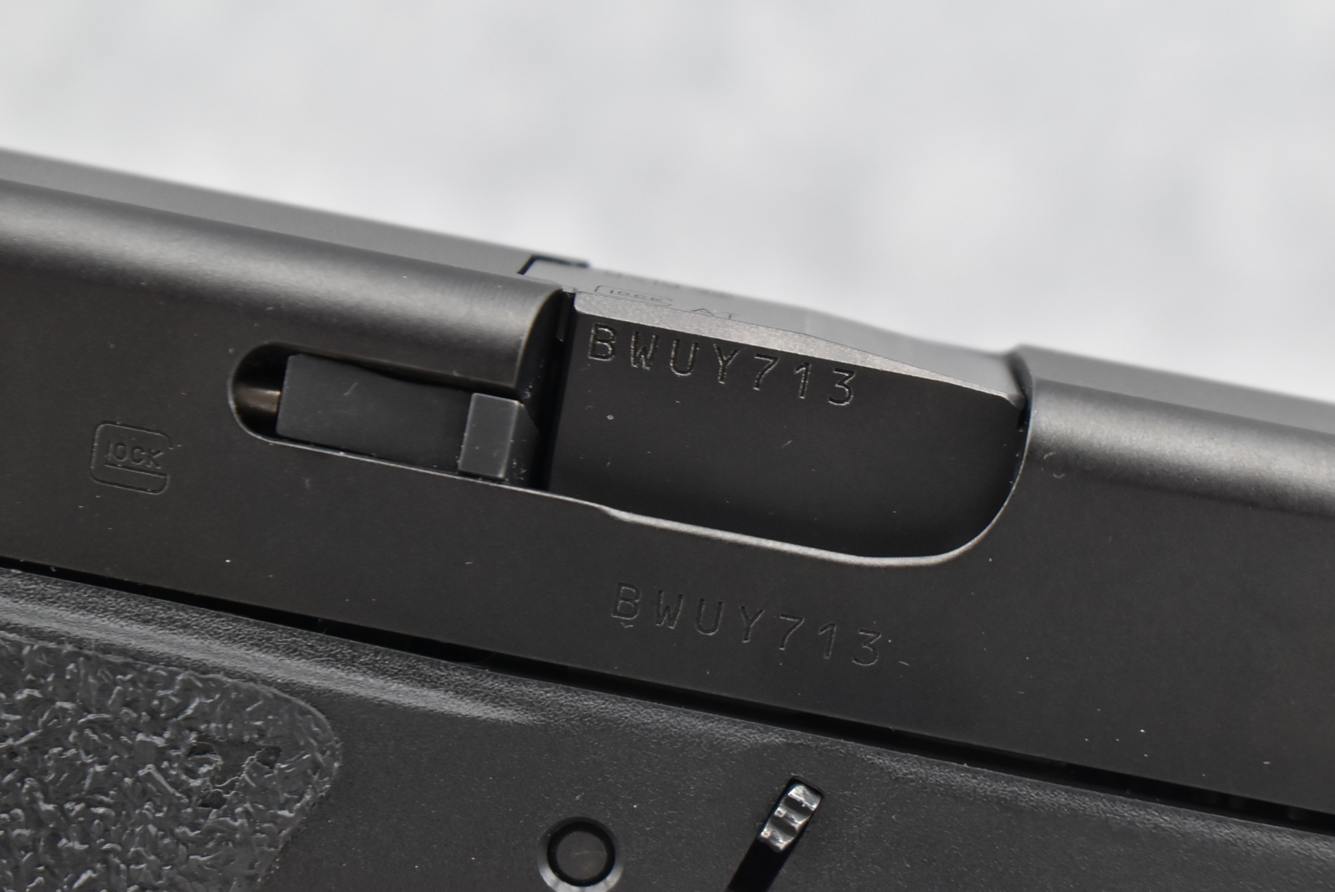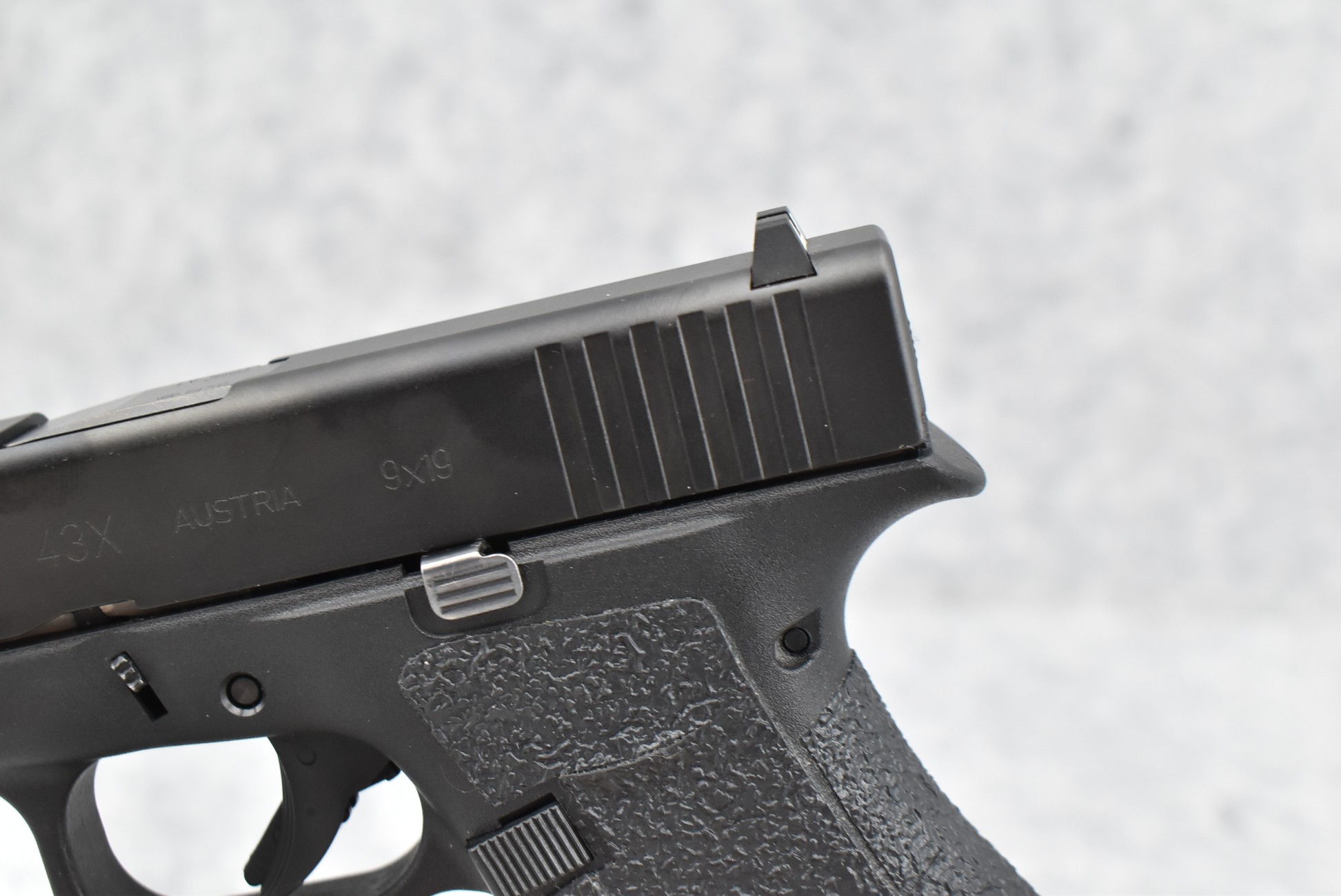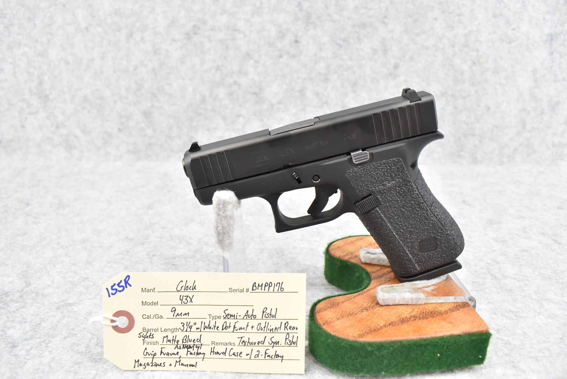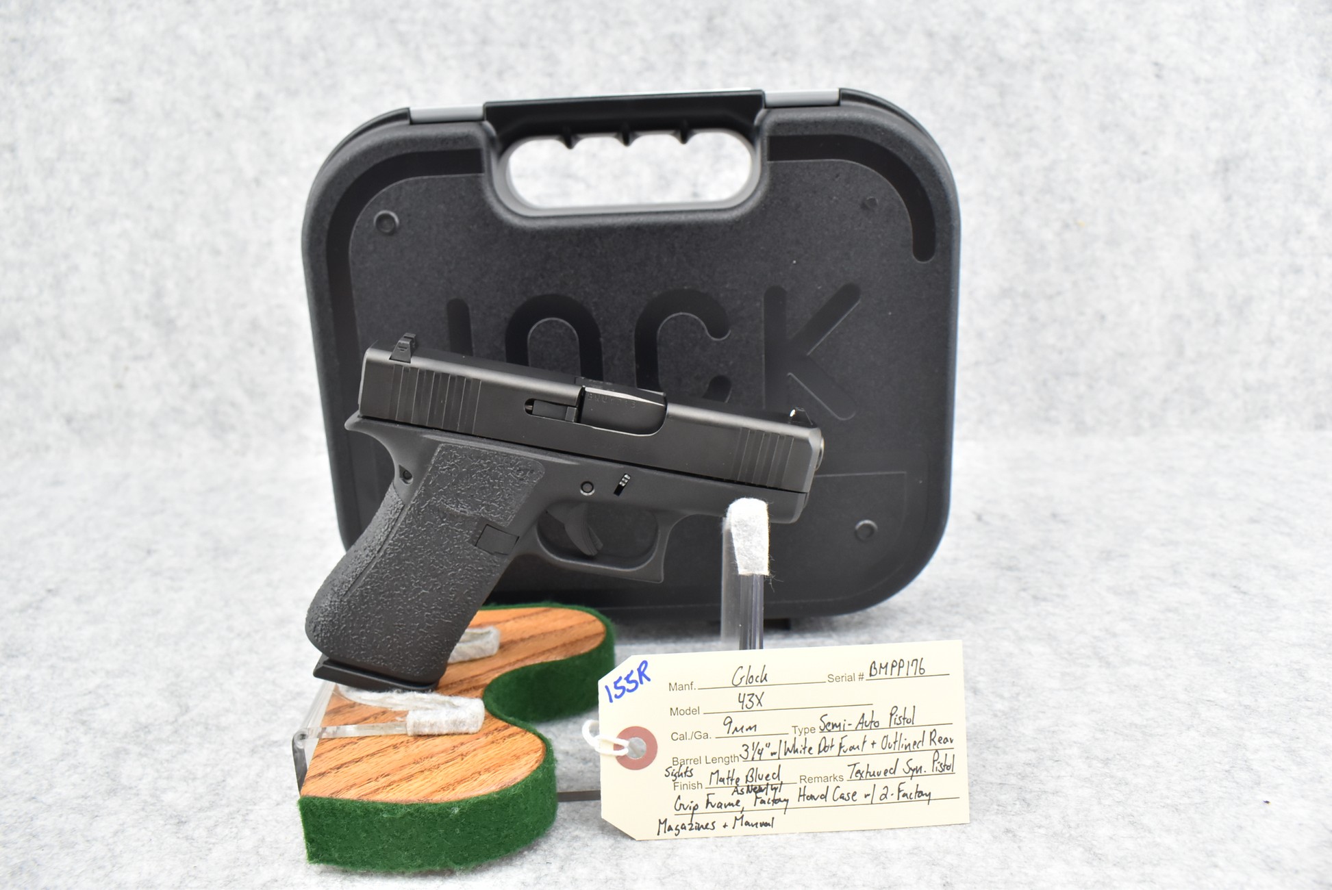 155R. Glock – Mod. 43X – 9mm Cal. Semi-Auto Pistol – w/3 ¼” Barrel w/White Dot Front & Outlined Rear Sights – Matte Blued Finish – w/Textured Synthetic Pistol Grip – As New w/Factory Hard Case, 2 Factory Magazines & Manual