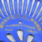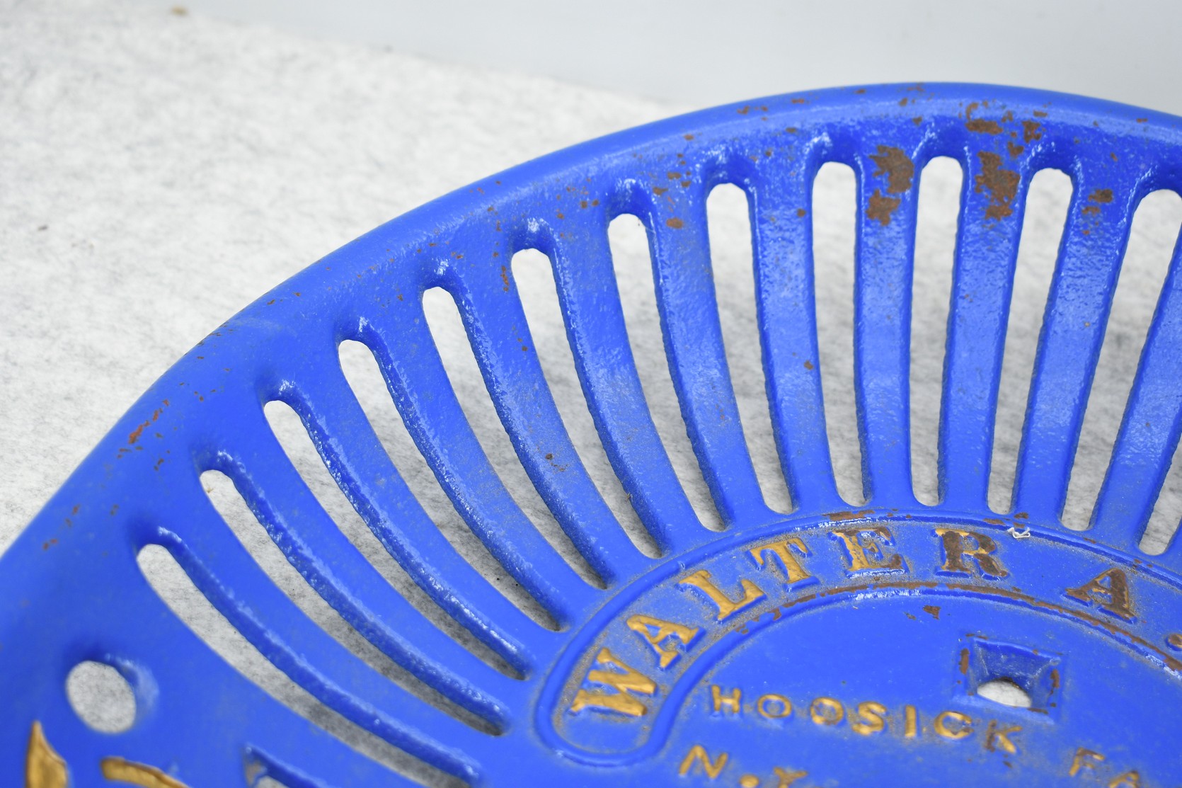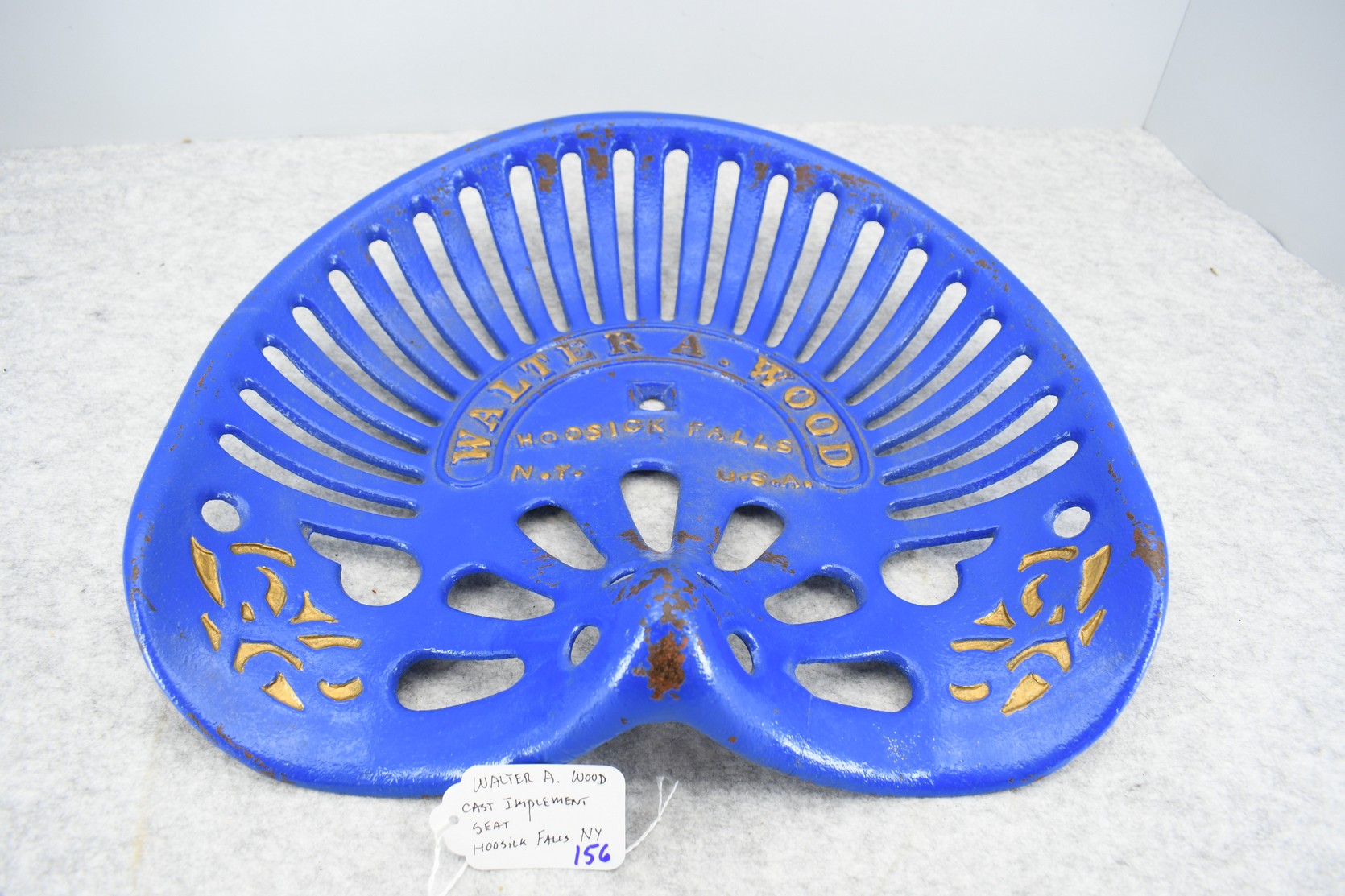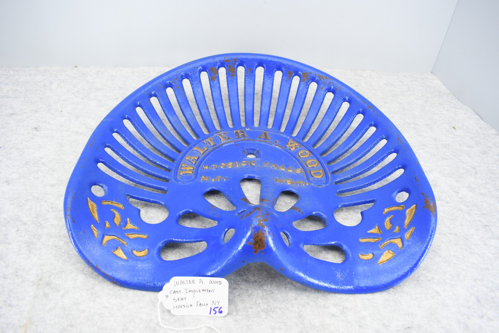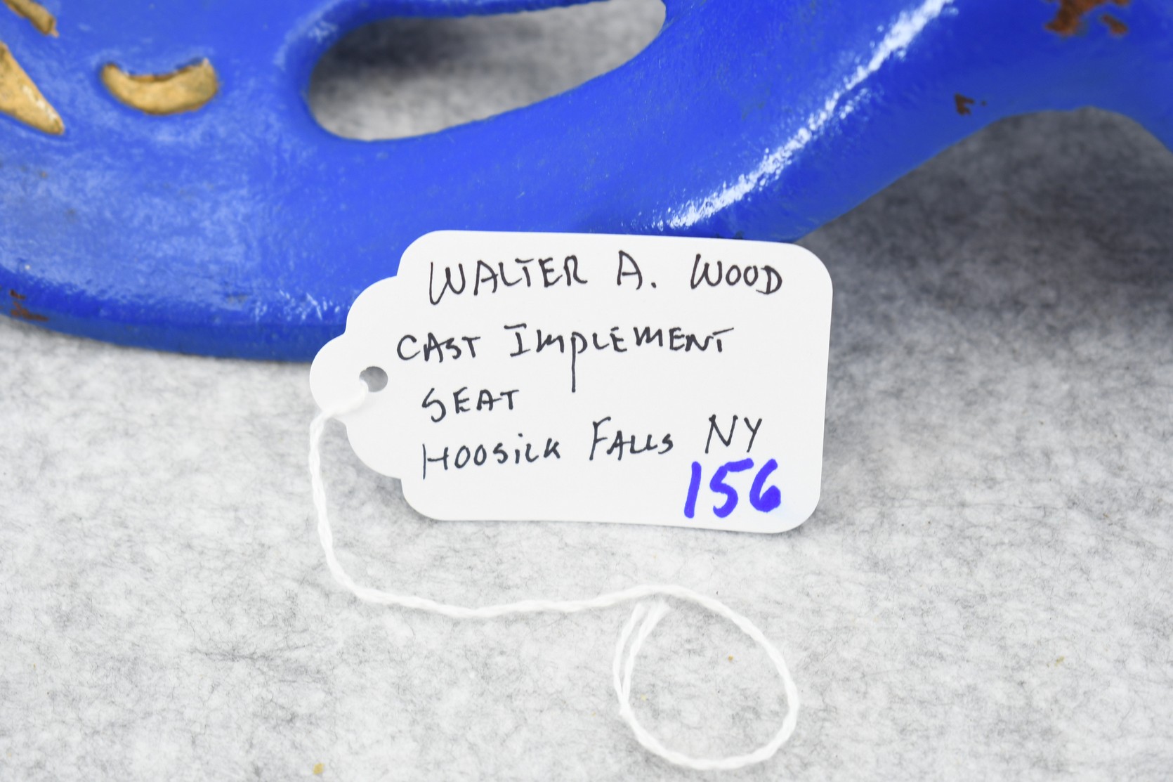 156. Cast “Walter A. Wood” Hoosick Falls, New York Implement Seat – Blue w/Gold Lettering