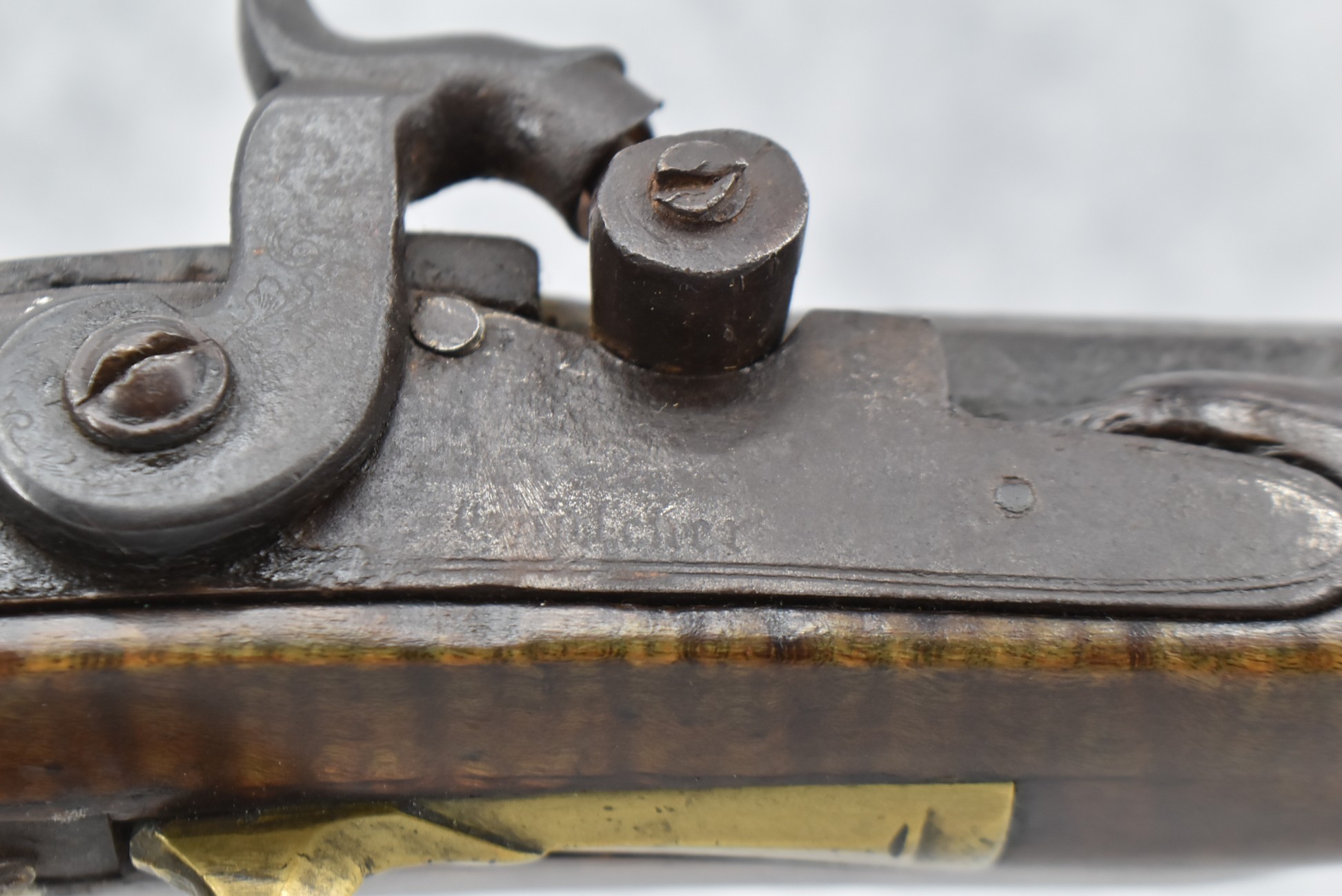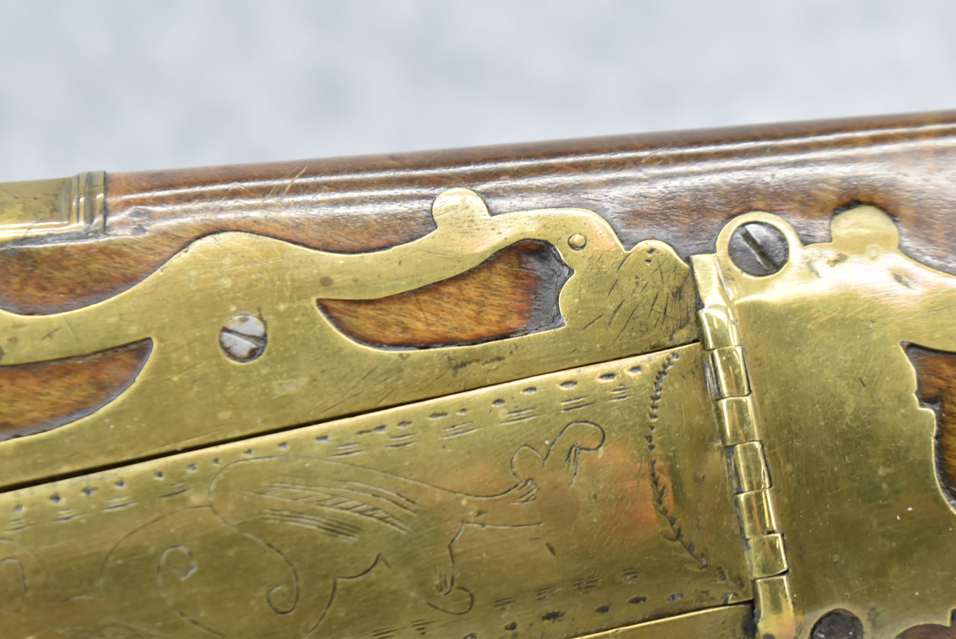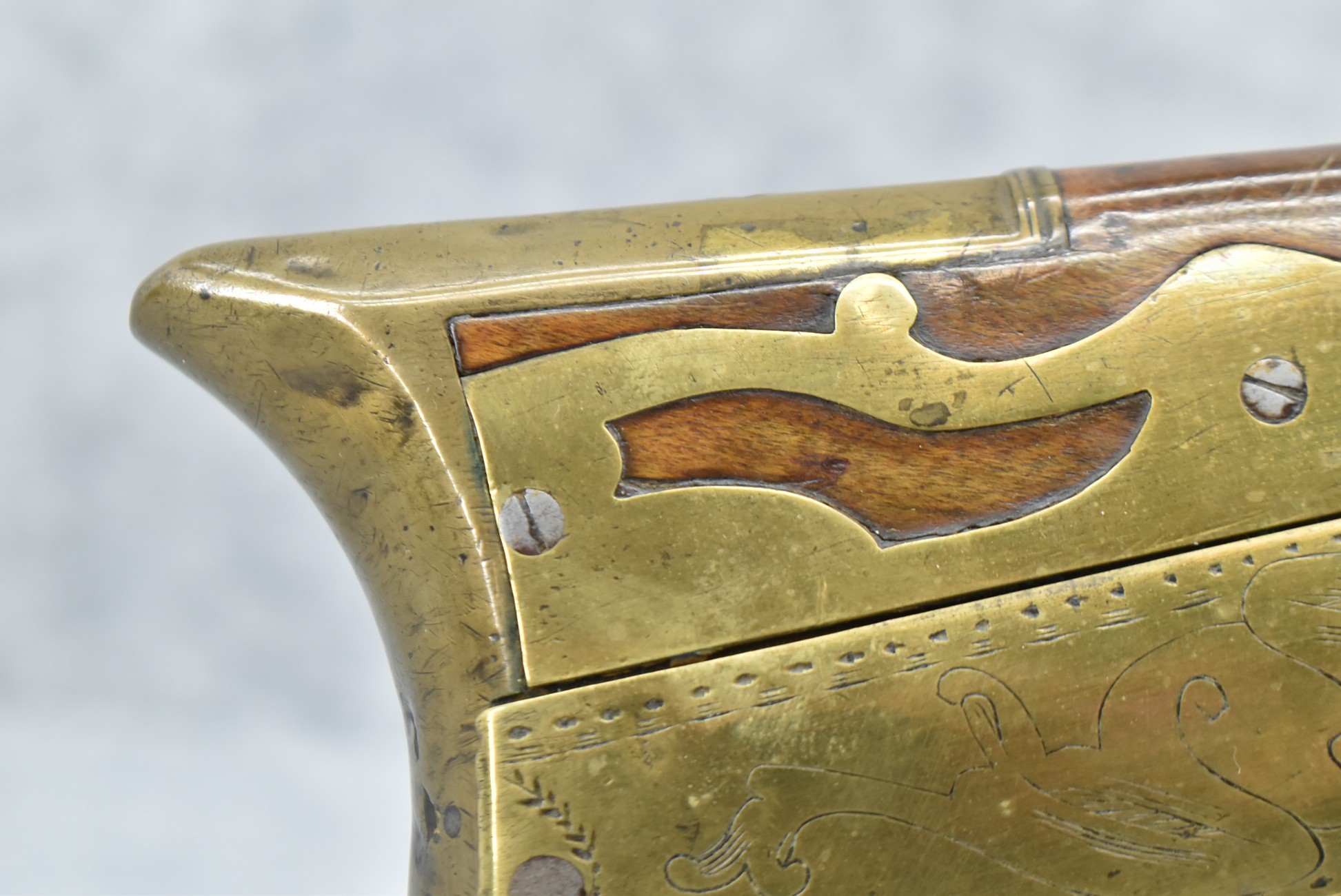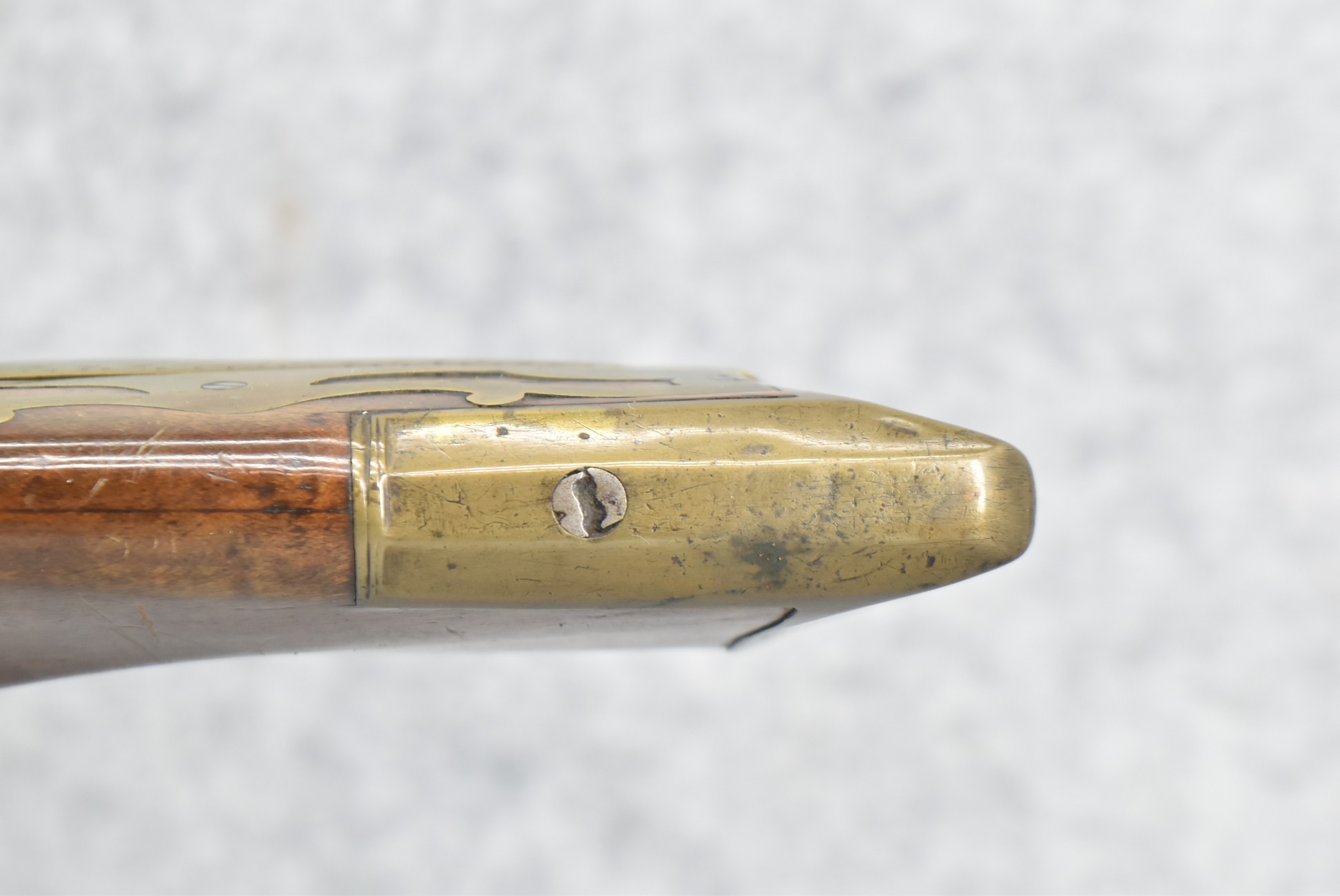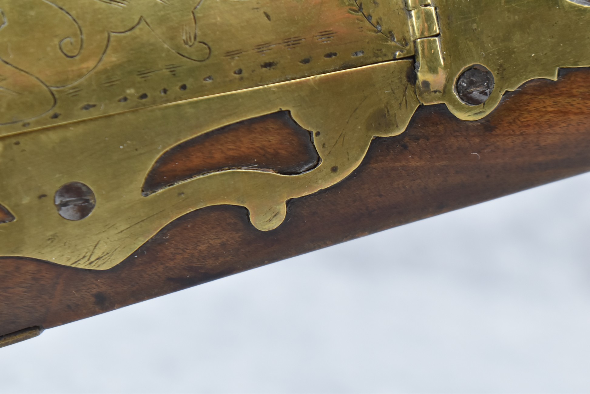 156.        Signed W. Blain Barrel Percussion Kentucky Long Rifle – w/40 Cal. 39” Octagon Barrel w/Front & Rear Barrels Sights – w/Refinished Full Length Wood Stock w/4pc. Engraved Patch Box (Identical Patch Box in “Kentucky Rifle Patch Boxes Vol. 2” by Chandler & Whisker) & Brass Furniture – w/Double Set Triggers – Note:  Crack in Fore Stock – Overall Length of 55” – W. Blain Died in 1852.  In 1823 He Was Located in Brothers Valley Twp., Somerset County & Between 1827-1852 He Was Located in Donegal Twp., Westmoreland County, PA