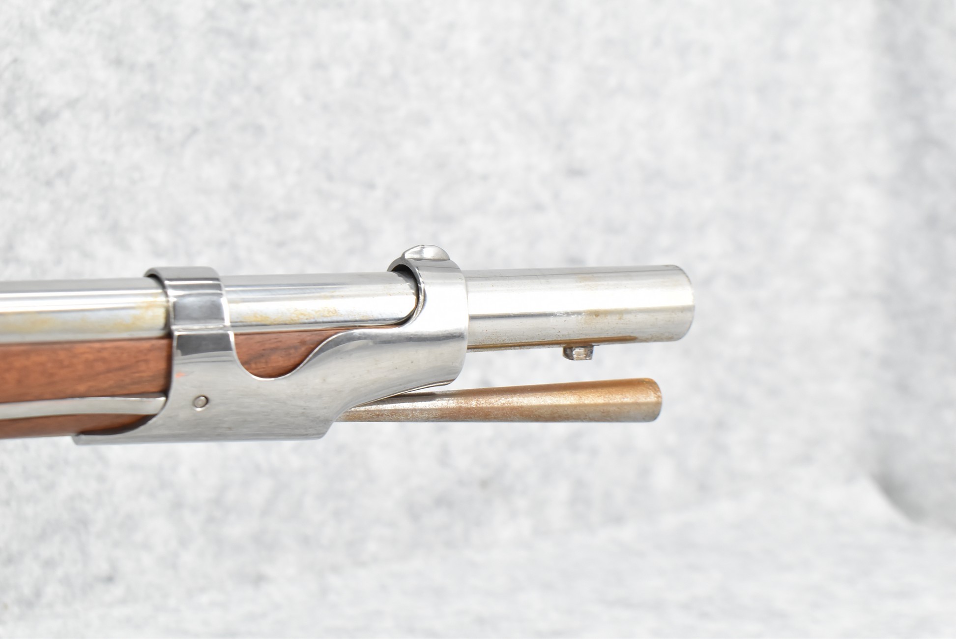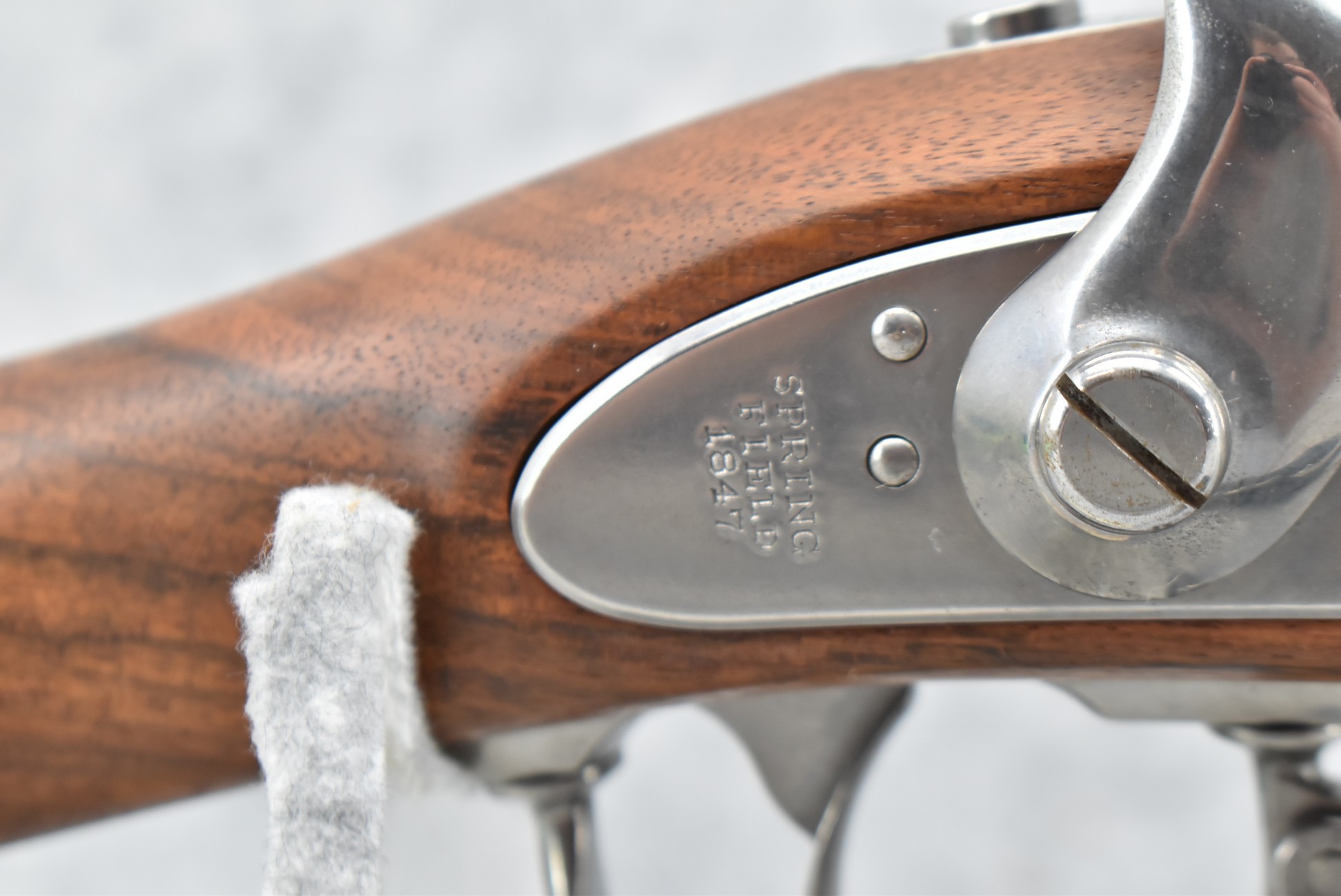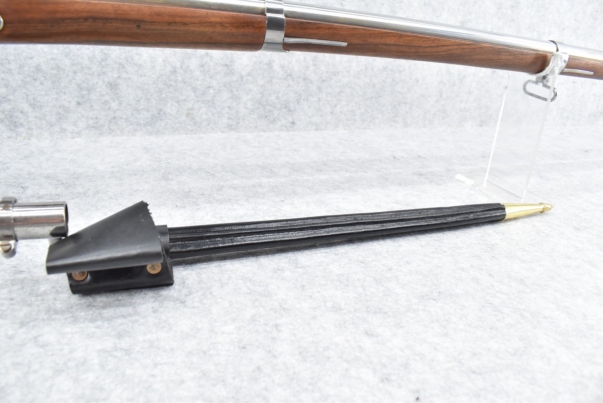 157. Armi-Sport/Taylors & Co. – Mod. 1842 Springfield – 69 Cal. Black Powder Muzzleloading Percussion Rifle – w/42” Rifled Round Barrel w/Front Blade Sight – Stainless Finish – w/Factory Full Straight Grip Wood Stock w/Factory Metal Butt Plate & Stainless Furniture – Lock Plate Stamped Springfield 1847 – w/Factory Bayonet w/Leather Sheath – w/Factory Box & Manual