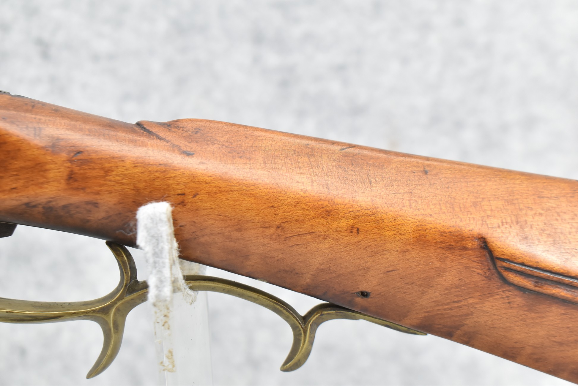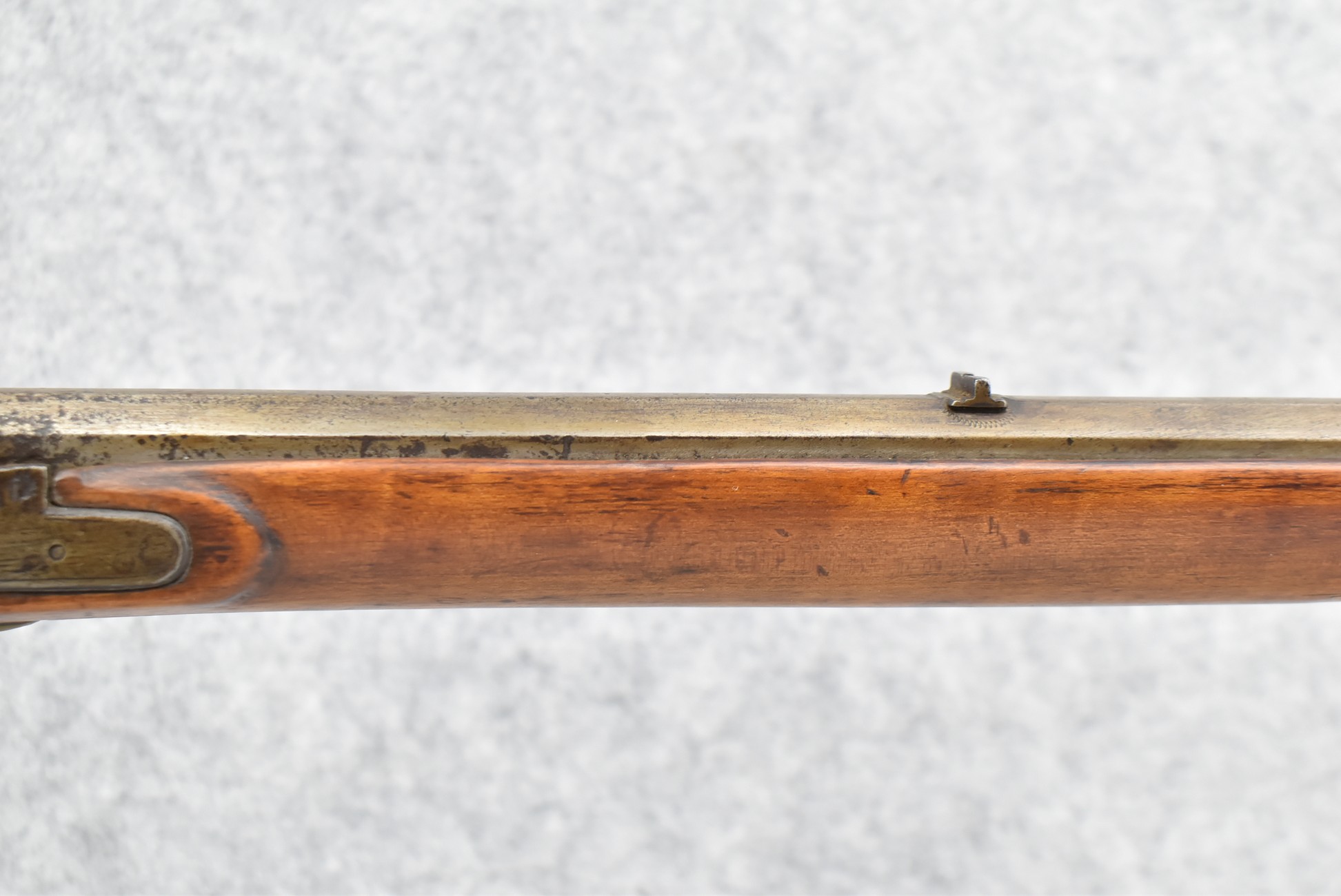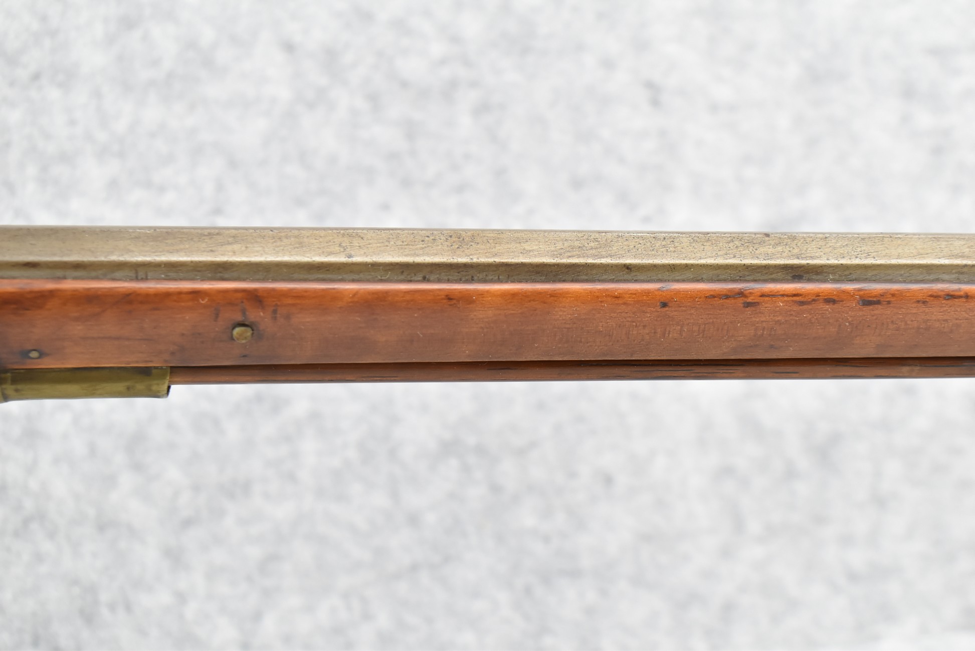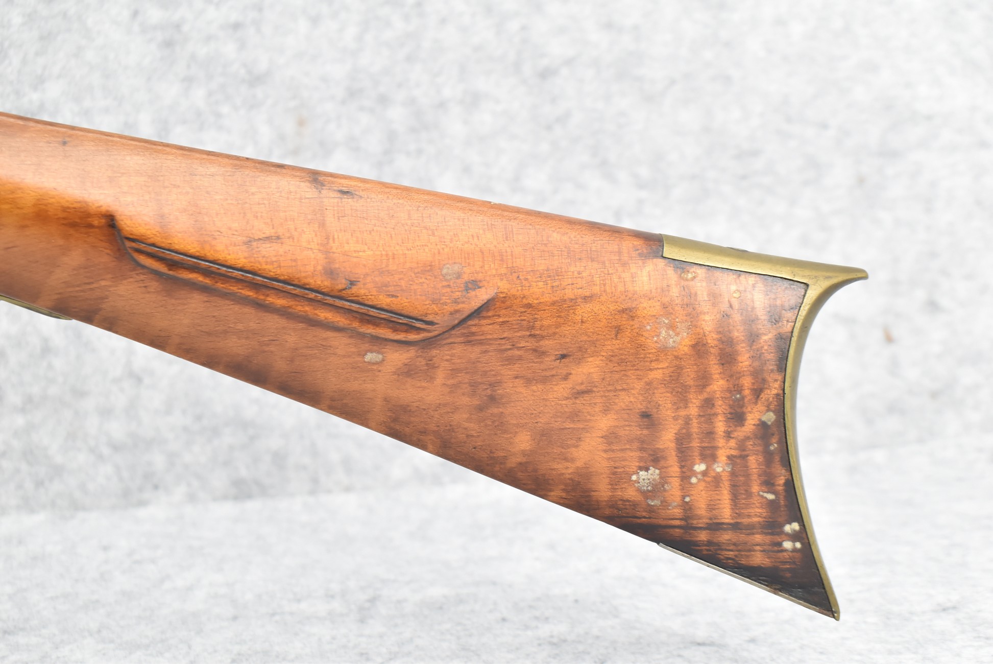 157. Faintly Script Signed Frank Gilbert of Somerset, PA – 55 Cal. Full Stock Kentucky Long Rifle – w/36 ½” Octagon Barrel w/Front & Rear Barrel Sights – w/Refinished Plain Full Maple Wood Stock w/Brass Furniture – w/G. Partridge Signed Percussion Lock – w/Single Trigger – Overall Length of 52”