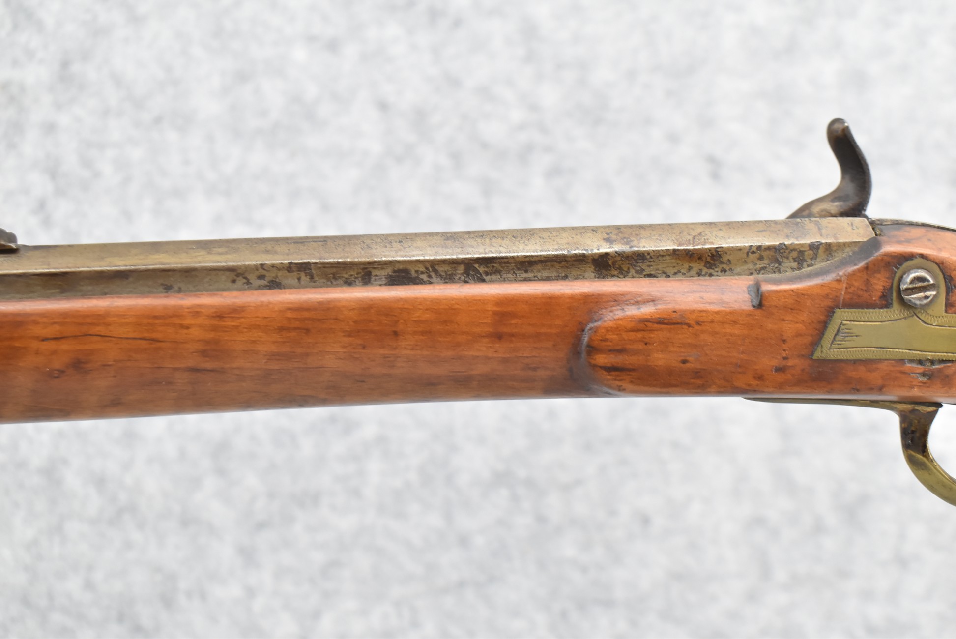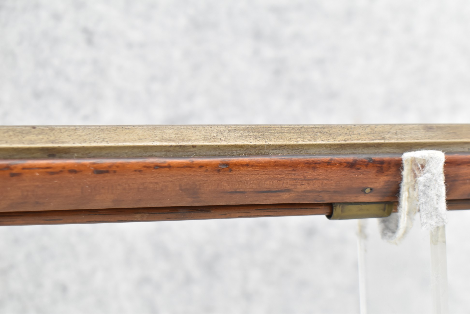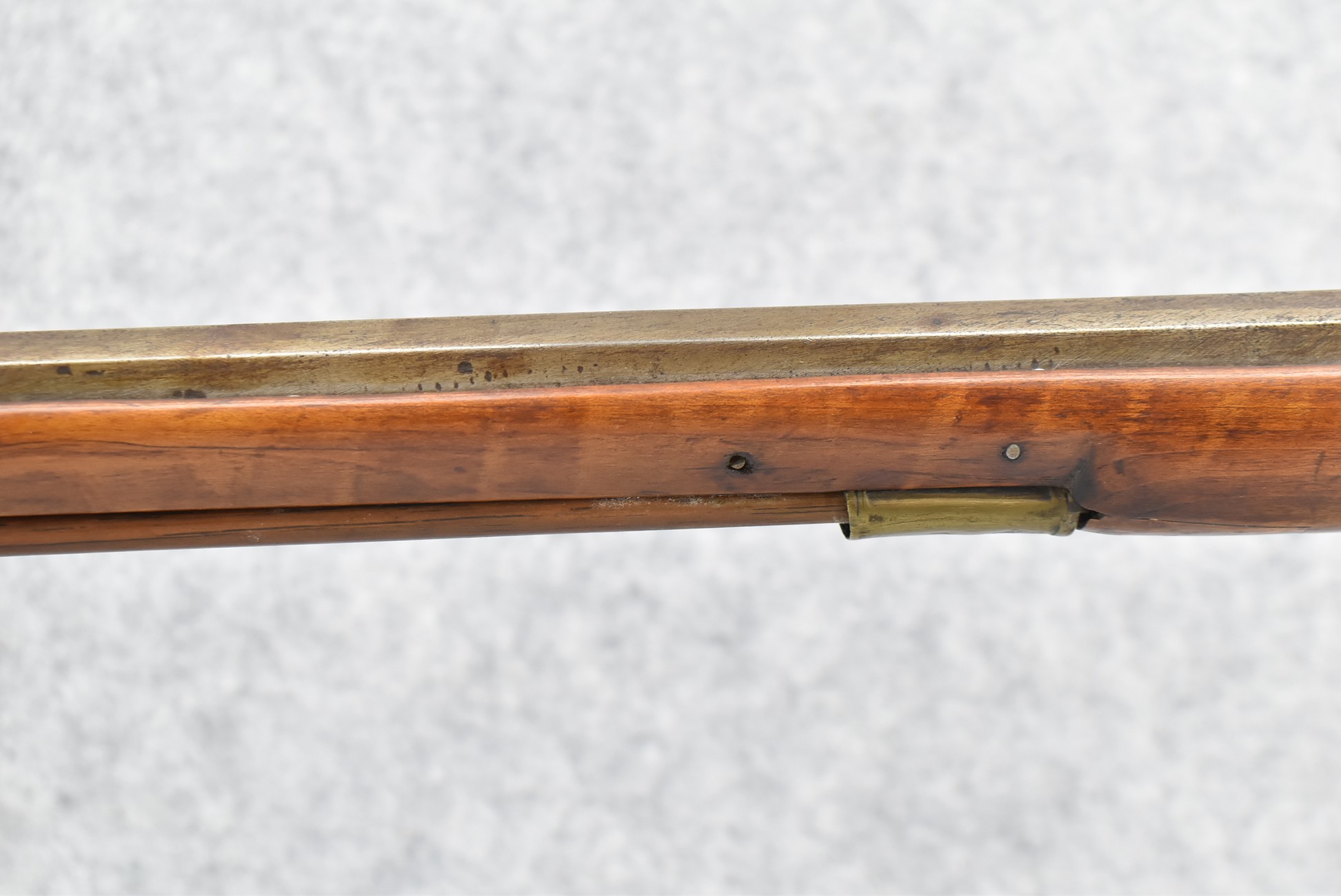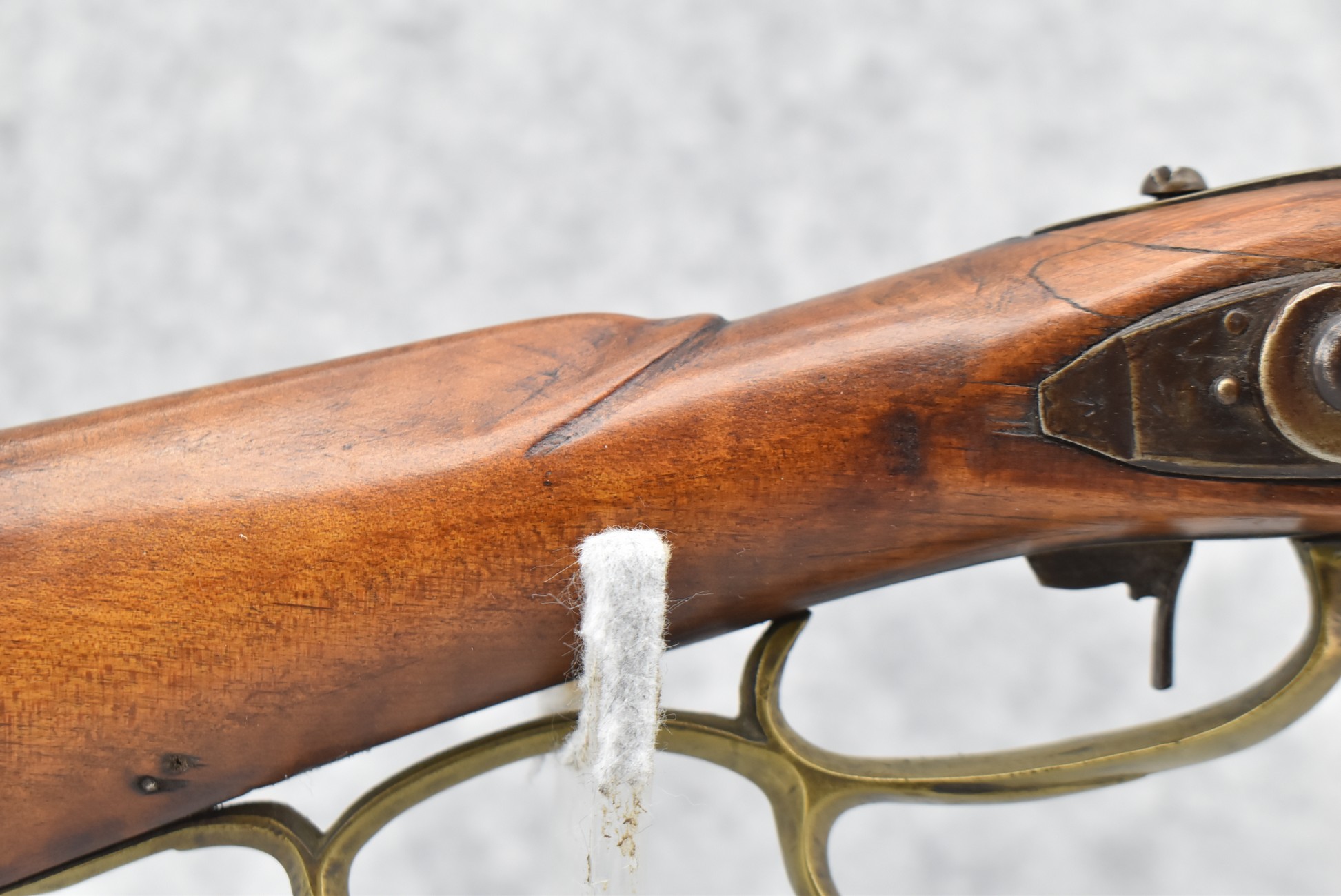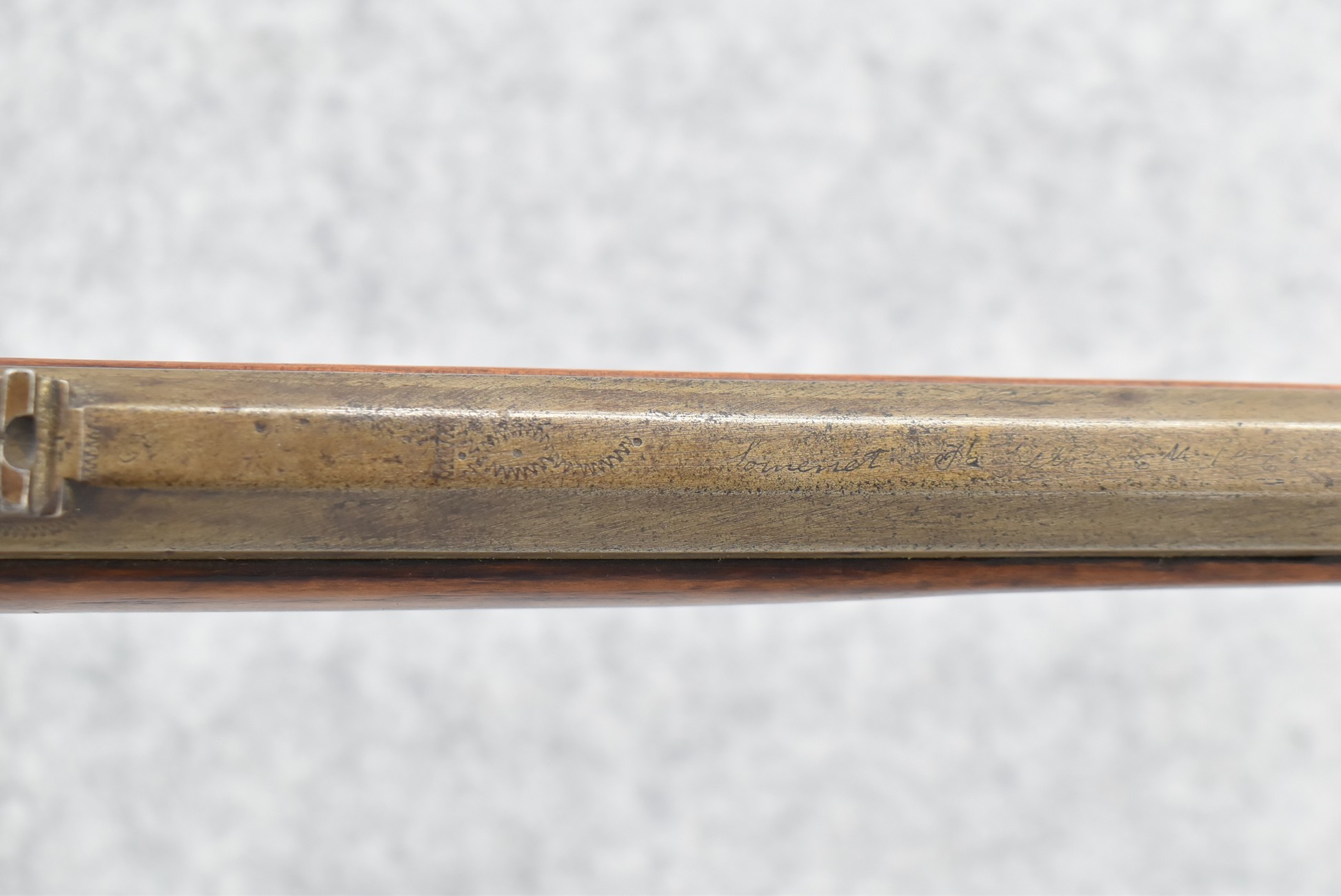 157. Faintly Script Signed Frank Gilbert of Somerset, PA – 55 Cal. Full Stock Kentucky Long Rifle – w/36 ½” Octagon Barrel w/Front & Rear Barrel Sights – w/Refinished Plain Full Maple Wood Stock w/Brass Furniture – w/G. Partridge Signed Percussion Lock – w/Single Trigger – Overall Length of 52”