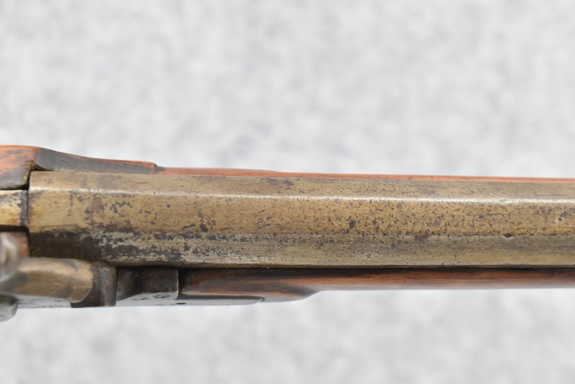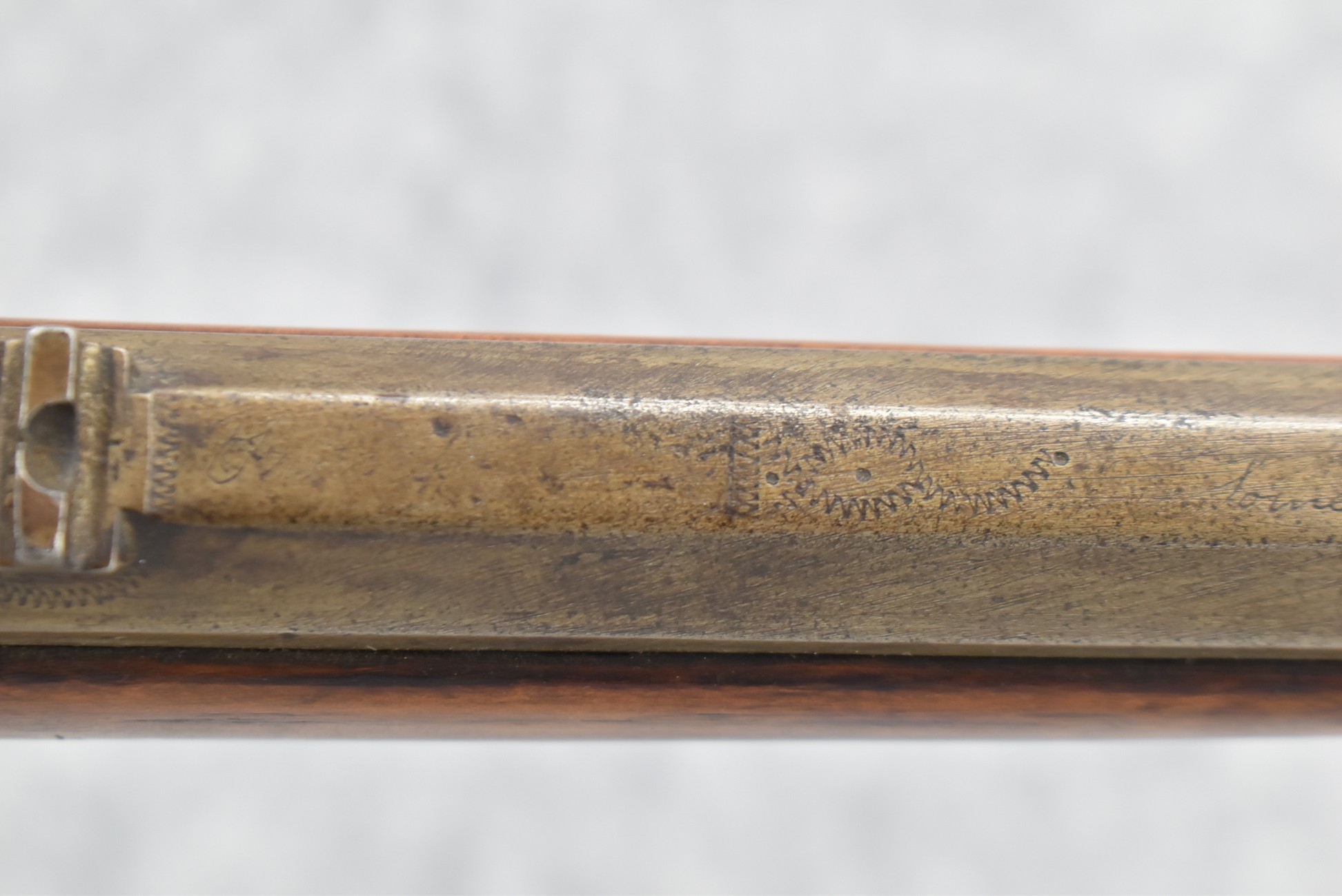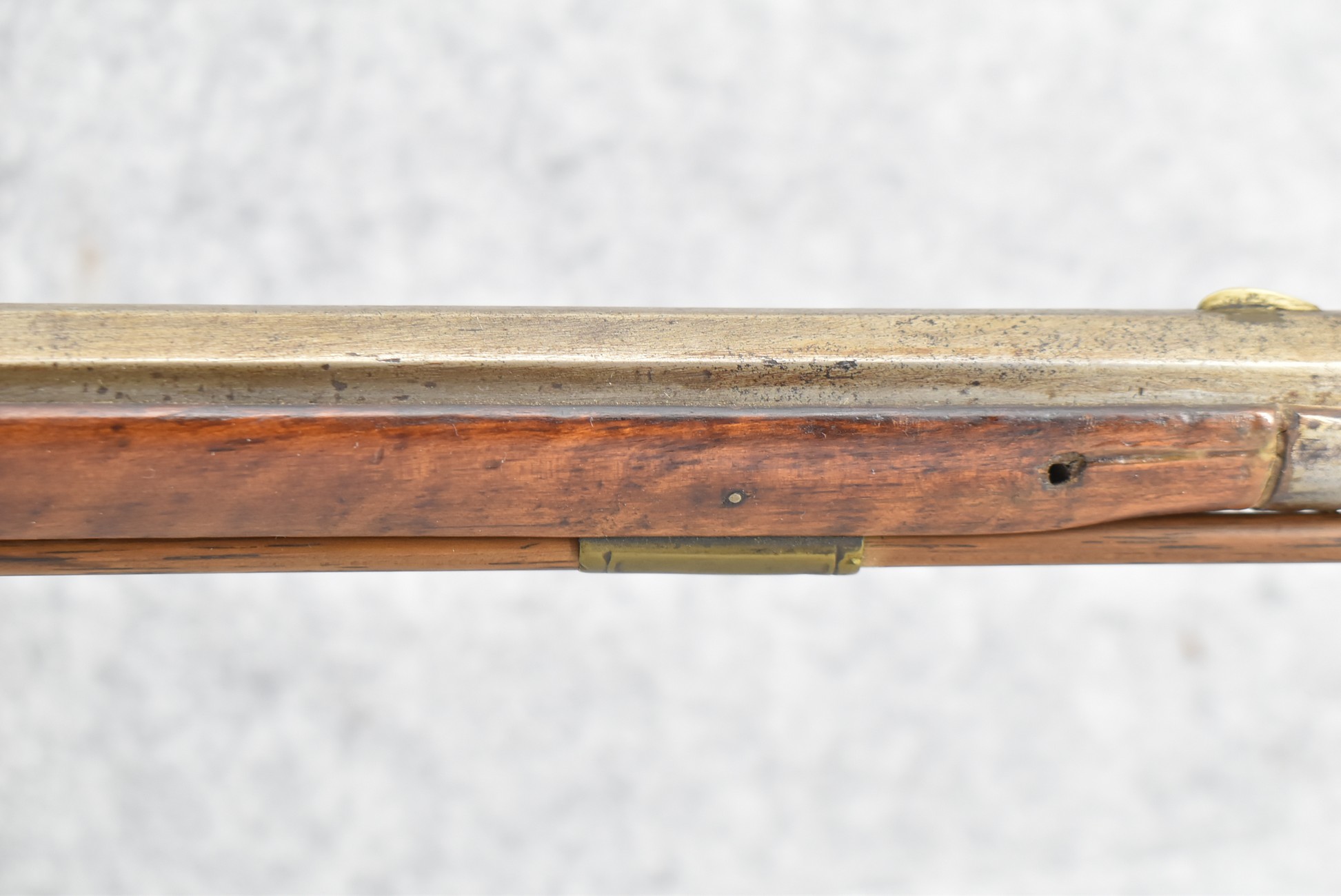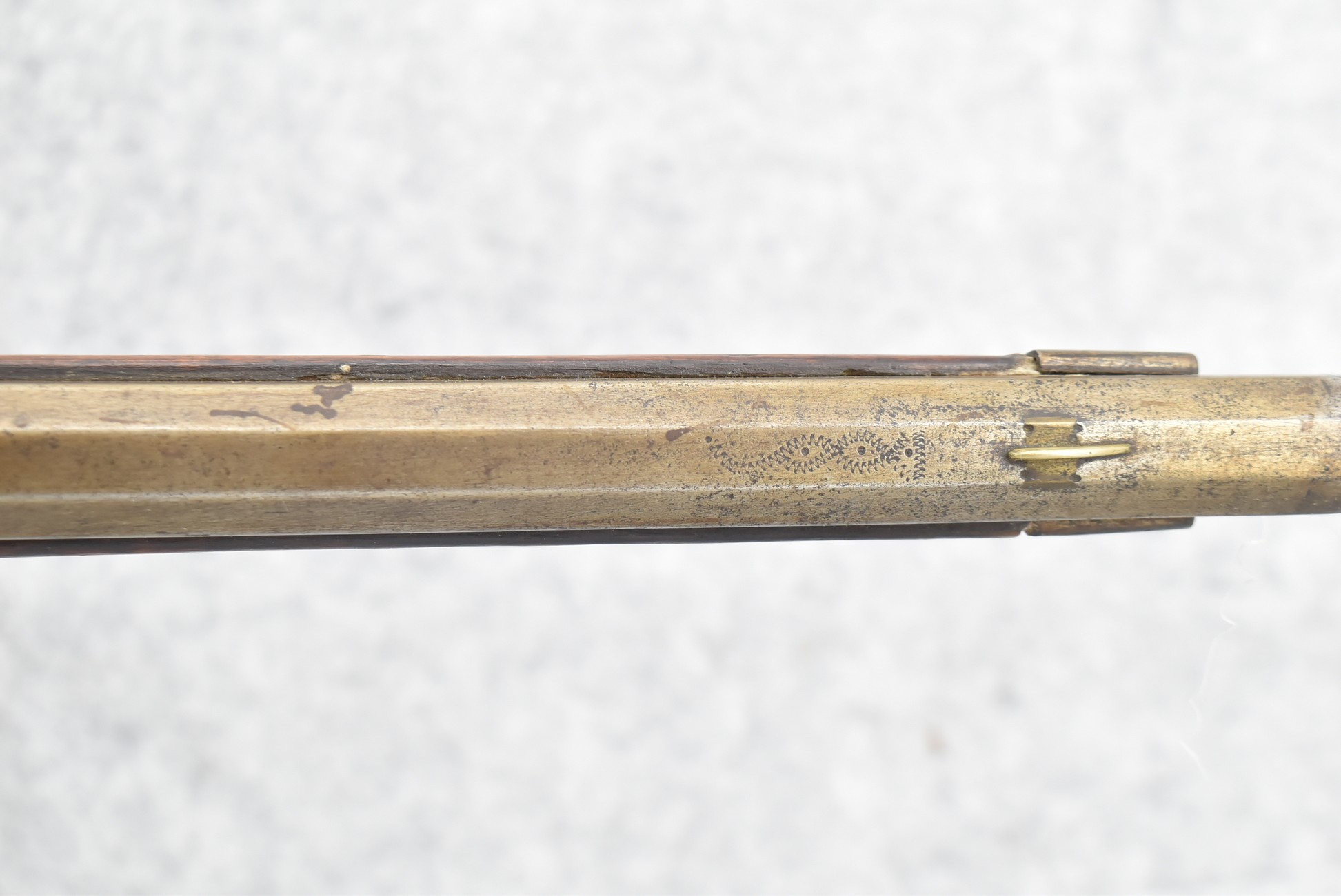 157. Faintly Script Signed Frank Gilbert of Somerset, PA – 55 Cal. Full Stock Kentucky Long Rifle – w/36 ½” Octagon Barrel w/Front & Rear Barrel Sights – w/Refinished Plain Full Maple Wood Stock w/Brass Furniture – w/G. Partridge Signed Percussion Lock – w/Single Trigger – Overall Length of 52”