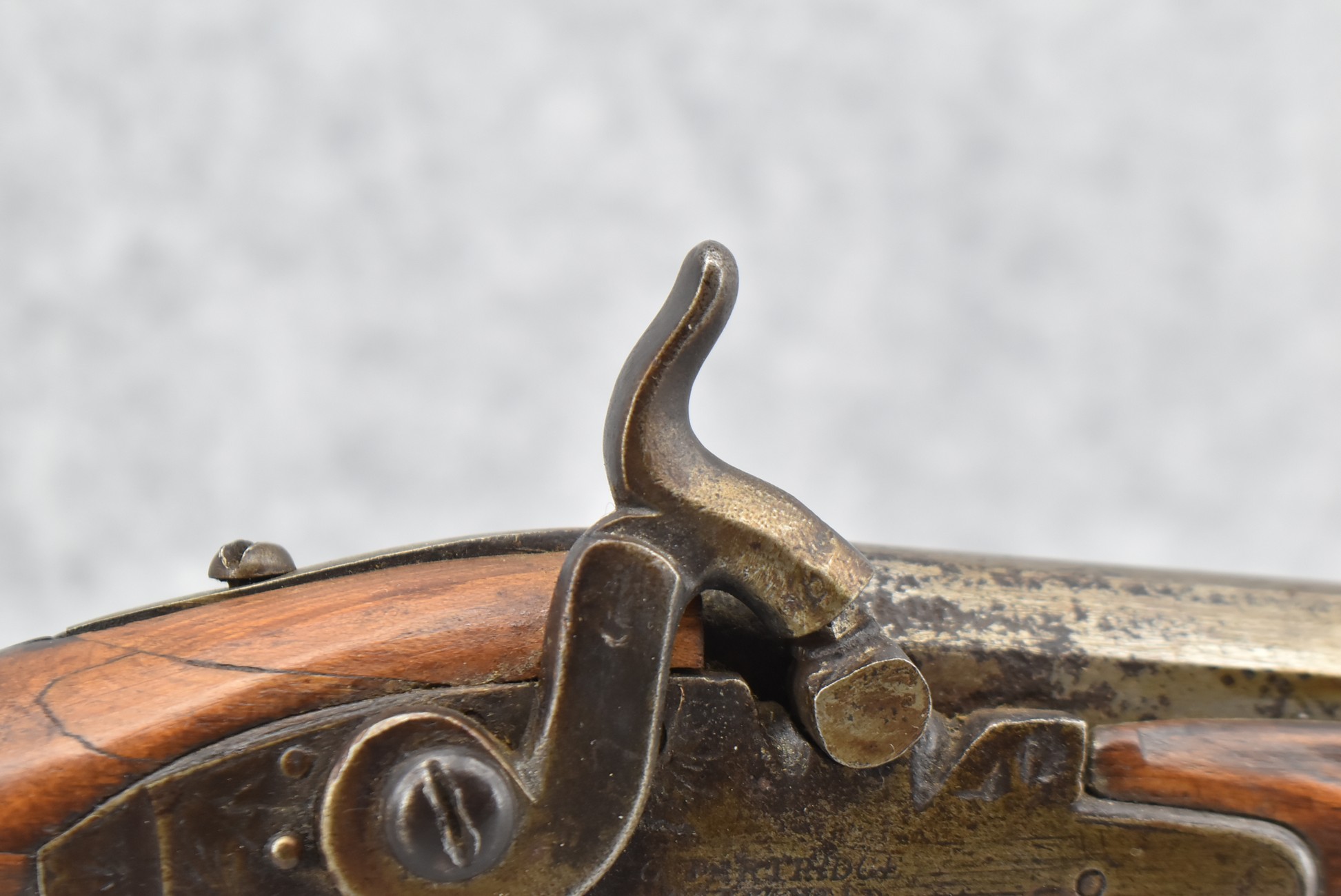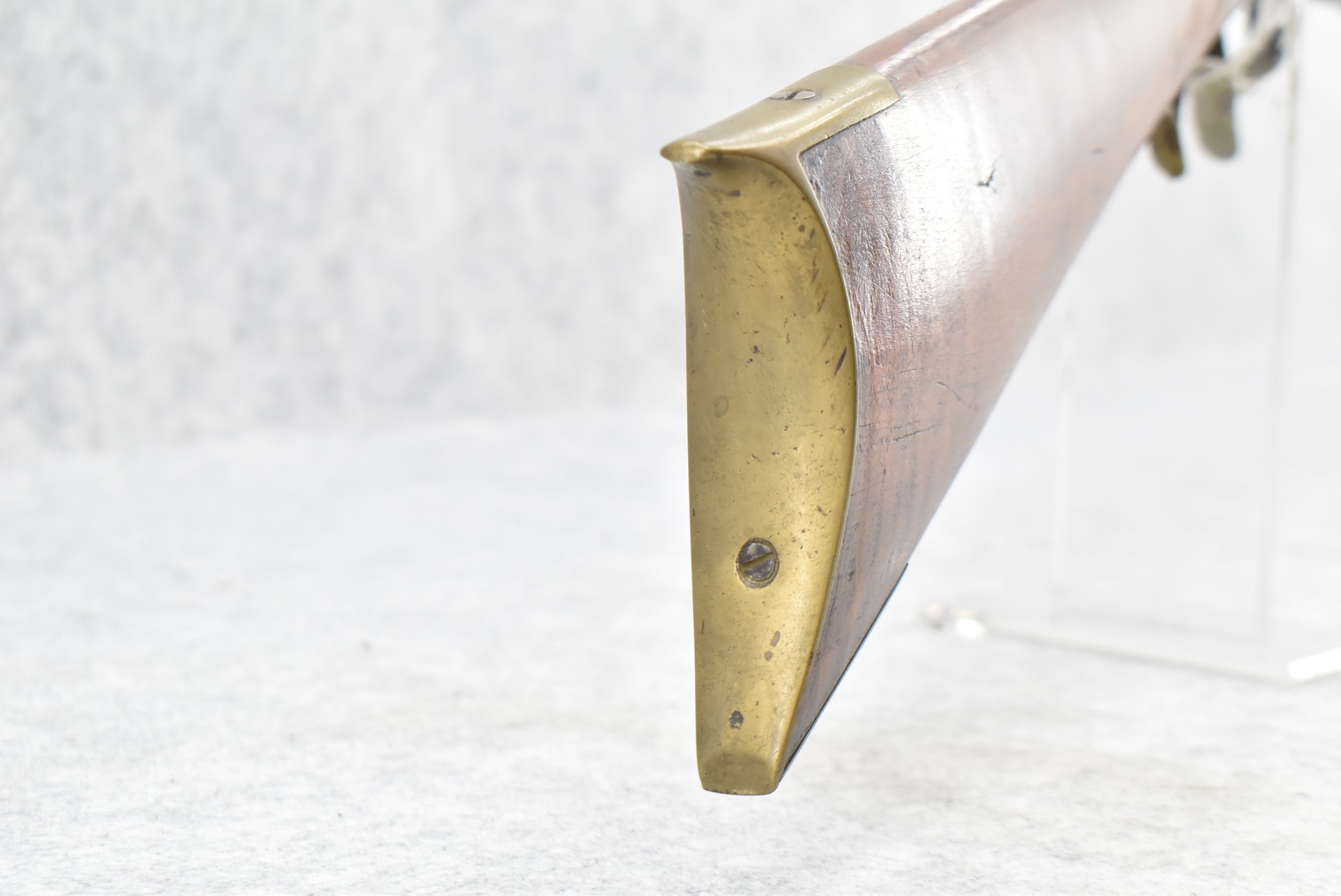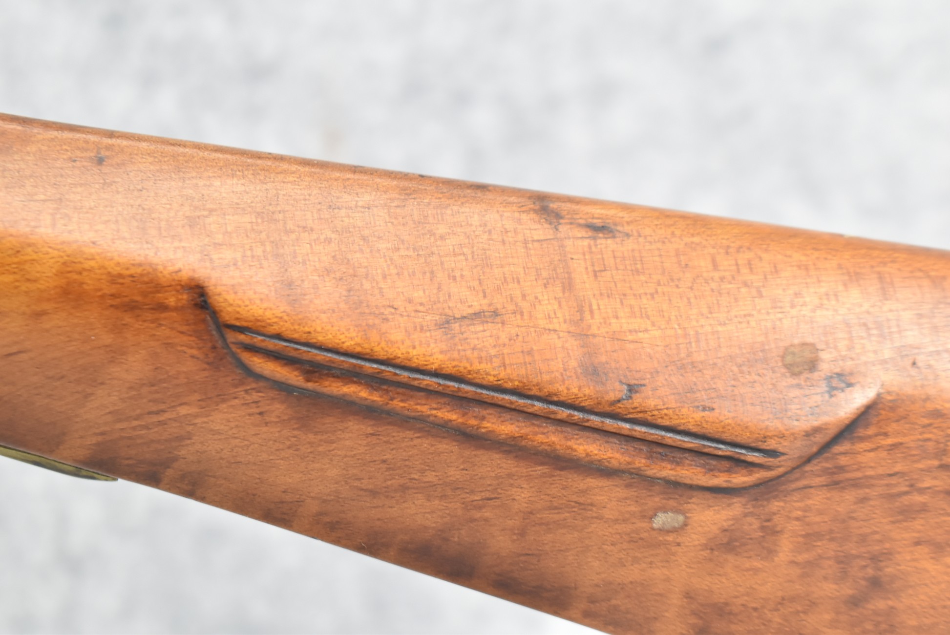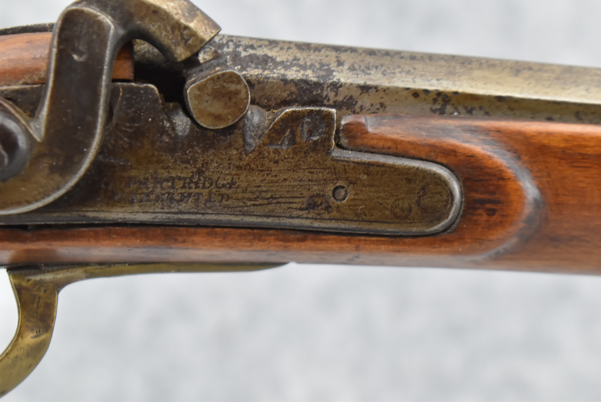 157. Faintly Script Signed Frank Gilbert of Somerset, PA – 55 Cal. Full Stock Kentucky Long Rifle – w/36 ½” Octagon Barrel w/Front & Rear Barrel Sights – w/Refinished Plain Full Maple Wood Stock w/Brass Furniture – w/G. Partridge Signed Percussion Lock – w/Single Trigger – Overall Length of 52”