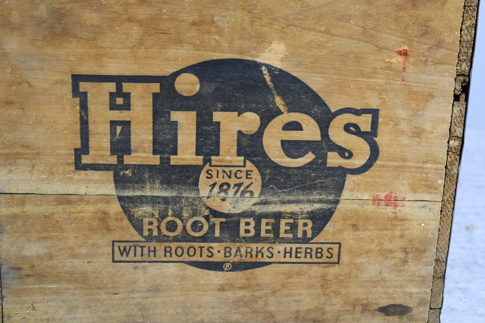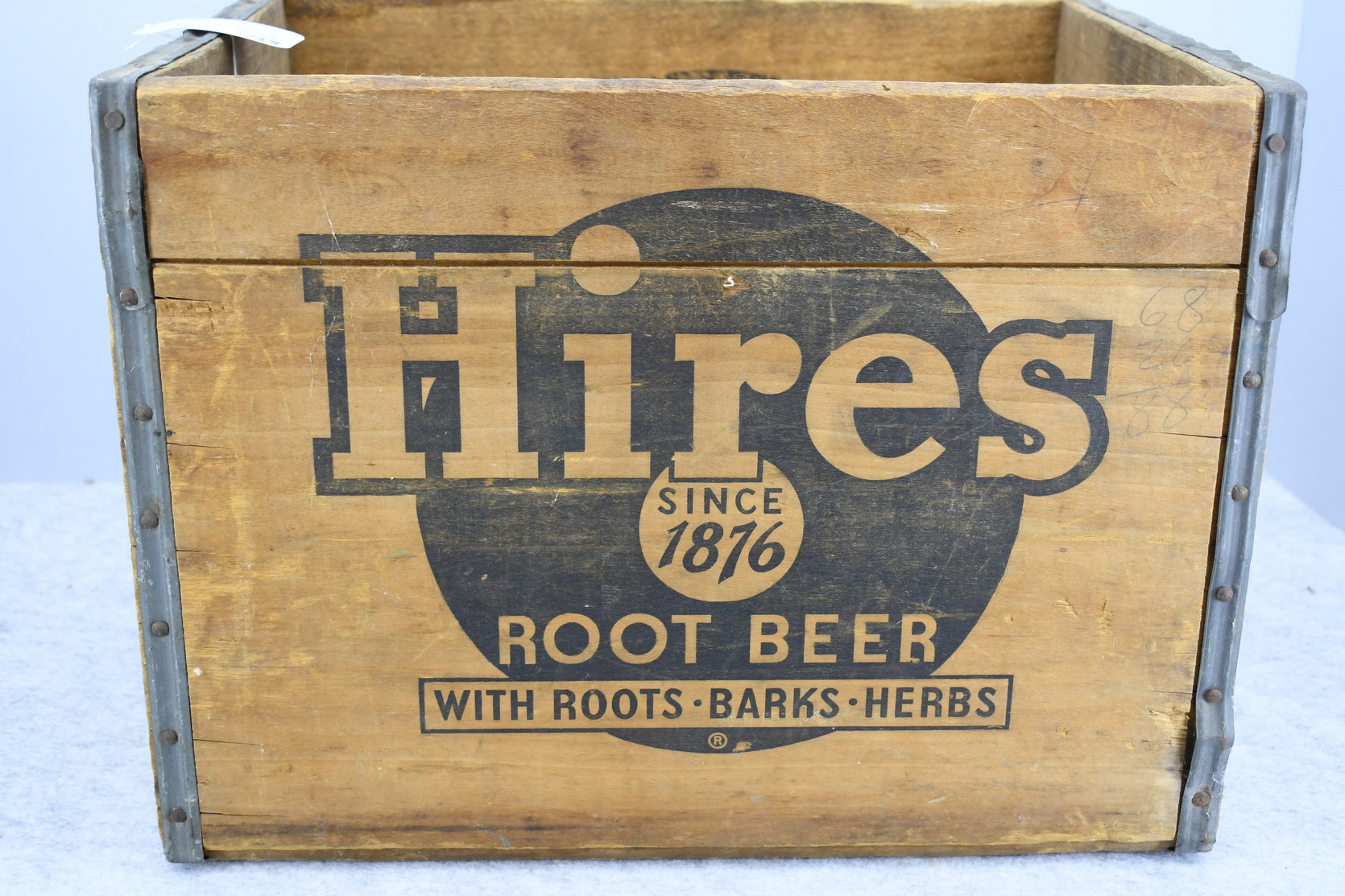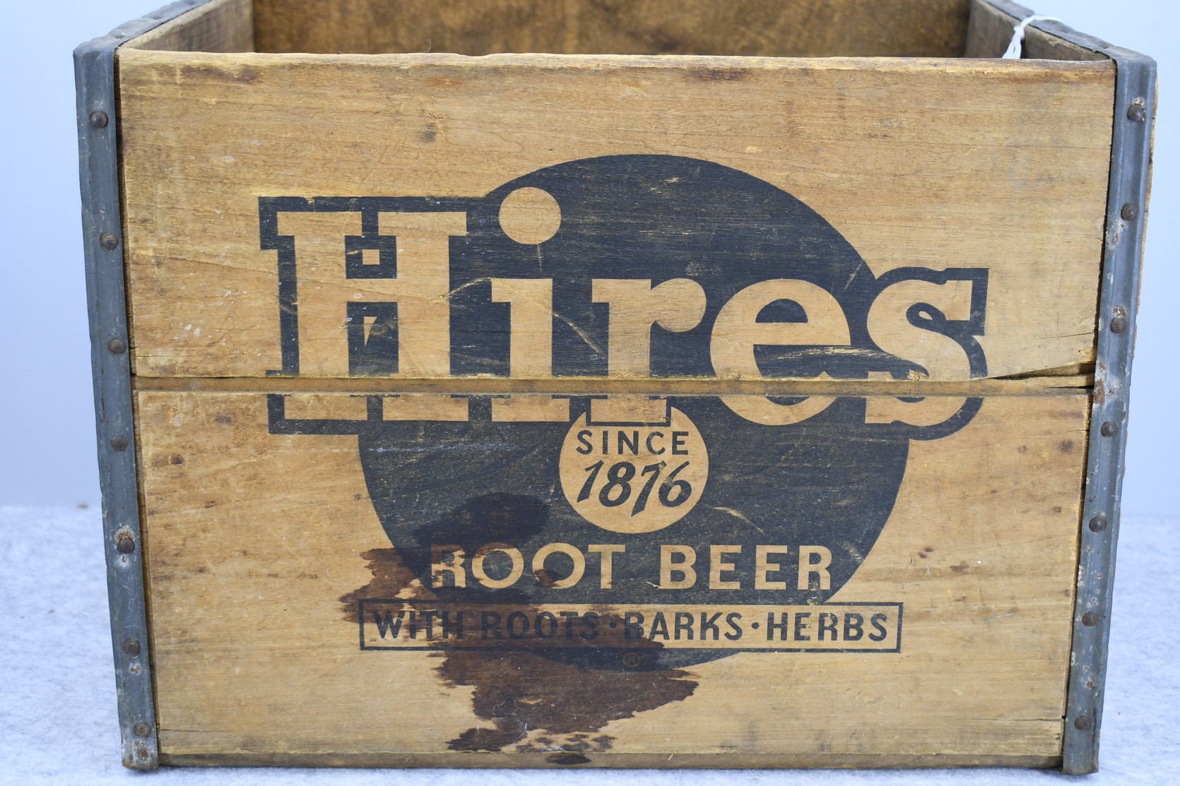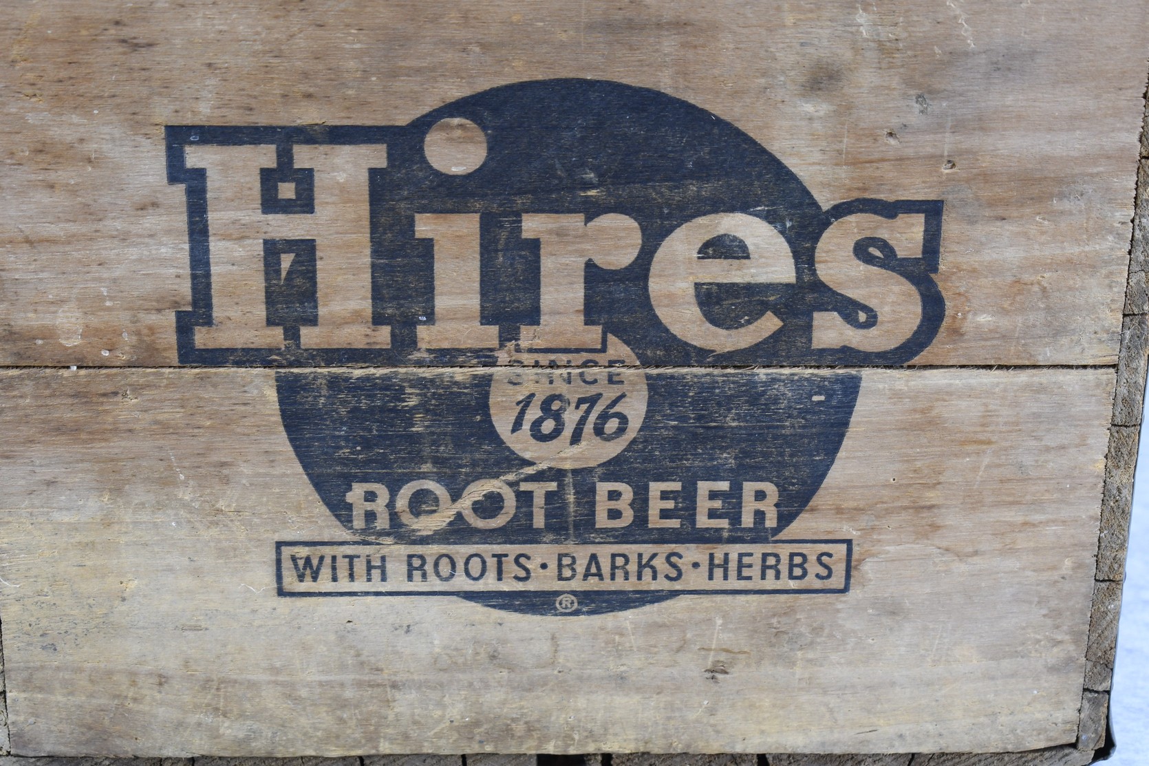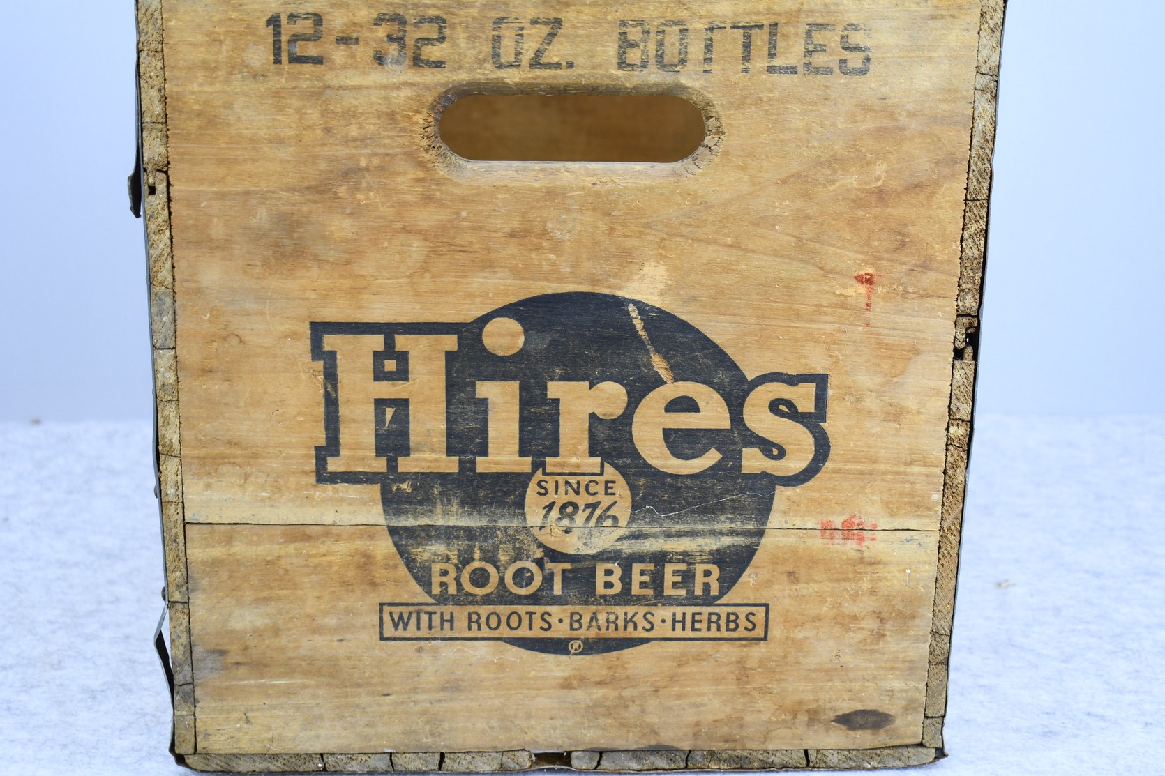 159. Wooden “Hires” (Since 1876) Root Beer Carrier w/Roots, Barks and Herbs12 32oz. Bottles – Carrier has Labels on All Sides
