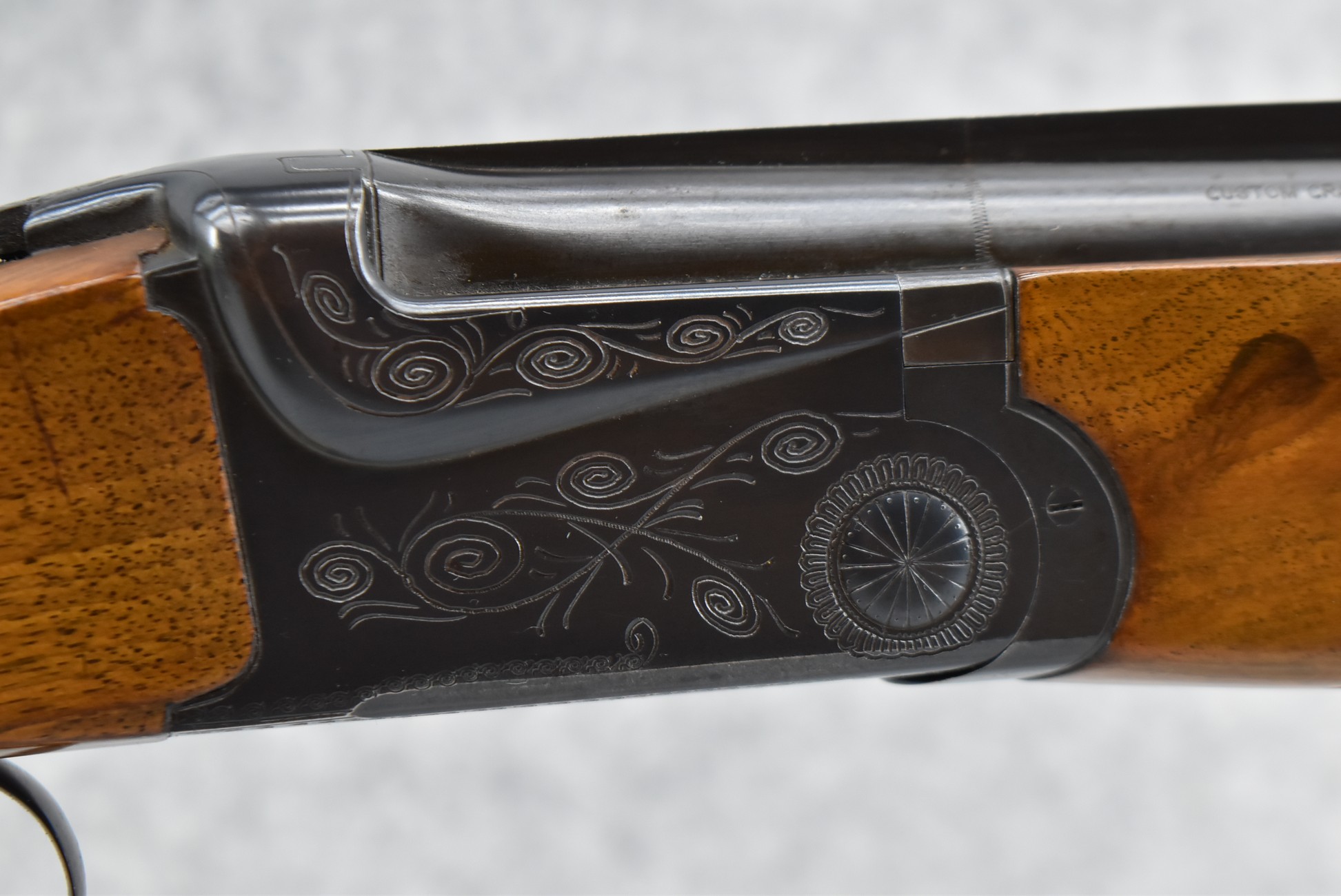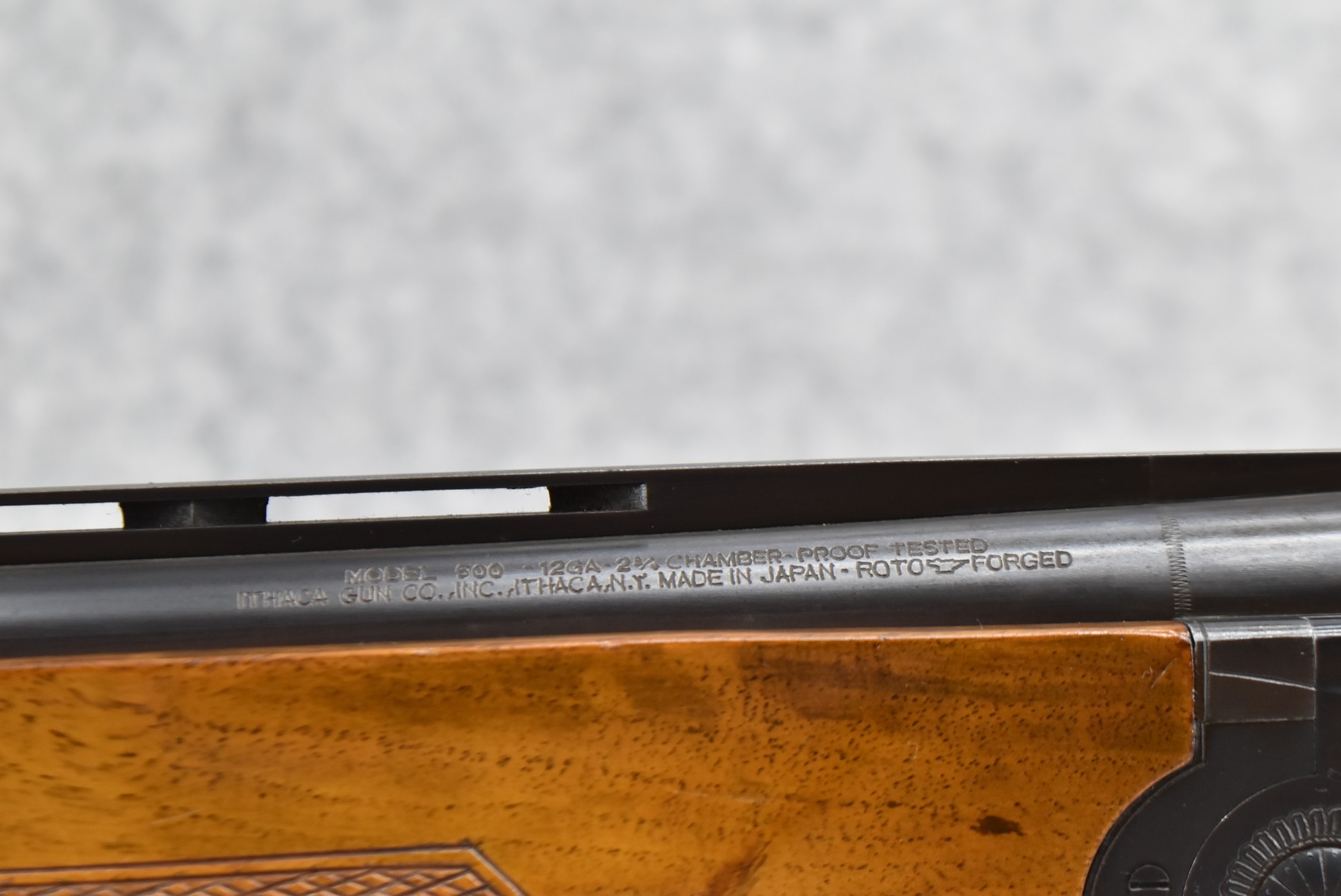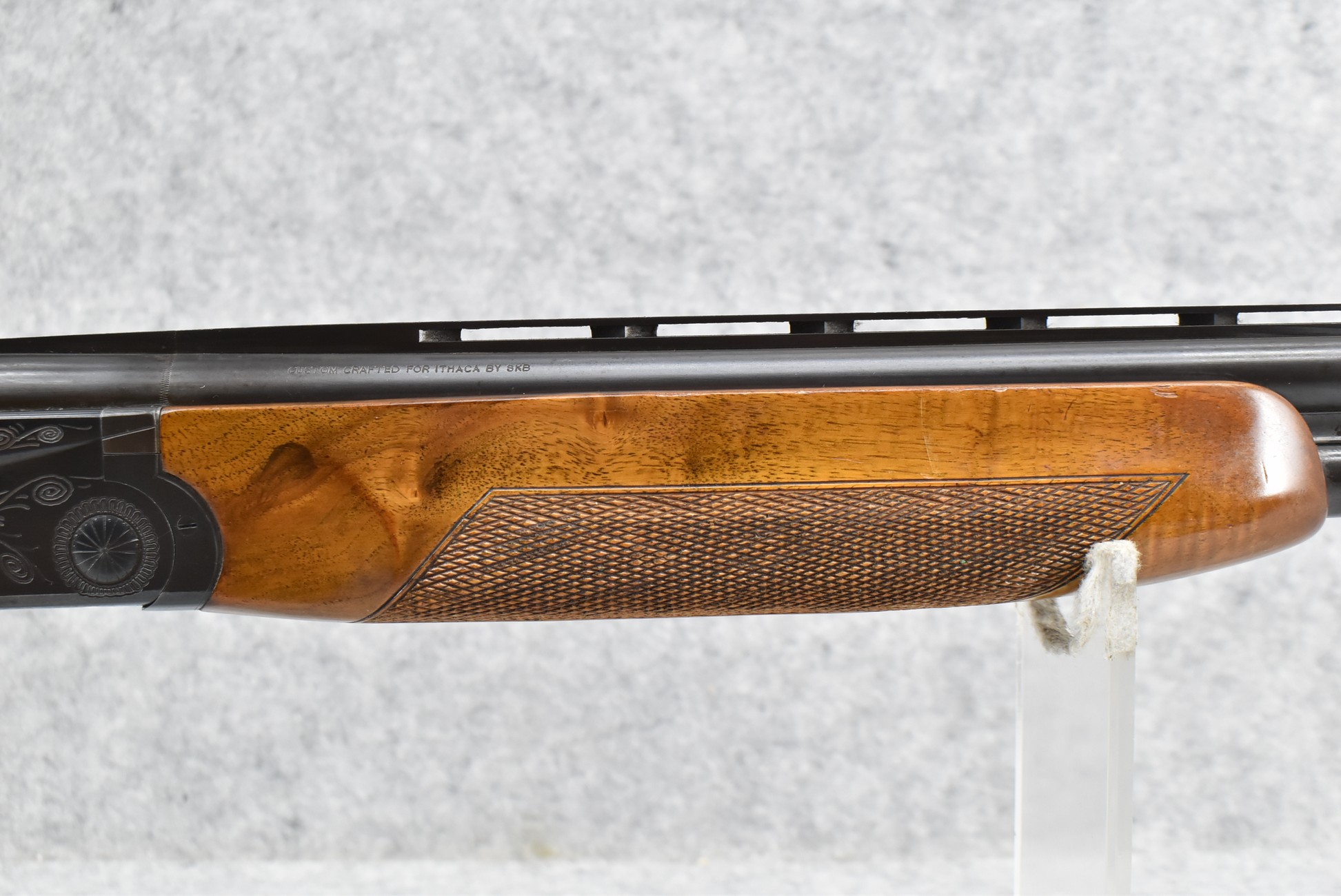 159R. Ithaca Gun Co. – Mod. 500 – 12ga. Over-Under Shotgun – w/28” F/Mod. Choked, Vent-Rib Barrels w/Double Bead Sights – Blued Finish – w/Engraved Frame on All Sides – w/Checkered Capped Pistol Grip Wood Stocks w/Pachmayr Butt Pad