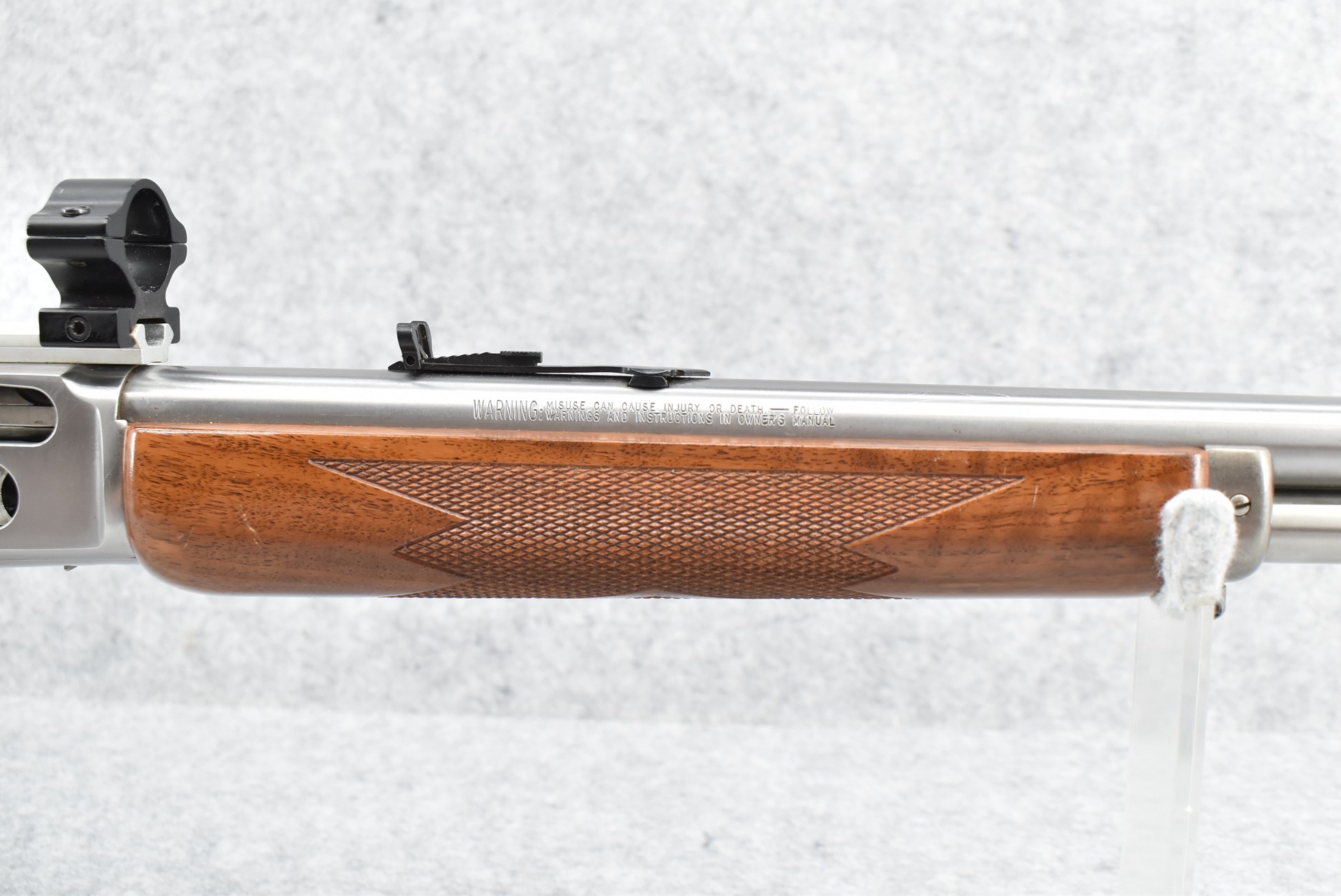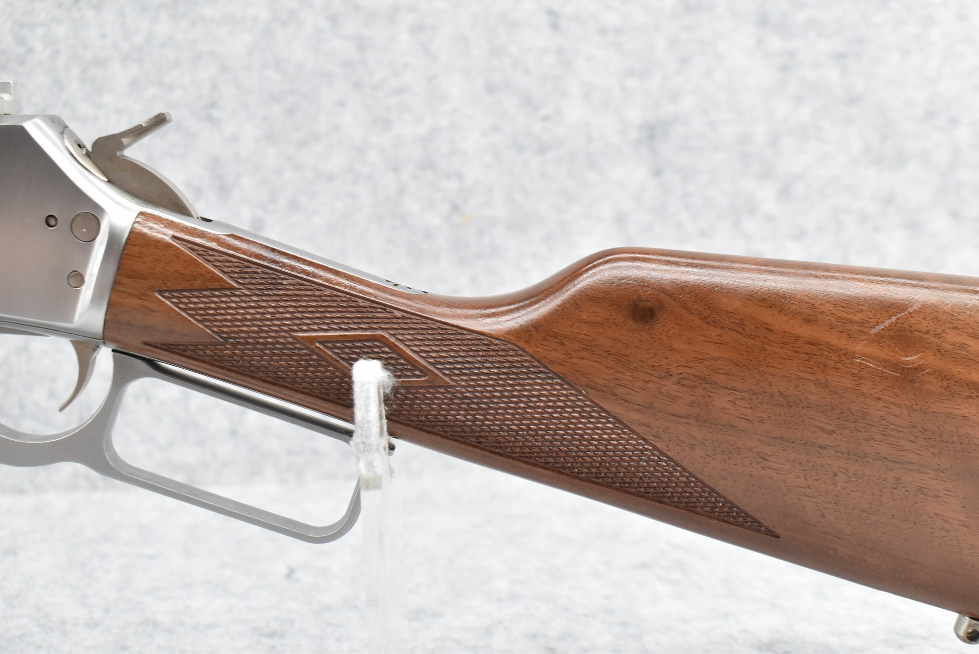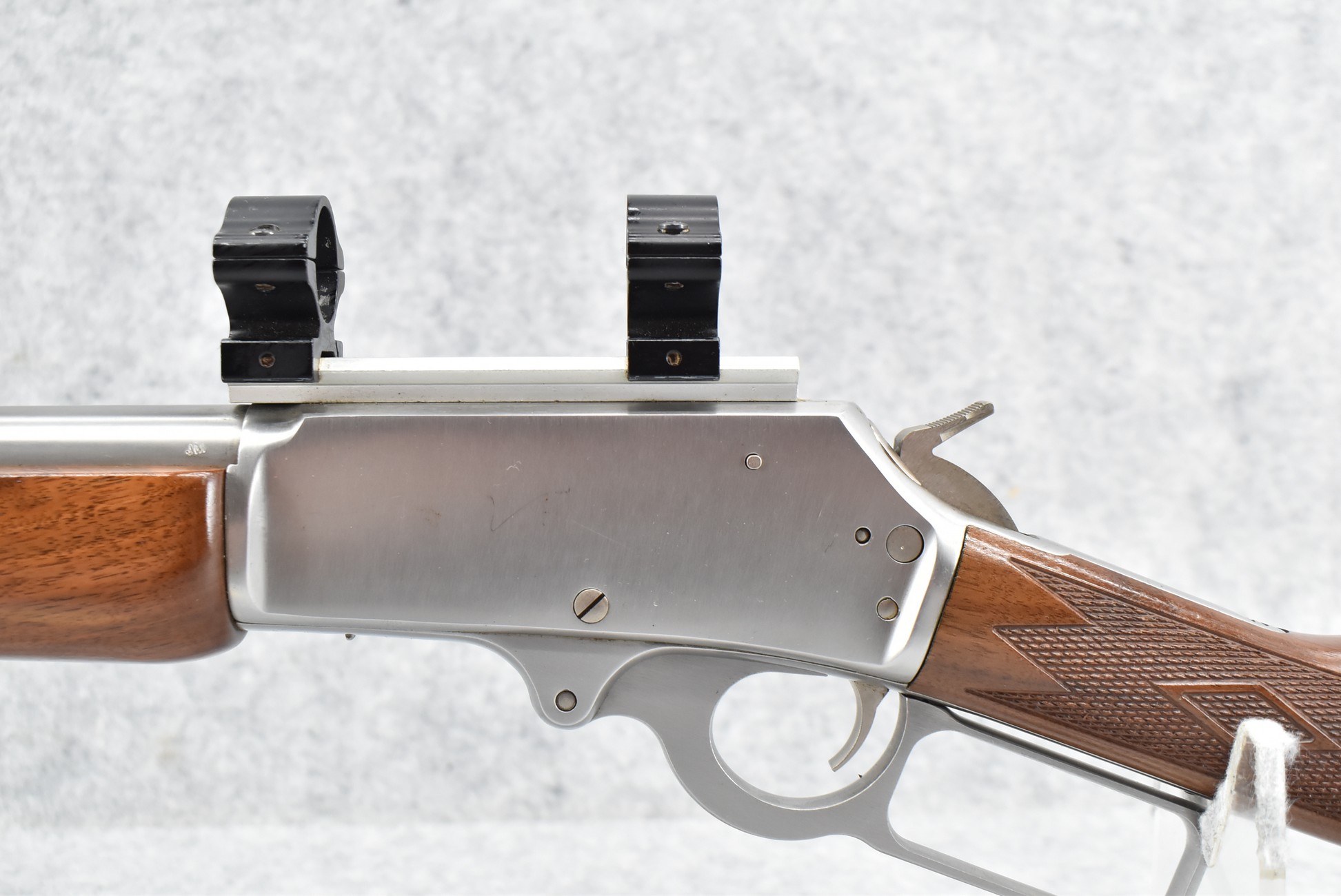 15R. Marlin – Mod. 1895 GS – 45-70 Gov’t Cal. Lever Action Rifle – w/18½” Barrel w/Hooded Ramp Front and Adjustable Rear Sights – Stainless Finish – w/Checkered Straight Grip Wood Stocks w/Factory Butt Pad – w/Tubular Magazine – w/2-Piece Scope Rings – w/Leather Sling