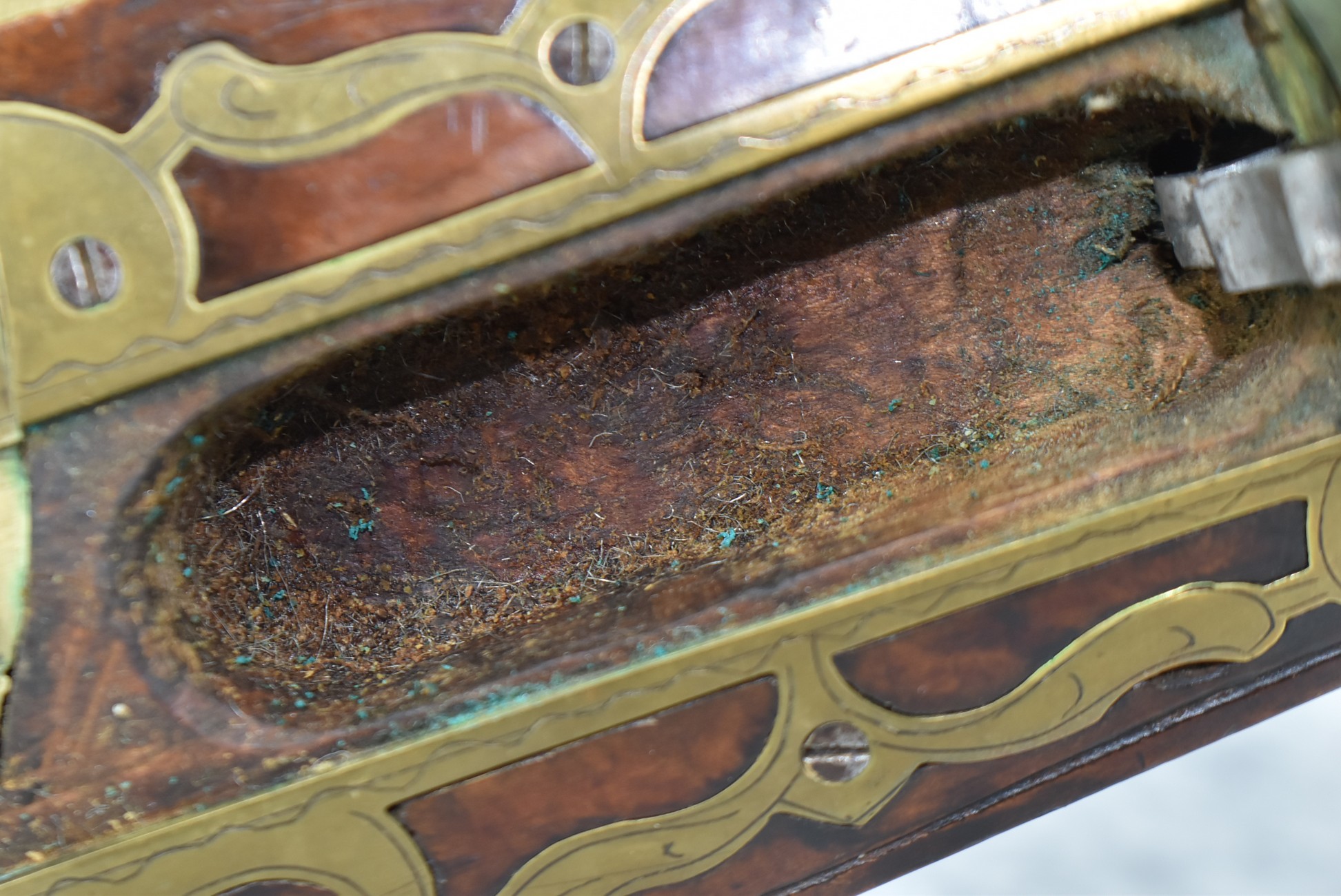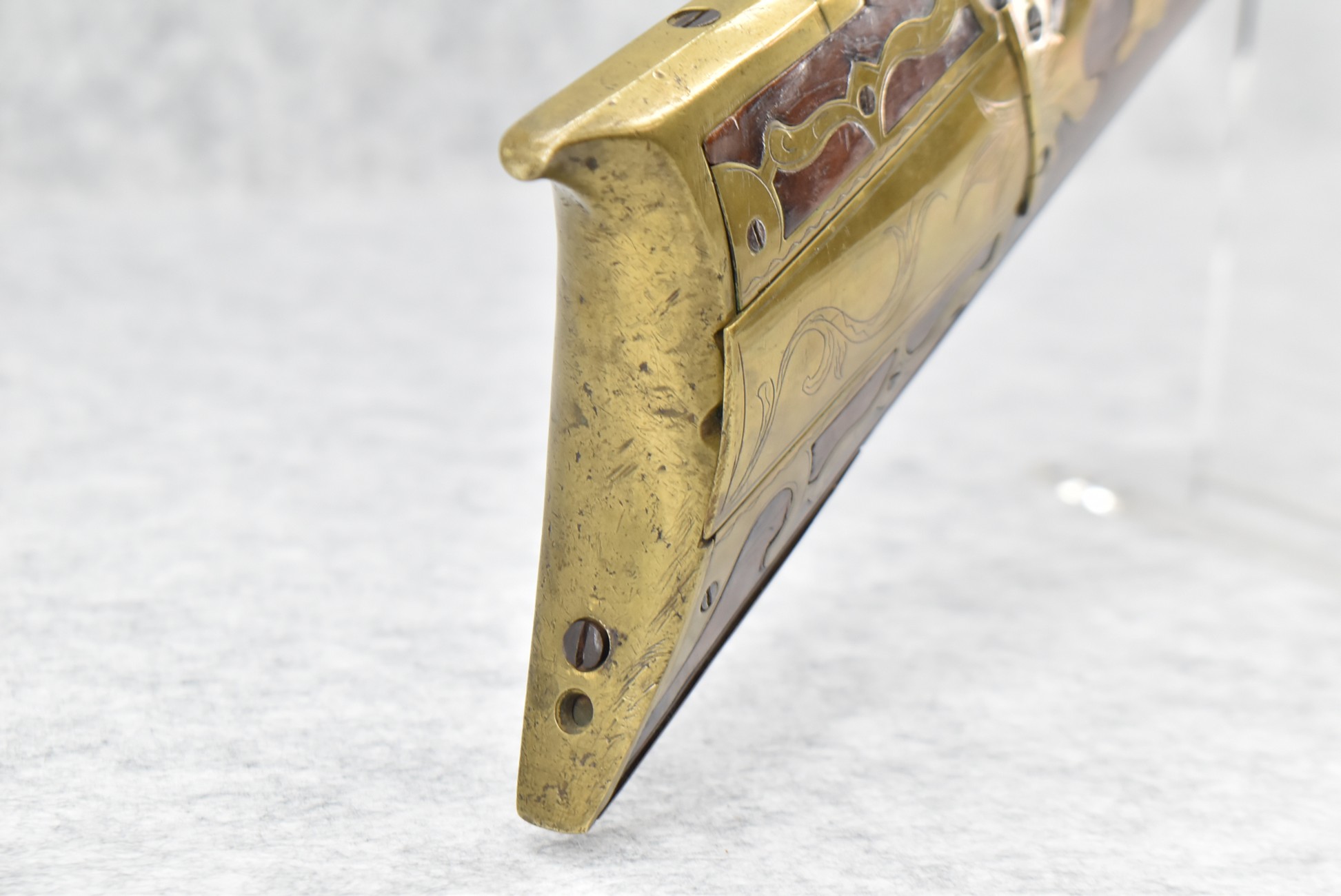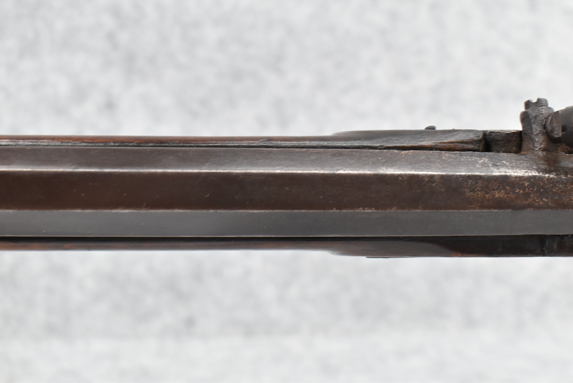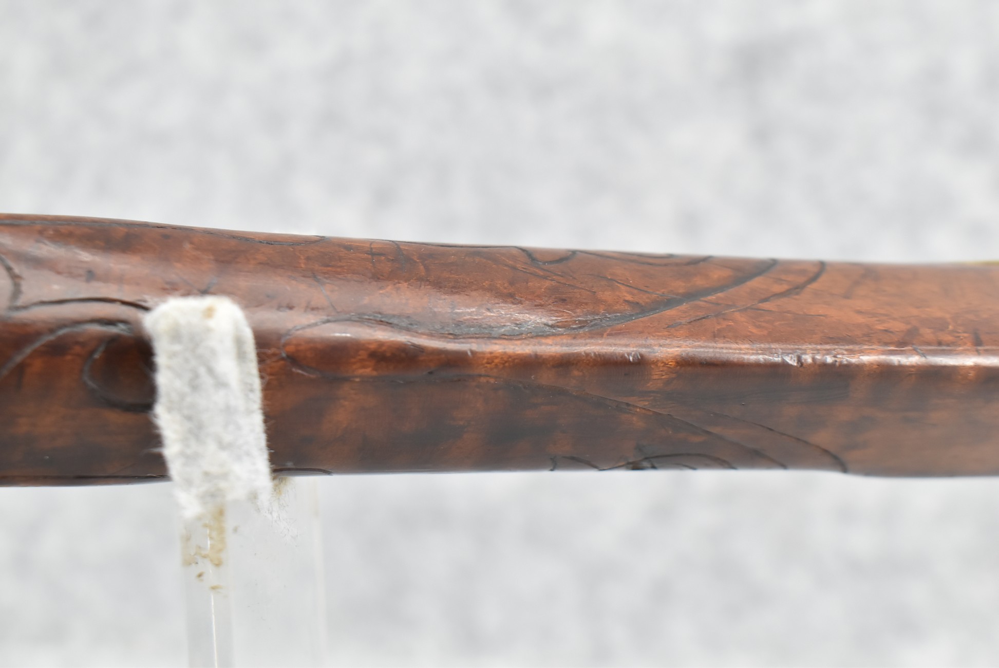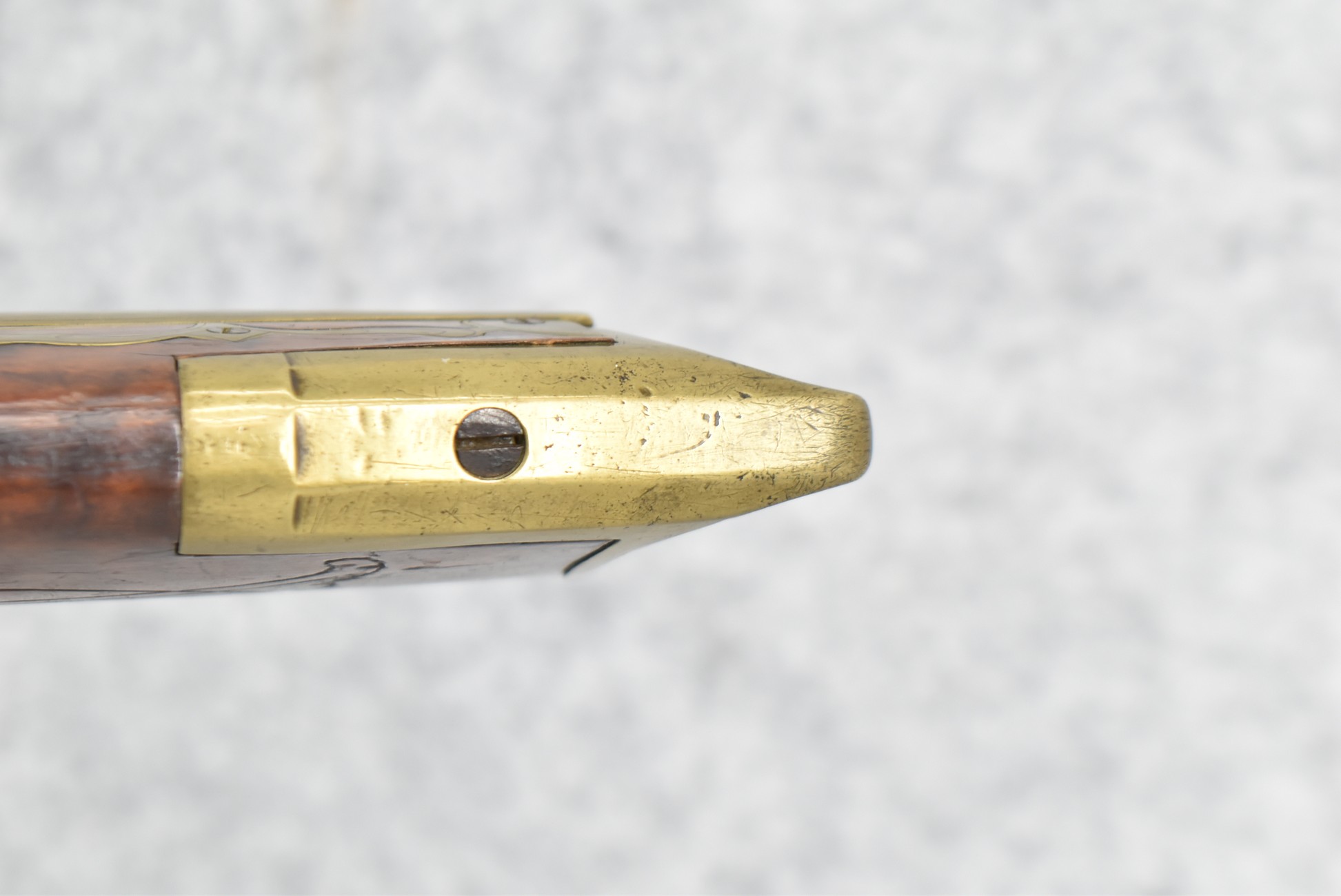 161. Unsigned 35 Cal. Percussion Kentucky Long Rifle Attributed to Jonathan Dunmeyer in Somerset County, PA – w/41” Octagon Barrel w/Sights – w/Full Length Tiger Maple Incised Carved Stock at Wrist, Cheek Piece, Side at Rear Entry Pipe – w/Very Nice 4pc. Patch Box Identical to #130 in Kentucky Rifle & Patch Boxes Vol. 2 by Chandler & Whisker, & Identical Engraving Work – Percussion Cap Lock Signed “D” in Script – w/Brass Furniture – w/Double Set Triggers – Nice Gun! – Some Thought That This Gun Could be a Benjamin Troutman Who Was Also From Somerset County w/A Jonathan Dunmeyer Patch Box, but Many Feel it is a Jonathan Dunmeyer