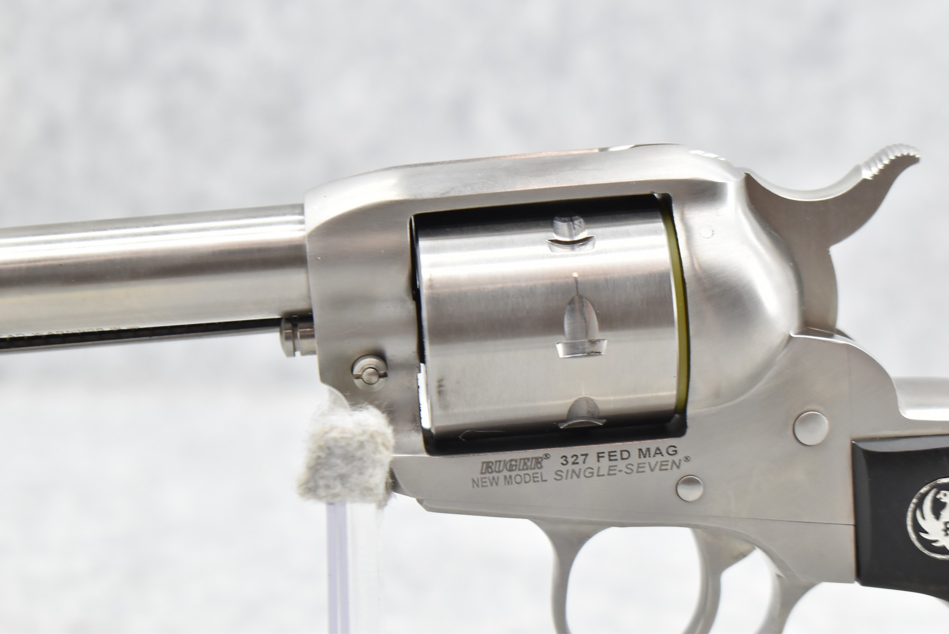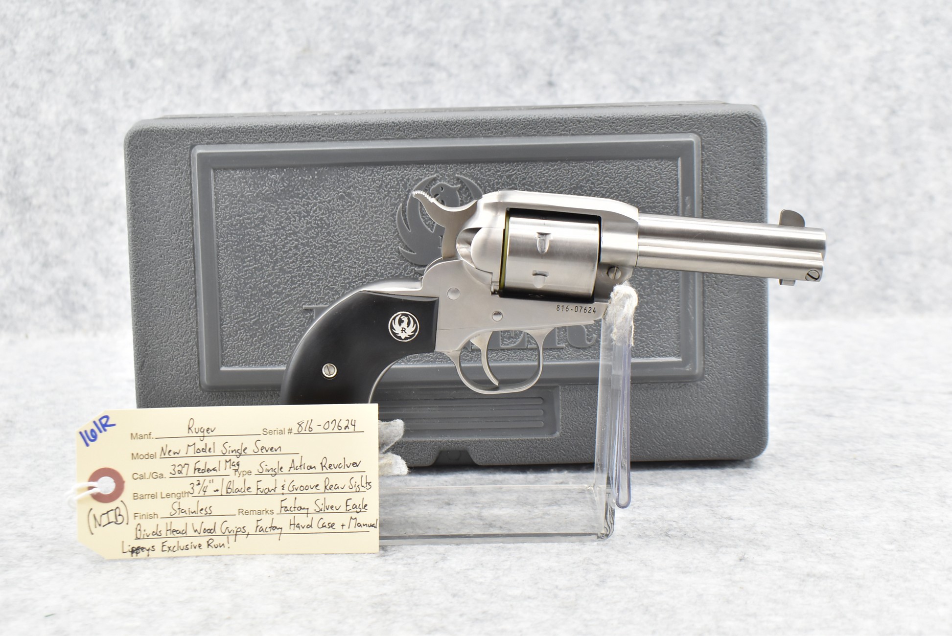 161R. Ruger – Mod. New Model Single Seven – 327 Federal Mag. Cal. Single Action Revolver – w/3¾” Barrel w/Blade Front and Rear Grooved Sights – Stainless Finish – w/Factory Silver Eagle Birdshead Wood Grips – New in Factory Hard Case w/Manual – Lipsey’s Limited Edition Exclusive Run! – Twin to Gun #161R