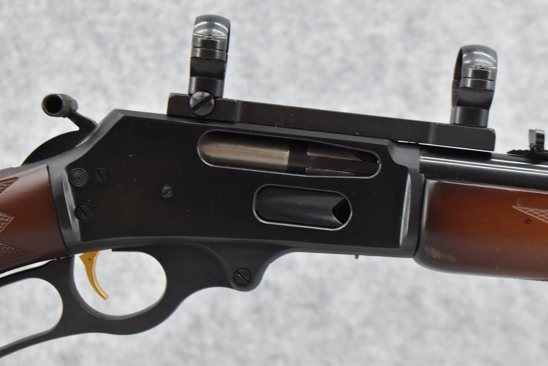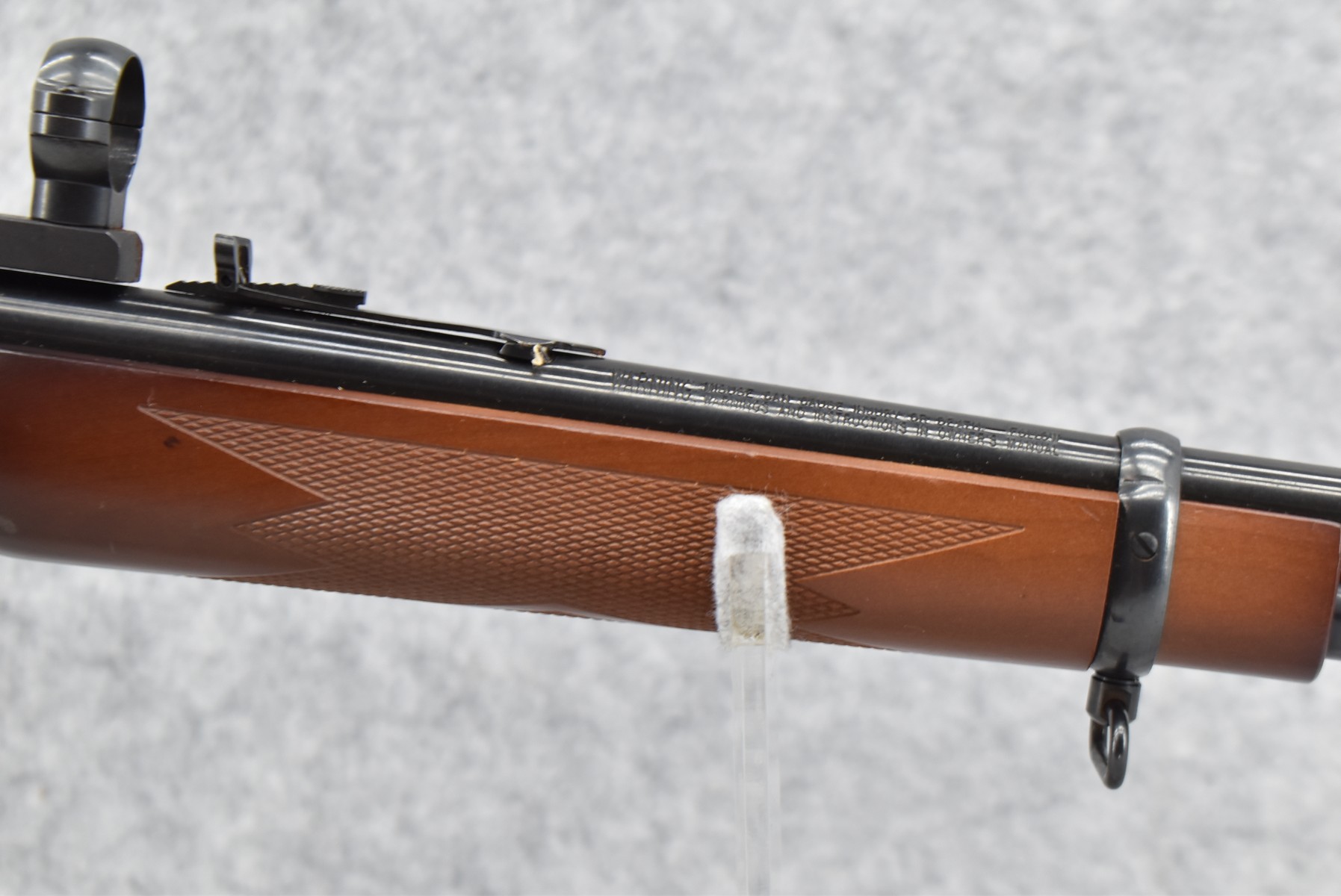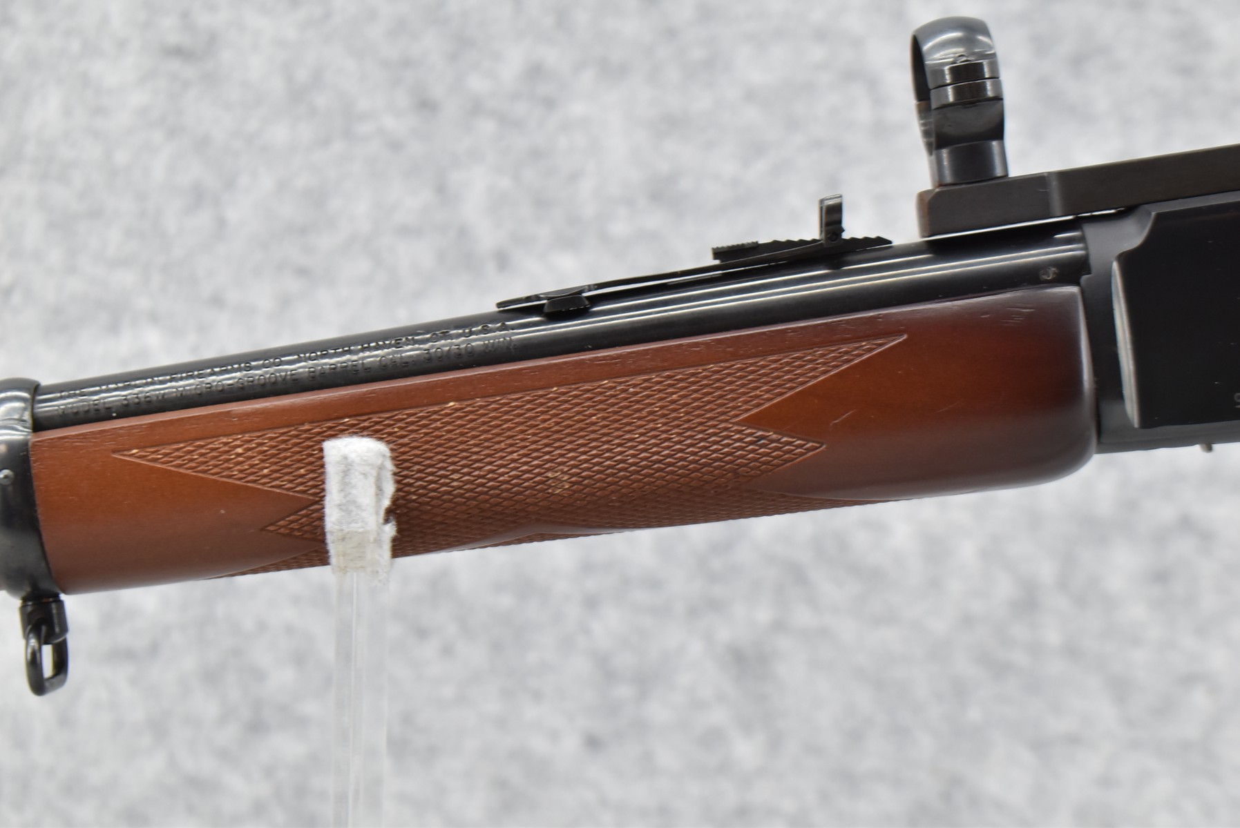 164R. Marlin – Mod. 336 W – 30-30 Win. Cal. Lever Action Rifle – w/20” Barrel w/Blade Front & Flip Up Adj. Rear Notch Sights w/Full Length Tubular Magazine – Blued Finish – w/Checkered Pistol Grip Wood Stocks w/Factory Butt Plate – w/Sling Loops – w/Scope Rings & Mounting Base