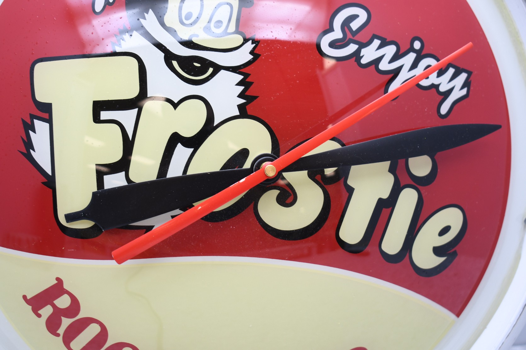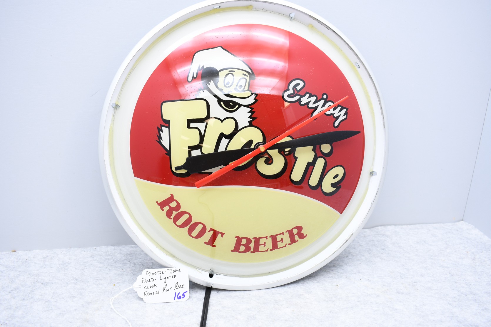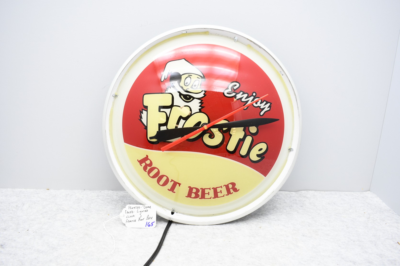 165. Frostie Root Beer Lighted Dome Faced Clock – Produced by American Retro LLC – “Enjoy Frostie Root Beer”