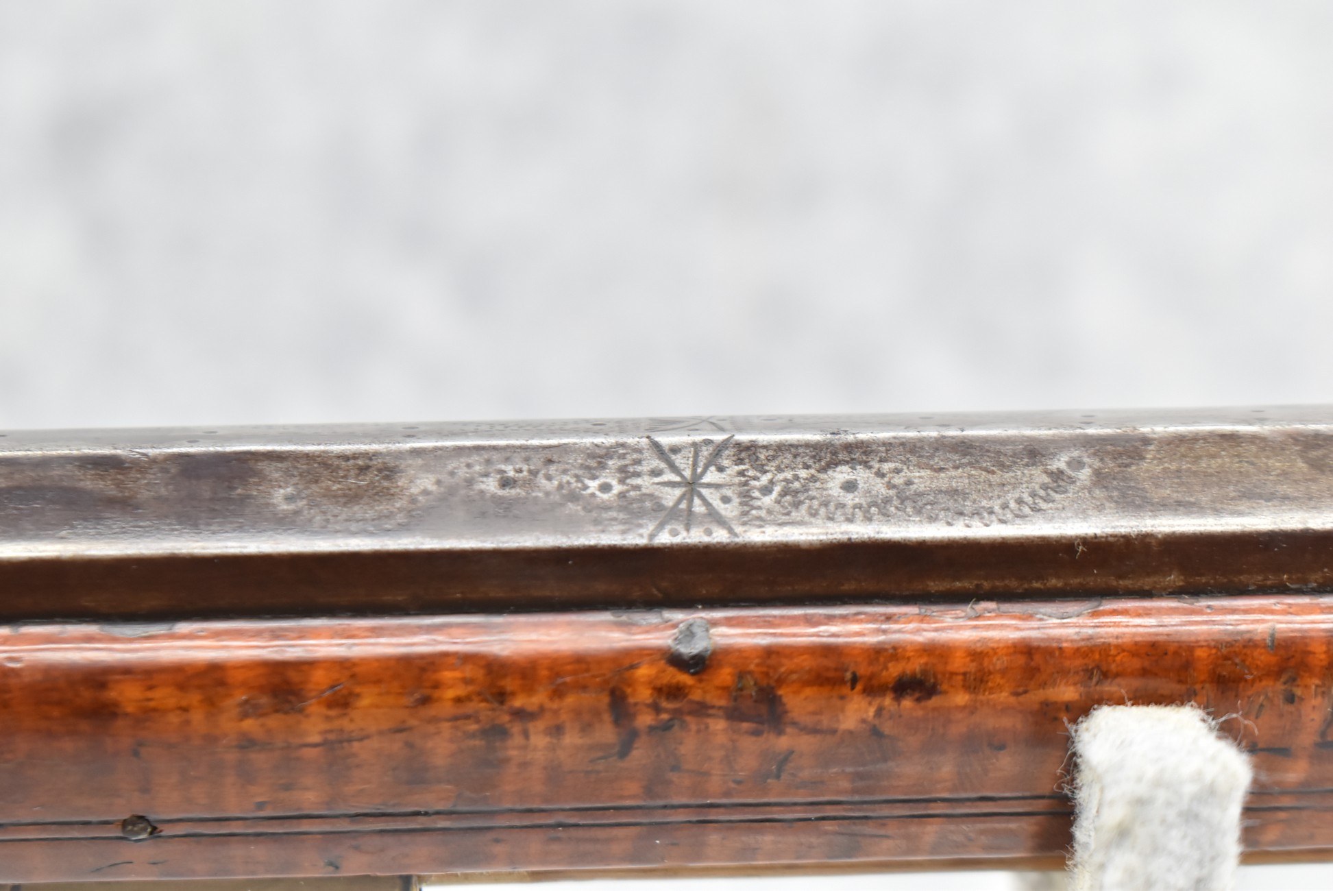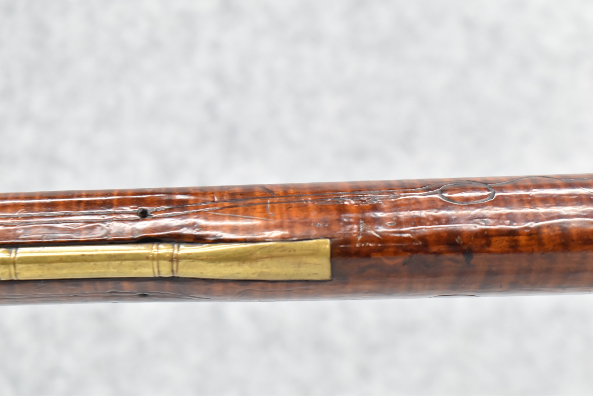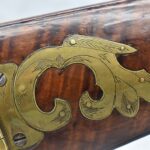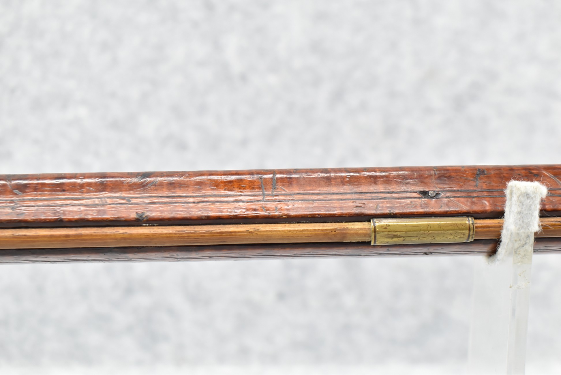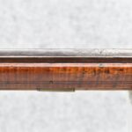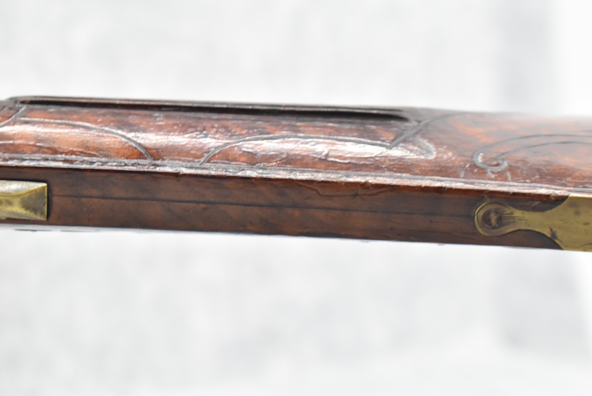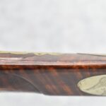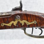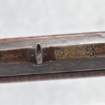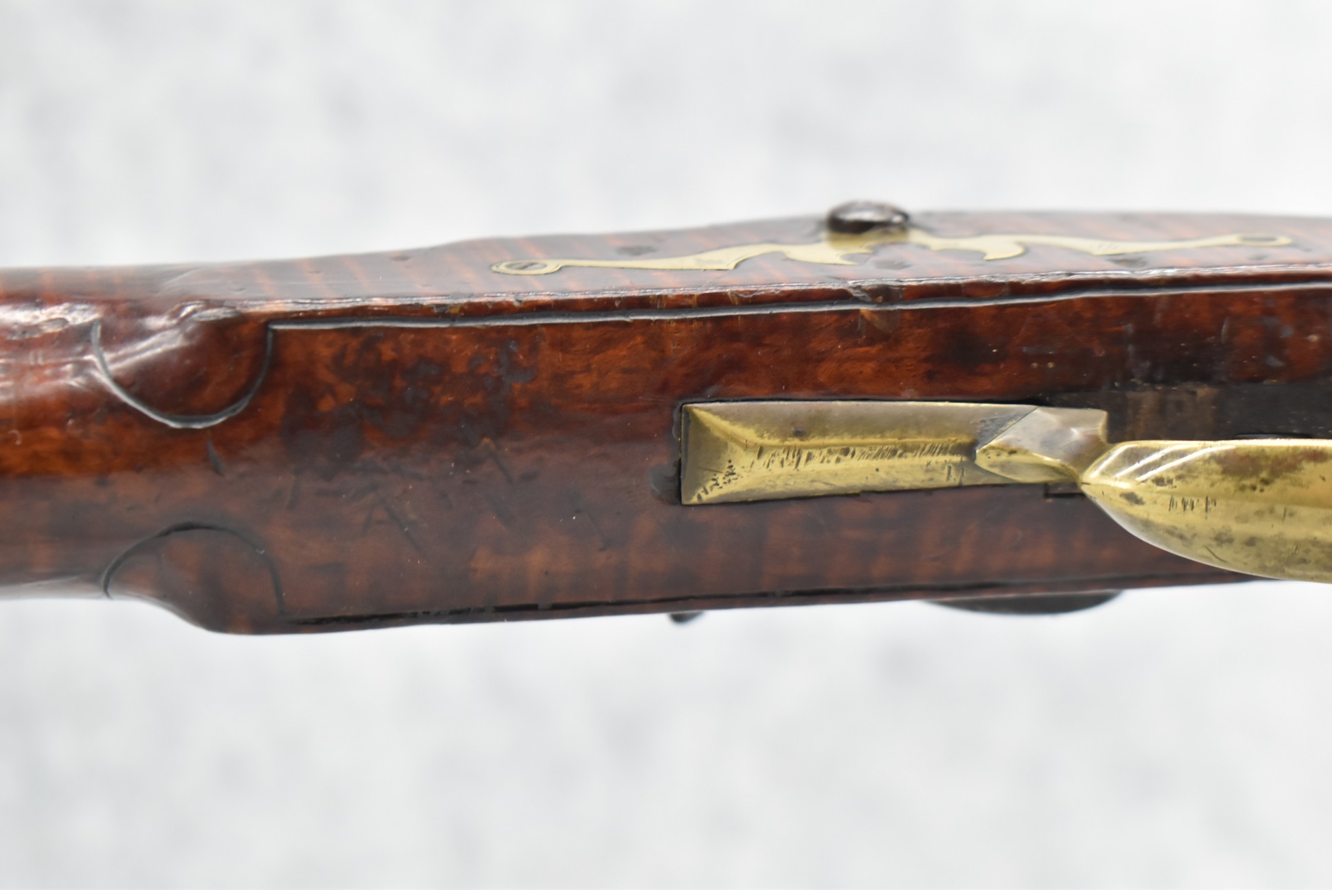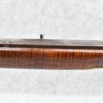 165. Signed Samuel Mier (1832-1898) 36 Cal. Full Stock Kentucky Long Rifle – w/36” Signed & Engraved “Sam. Mier Somerset” Octagon Barrel w/Sights – w/Full Length Stock w/Full Length 4pc. Patch Box Engraved w/Button Release on Toe Plate – w/Incised Carving on Butt Stock & Fore Stock at Rear Entry Pipe – w/Brass Furniture – Illegible Name on Percussion Lock – w/Unusual Brass Back Lock Plate – Barrel is Heavily Engraved – w/Very Nice German Silver Cheek Piece Inlay of a Spread Wing Eagle w/Shield – w/Double Set Triggers – A Must See Gun w/A Great Incredible Heavily Engraved Patch Box – Overall Length of 51”