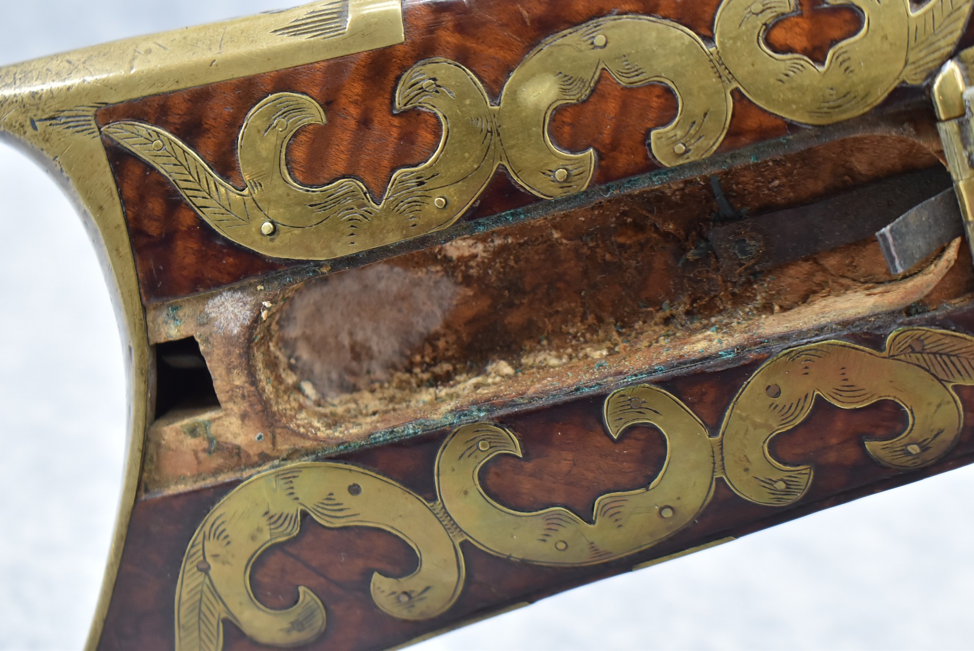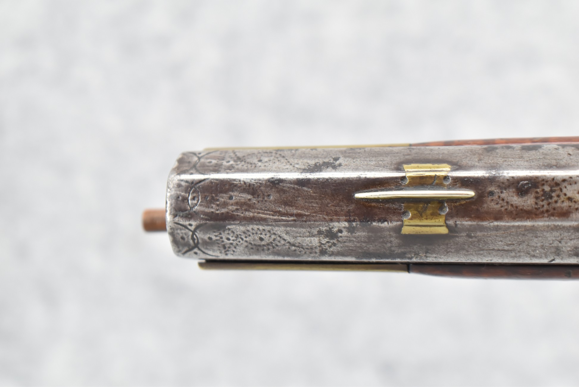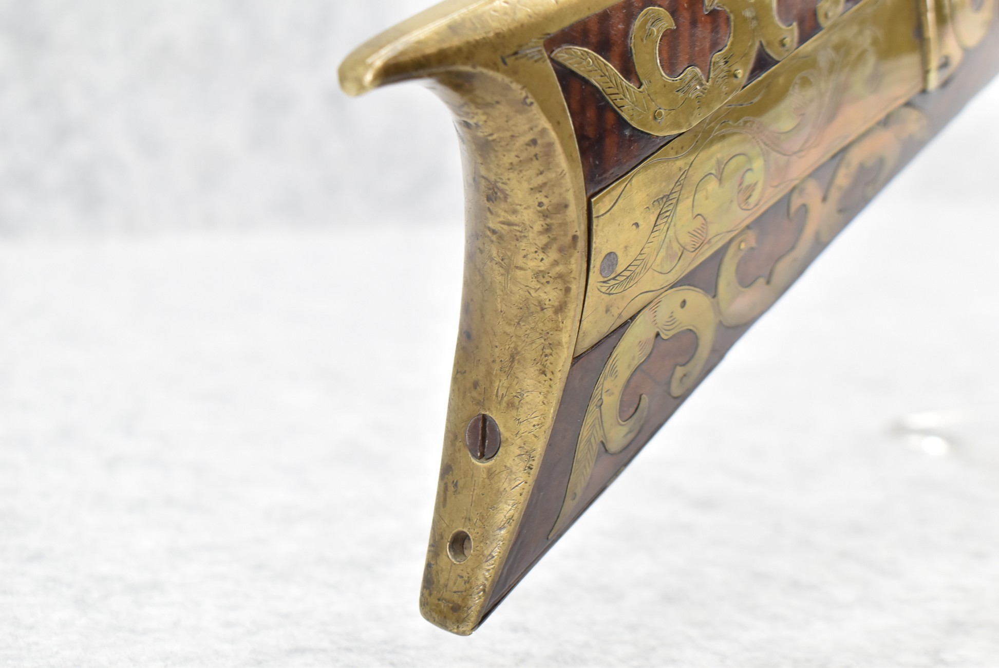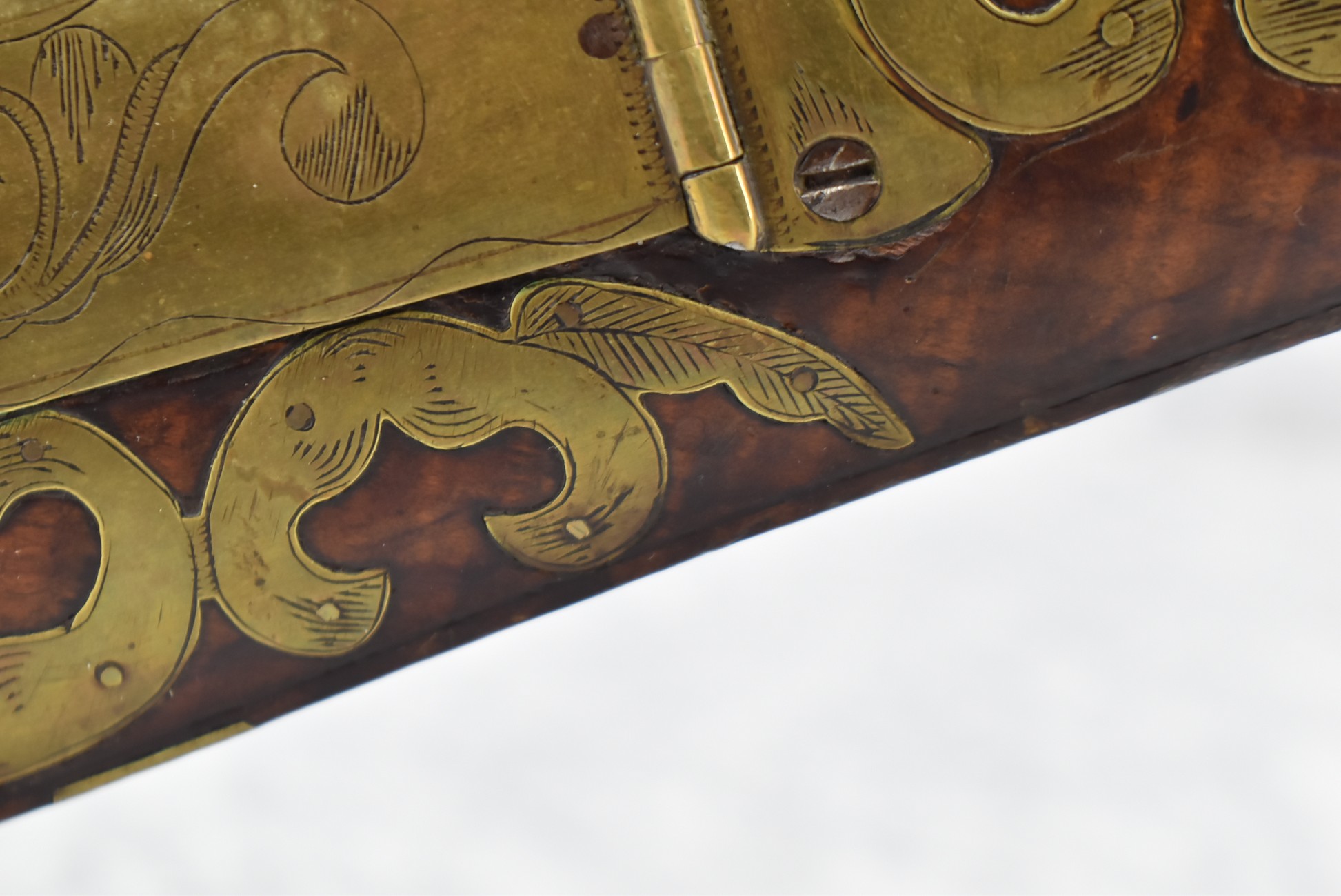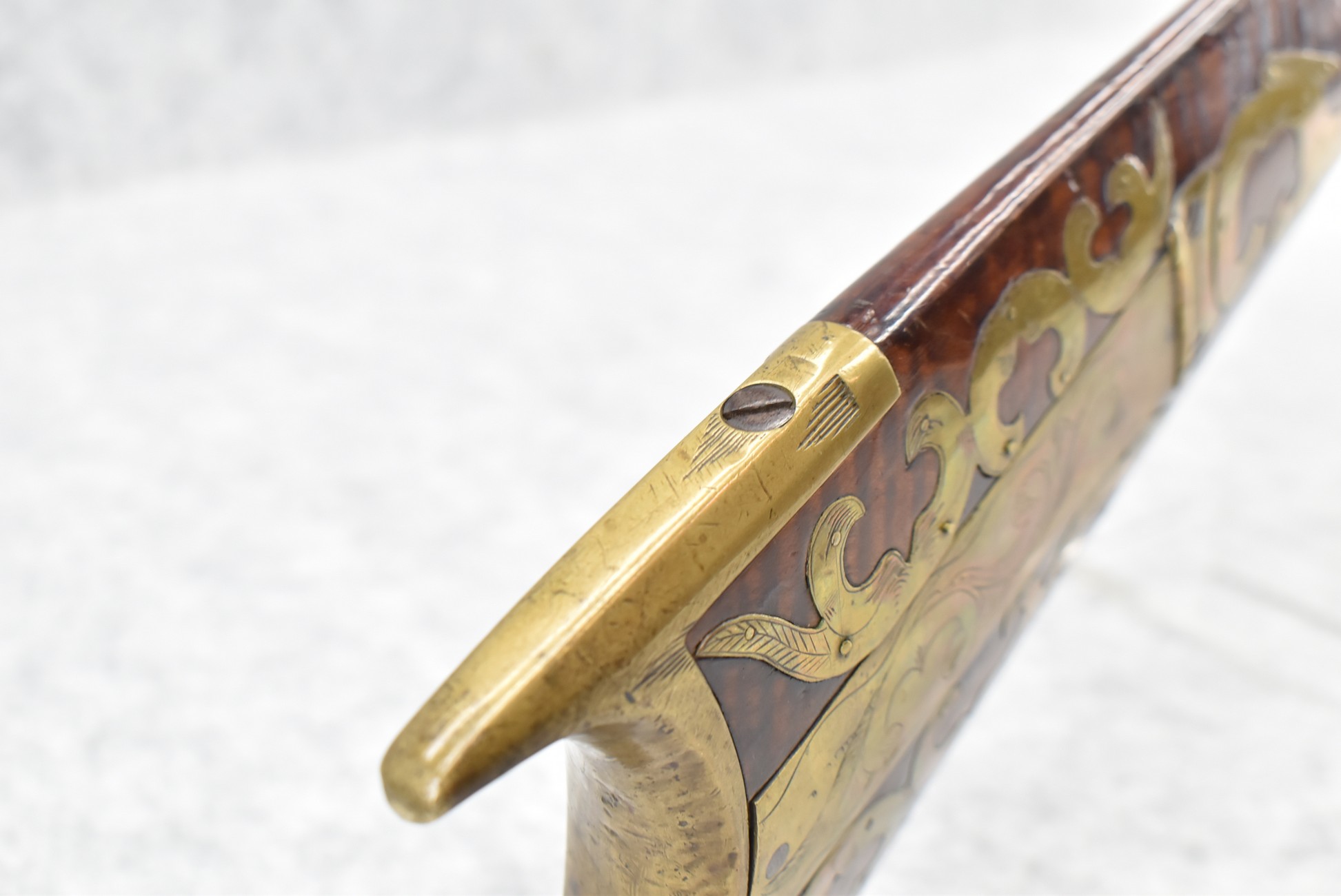 165. Signed Samuel Mier (1832-1898) 36 Cal. Full Stock Kentucky Long Rifle – w/36” Signed & Engraved “Sam. Mier Somerset” Octagon Barrel w/Sights – w/Full Length Stock w/Full Length 4pc. Patch Box Engraved w/Button Release on Toe Plate – w/Incised Carving on Butt Stock & Fore Stock at Rear Entry Pipe – w/Brass Furniture – Illegible Name on Percussion Lock – w/Unusual Brass Back Lock Plate – Barrel is Heavily Engraved – w/Very Nice German Silver Cheek Piece Inlay of a Spread Wing Eagle w/Shield – w/Double Set Triggers – A Must See Gun w/A Great Incredible Heavily Engraved Patch Box – Overall Length of 51”