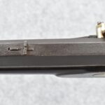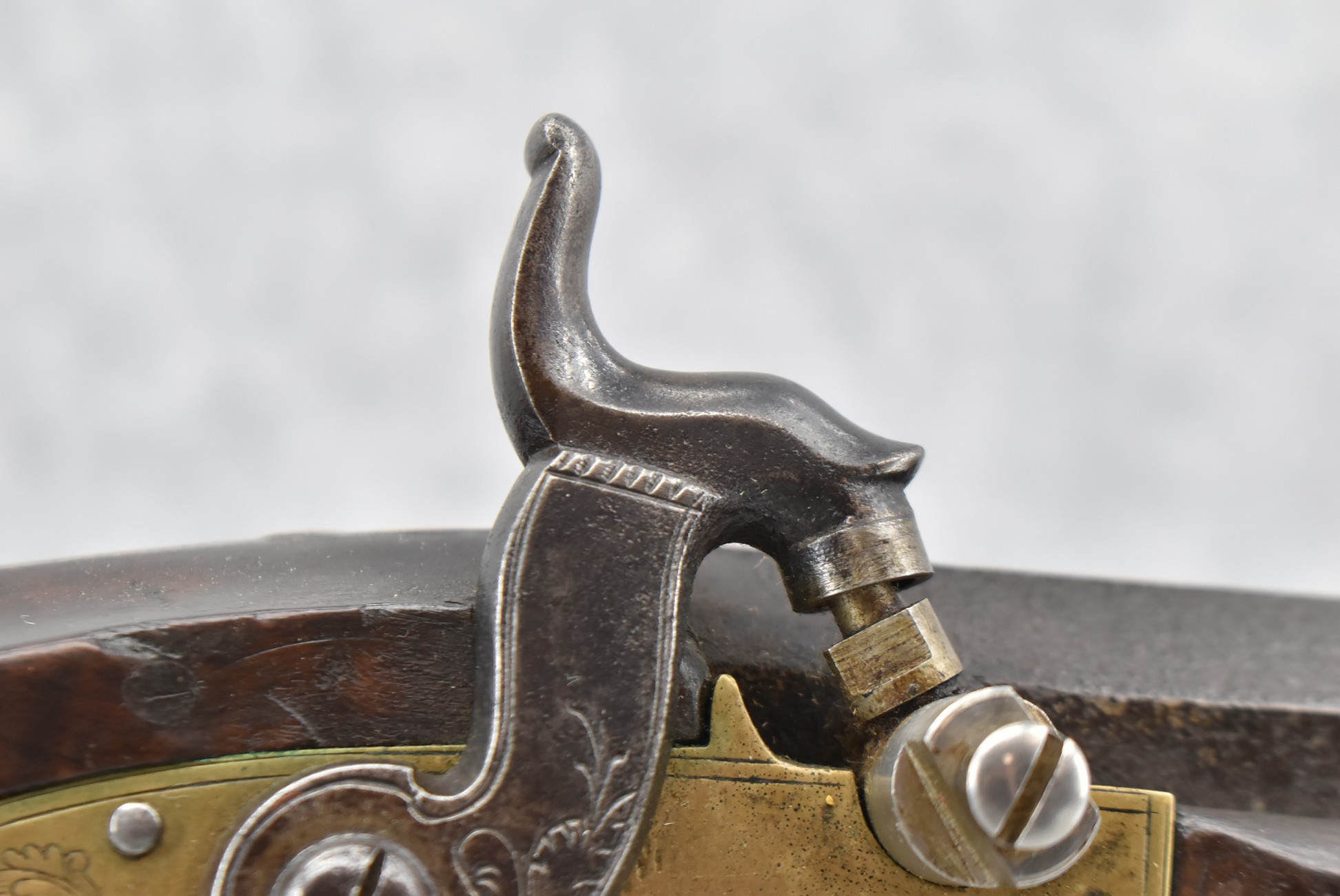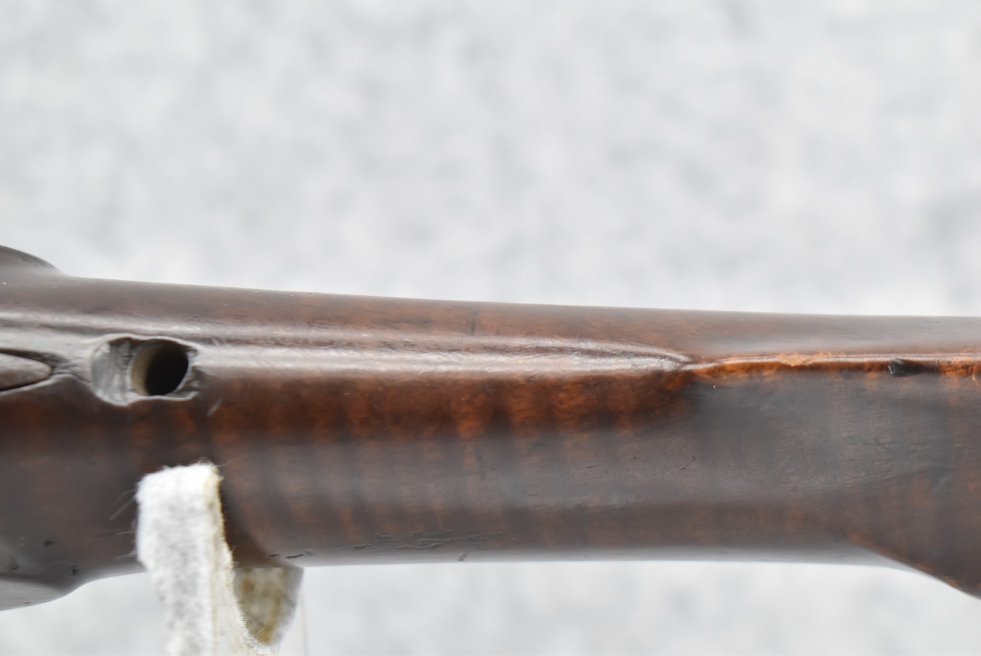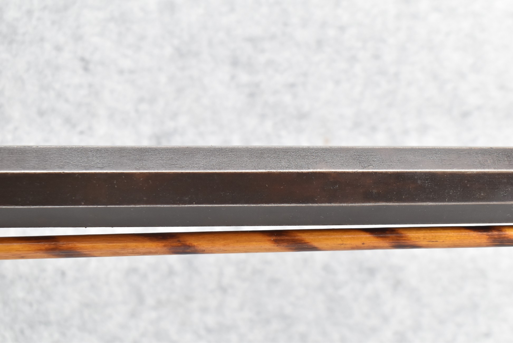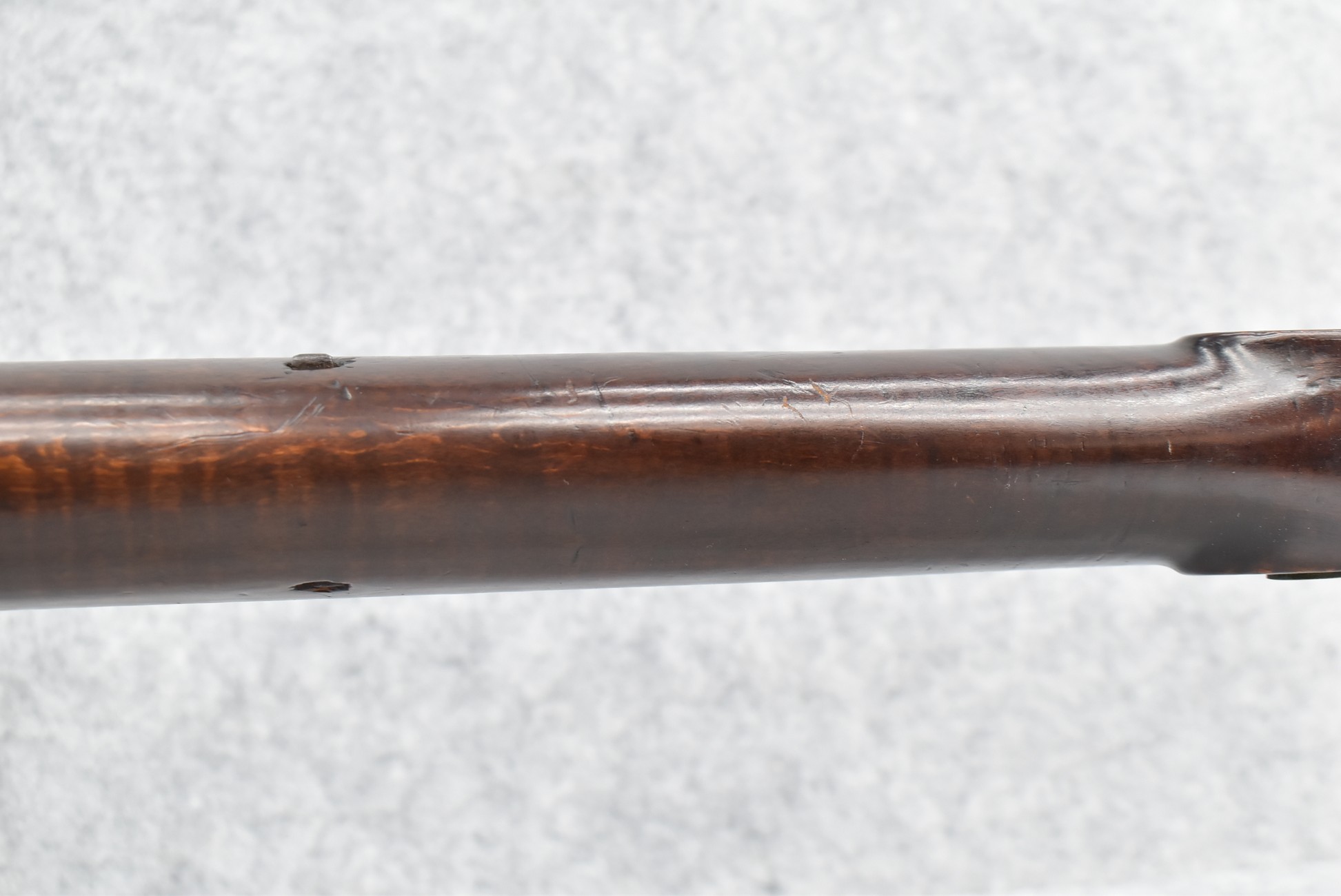 166. 60 Cal. Half Stock Percussion Target Rifle – w/36” Heavy Octagon Barrel (1 ¼” Diameter) w/Sights – w/Tiger Maple Wood Half Stock – w/Jos Gulcher Phila. Brass Lock & Iron Hammer Engraved – w/Double Set Triggers – w/Replacement Perc. Cap at Barrel, Front Ram Rod Pipe Replaced – Hole at Wrist May Have Been for a Tang Sight – Rear Sight Could be Covering Up Maker Signature Because of the Length – Overall Length of 51”