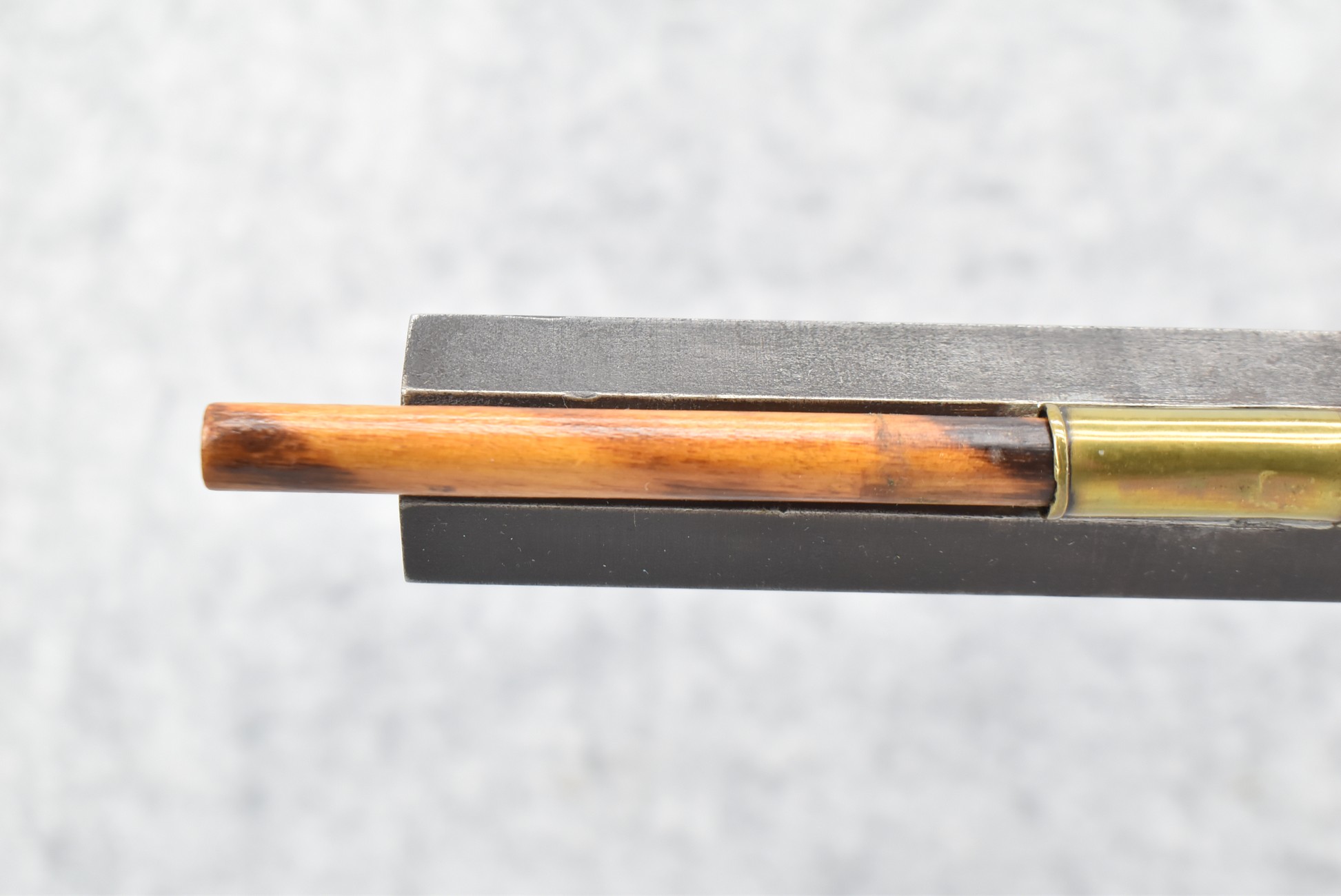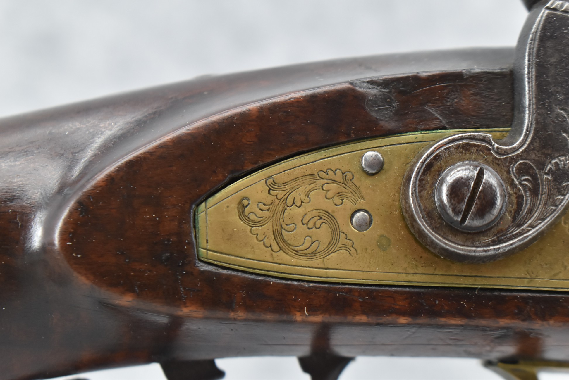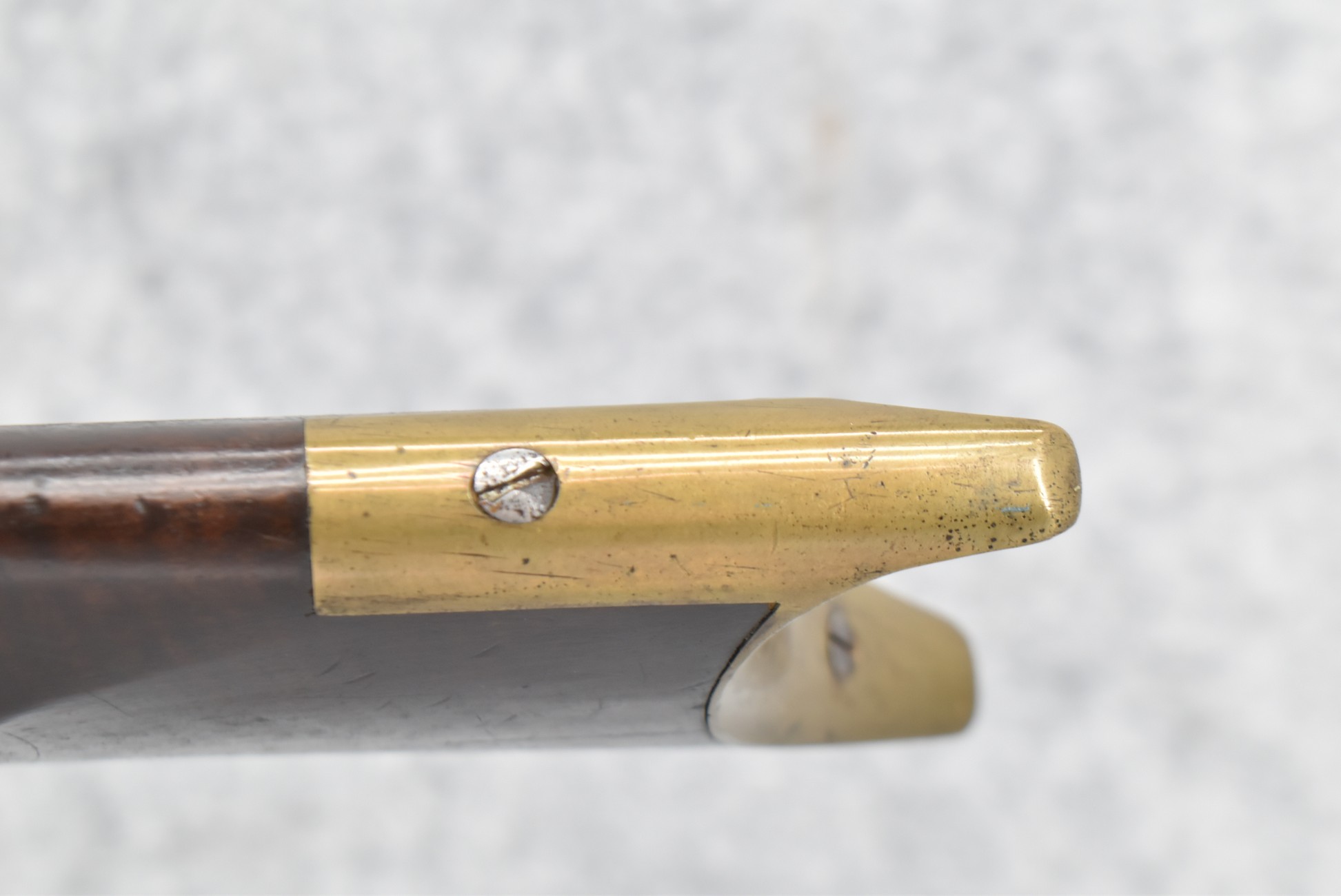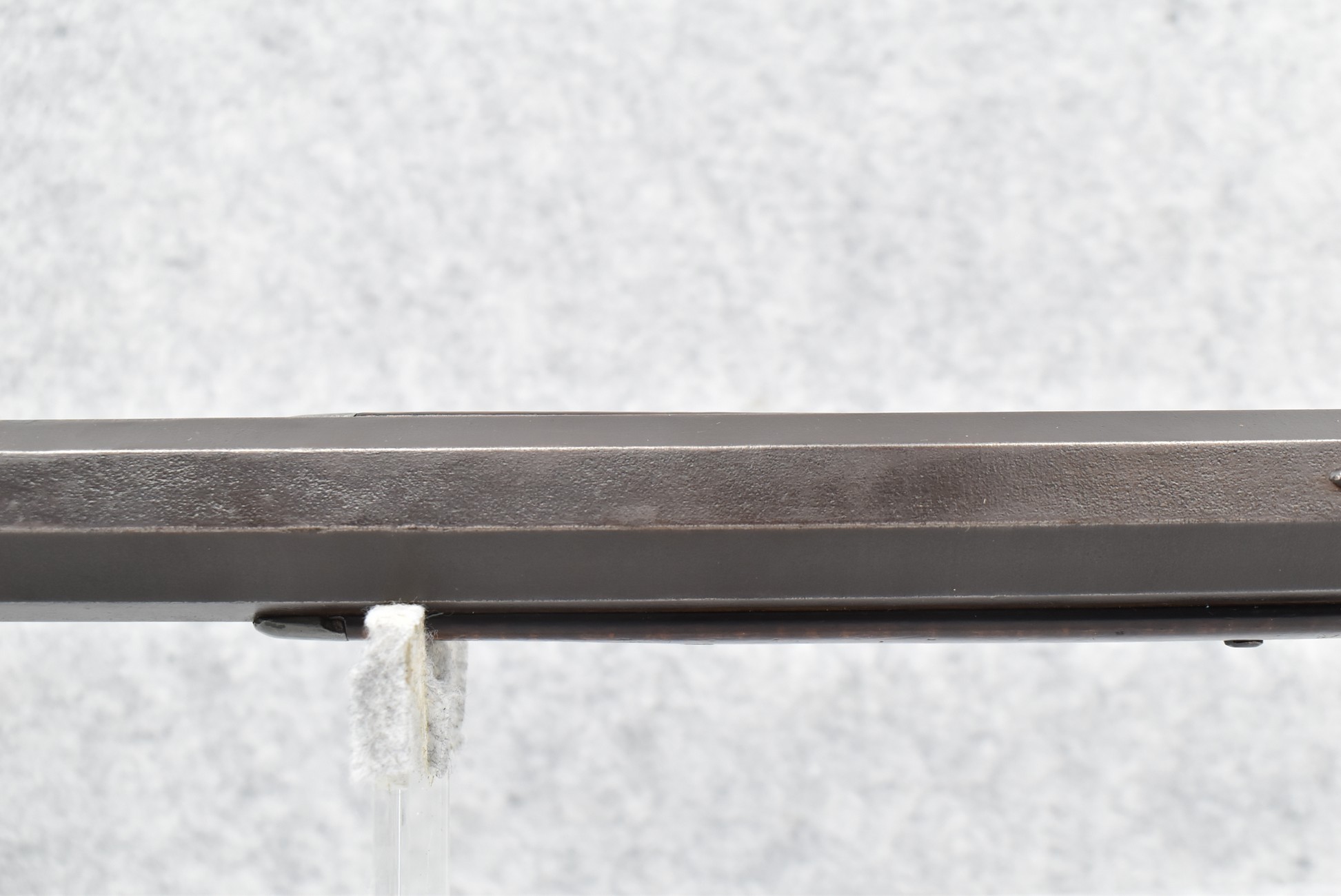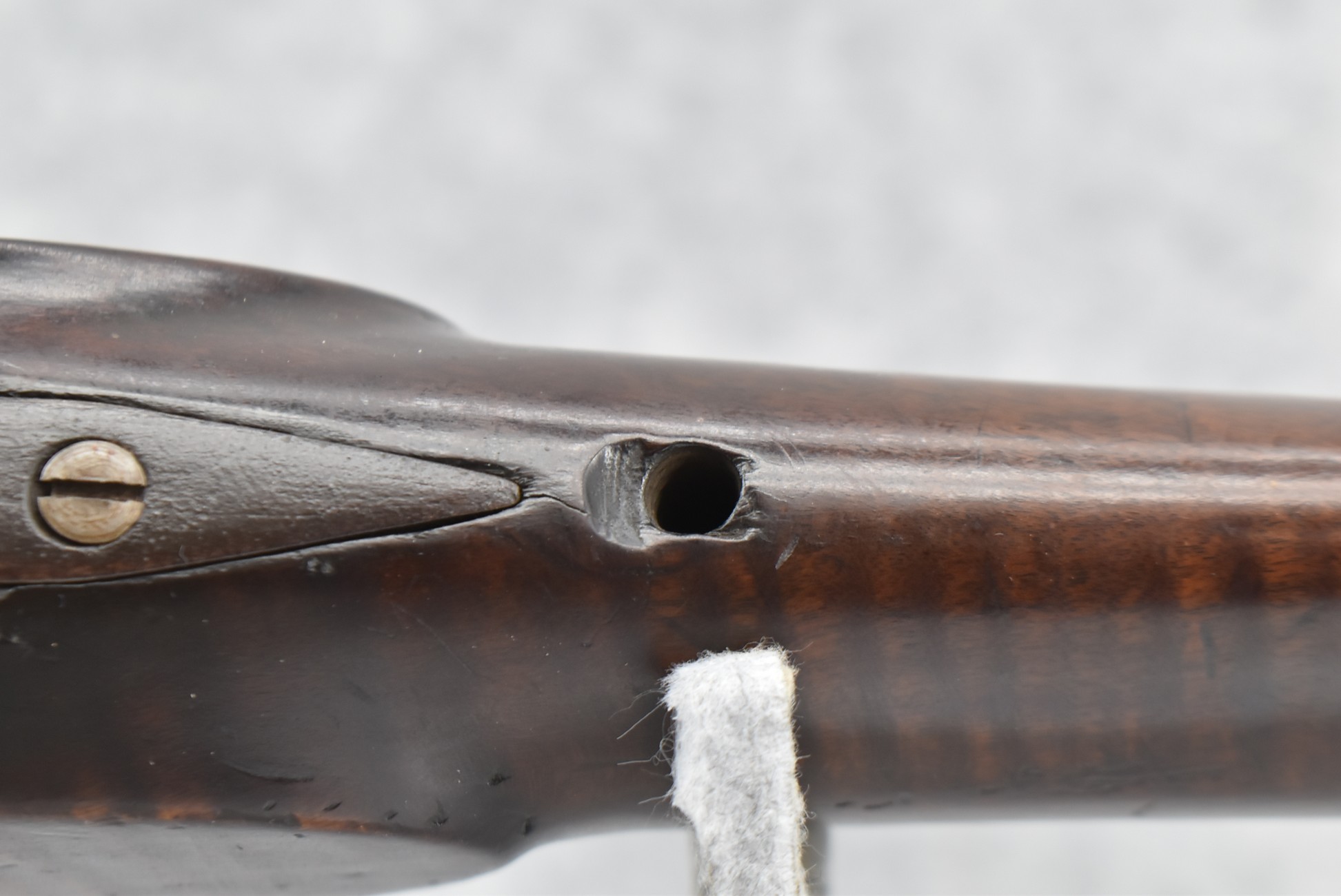 166. 60 Cal. Half Stock Percussion Target Rifle – w/36” Heavy Octagon Barrel (1 ¼” Diameter) w/Sights – w/Tiger Maple Wood Half Stock – w/Jos Gulcher Phila. Brass Lock & Iron Hammer Engraved – w/Double Set Triggers – w/Replacement Perc. Cap at Barrel, Front Ram Rod Pipe Replaced – Hole at Wrist May Have Been for a Tang Sight – Rear Sight Could be Covering Up Maker Signature Because of the Length – Overall Length of 51”