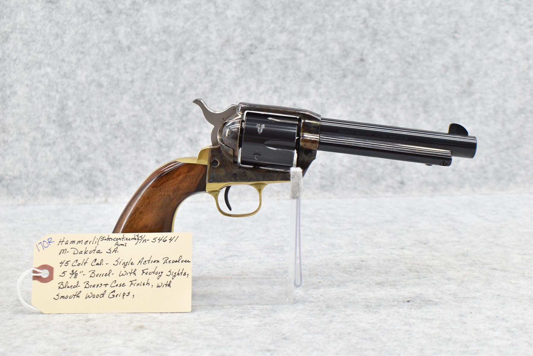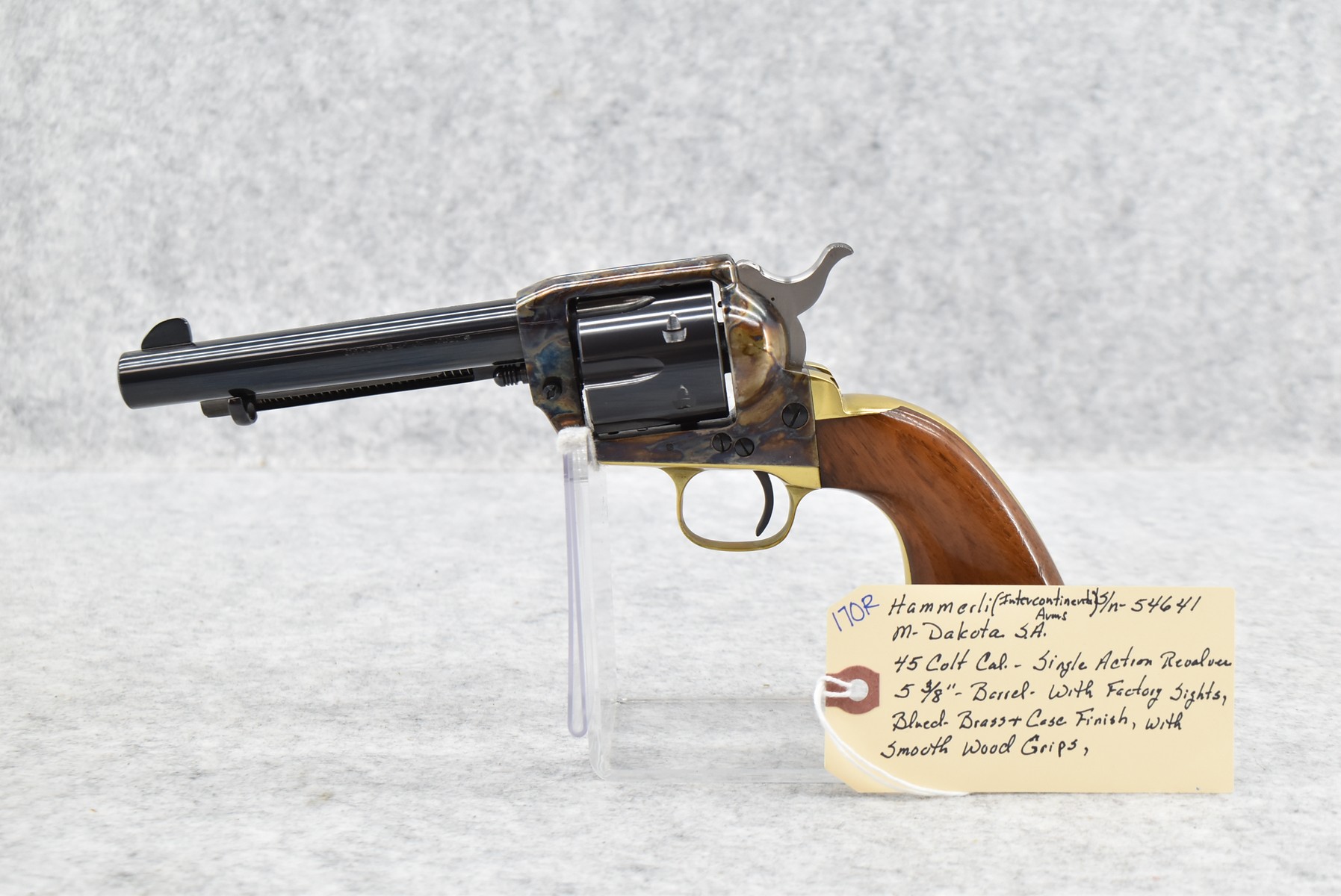 170R. Hammerli (Intercontinental Arms) – Mod. Dakota S.A. – 45 Colt Cal. Single Action Revolver – w/5 3/8” Barrel w/Factory Sights – Blued/Brass & Case Hardened Finish – w/Smooth Wood Grips