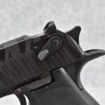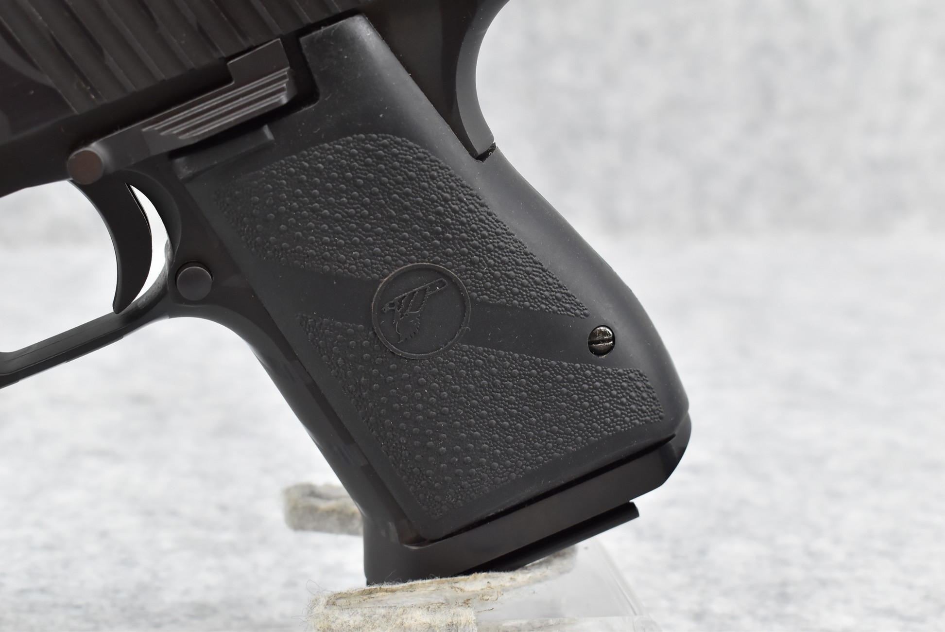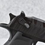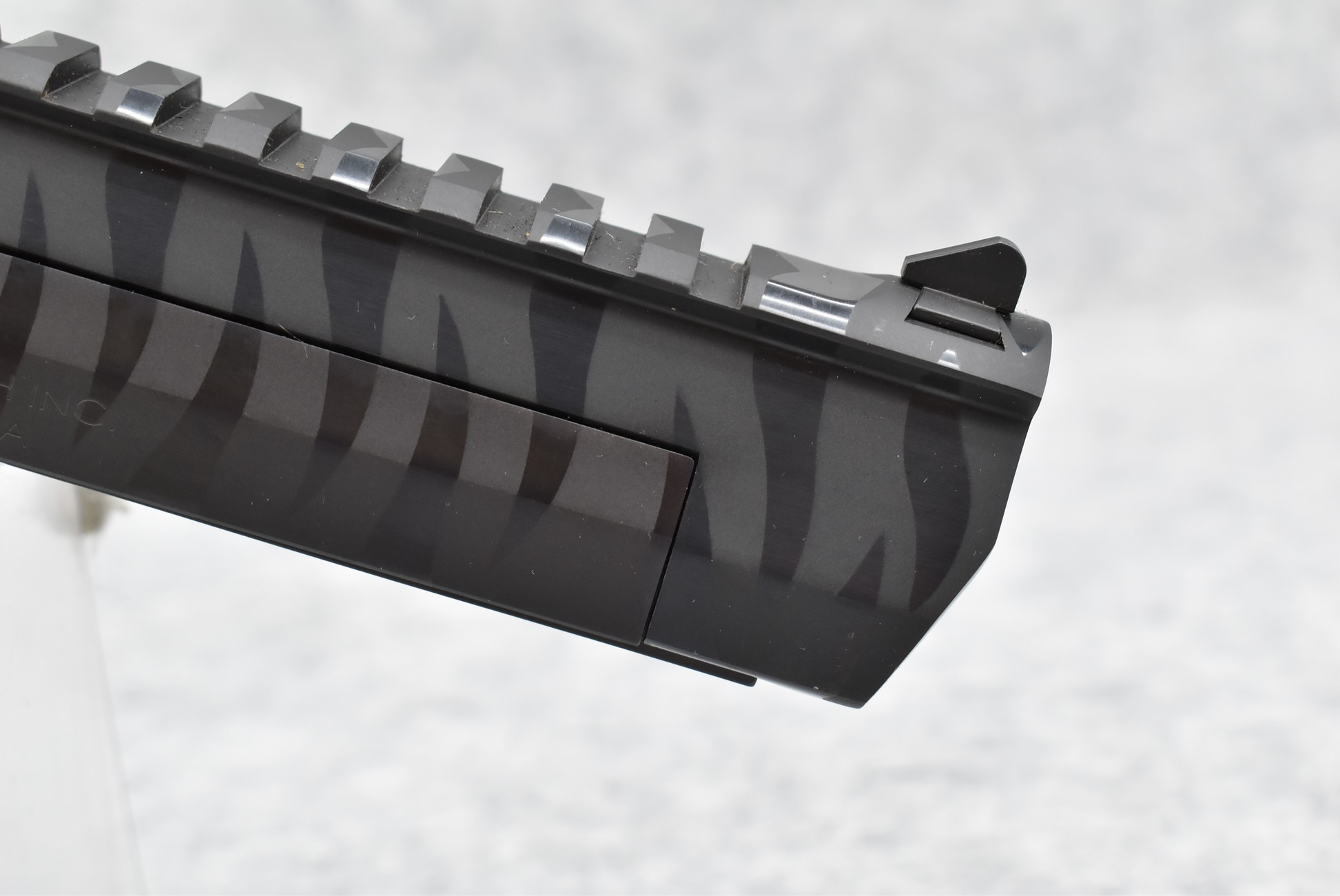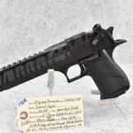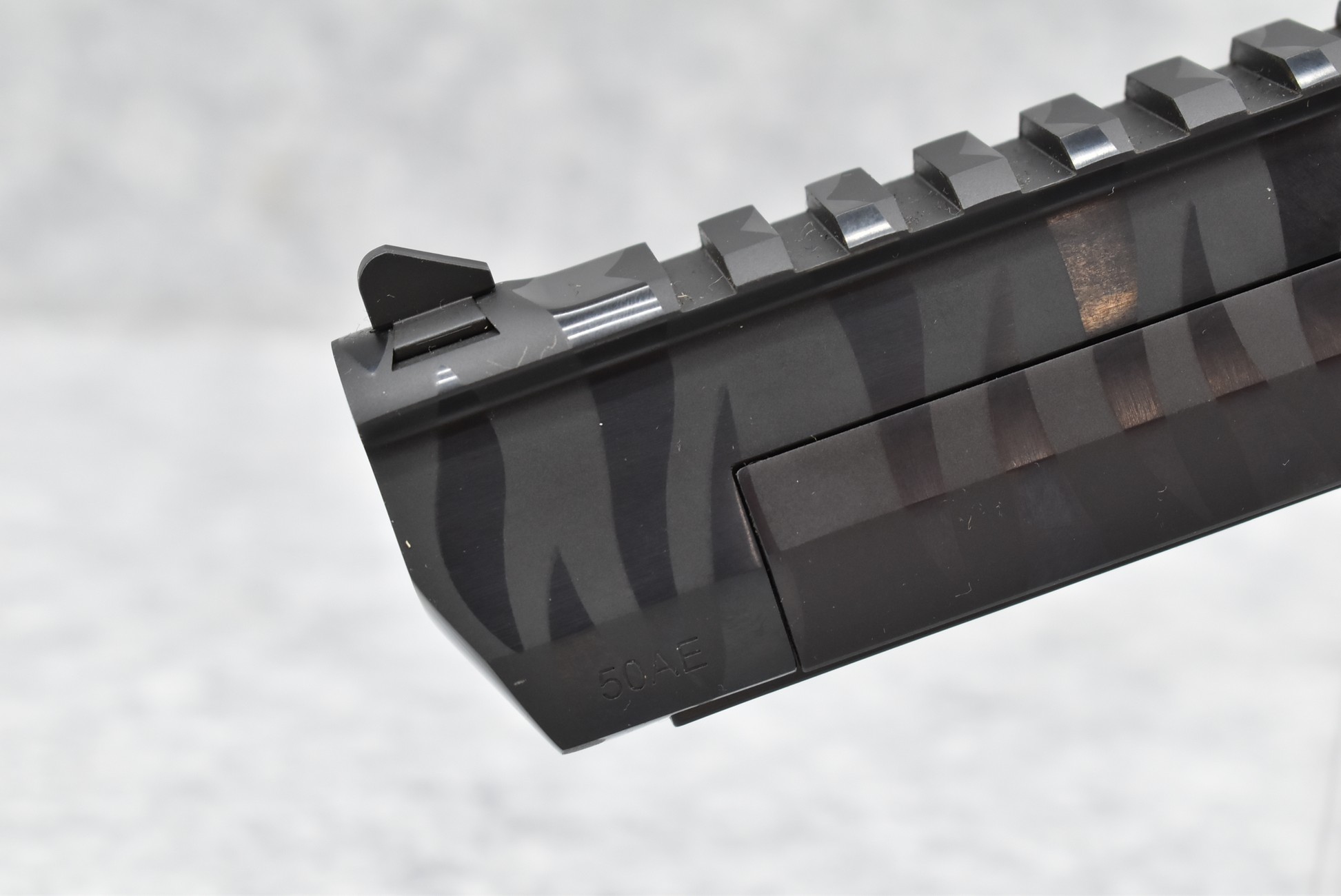 170R. Magnum Research – Mod. Desert Eagle – 50 AE Cal. Semi-Auto Pistol – w/6” Barrel w/Ramp Blade Front & Notch Rear Sights – Blued/Tiger Striped Finish – w/Factory Wraparound Black Rubber Grips – w/Factory Detachable Magazine – Unfired w/Factory Hard Case & Accessories
