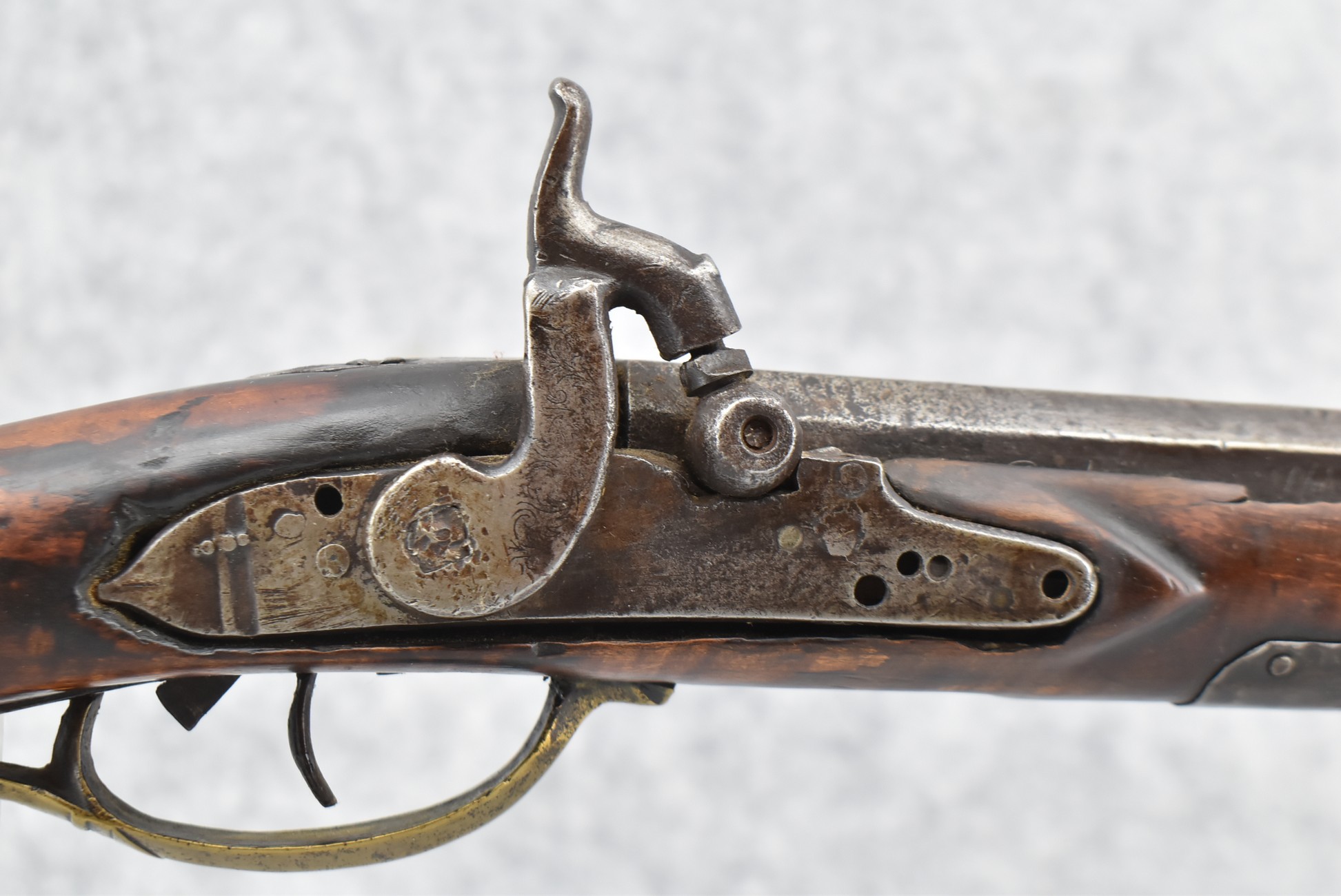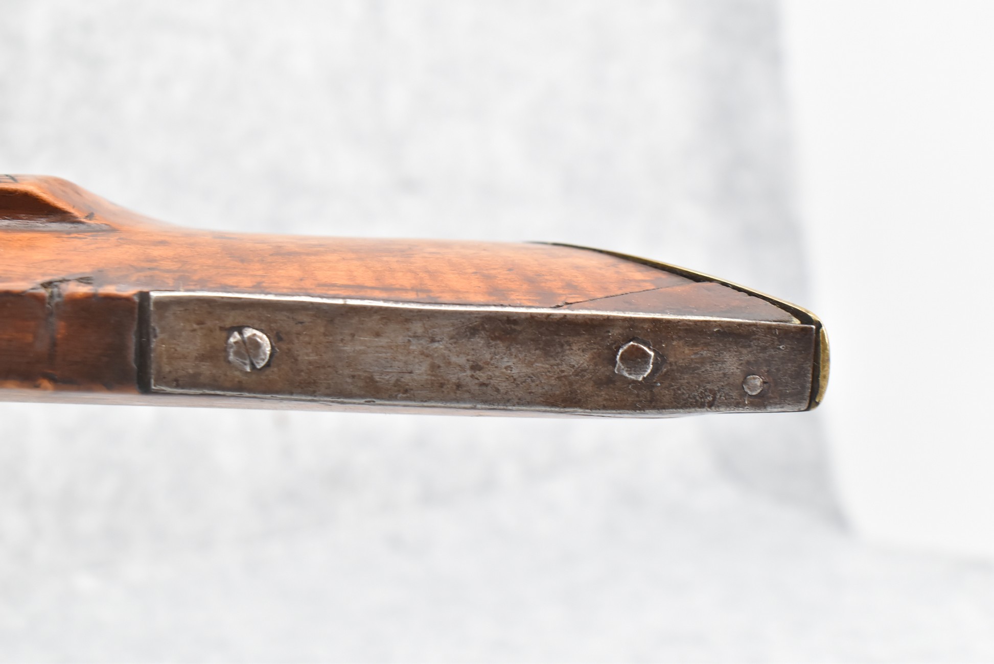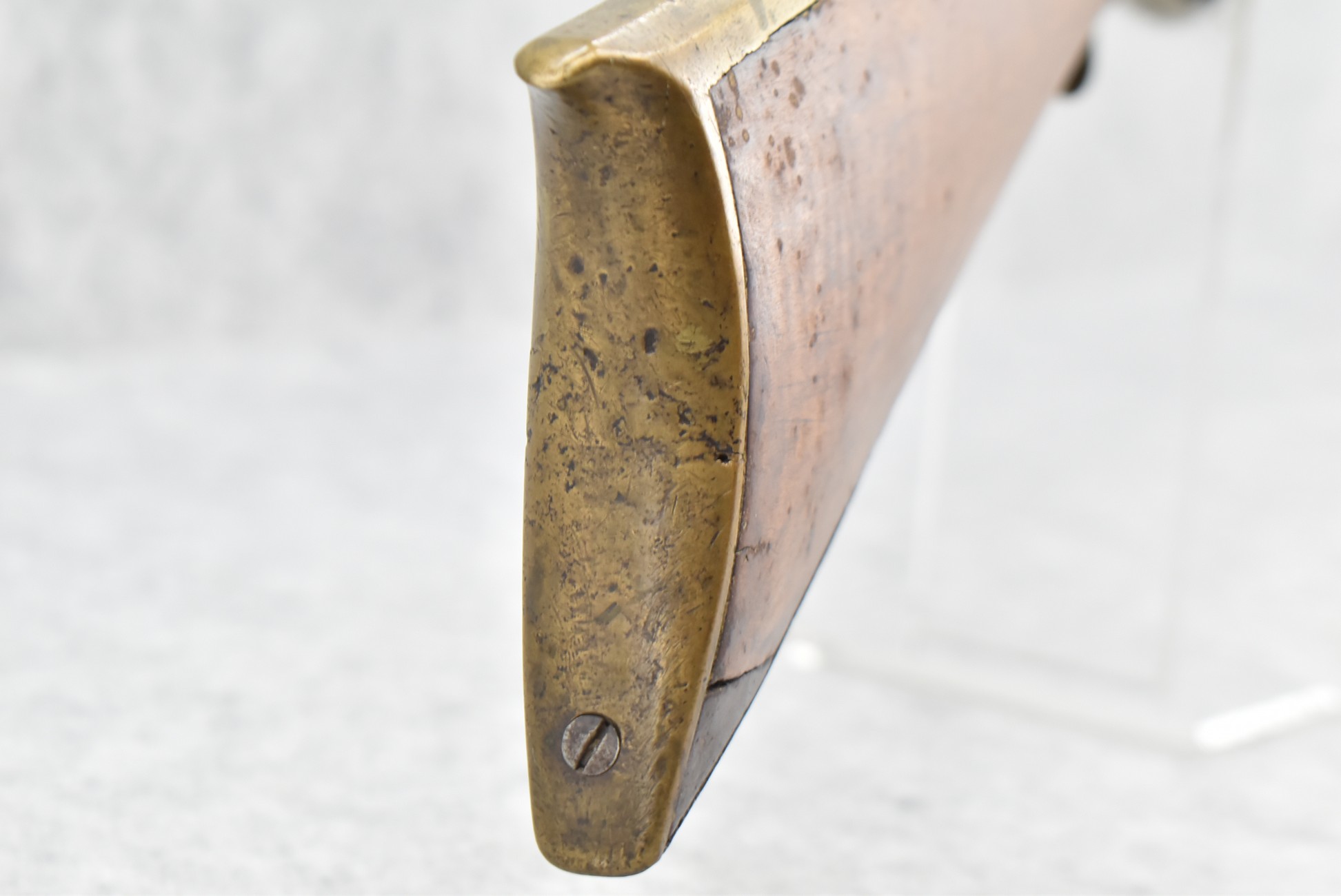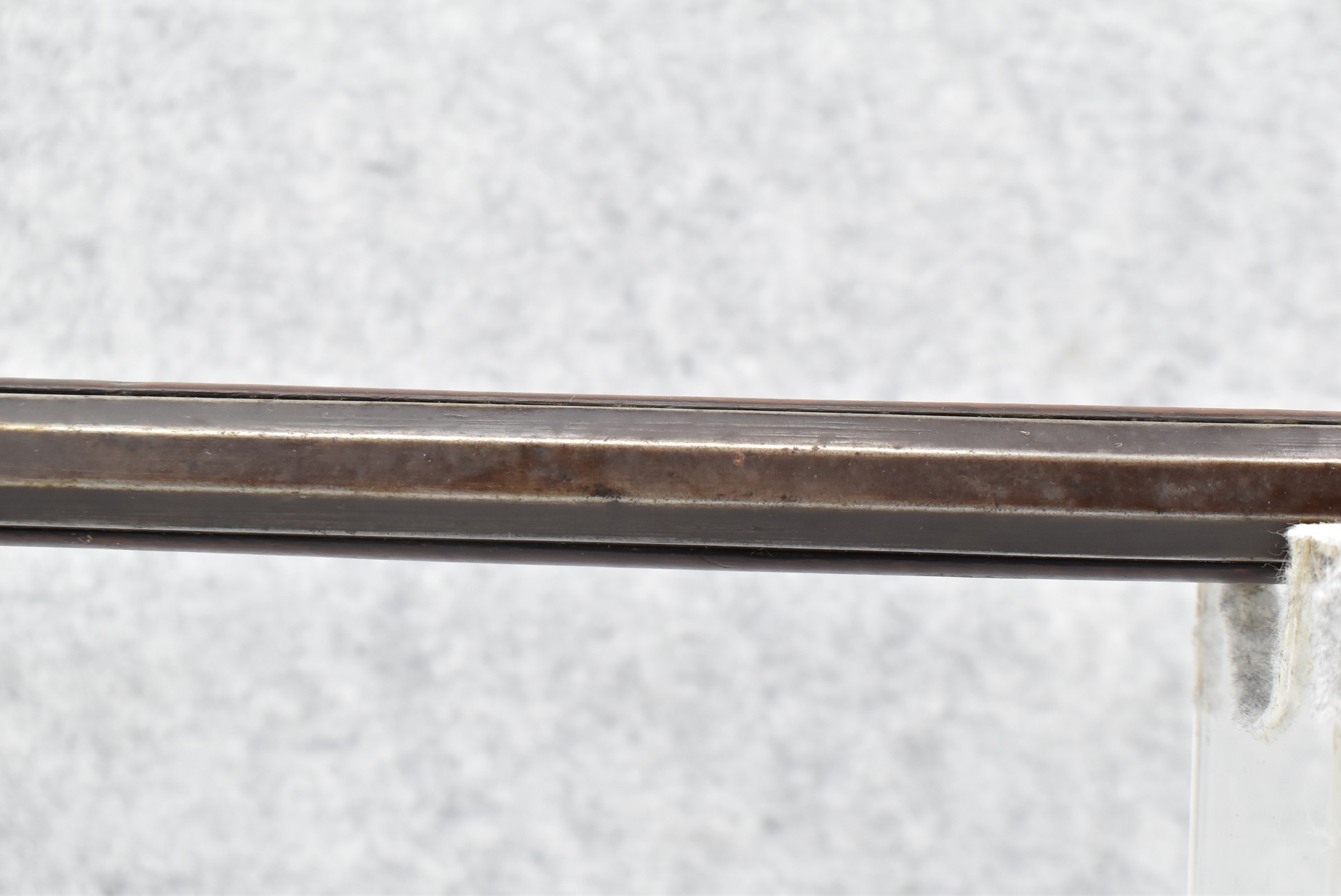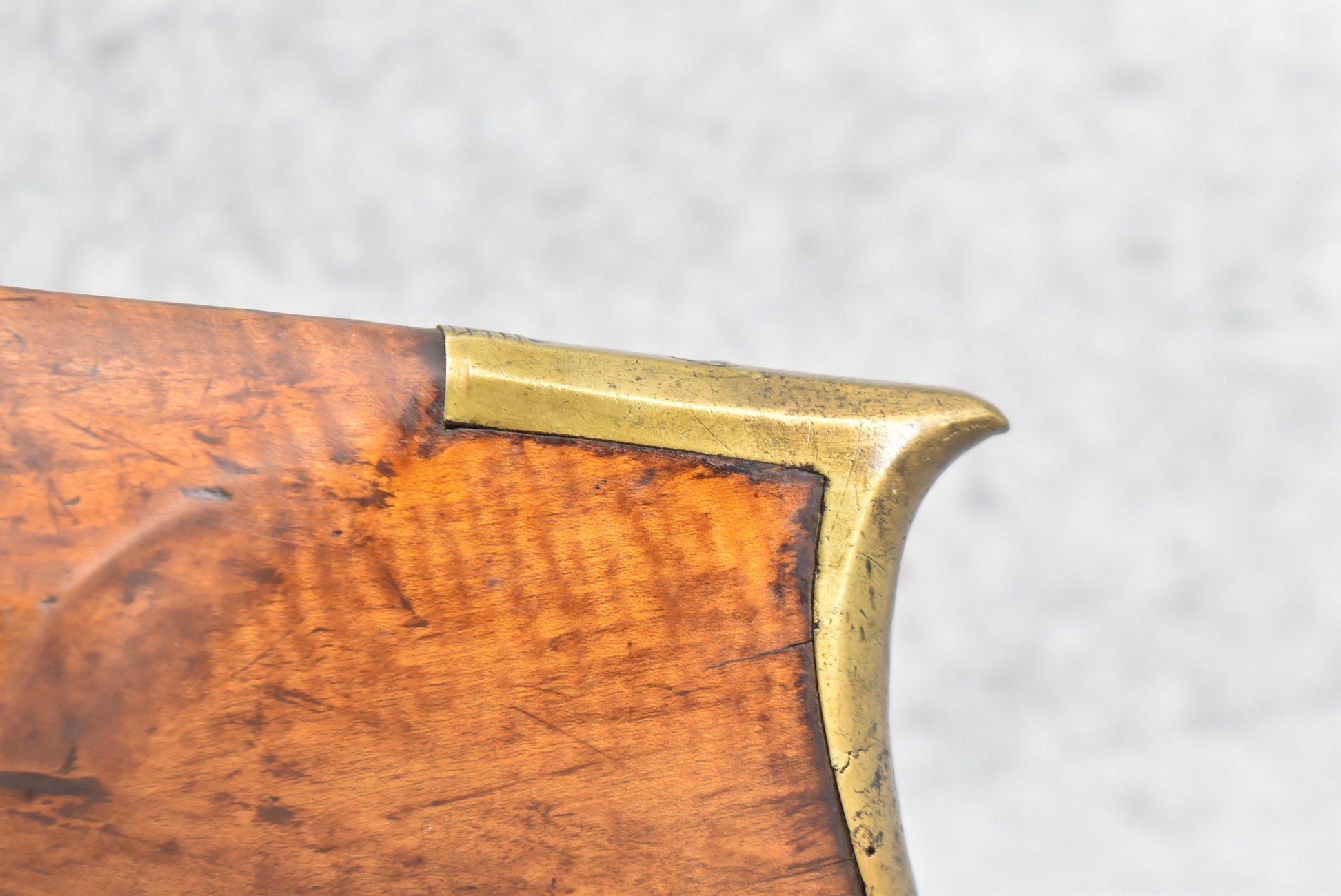 171. Full Stock Converted to Percussion 48 Cal. Kentucky Long Rifle – w/36 ½” Octagon Barrel w/Sights – Flintlock Converted to Percussion – w/Single Triggers – w/Replaced Trigger Guard, Toe Plate & Back Lock Plate – Note: Missing Wood & Crack on Fore Stock – Overall Length of 52”