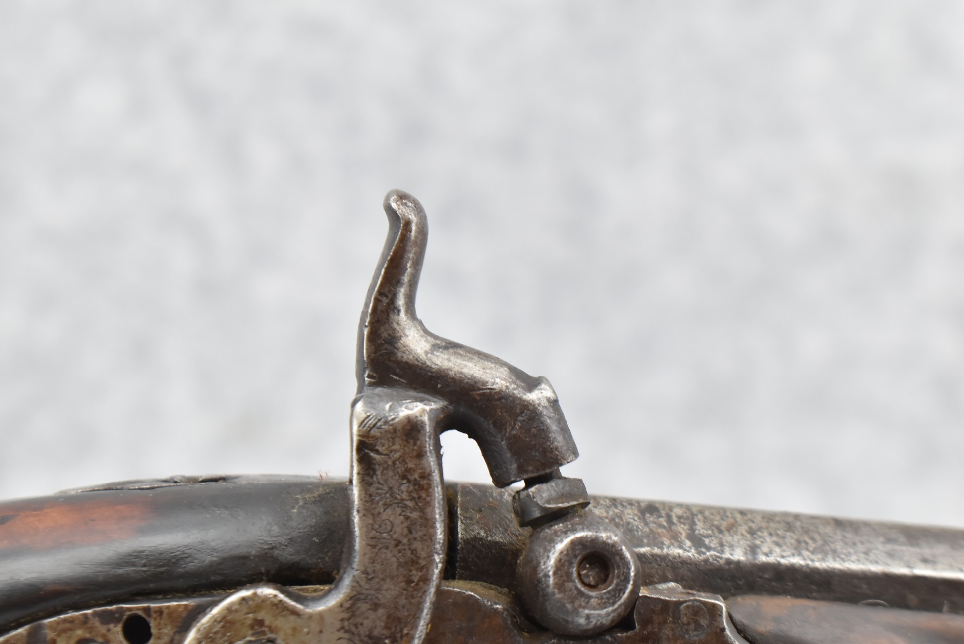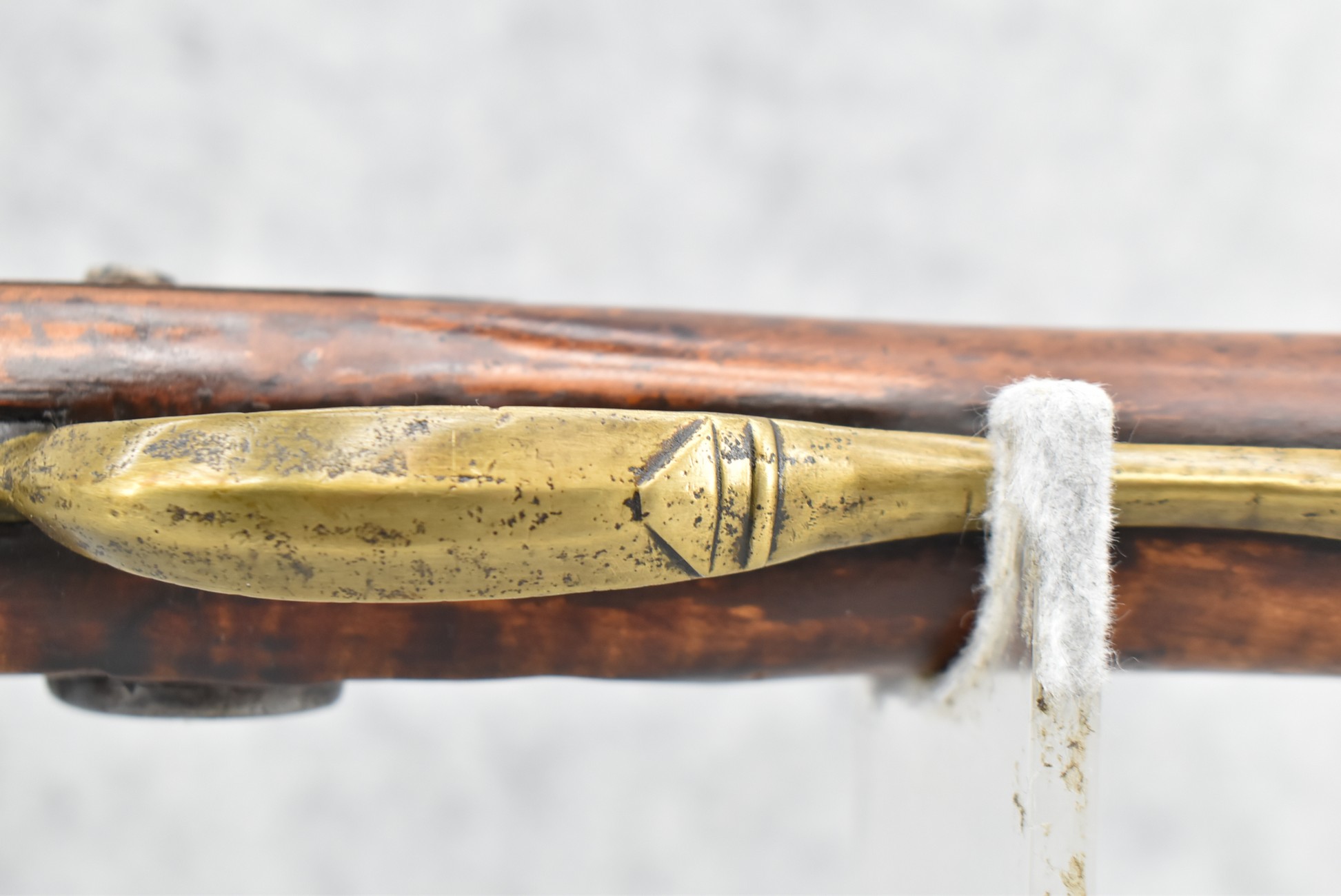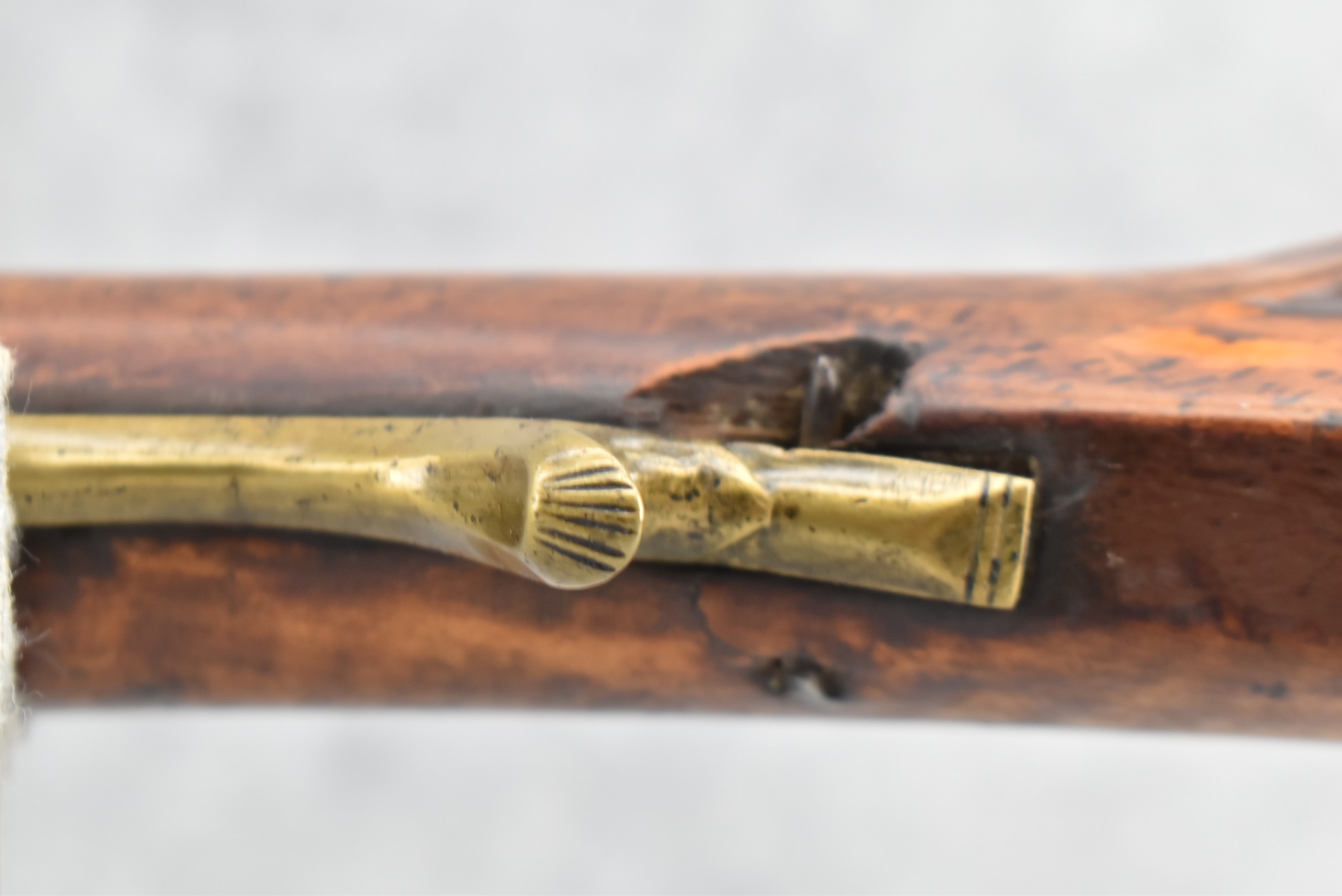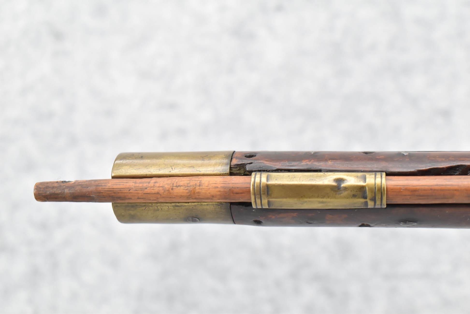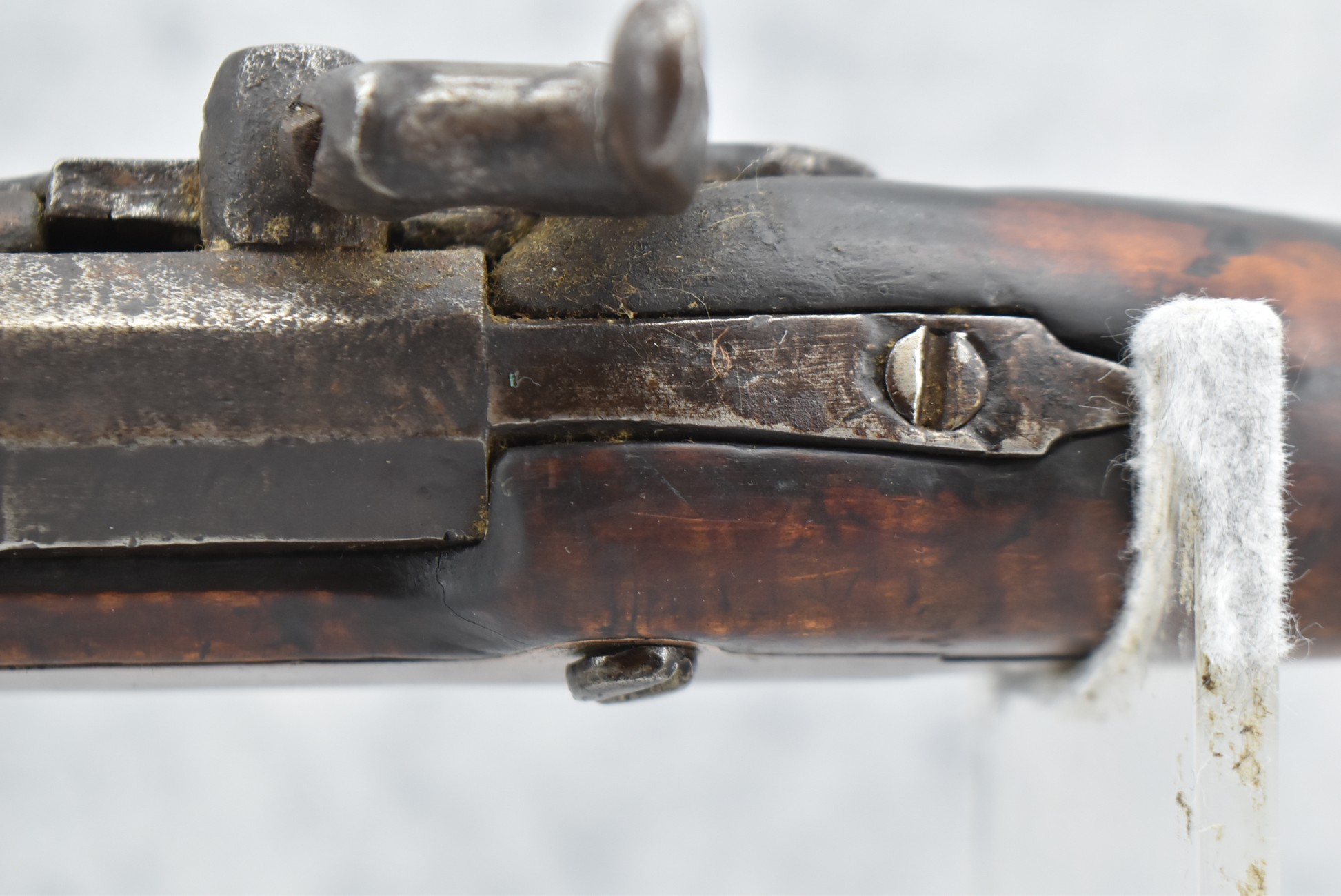 171. Full Stock Converted to Percussion 48 Cal. Kentucky Long Rifle – w/36 ½” Octagon Barrel w/Sights – Flintlock Converted to Percussion – w/Single Triggers – w/Replaced Trigger Guard, Toe Plate & Back Lock Plate – Note: Missing Wood & Crack on Fore Stock – Overall Length of 52”