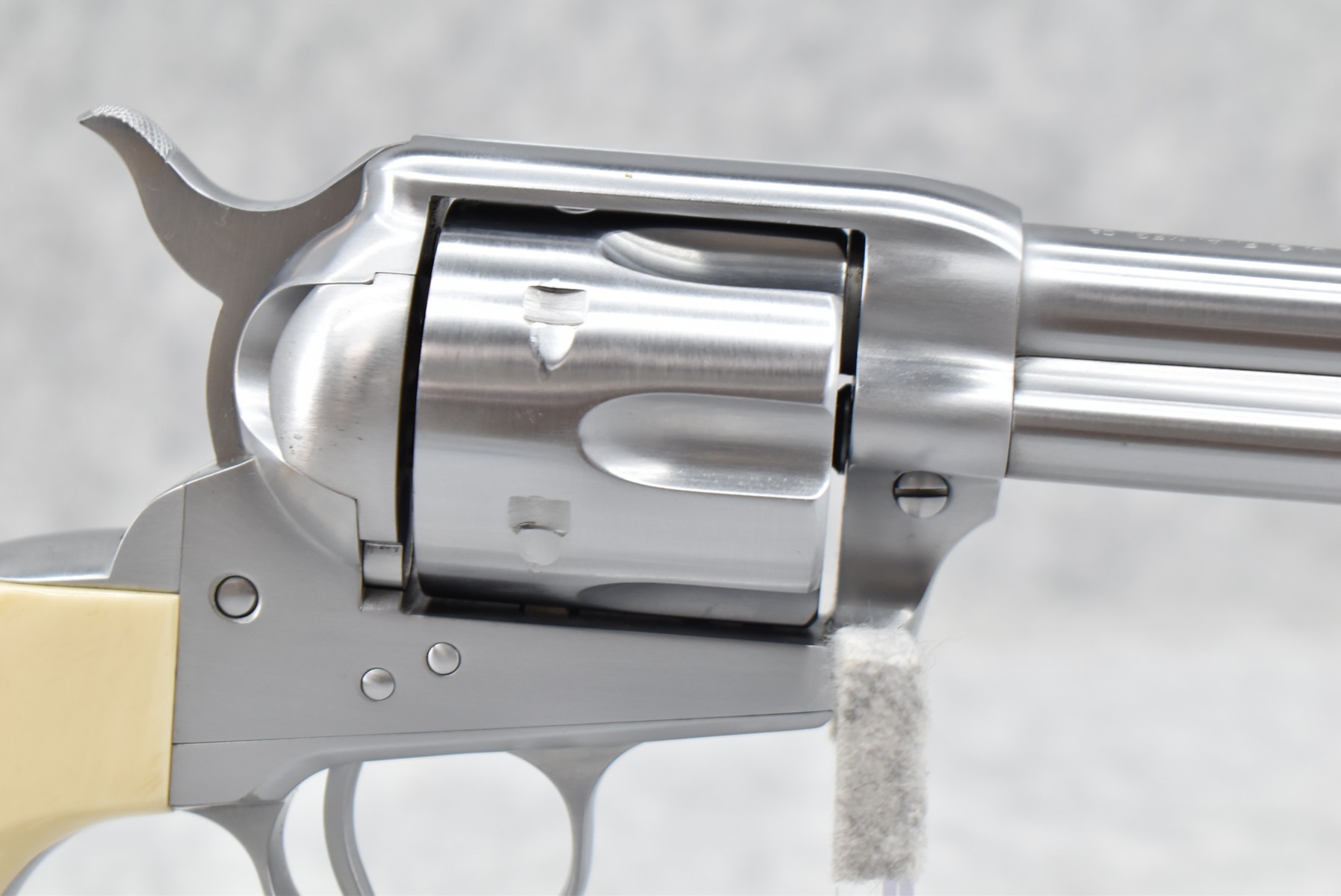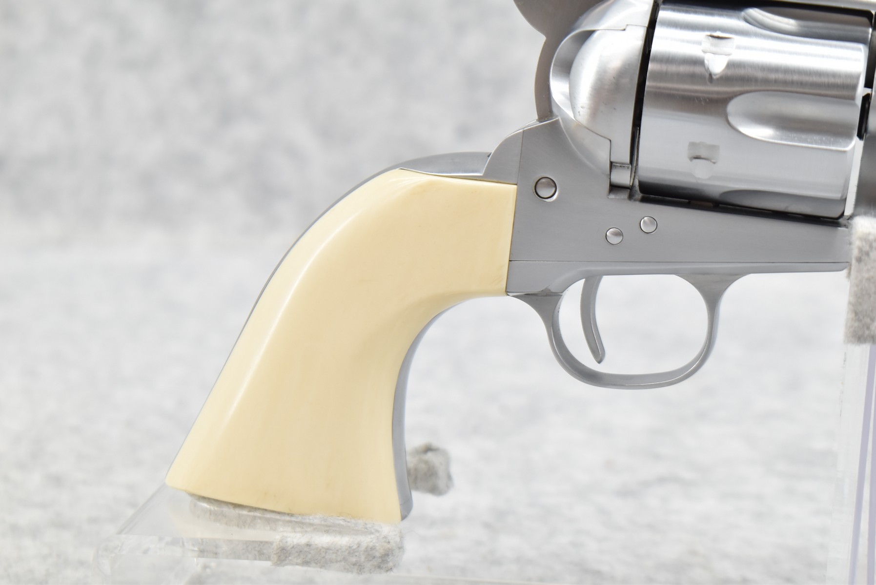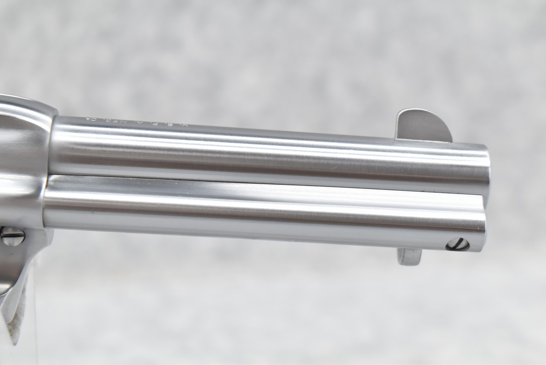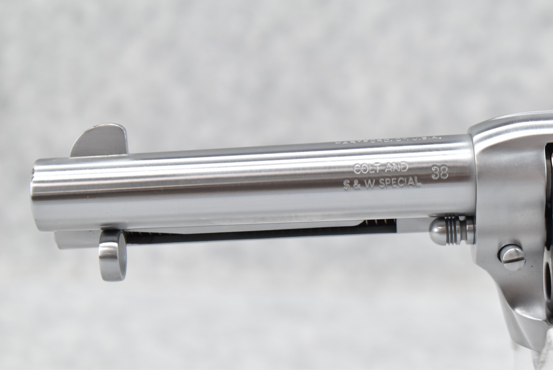 171R. USFA (Hartford, CT) – Mod. SAA – 38 Colt/38 Spl. Cal. Single Action Revolver – w/4 ¾” Barrel w/Front & Grooved Rear Sights – Bright Stainless Finish – w/White Grips – Unfired