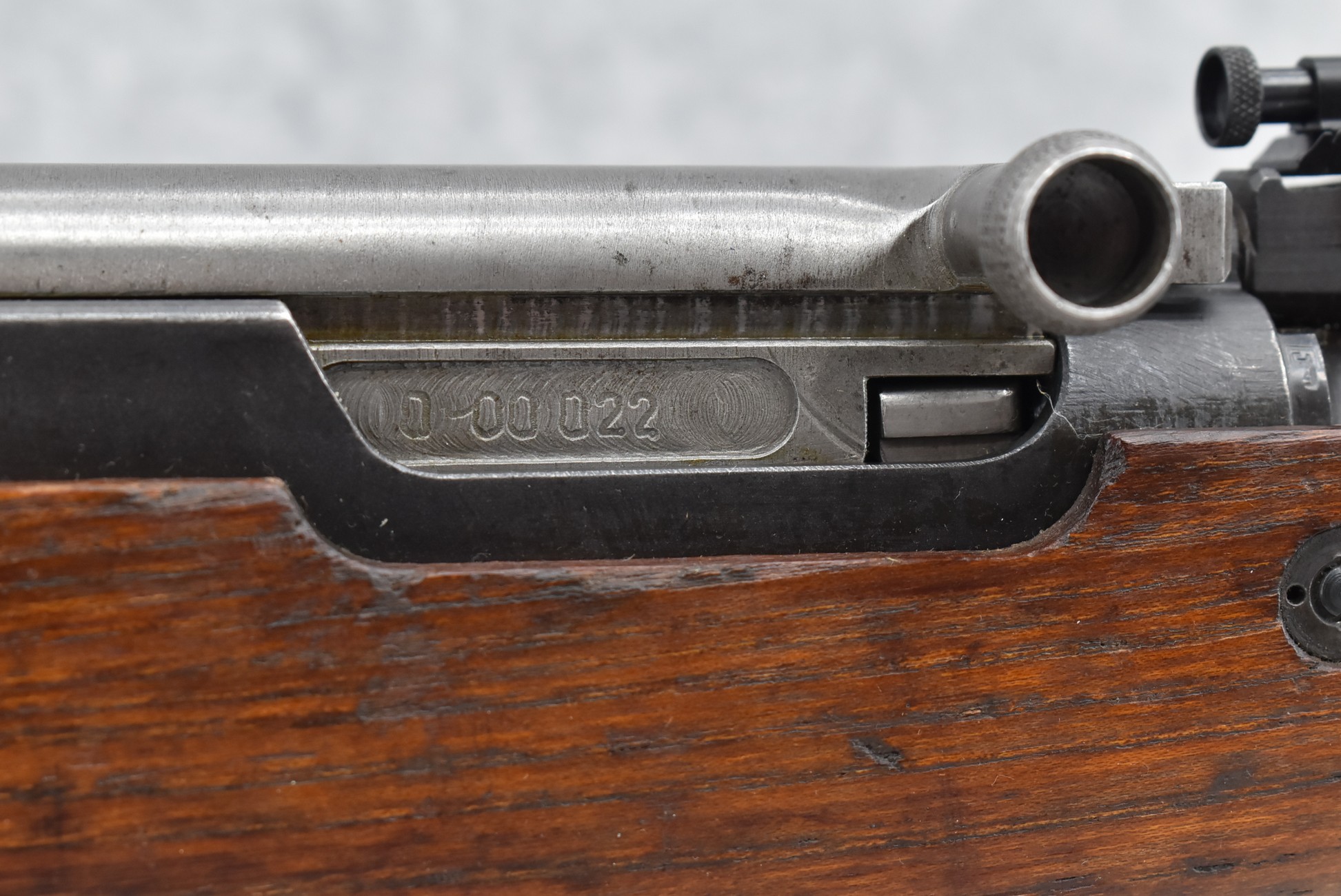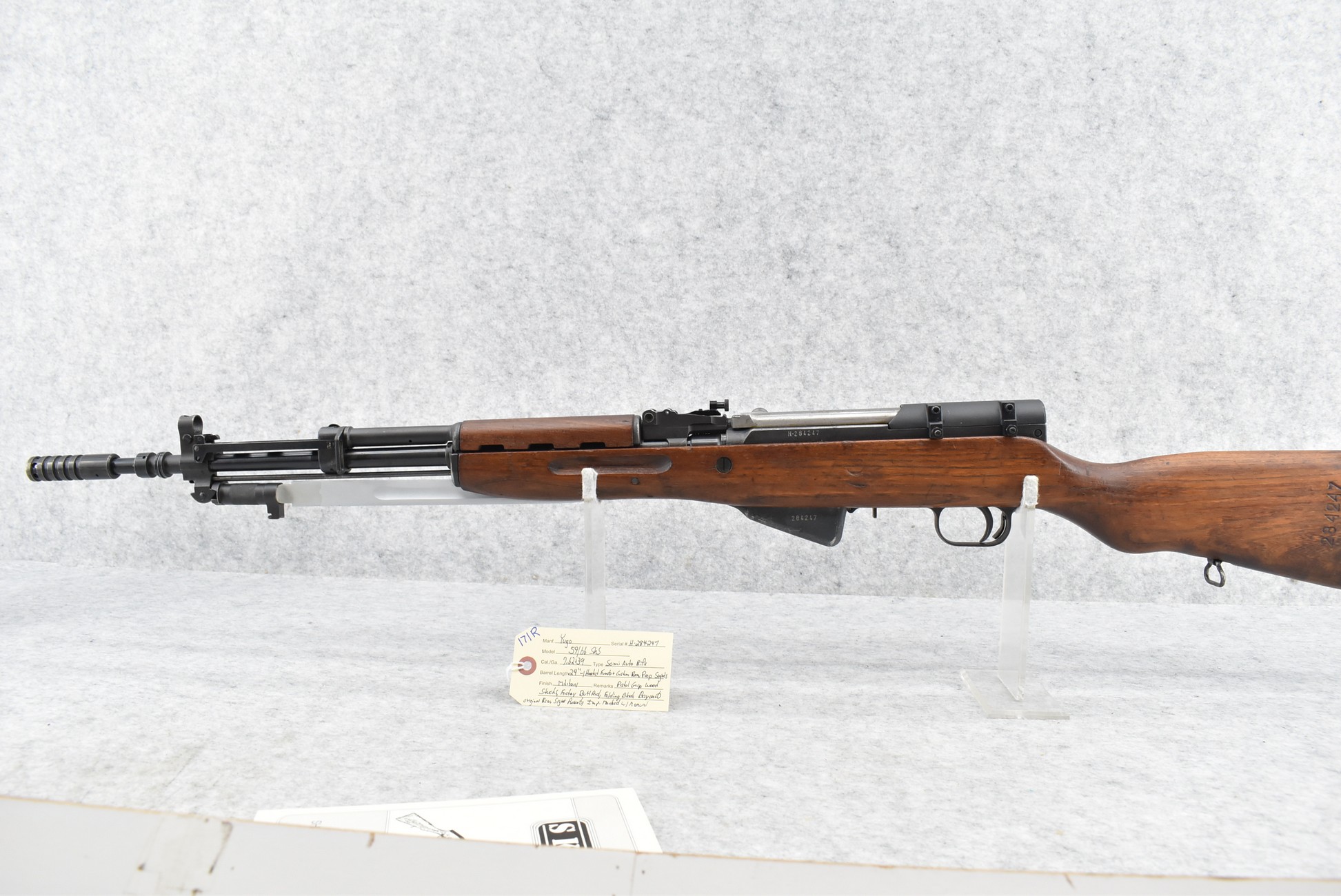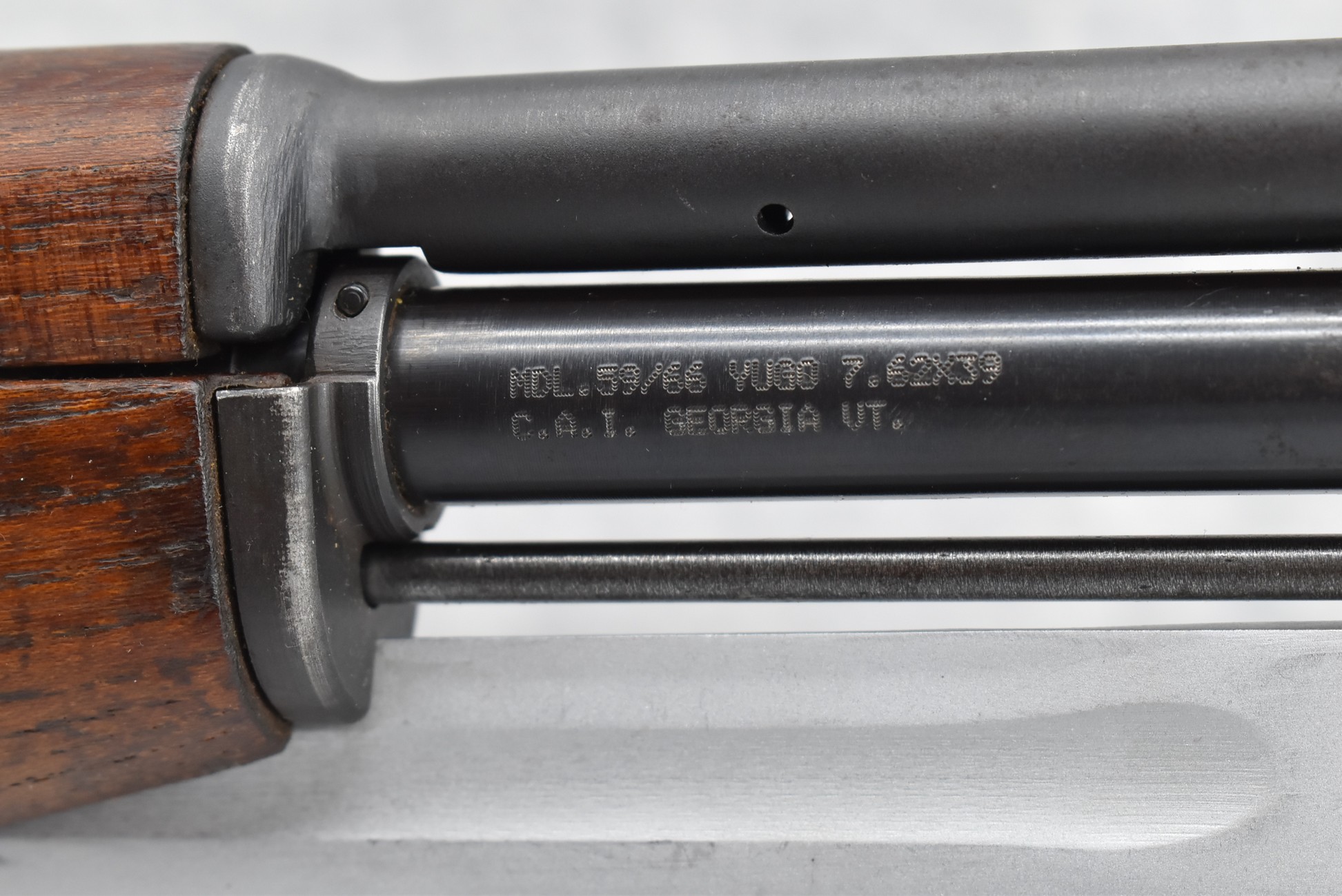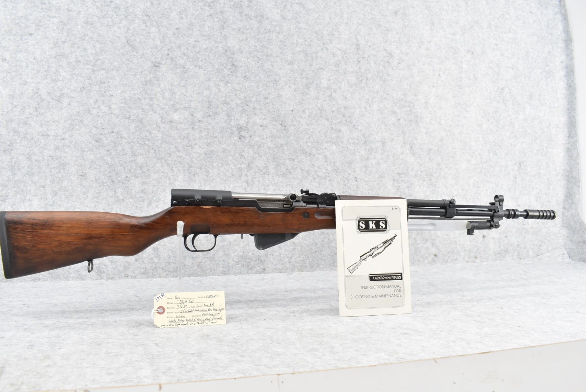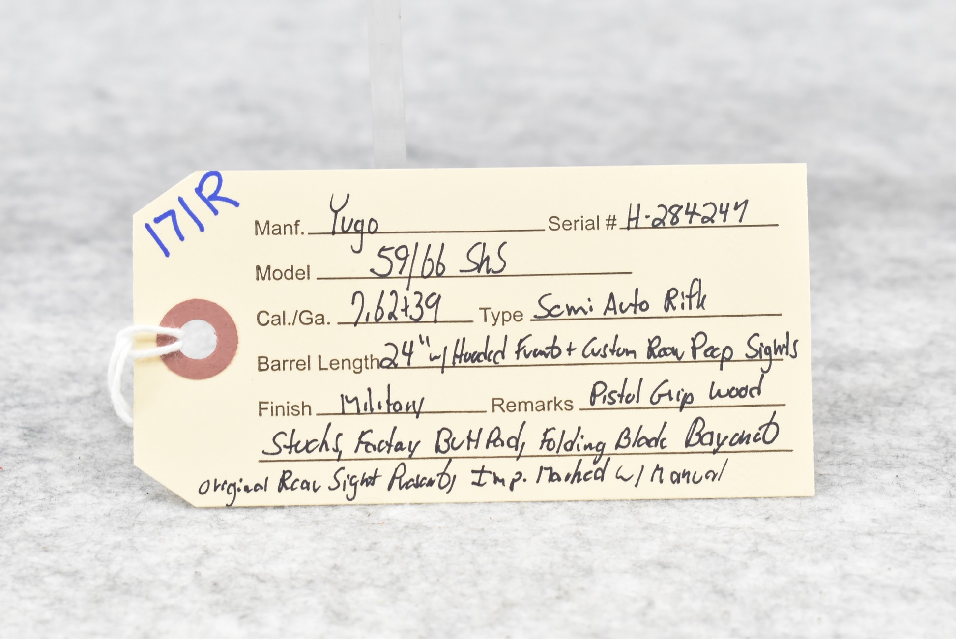 171R. Yugo – Mod. 59/66 SKS – 7.62×39 Cal. Semi-Auto Rifle – w/24” Barrel w/Hooded Front & Custom Rear Peep Sights – Military Finish – w/Pistol Grip Wood Stocks w/Factory Butt Pad – w/Folding Blade Bayonet – Original Rear Sight Present – w/Manual – Import Marked