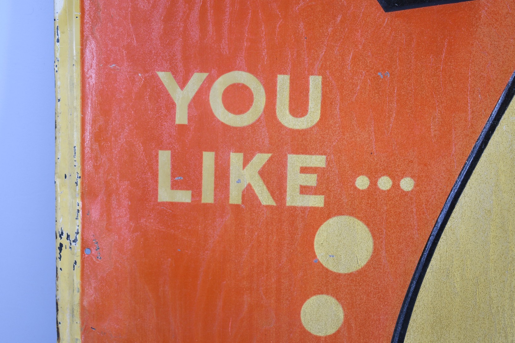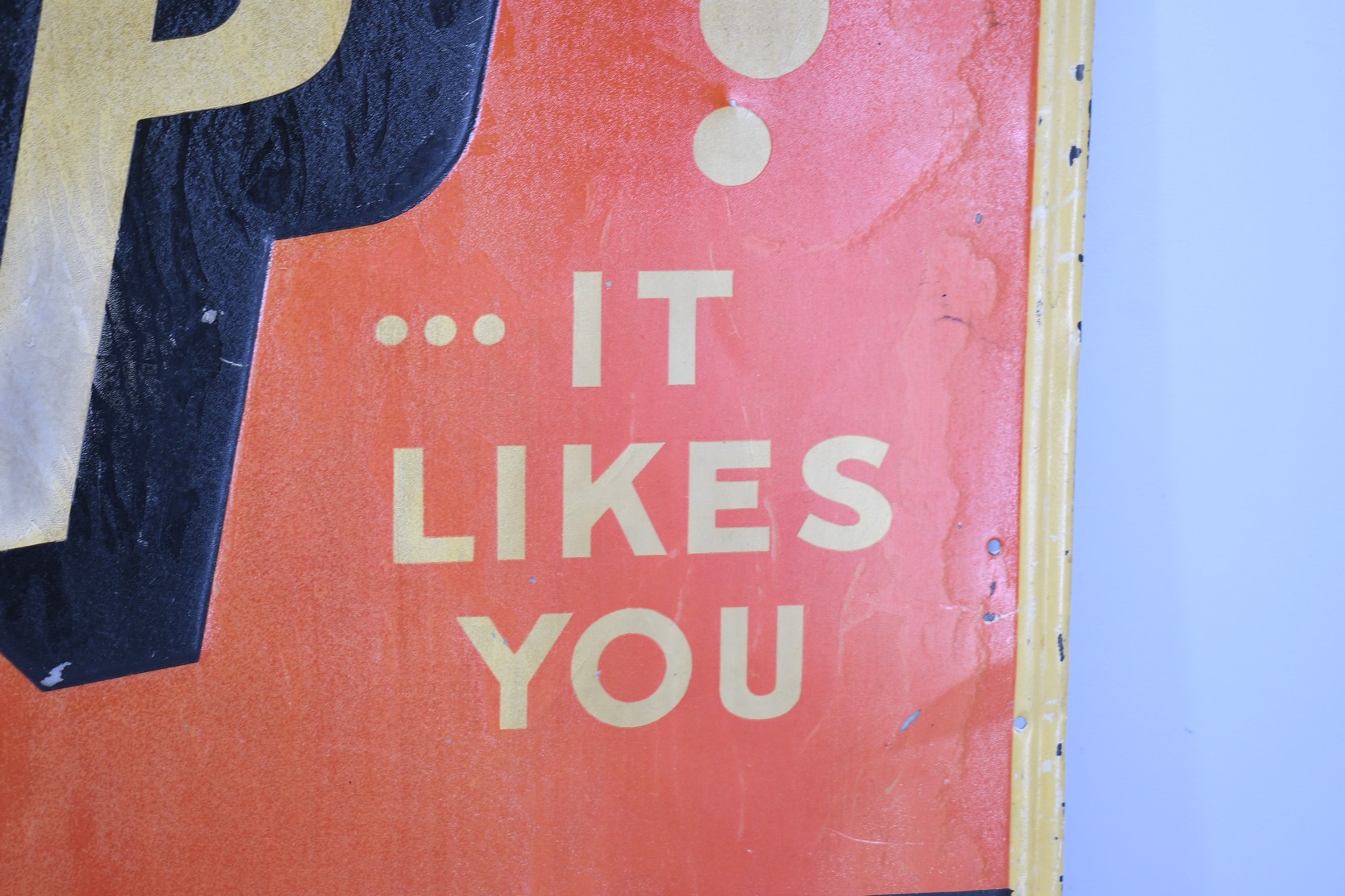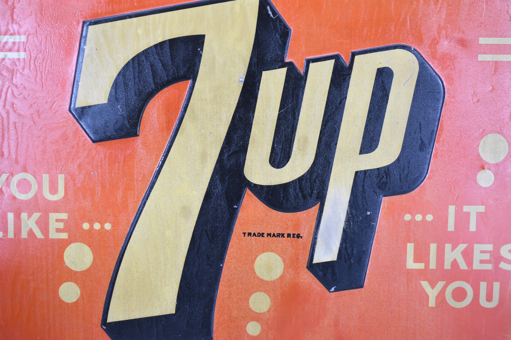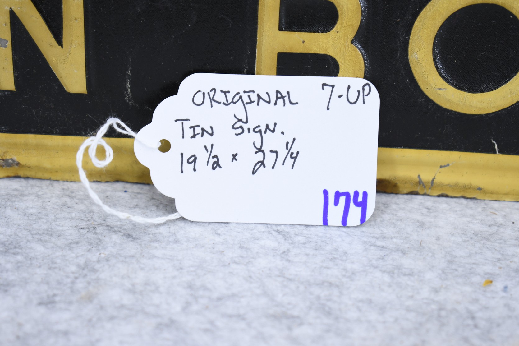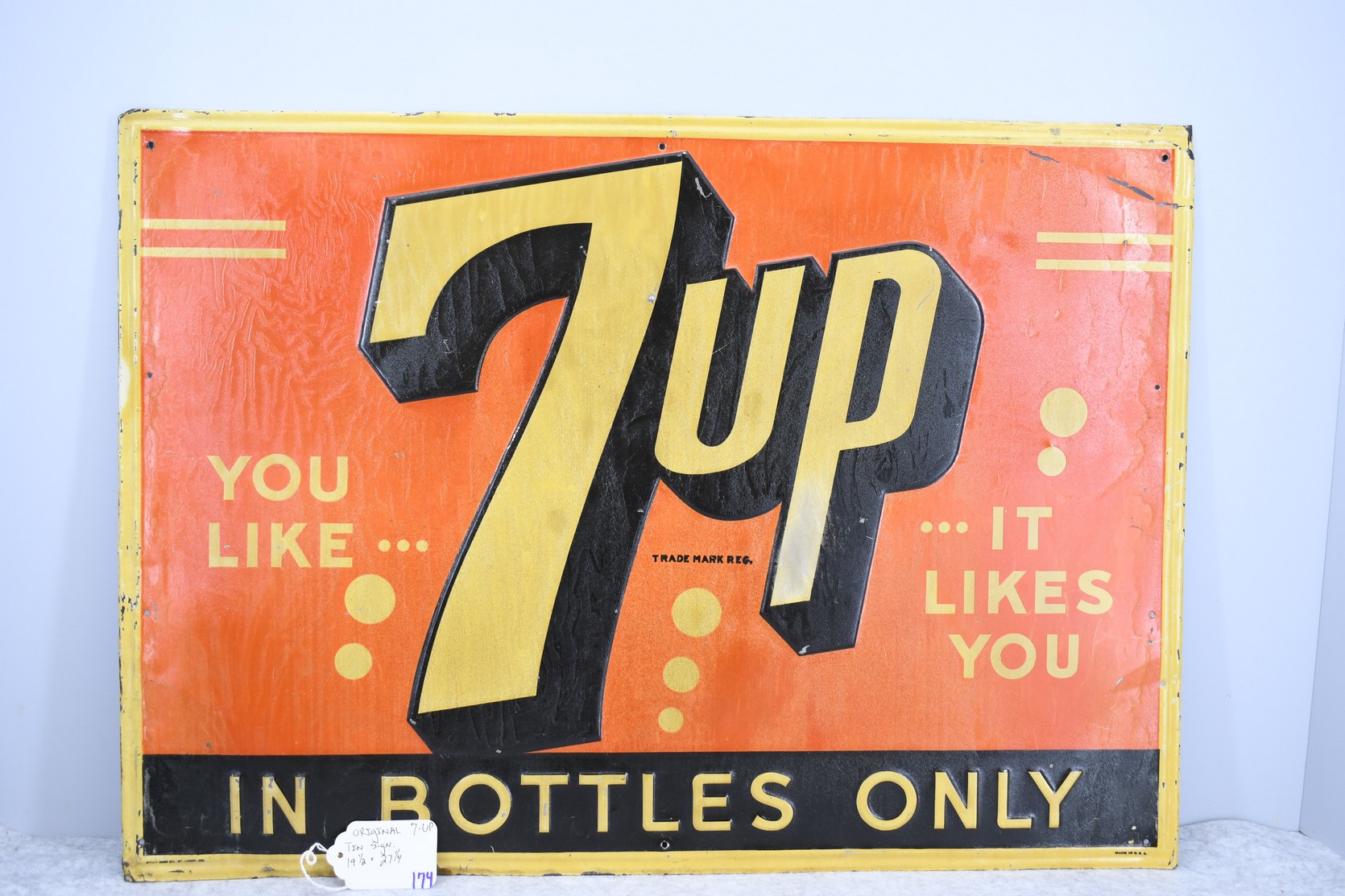 174. 7UP Original Tin Sign – “You Like, It Likes You in Bottles Only” – Measures 19½” x 27¼”