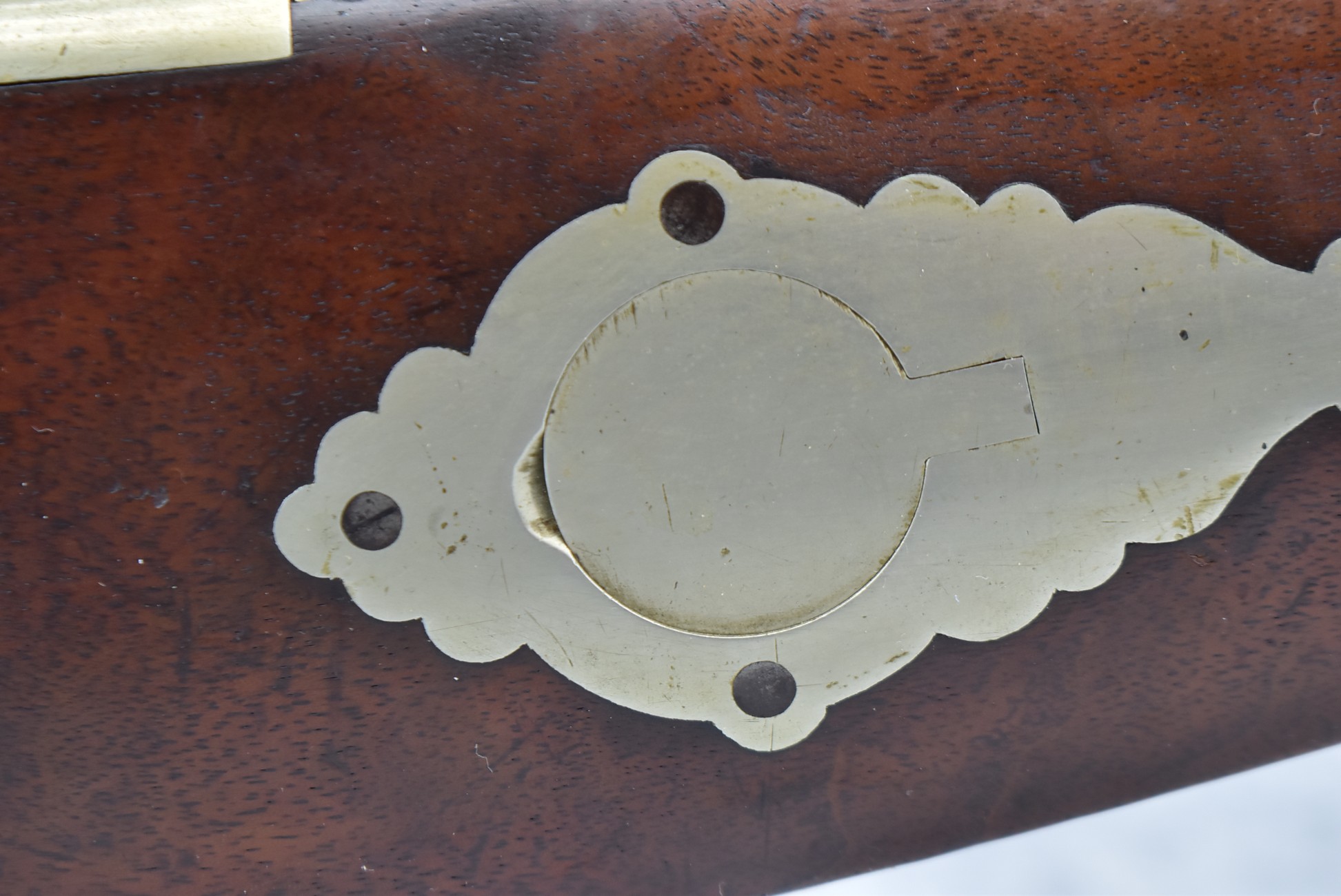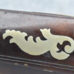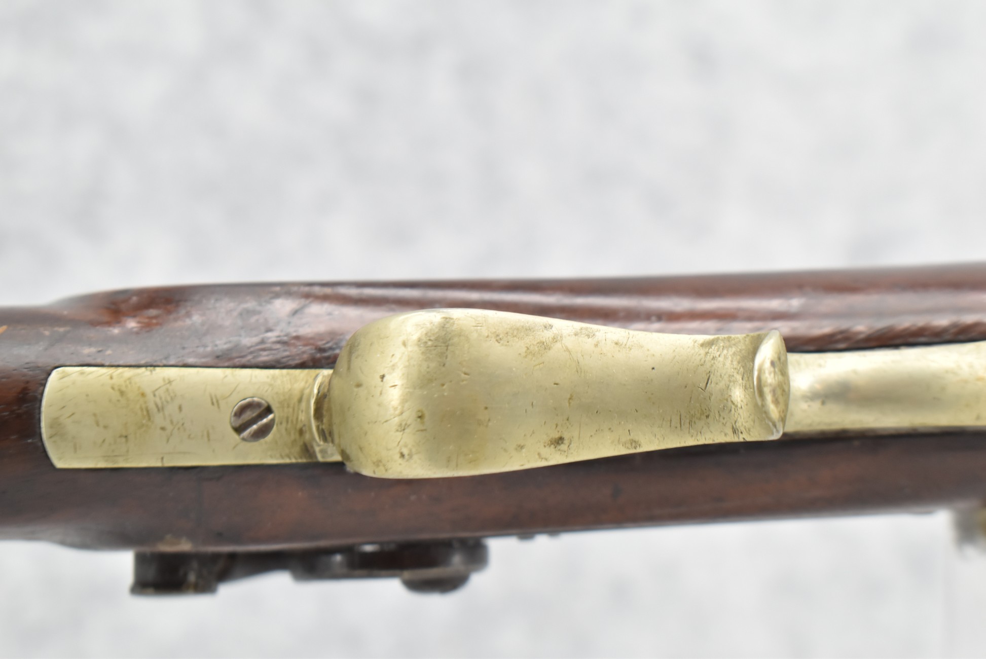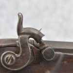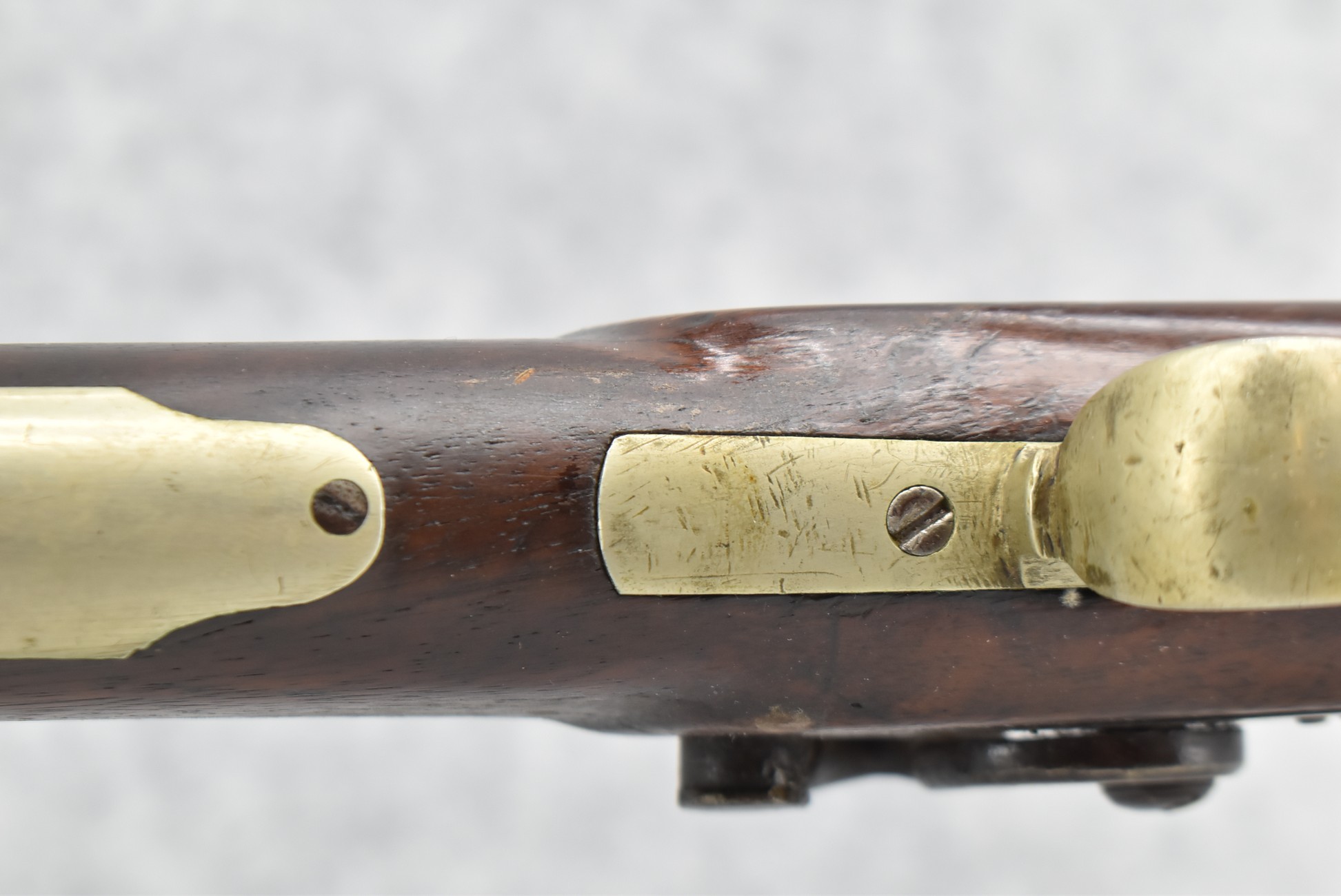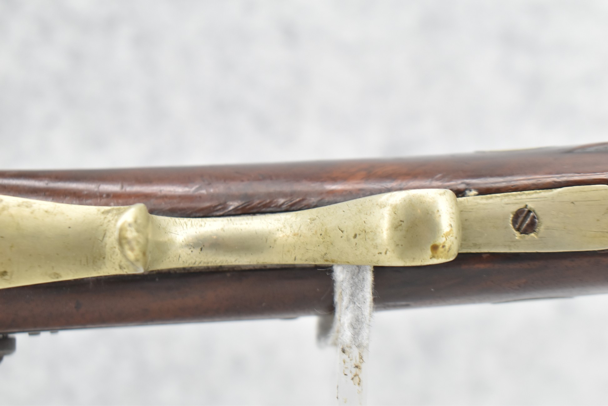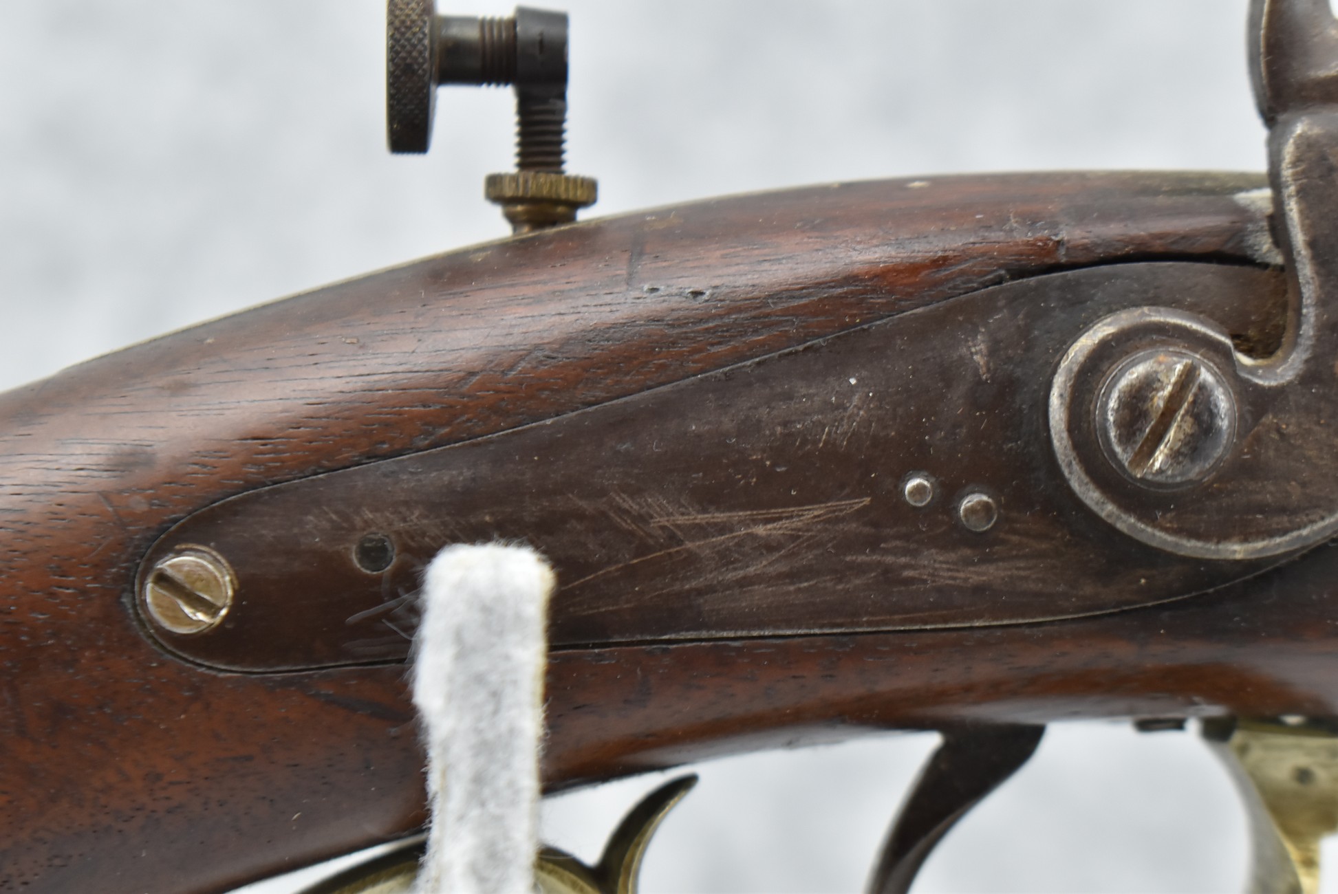 175. Unusual Unsigned 32 Cal. Half Stock Child’s or Woman’s Target Rifle – w/24 ½” Octagon to Round Barrel w/Globe Front, No Rear Sight Barrel Provisions & Tang Sight Peep Sight Present – w/Walnut Half Stock w/German Silver Cap Box & Silver Furniture – w/Single Trigger – Unique Style & Size Gun! – Overall Length of 39 ½”