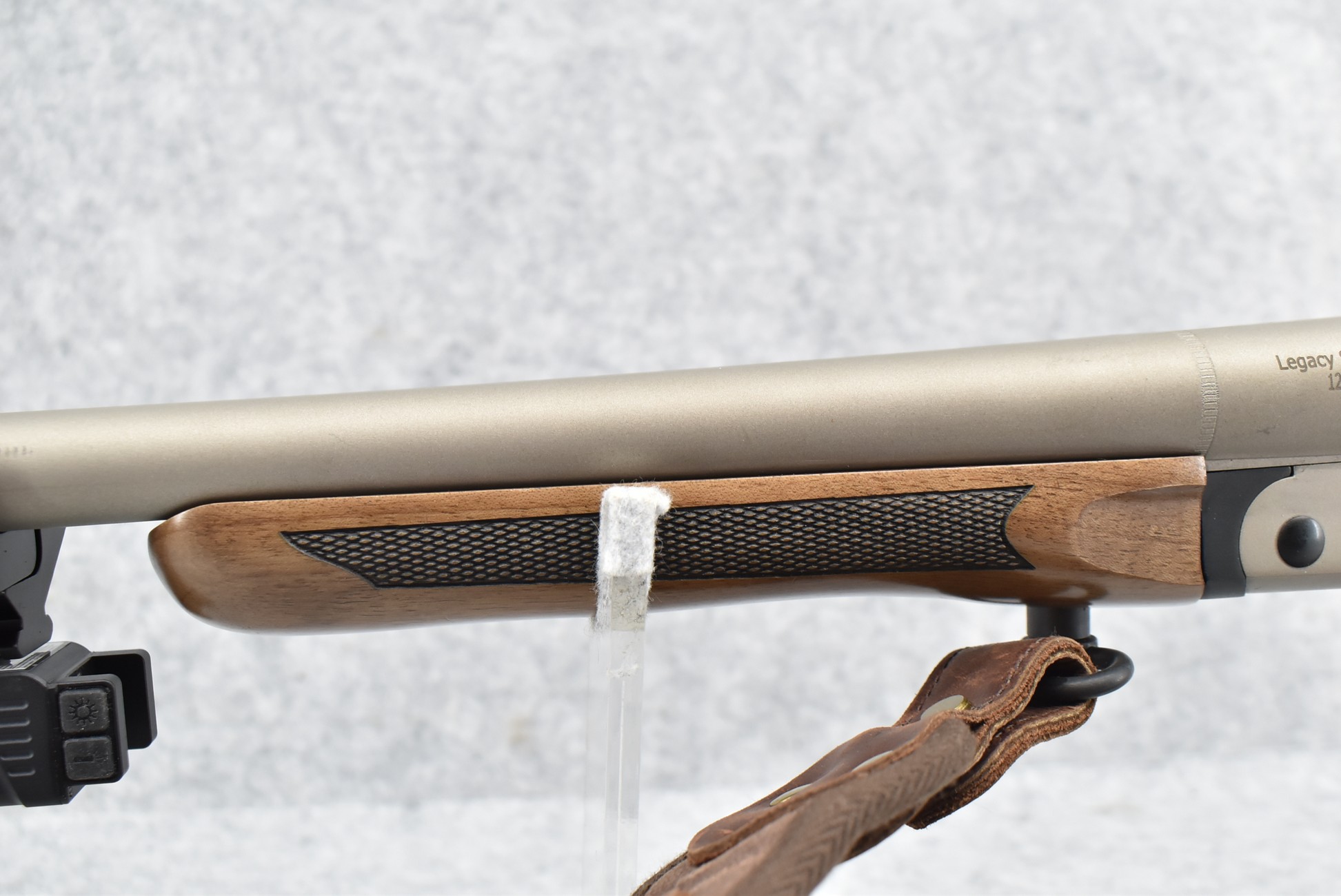 175R. Legacy Sports – Mod. Citadel Boss-Coach Shotgun – 12ga. 3” Hammerless Double Barrel Shotgun – w/18 ½” Barrels w/Fiber Optic Bead Sight & Chokes – Matte Nickel Finish – w/Checkered Pistol Grip Wood Stocks w/Brown Leather Butt Stock Protector – w/Shellbelt Sling – w/XYHL Laser Light Combo – w/Factory Box & Accessories