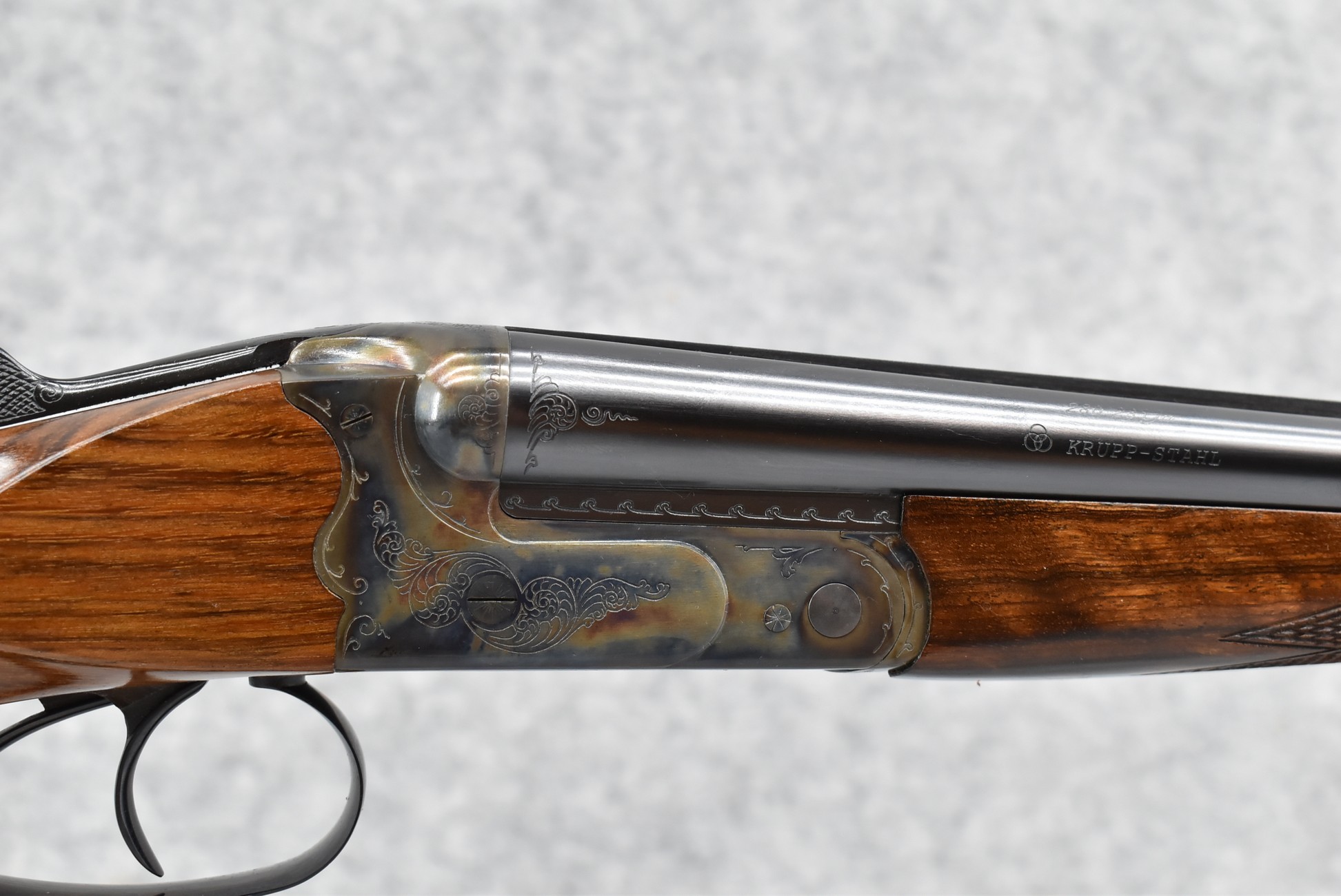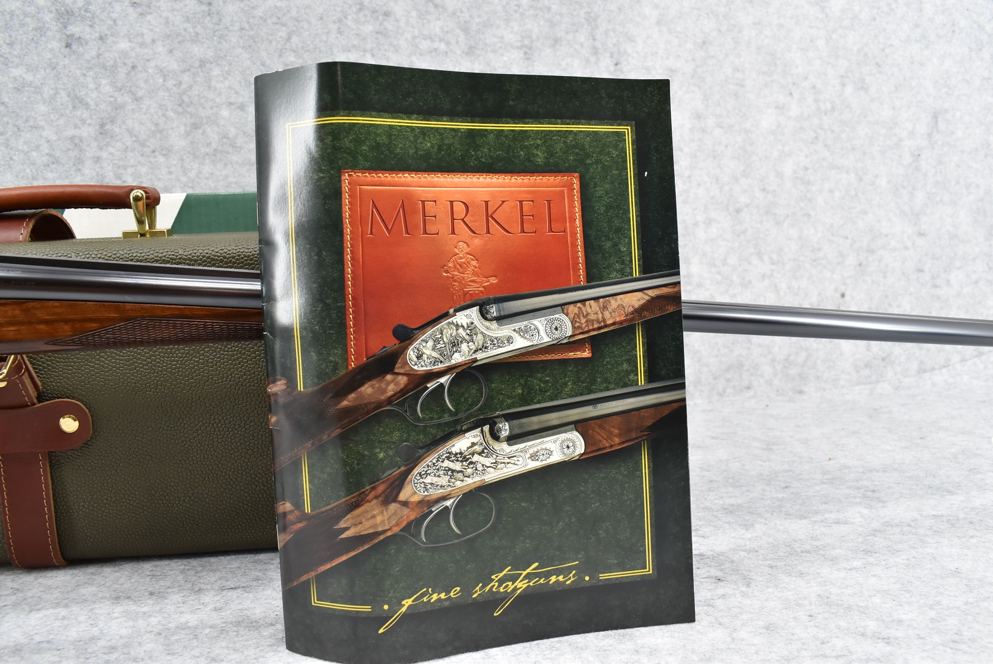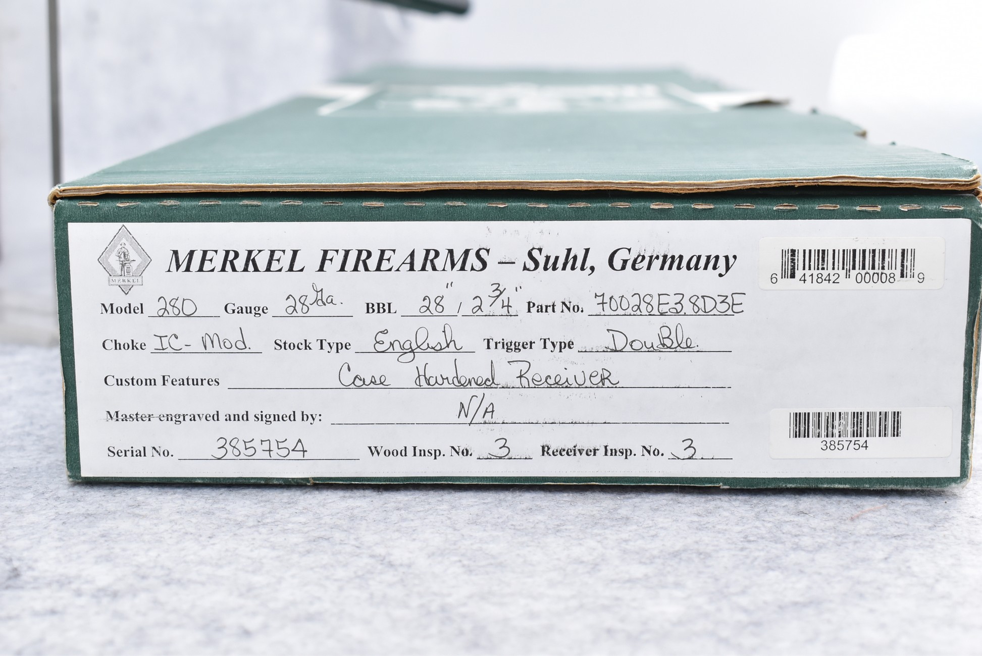 175R. Merkel – Mod. 280 – 28ga. 2 ¾” Double Barrel Shotgun – w/28” Imp. Cyl./Mod. Choked, Solid Rib Barrels w/Front Bead Sight – Blued Finish w/Case Hardened Frame – w/Highly Figured Checkered Straight Grip English Style Wood Butt Stock w/Factory Butt Plate & Matching Splinter Forearm – w/Double Triggers – Gun is Accompanied by the Factory Box, Manuals & Factory Merkel Leather Takedown Case w/Keys