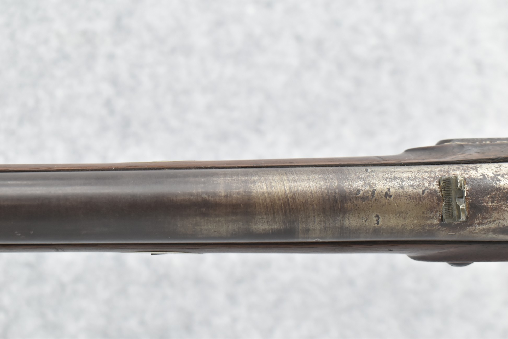 176. A Unique Hunting Rifle Built Out of an Original U.S. Springfield Model 1861 Civil War Musket – Gun is Fitted w/a 62 Cal. 40” Smoothbore Barrel w/Front Sight Dovetail & Rear Sight Present – w/Half Stock Out of the Original Springfield Stock w/German Silver Nose Cap – w/Original 1862 Dated U.S. Springfield Lock – w/Wooden Ram Rod – Overall Length of 55”