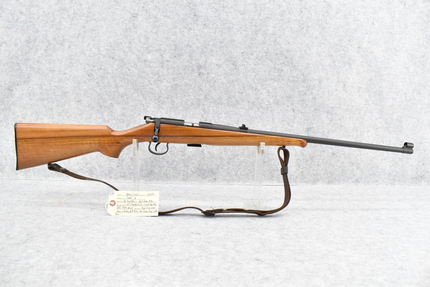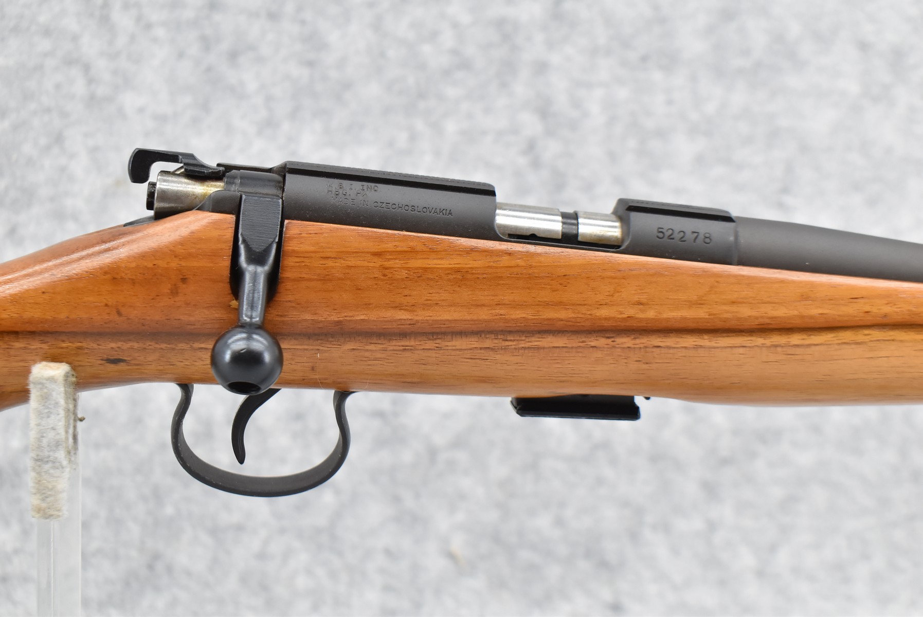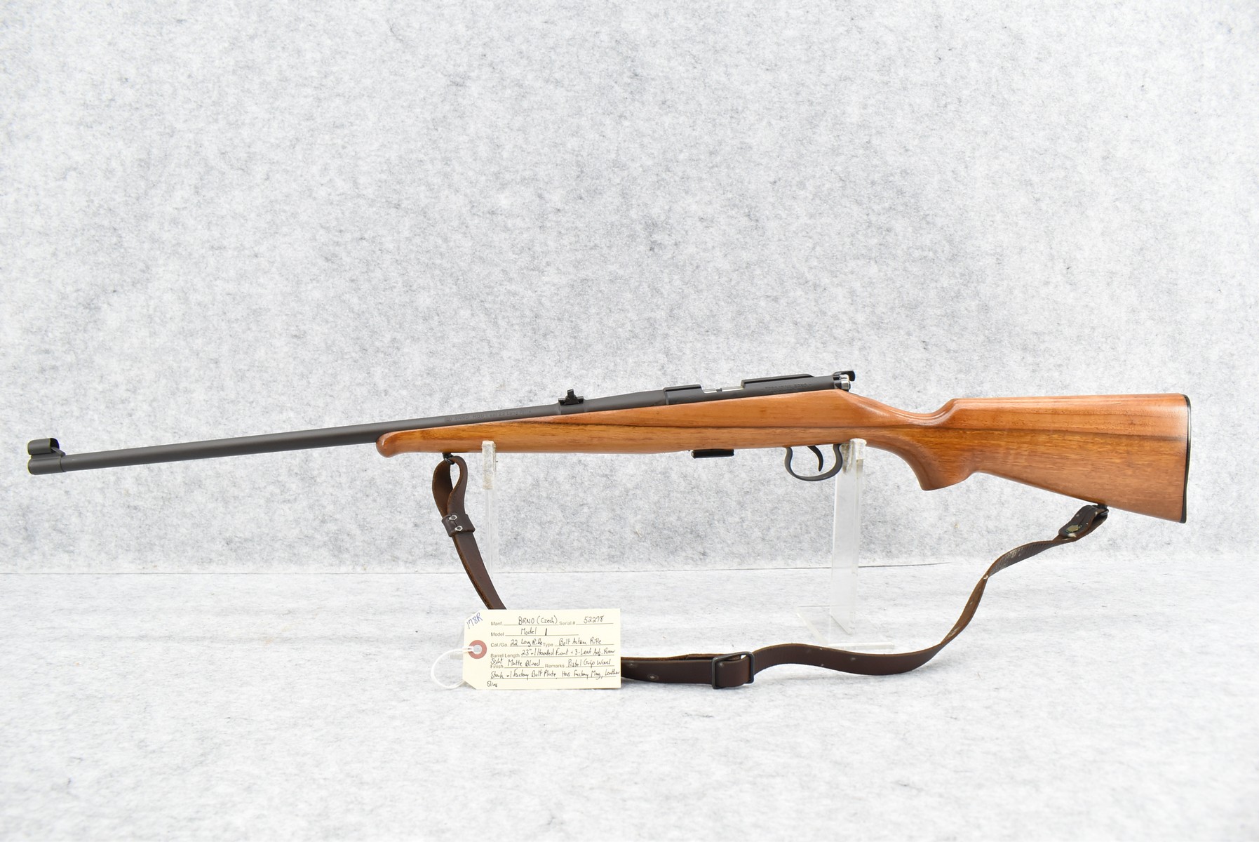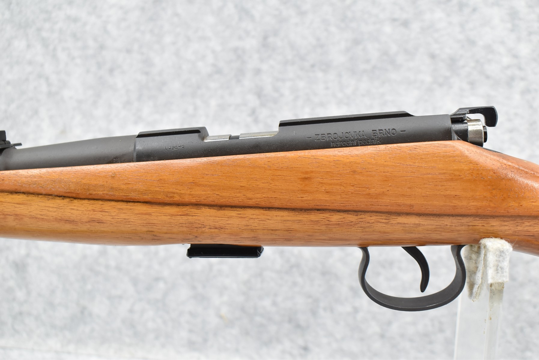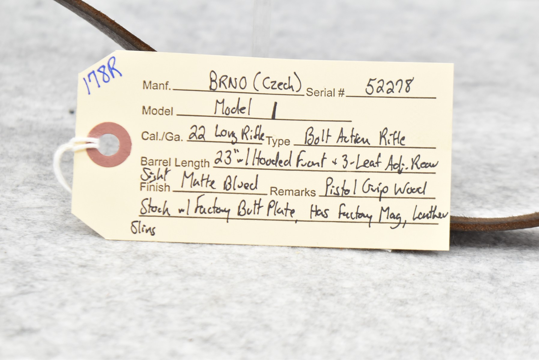 178R. BRNO (Czech) – Mod. 1 – 22 Long Rifle Cal. Bolt Action Rifle – w/23” Barrel w/Hooded Front & 3-Leaf Adj. Rear Sight – Matte Blued Finish – w/Pistol Grip Wood Stock w/Factory Butt Plate – w/Factory 5Rd Mag – w/Leather Sling