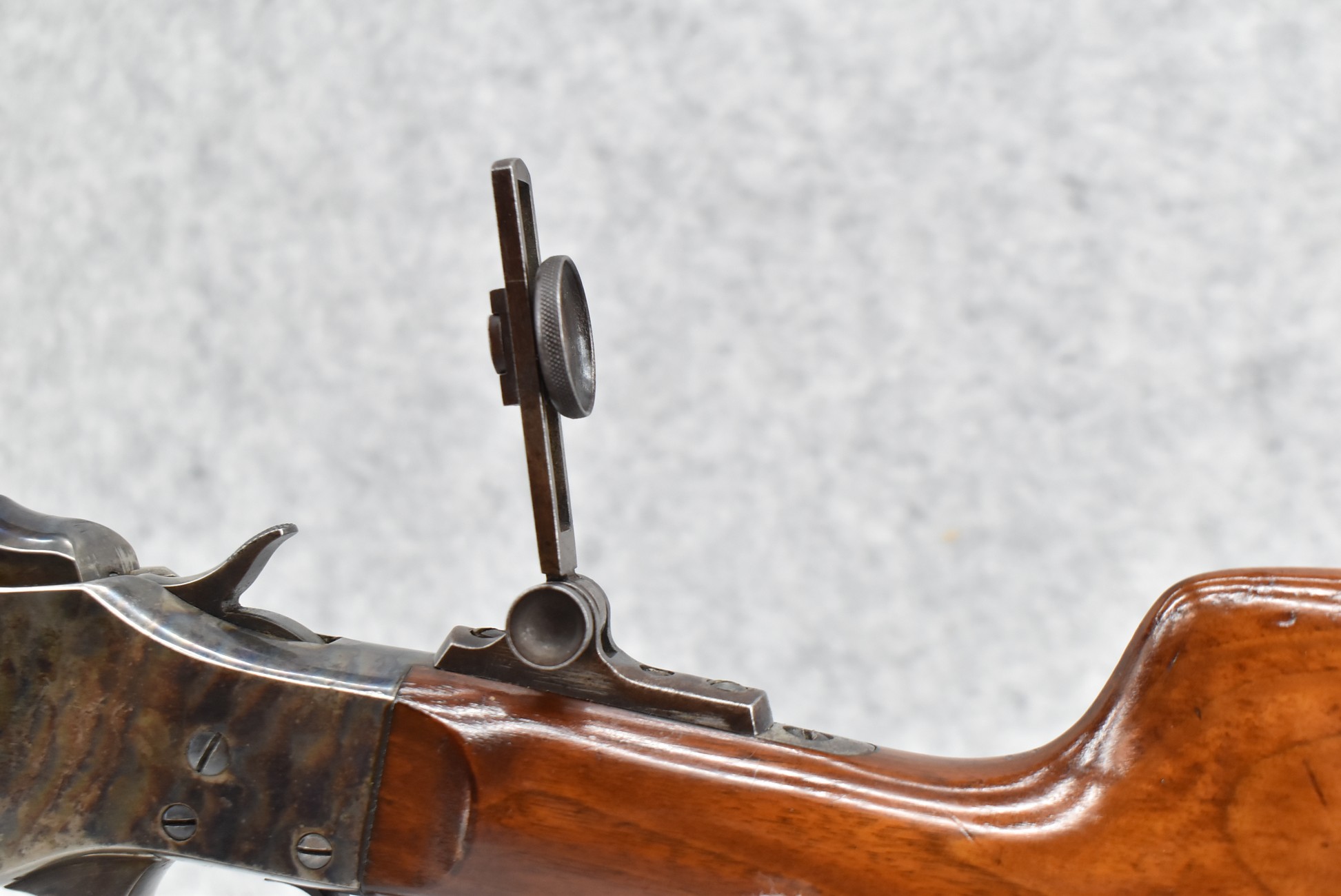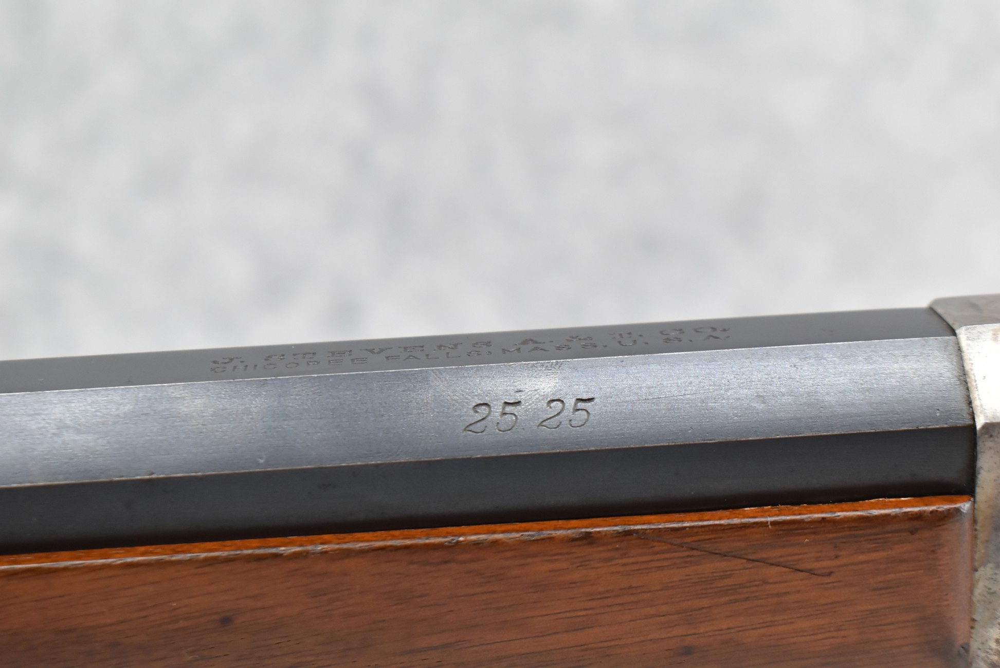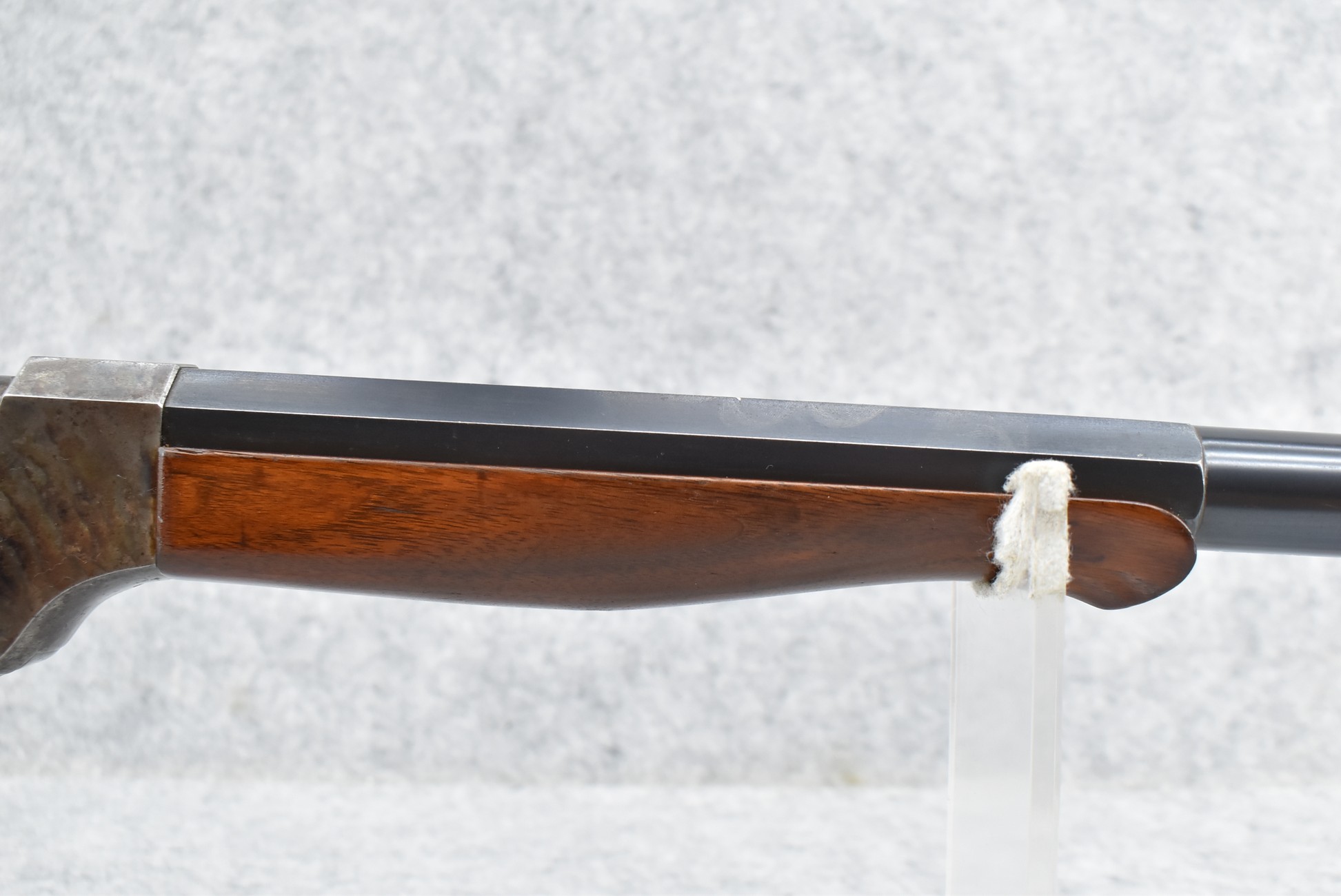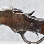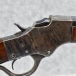 180. Excellent! J. Stevens – Mod. 44 Falling Block – Single Shot Rifle Chambered in 25-25 Stevens – Gun Has a 28” #1 Weight Octagon to Round Barrel w/Target Globe Front (No Rear Dovetail for Rear Barrels Sight) & Factory Mid-Range Adj. Rear Tang Sight – Gun Retains an Excellent Blued Finish on the Barrel as Well as Strong Case Colors on the Receiver! – Gun is Stocked w/a Straight Grip Wood Butt Stock w/Schuetzen Style Butt Plate & Schnabel Wood Forearm – w/Set Trigger – Serial #10718 – Very High Condition Rifle w/a Lot of Factory Options!