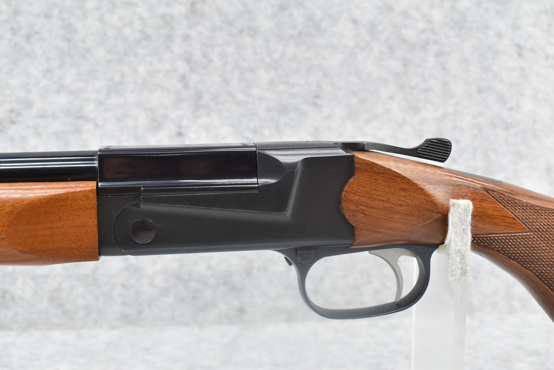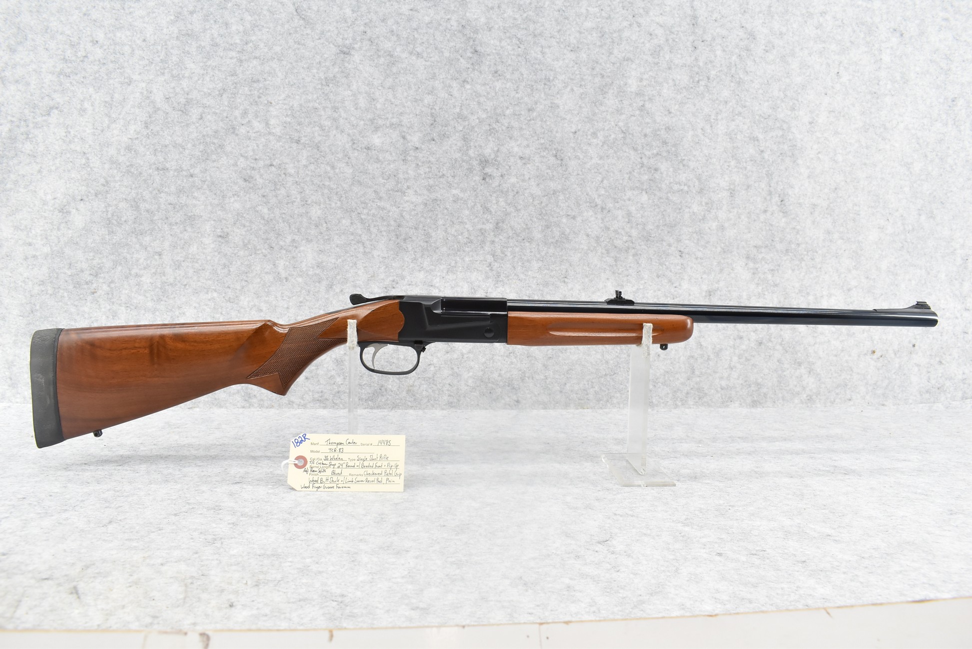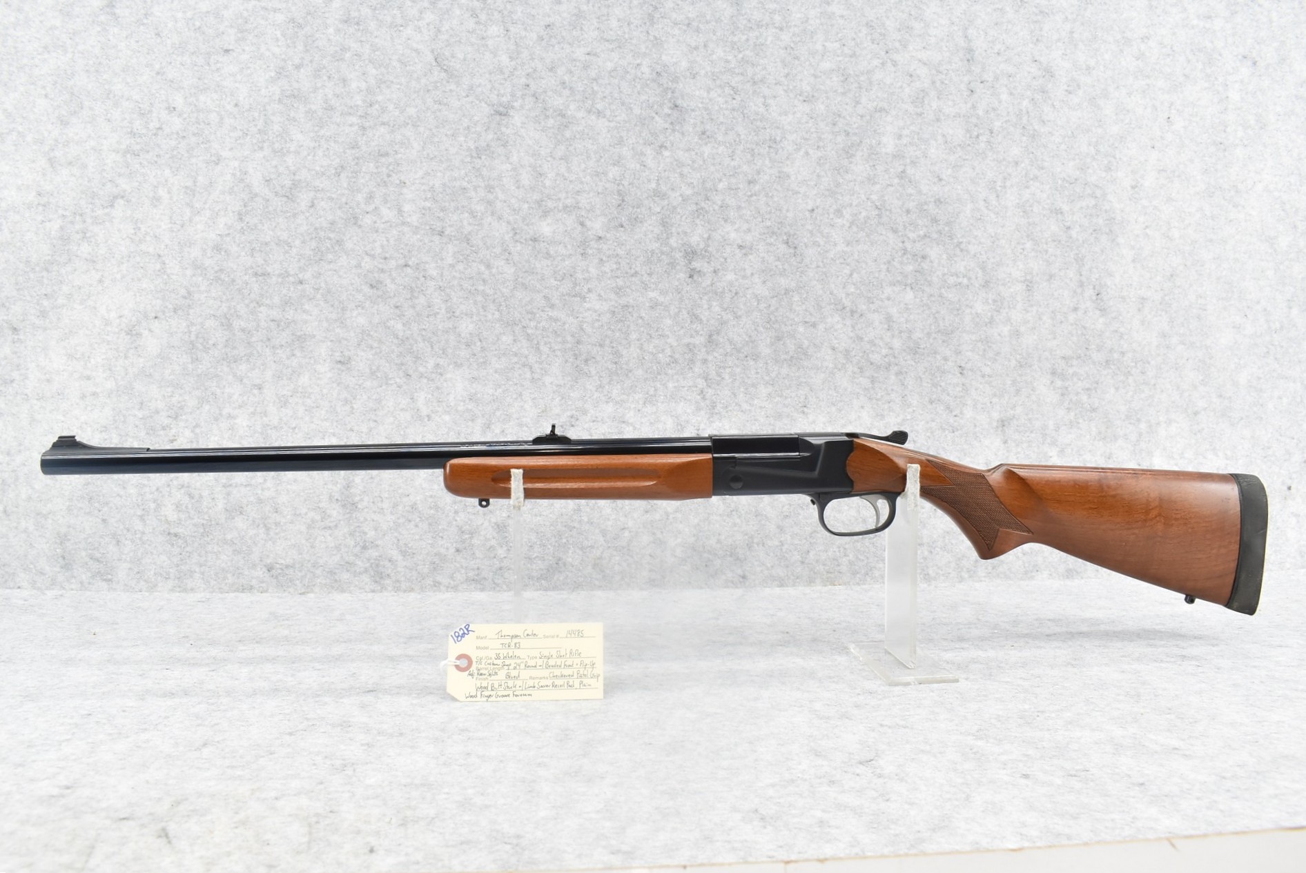 182R. Thompson Center – Mod. TCR-83 – 35 Whelen Cal. Single Shot Rifle – w/24” T/C Custom Shop Round Barrel w/Beaded Front & Flip-Up Adj. Rear Sights – Blued Finish – w/Checkered Pistol Grip Wood Butt Stock w/Plain Wood Finger Groove Forearm & Limb Saver Recoil Pad