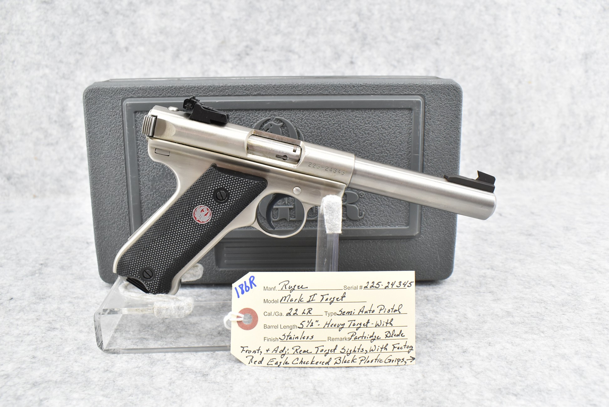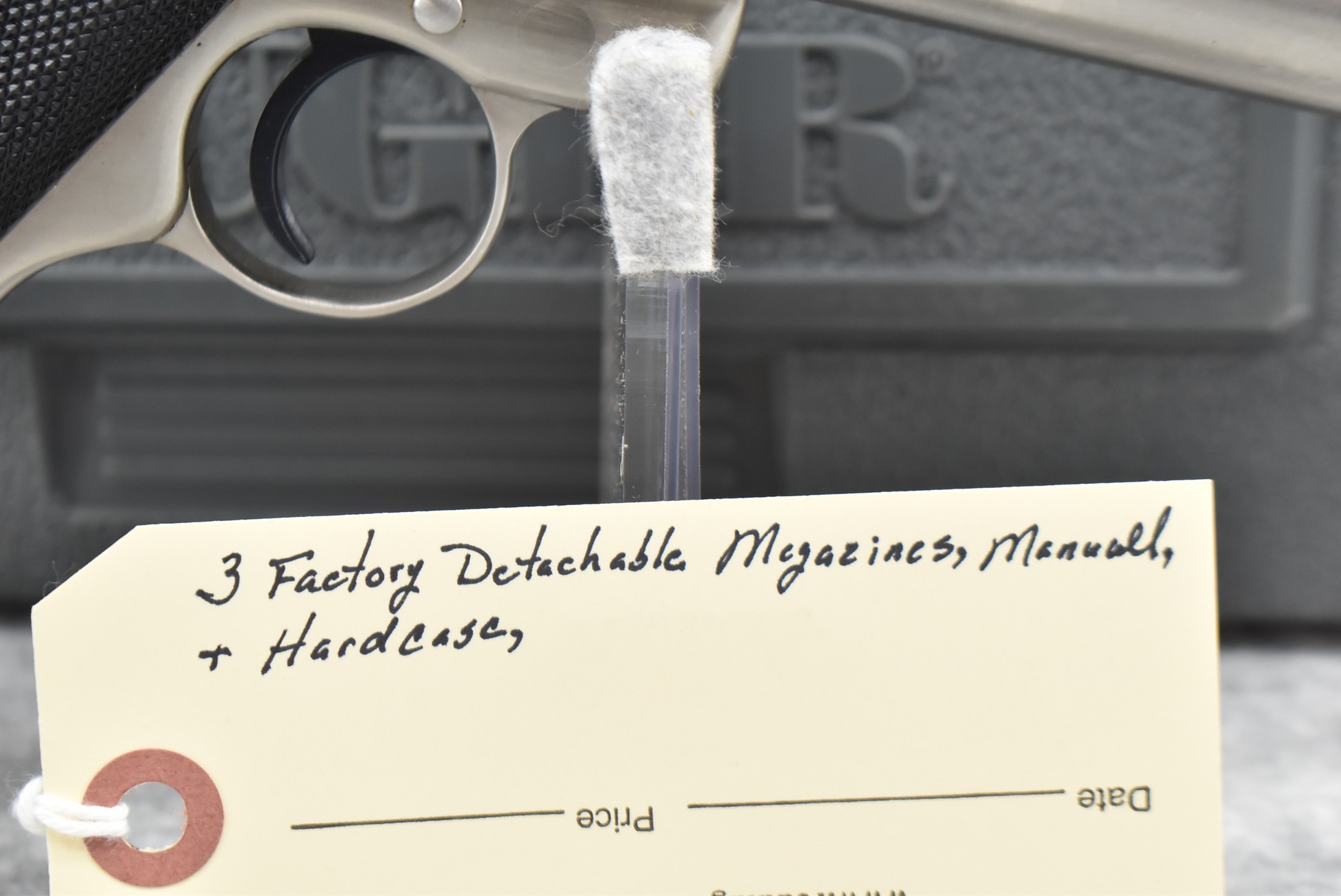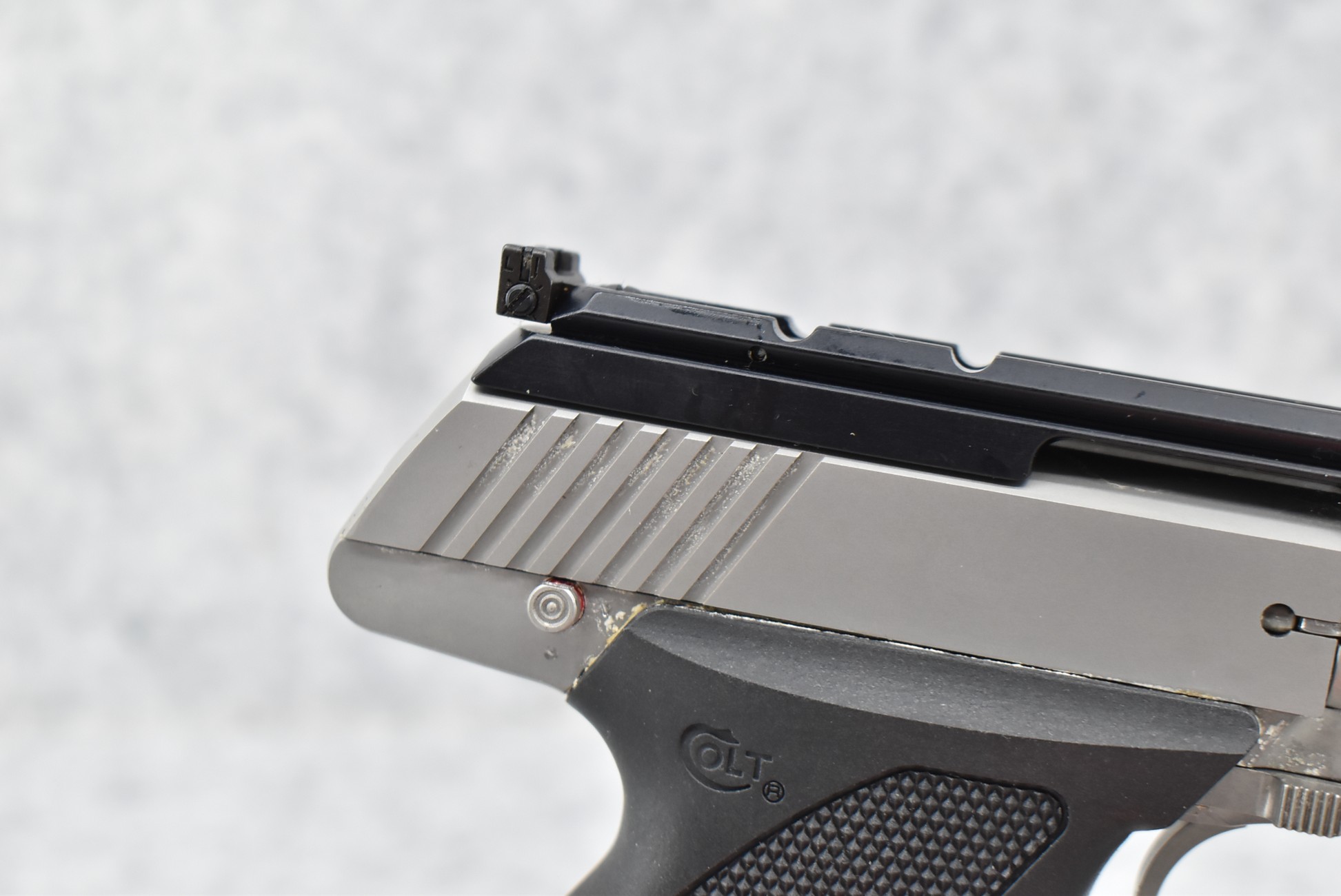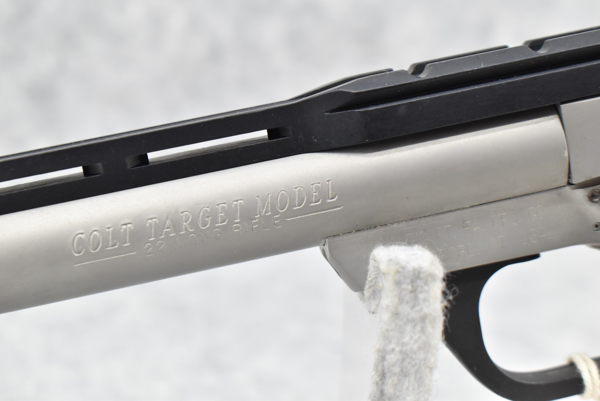 185R. Colt – Mod. 22 Target Model – 22 Long Rifle Cal. Semi-Auto Pistol – w/6” Vent-Rib Barrel w/Blade Front & Adj. Rear Sights – Stainless Finish – w/Factory Checkered Synthetic Grips w/Colt Medallion – w/2 Factory Colt Magazines – Appears Unfired w/Factory Hard Case, Sleeve, Hang Tag & Manual
