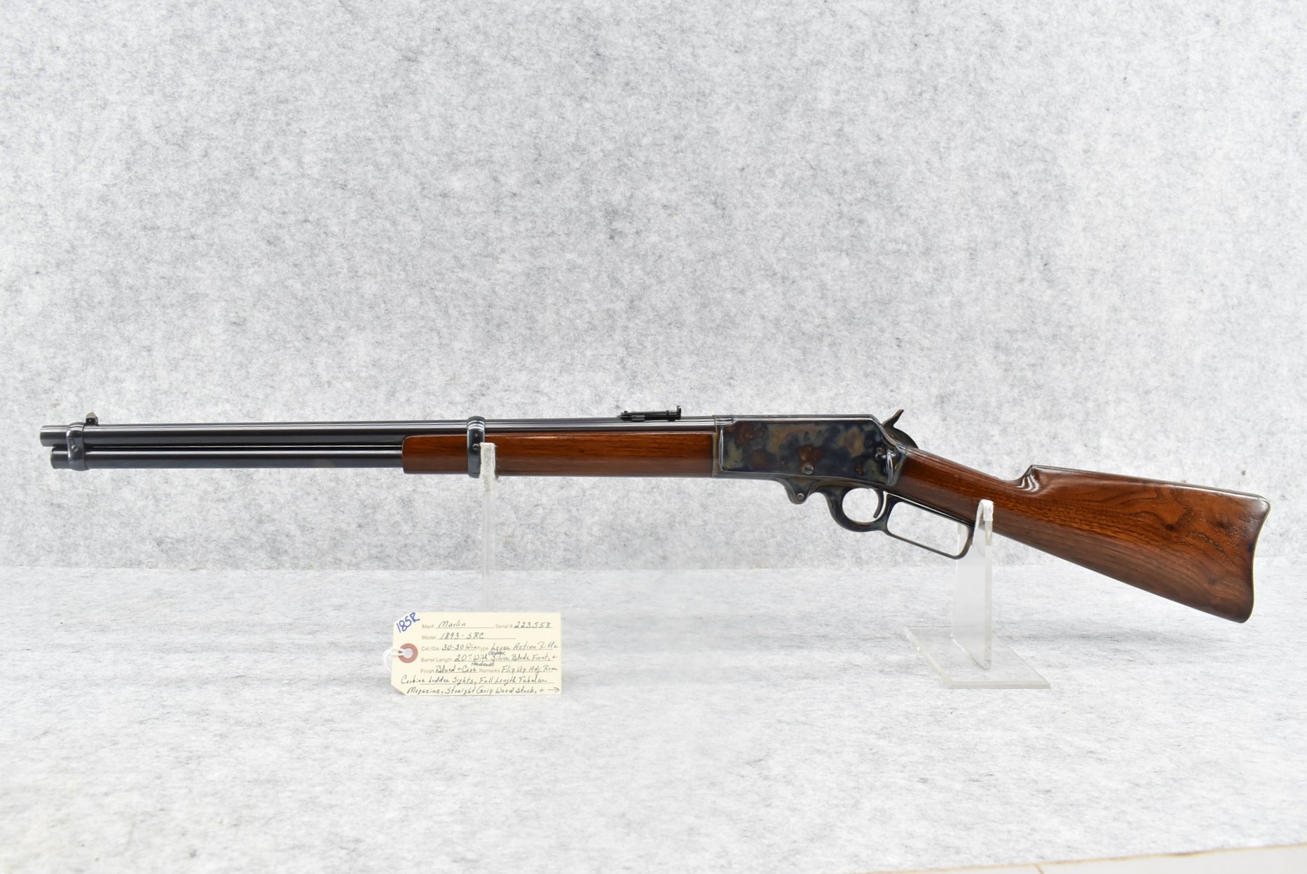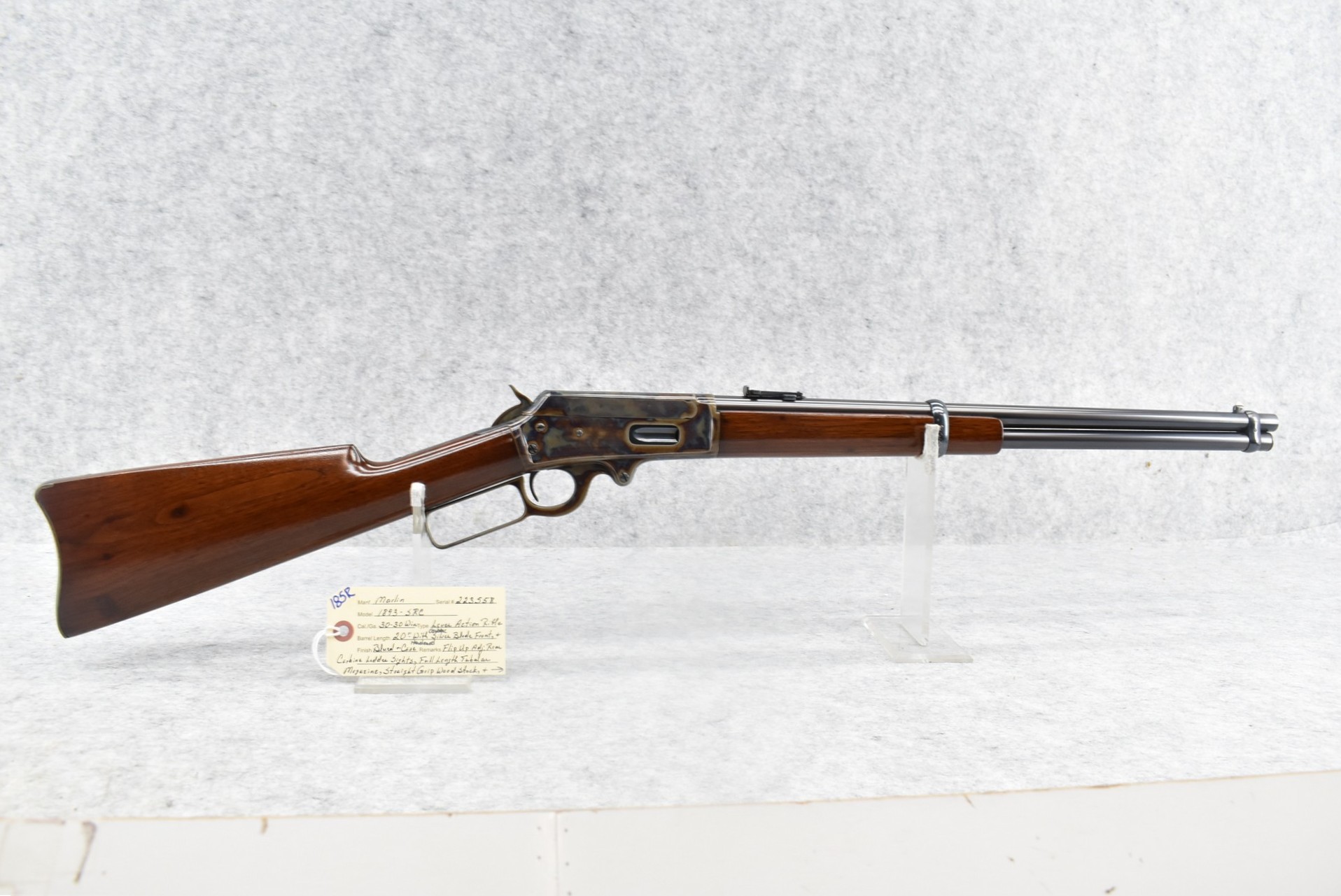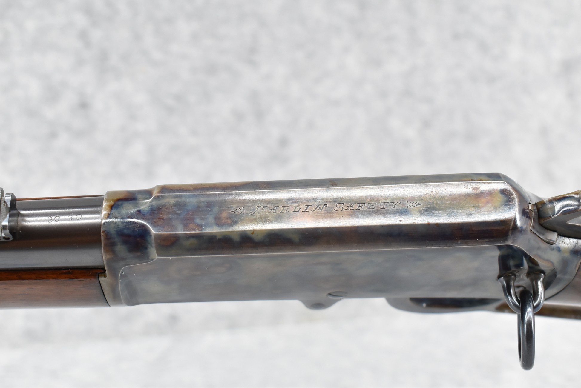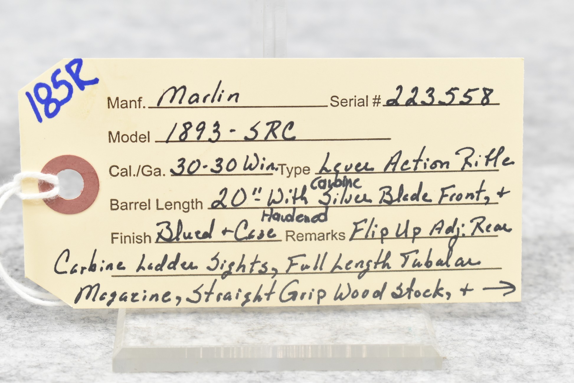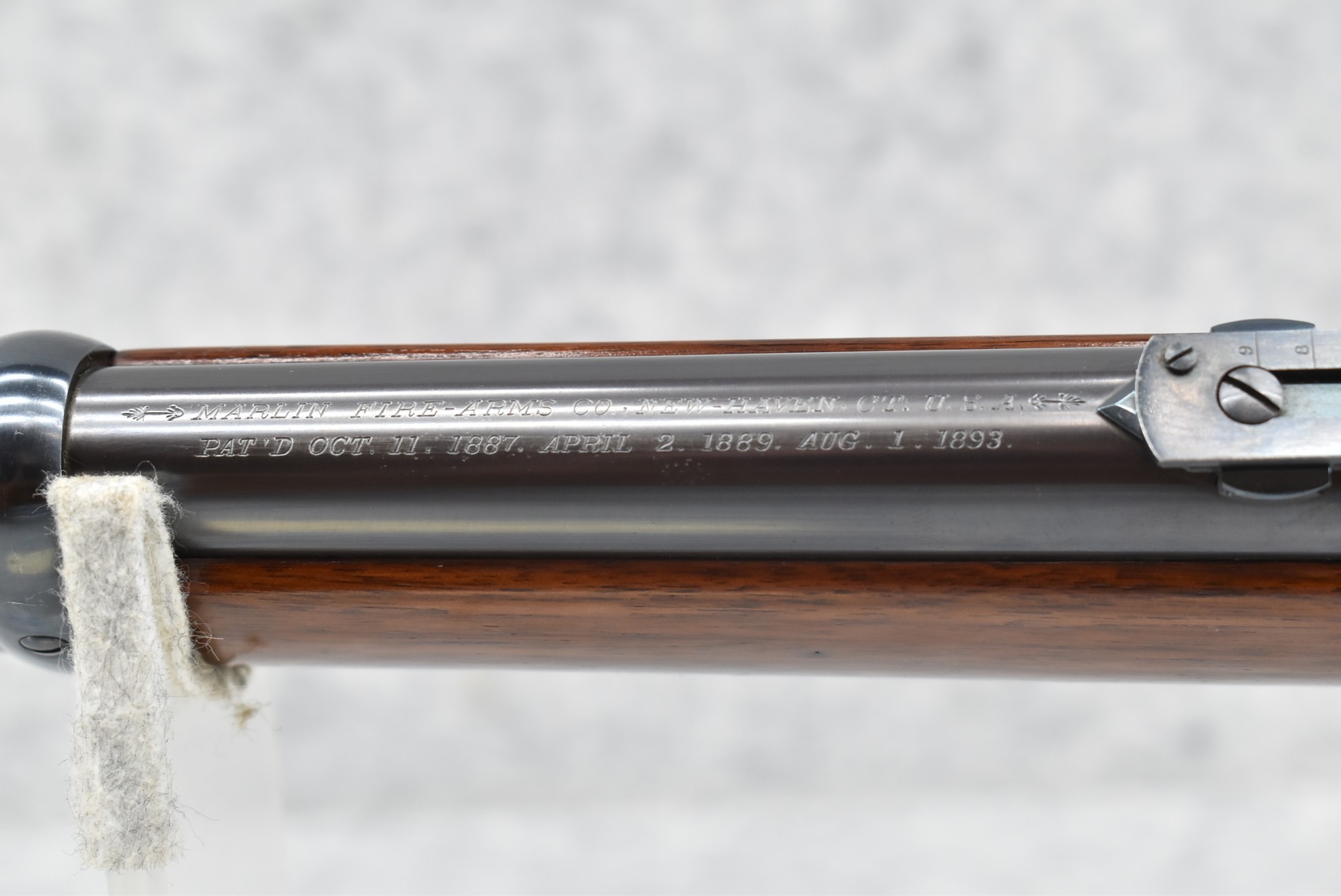 185R. Marlin – Mod. 1893 Saddle Ring Carbine – 30-30 Win. Cal. Lever Action Rifle – w/20” Barrel w/Carbine Silver Blade Front & Flip Up Ad. Rear Carbine Ladder Sights w/Full Length Tubular Magazine – Blued Finish – w/Straight Grip Wood Stocks w/Case Hardened Carbine Metal Butt Plate – A Must See!