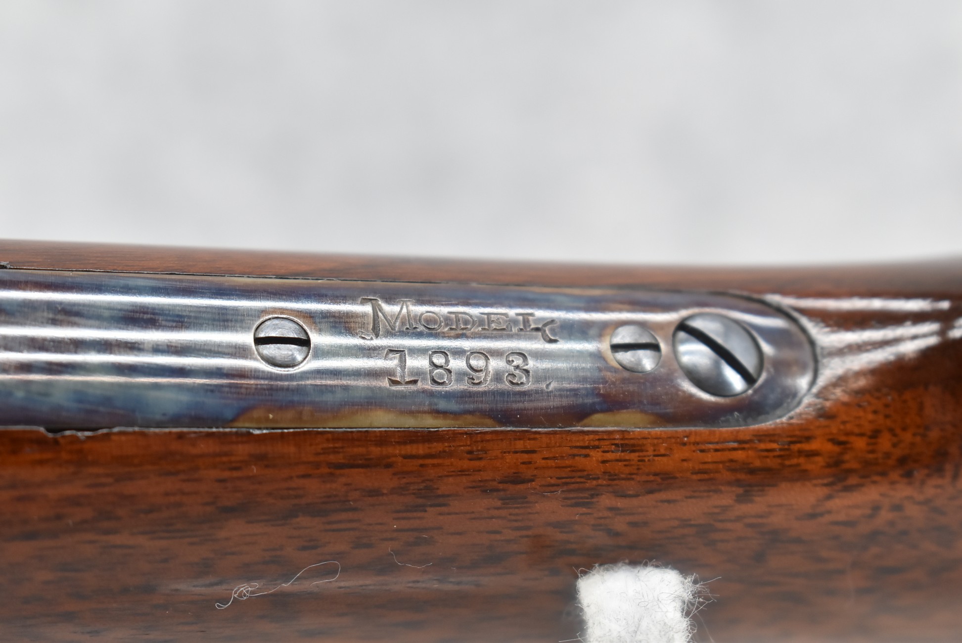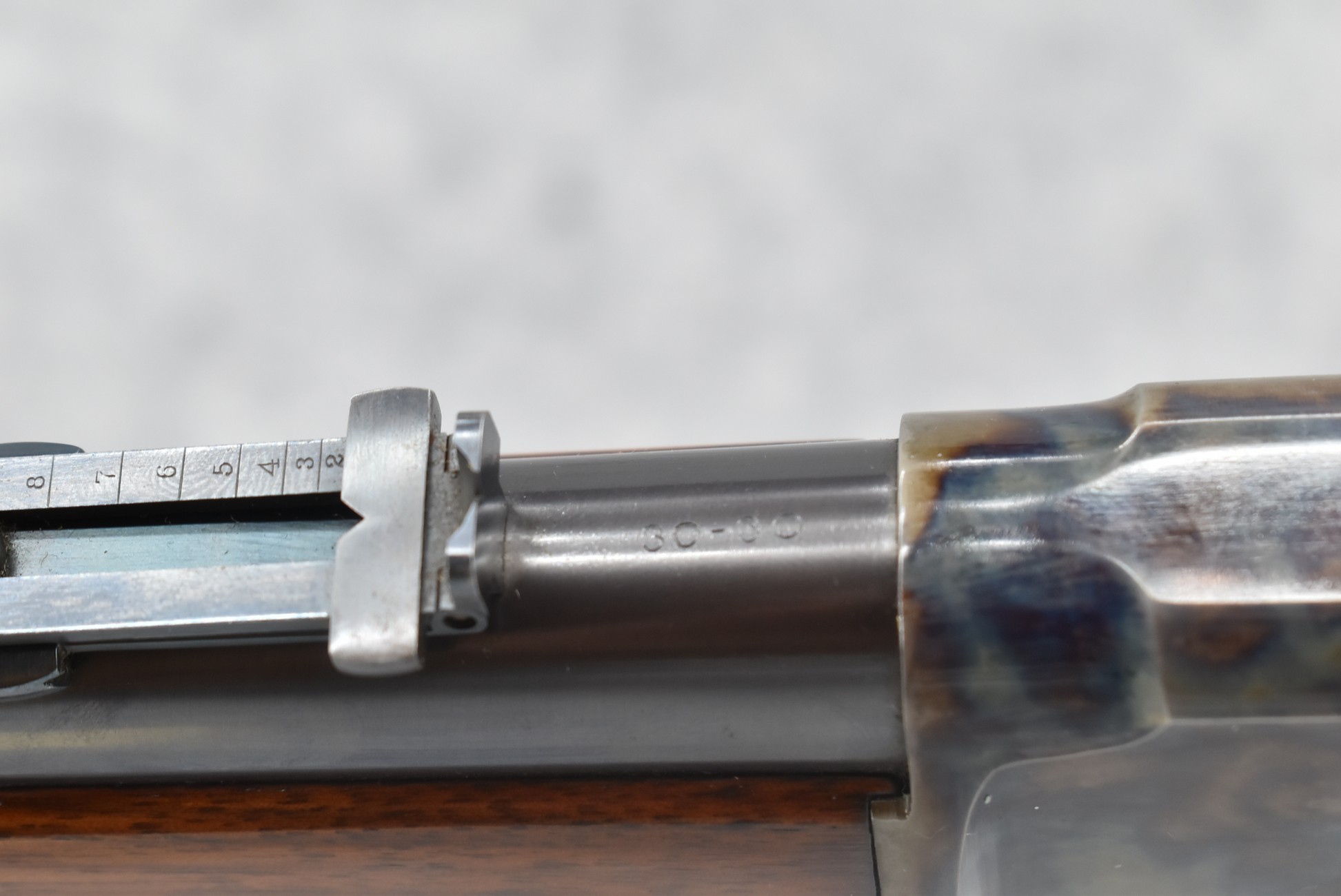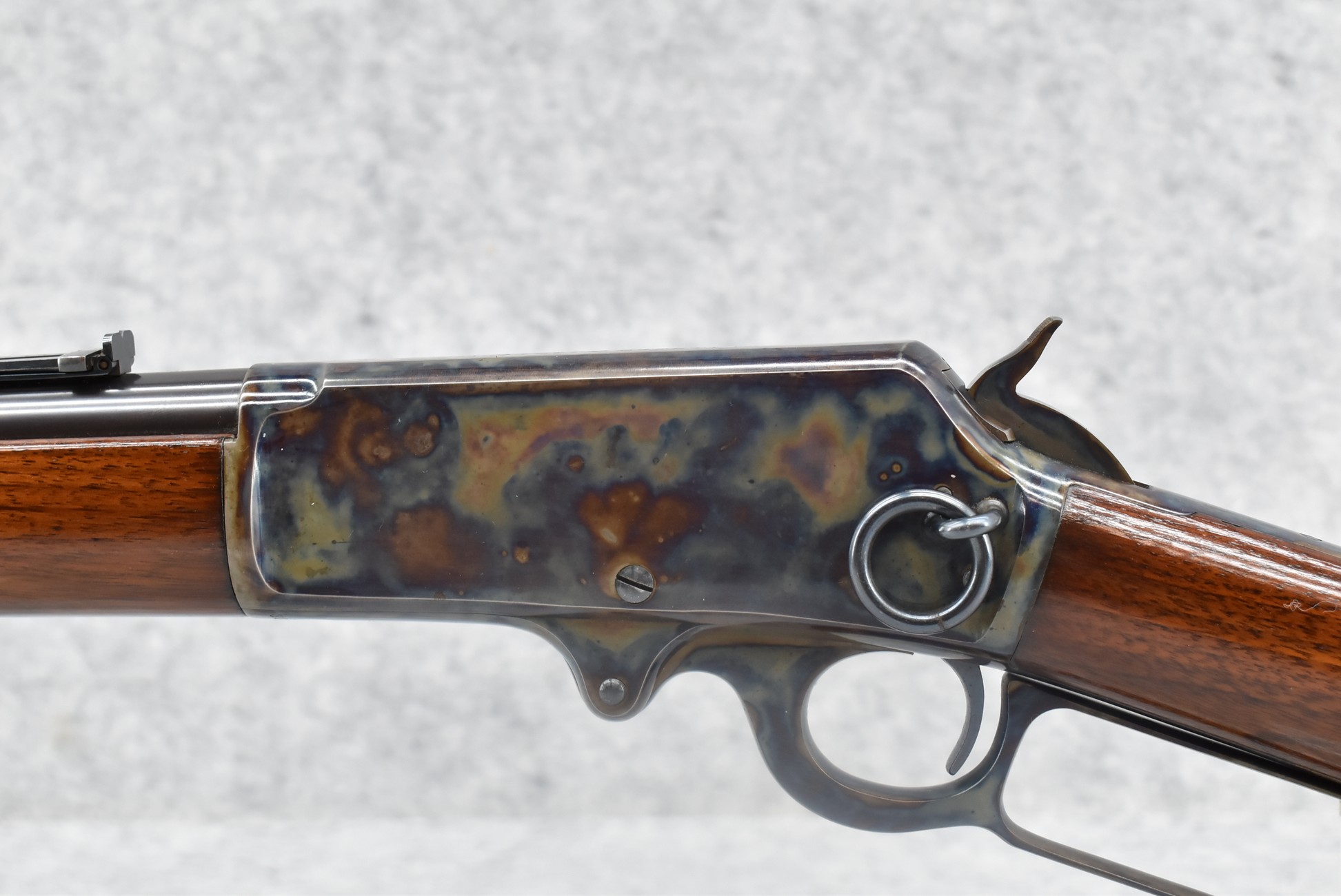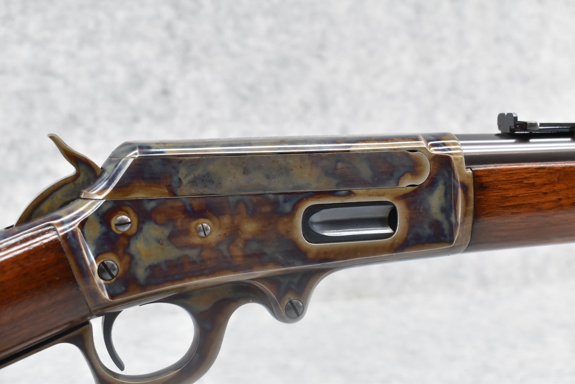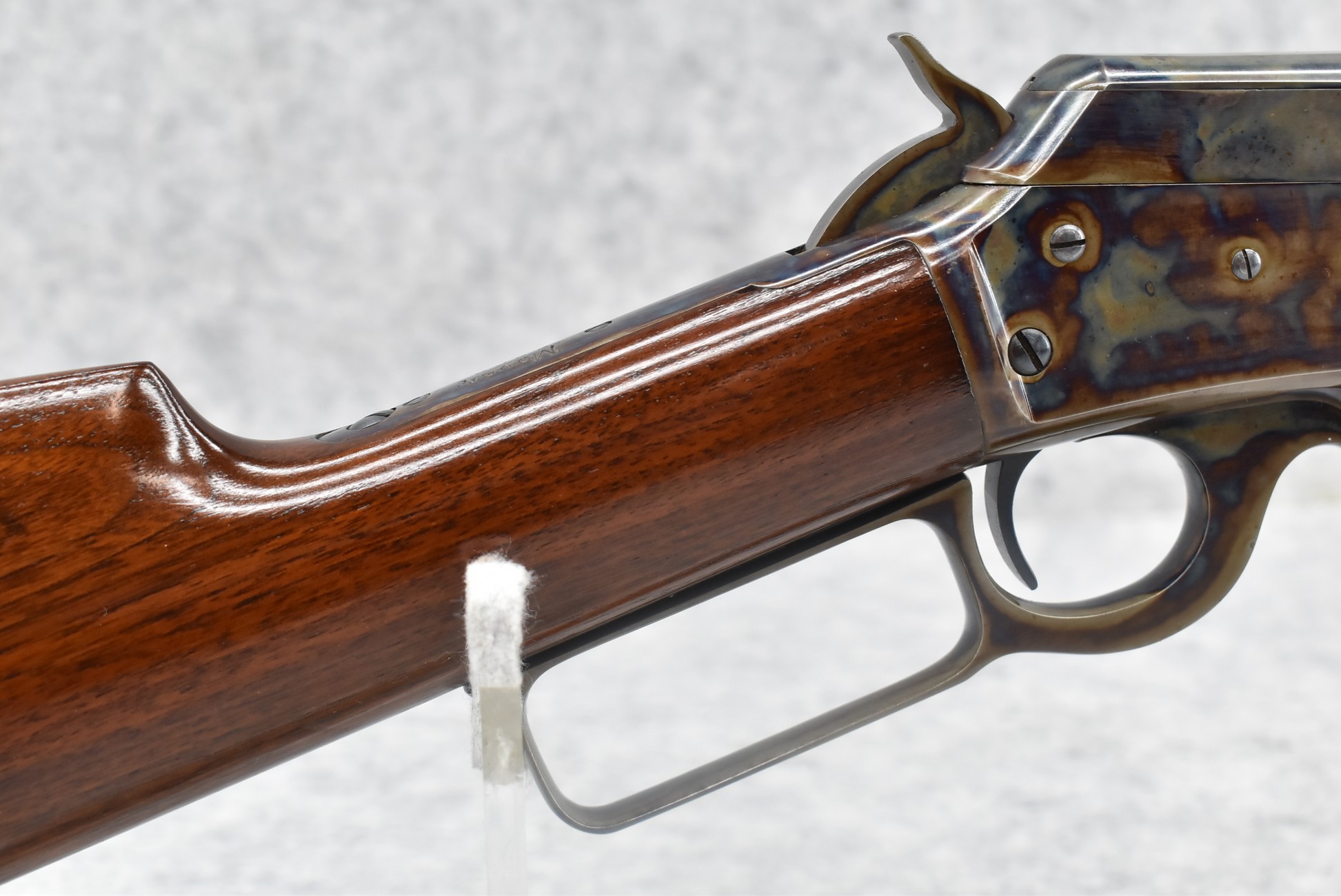 185R. Marlin – Mod. 1893 Saddle Ring Carbine – 30-30 Win. Cal. Lever Action Rifle – w/20” Barrel w/Carbine Silver Blade Front & Flip Up Ad. Rear Carbine Ladder Sights w/Full Length Tubular Magazine – Blued Finish – w/Straight Grip Wood Stocks w/Case Hardened Carbine Metal Butt Plate – A Must See!