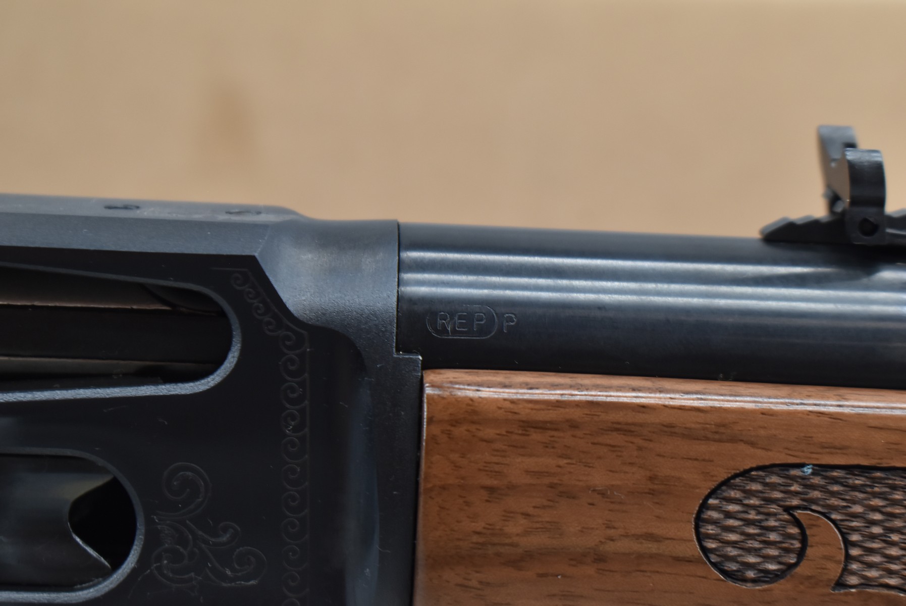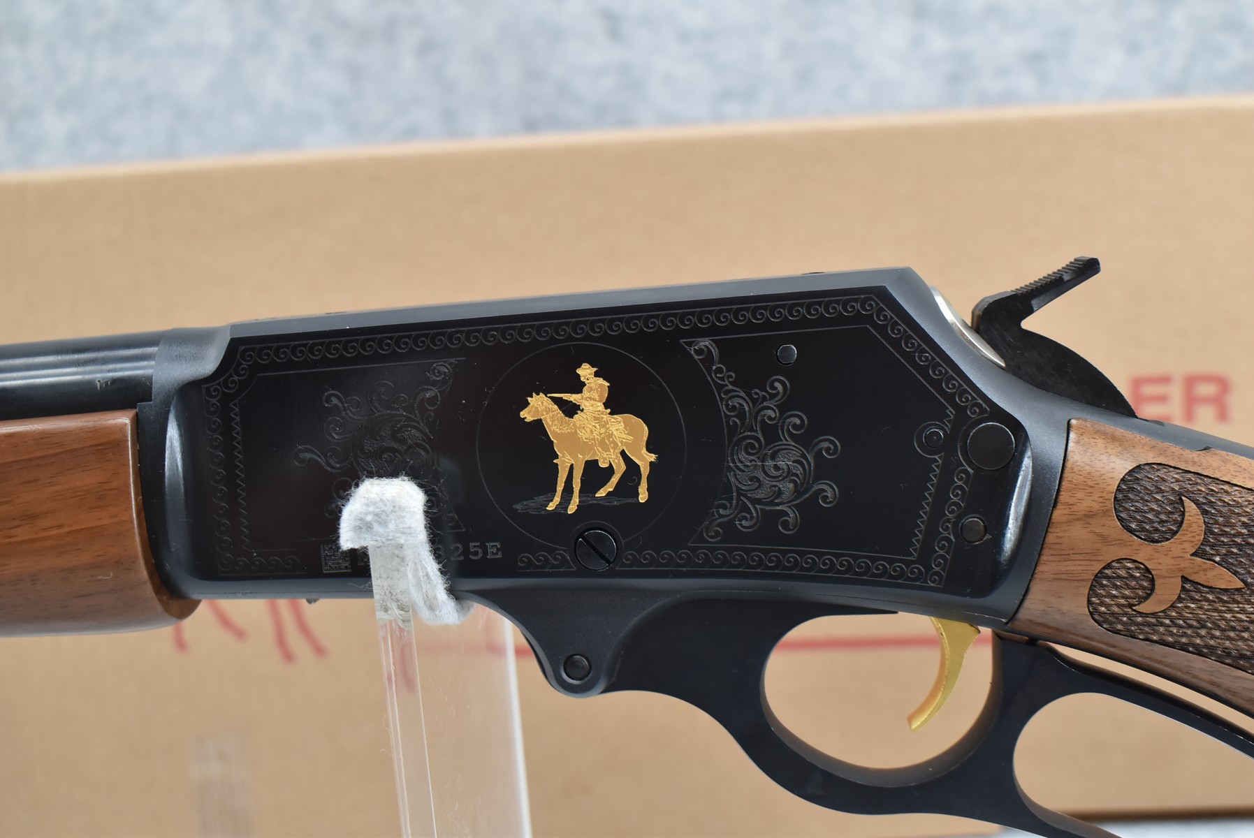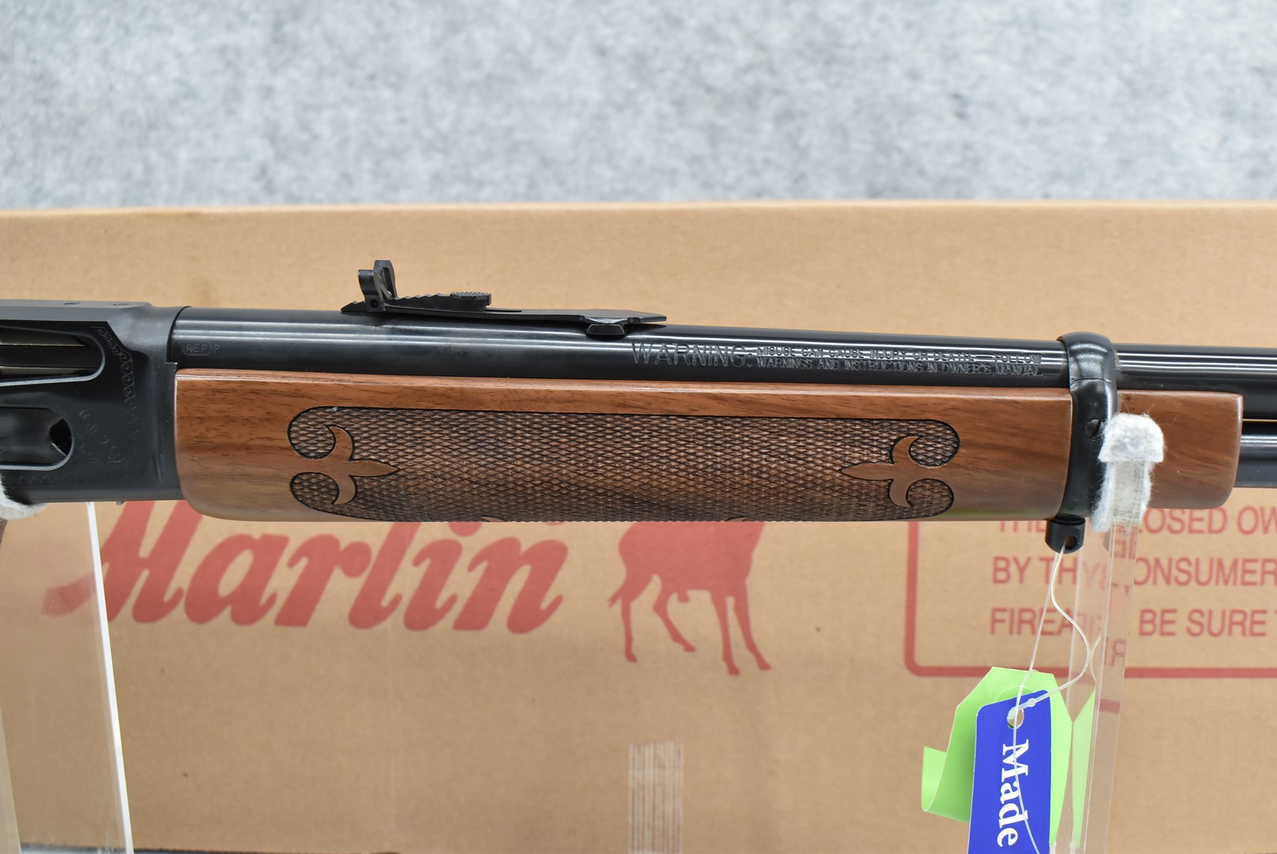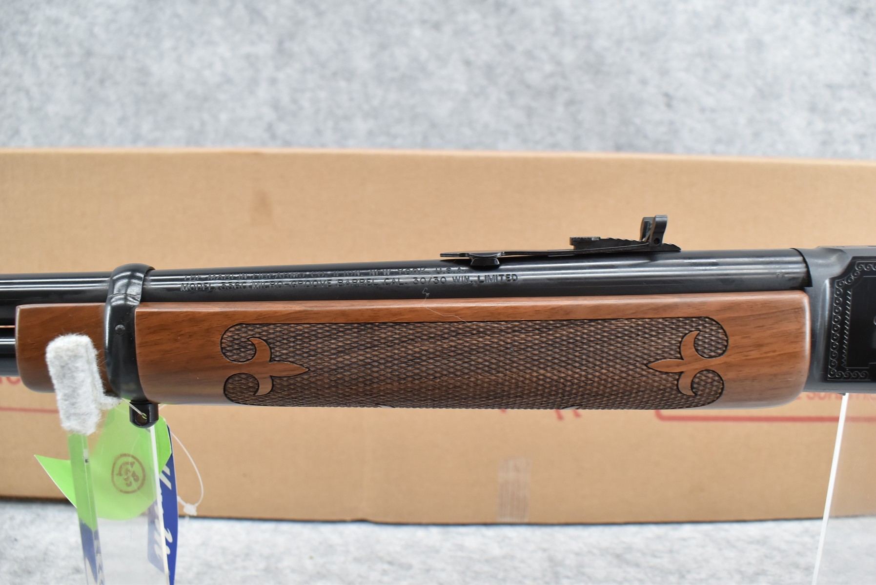 185R.     Marlin – Mod. 336C – 2014 Limited Edition – 30-30 Win. Cal. Lever Action Rifle – w/20” Barrel w/Hooded Front & Buckhorn Adj. Rear Sights – Blued Finish – w/Scroll Engraved Receiver w/24K Gold Marlin Horse & Rider Inlay on Left Side of Receiver – w/Fleur de Lis Checkered Capped Pistol Grip Walnut Stocks w/Factory Recoil Pad – New & Unfired w/Factory Box & Manual – Limited Number Mfg. in 2014 Only!